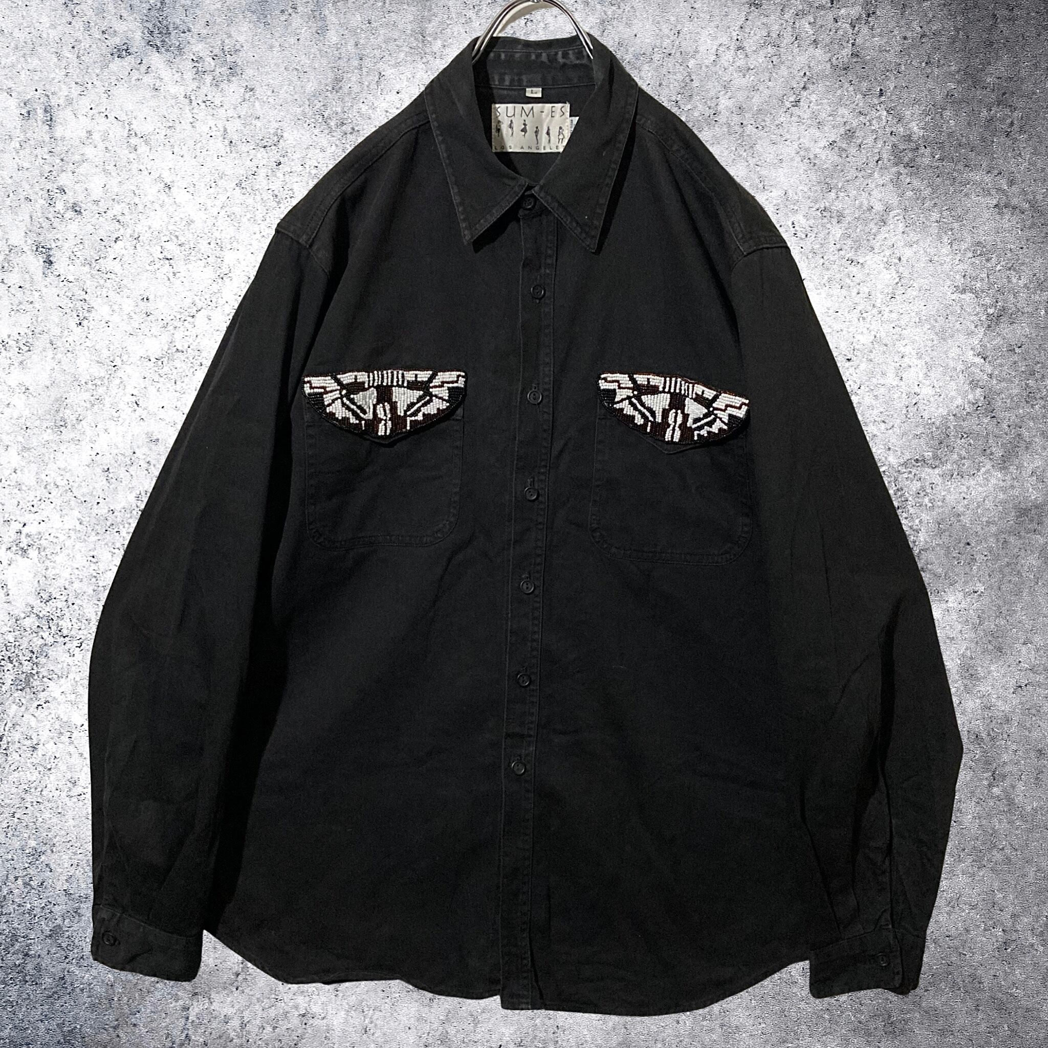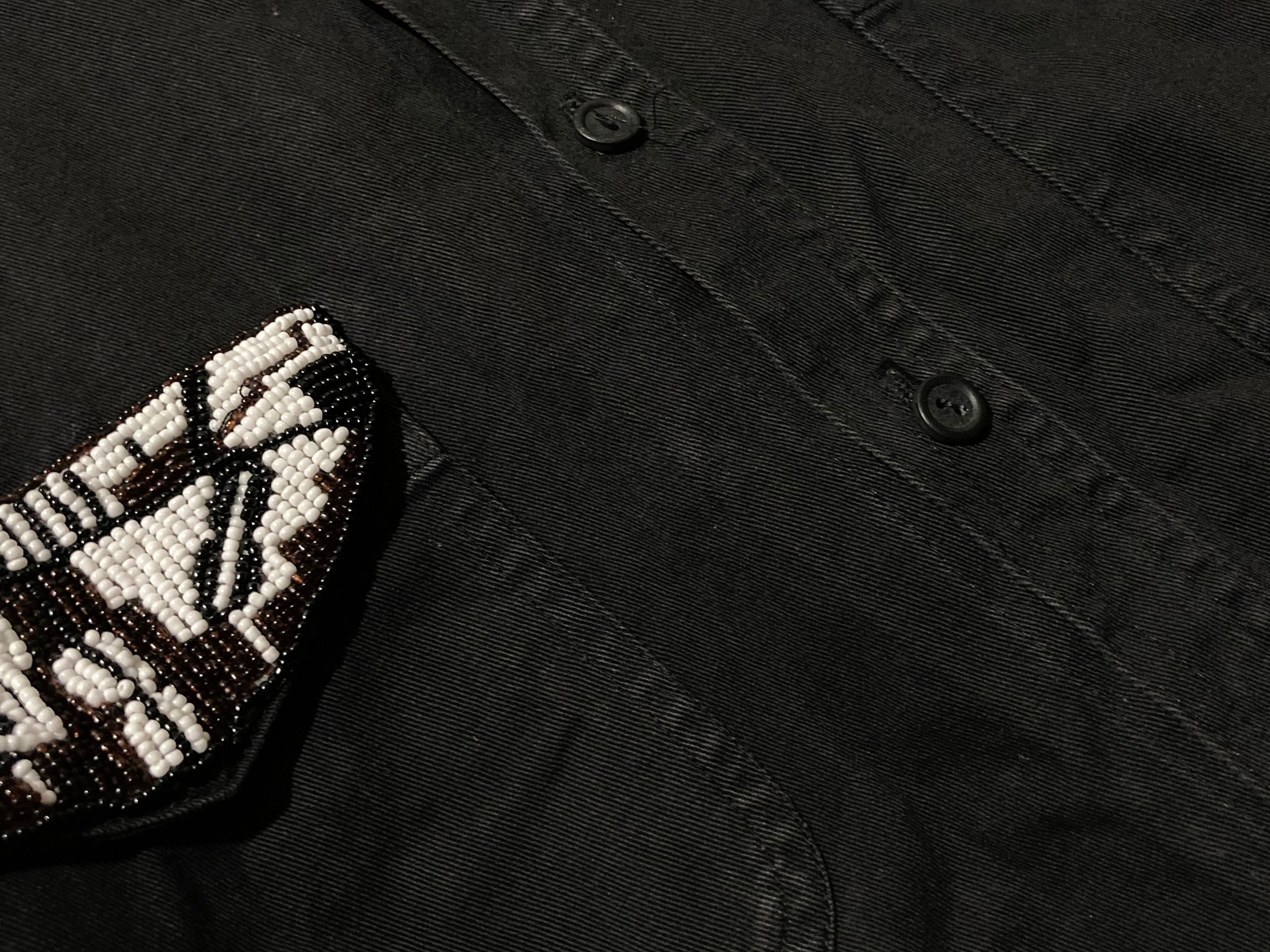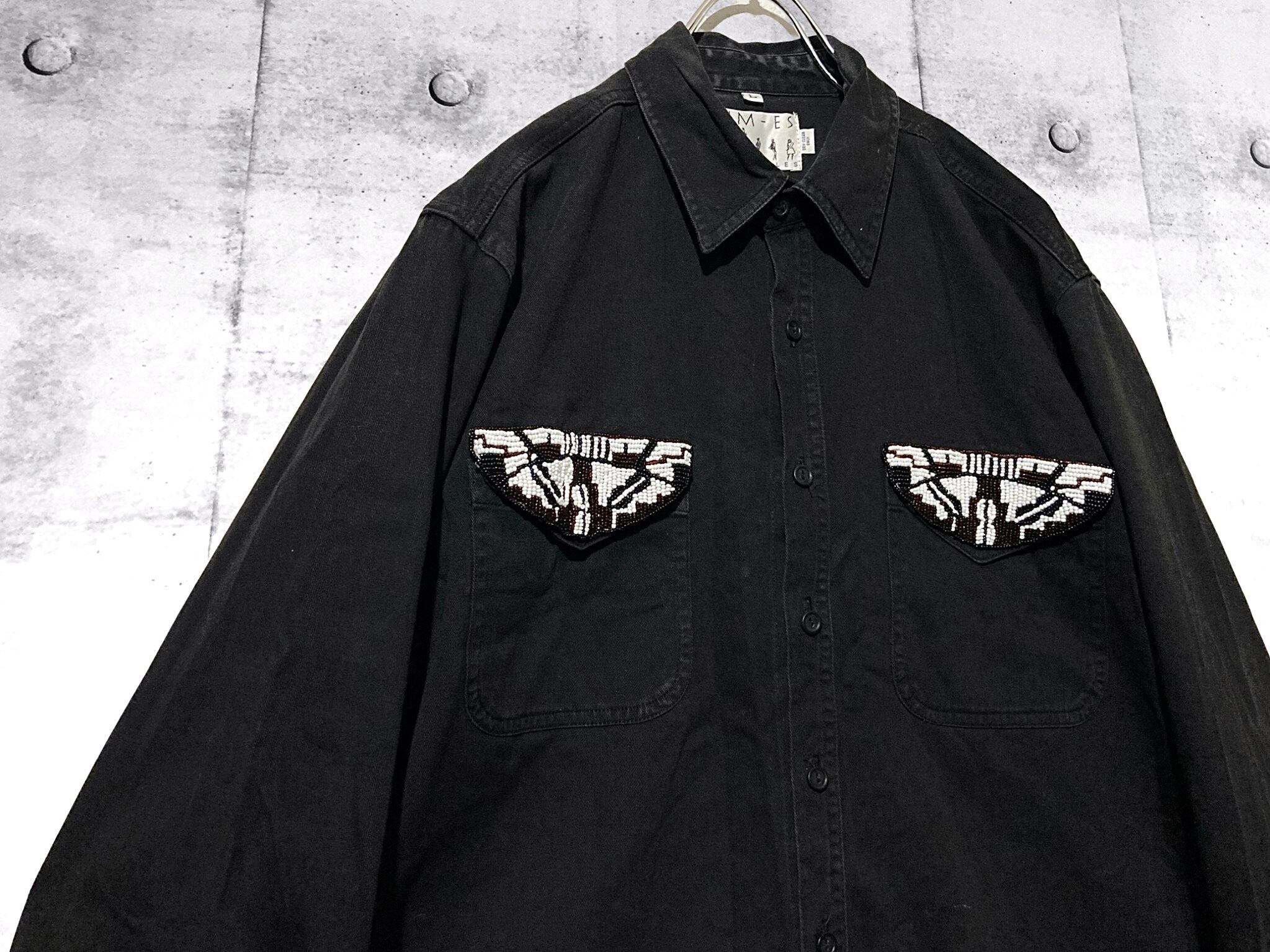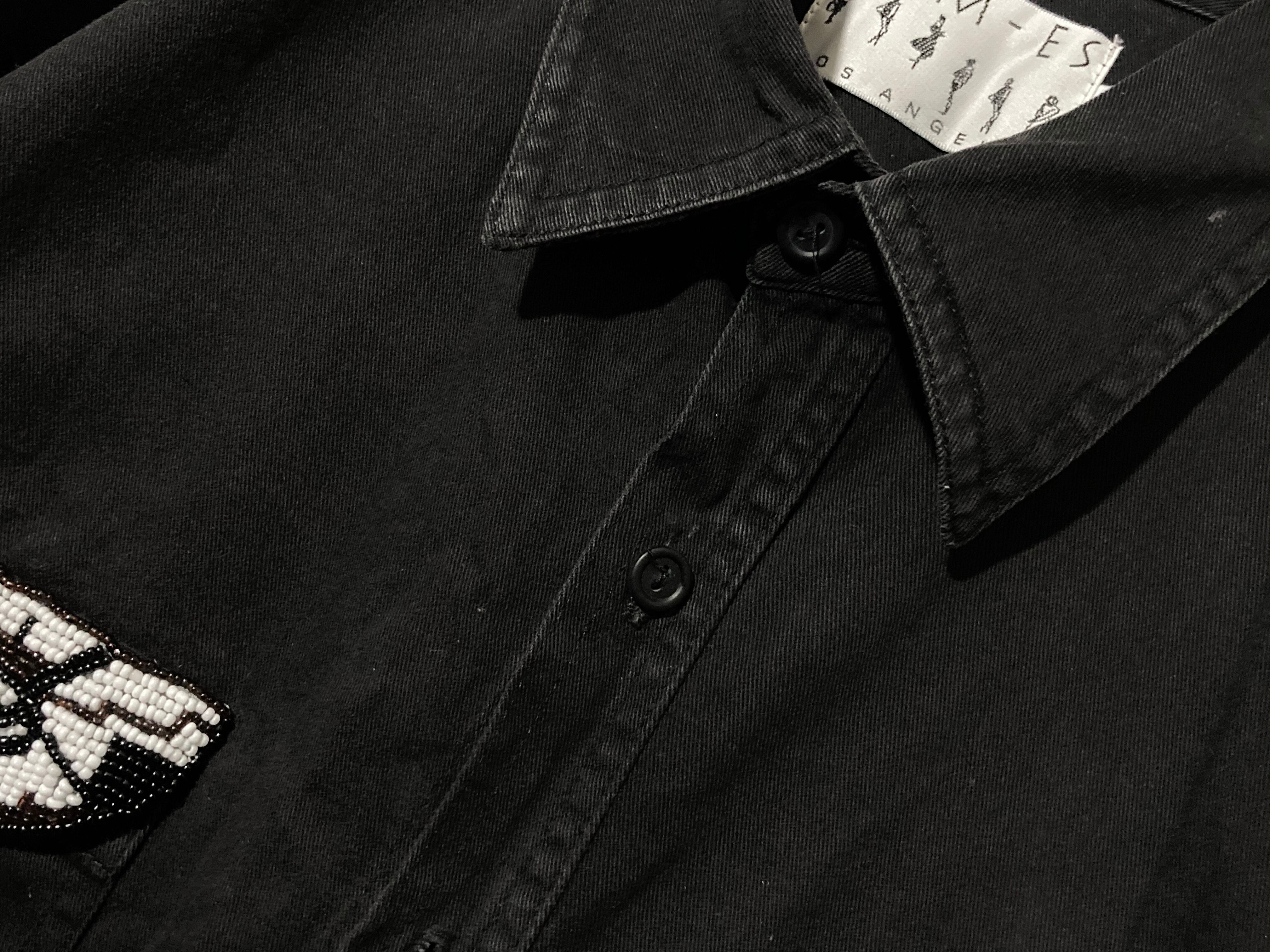 beads pocket design black denim shirt