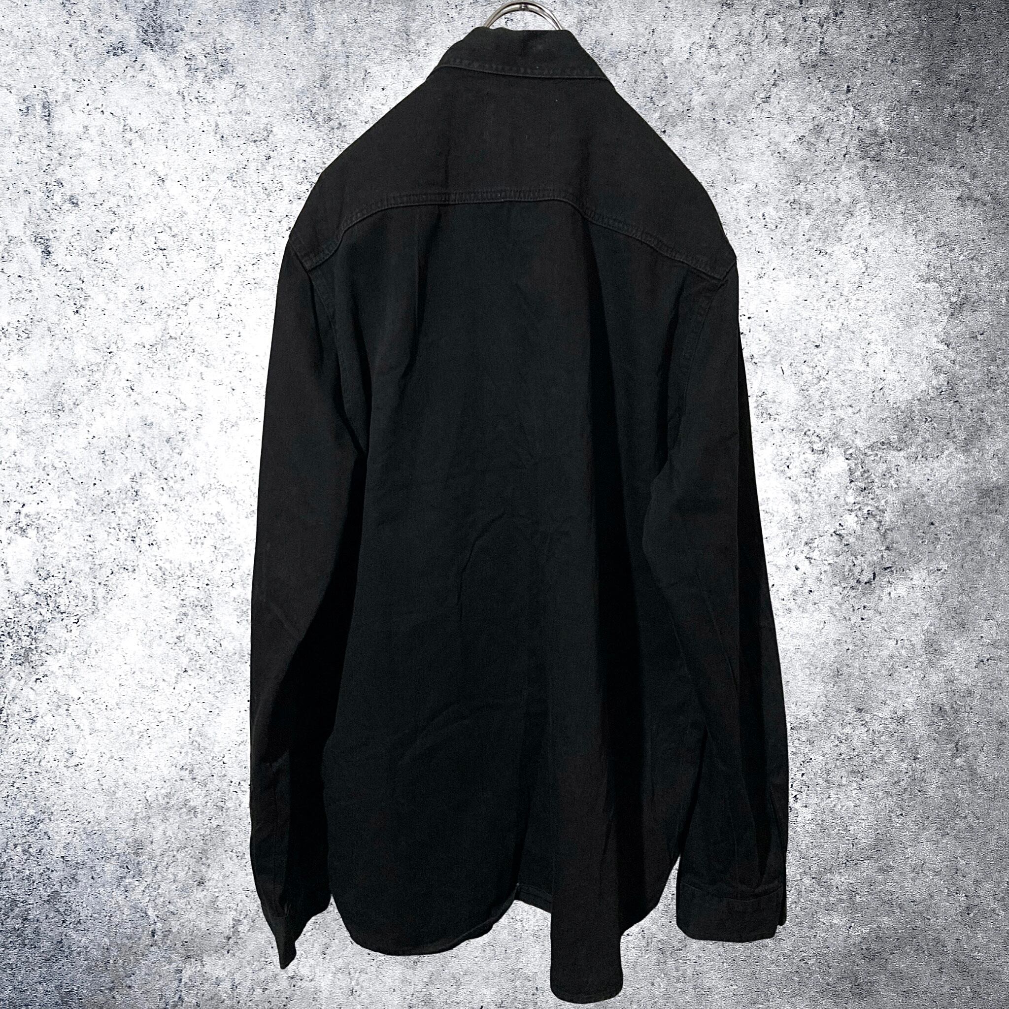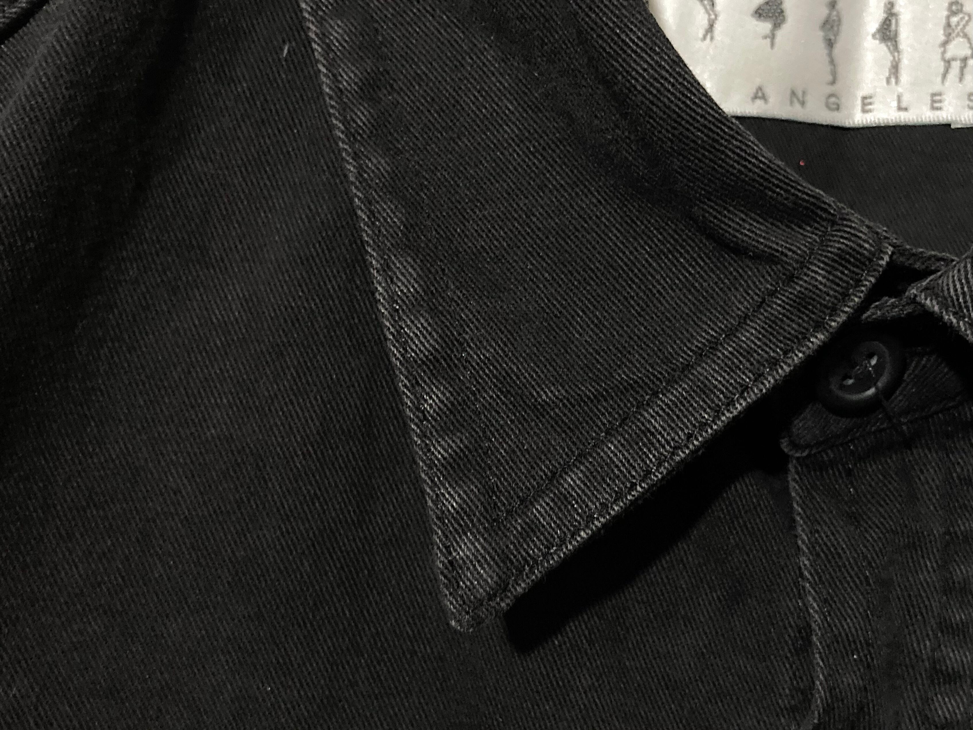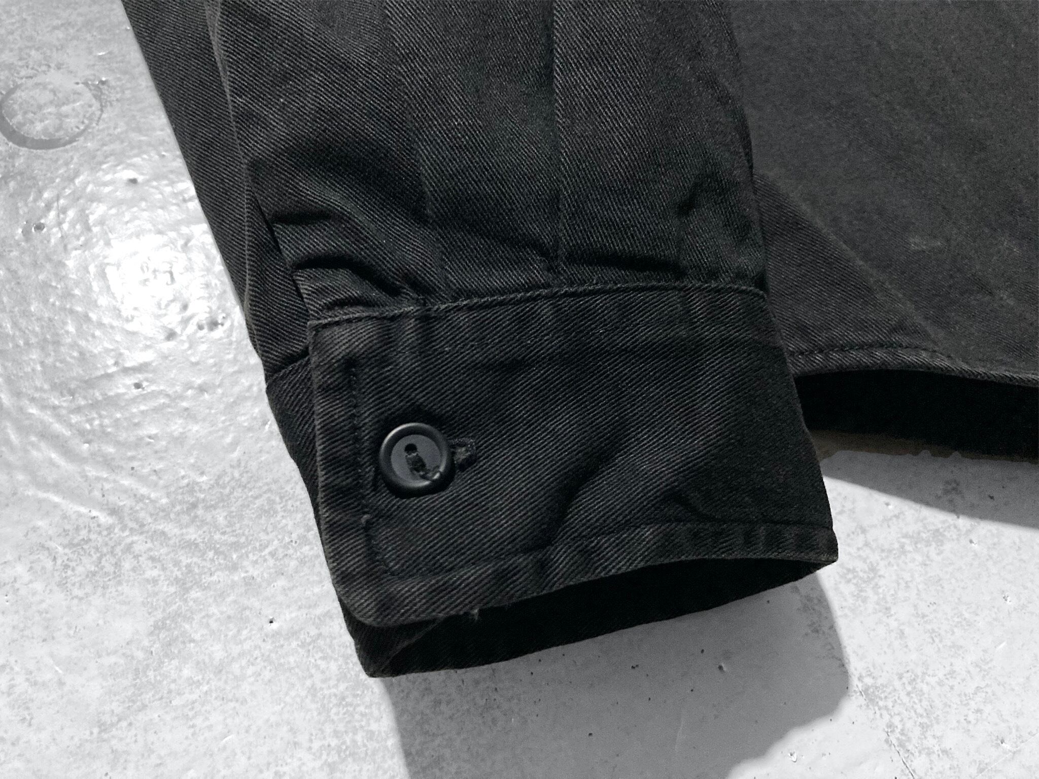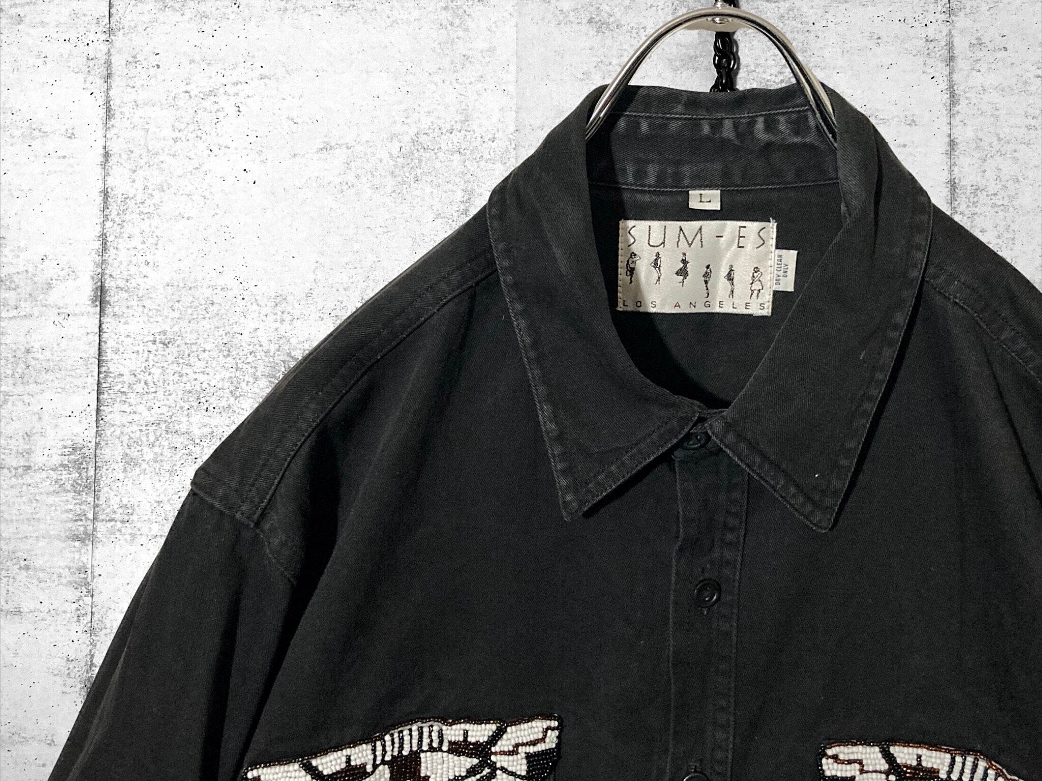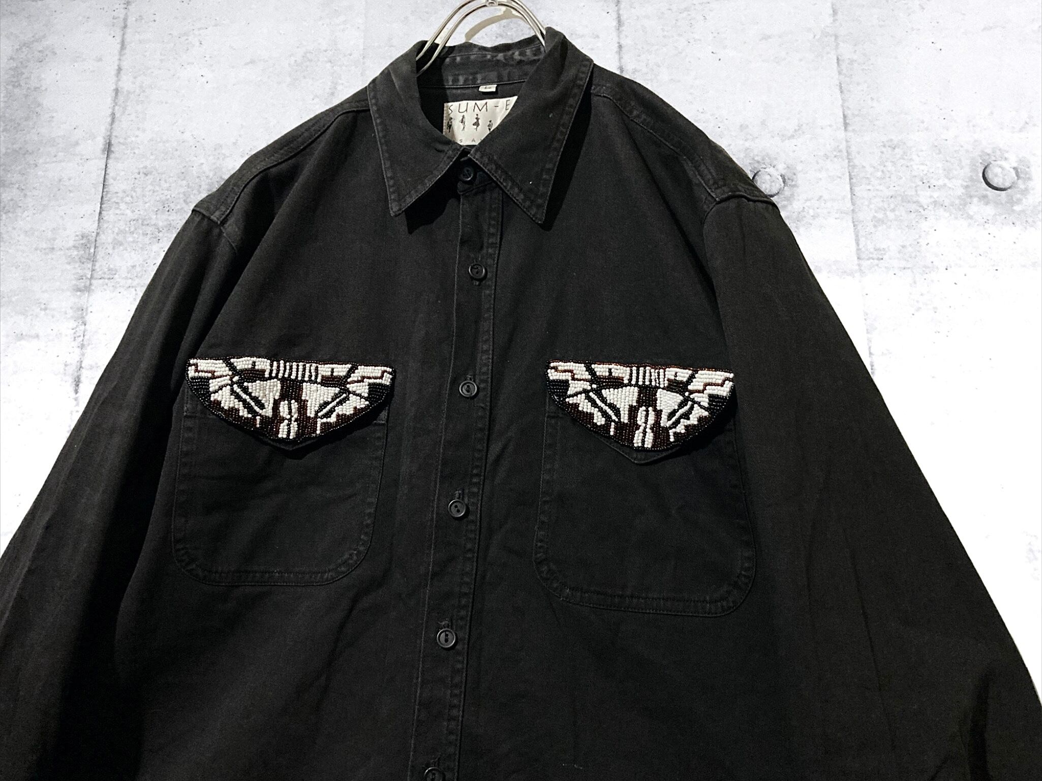 beads pocket design black denim shirt