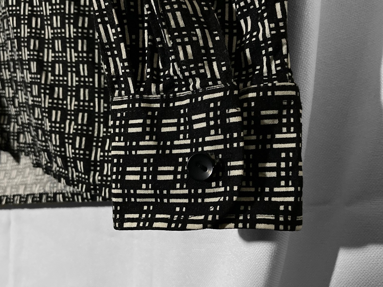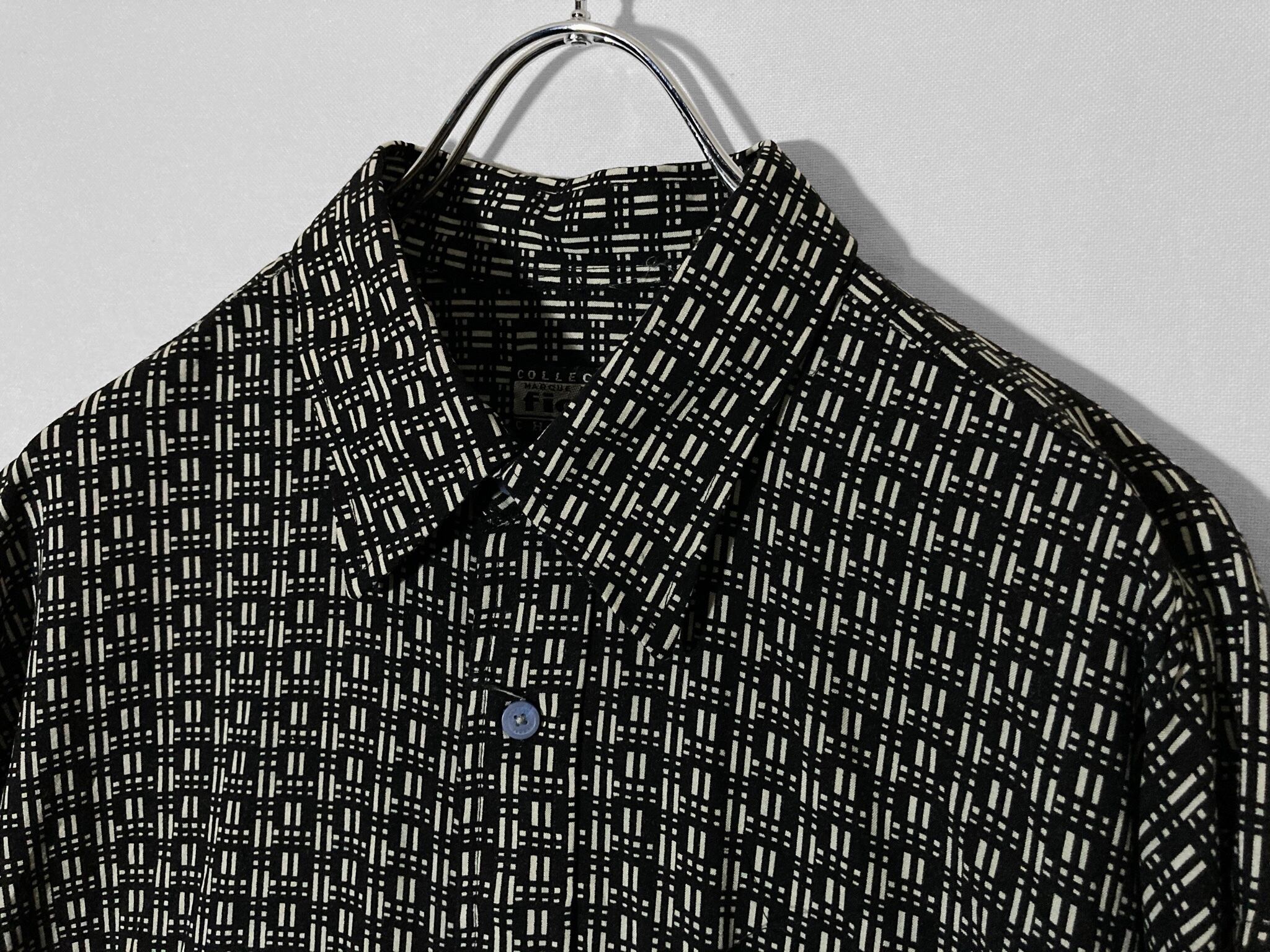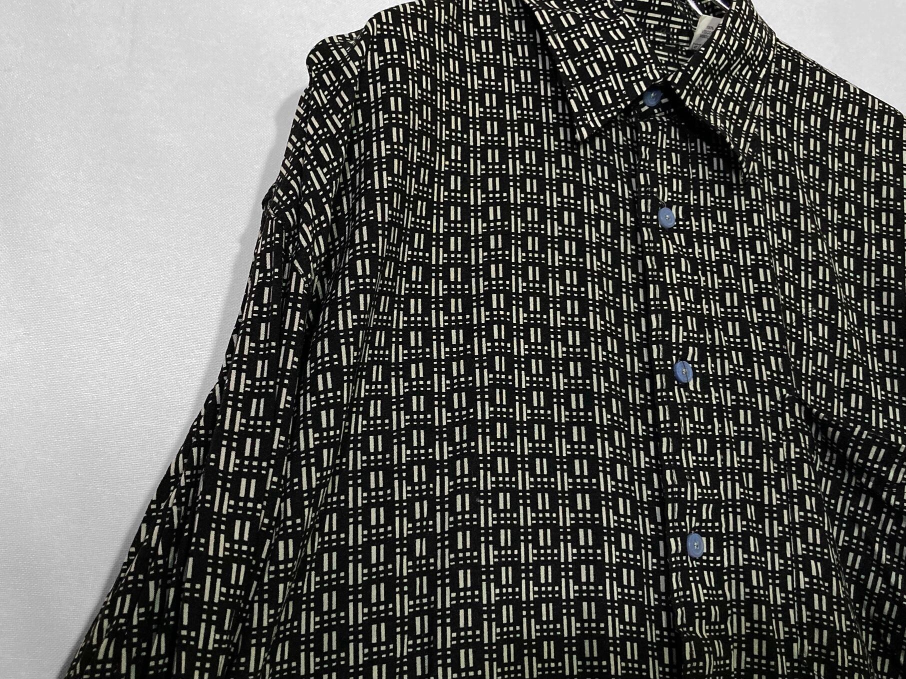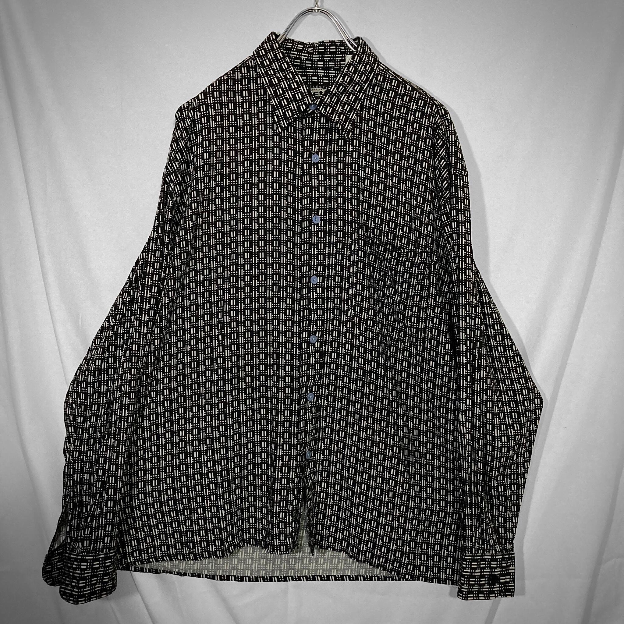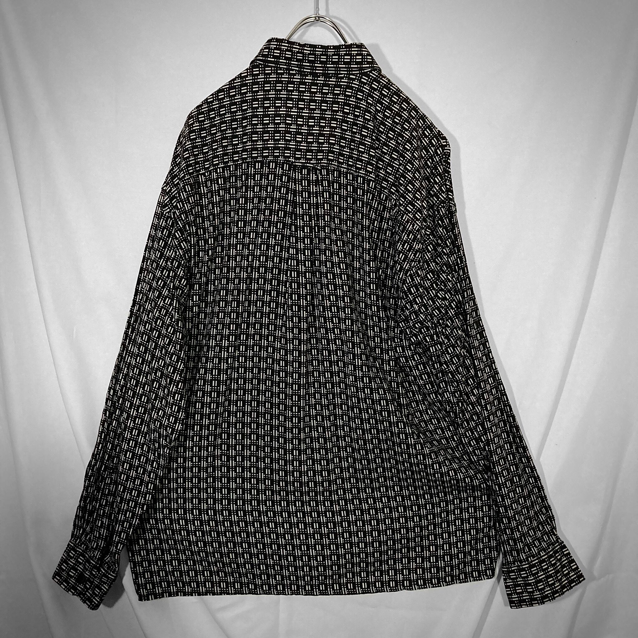 Geometric full pattern design Black × White L/S shirt