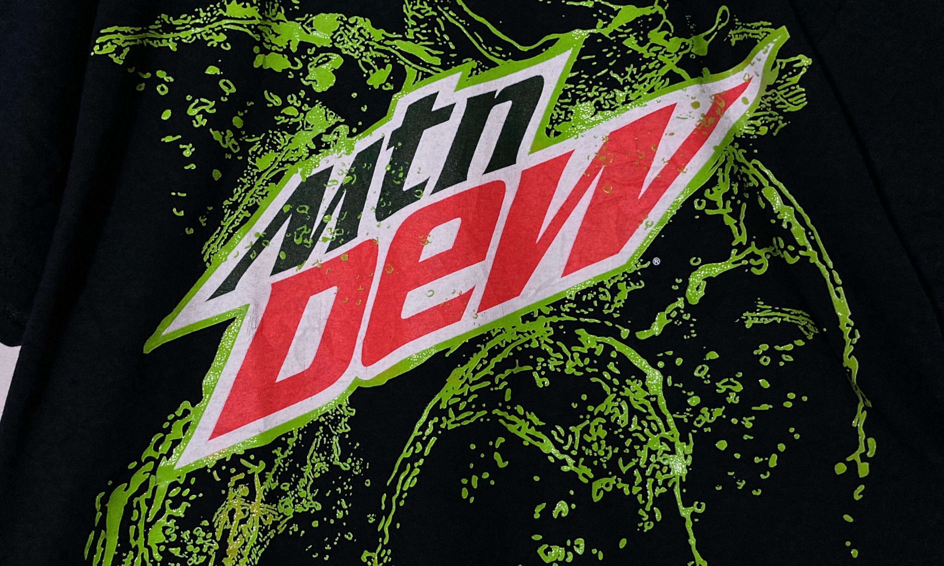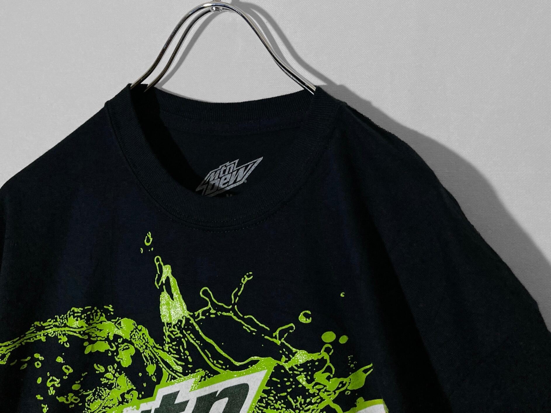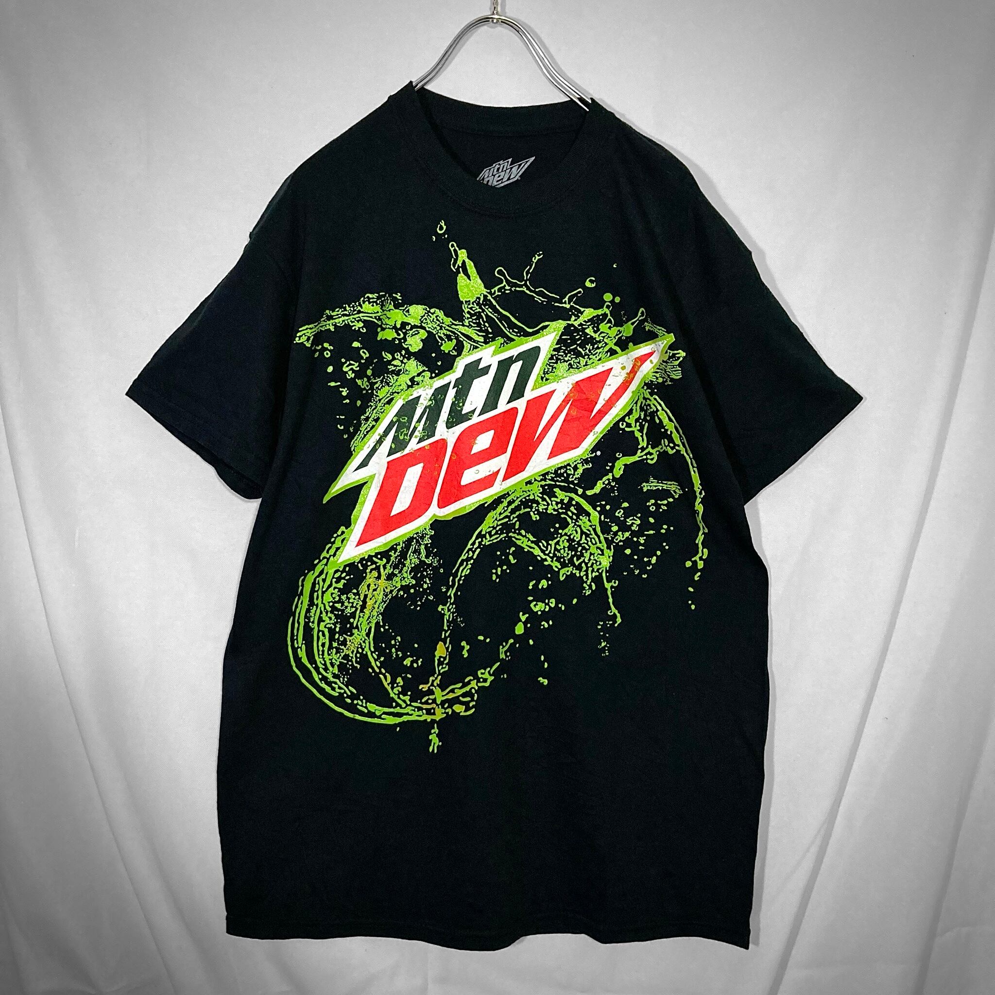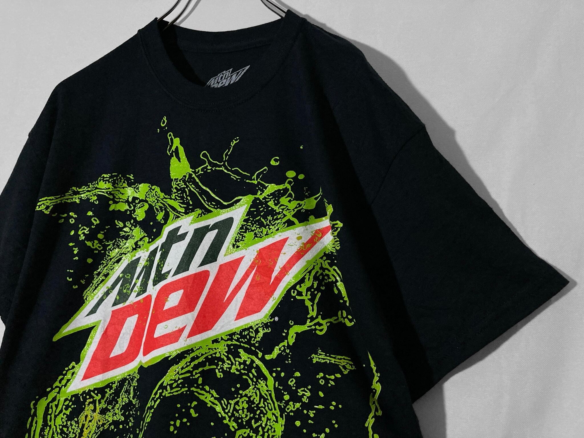 " Mtn Dew " splash logo print design H/S Black Tee