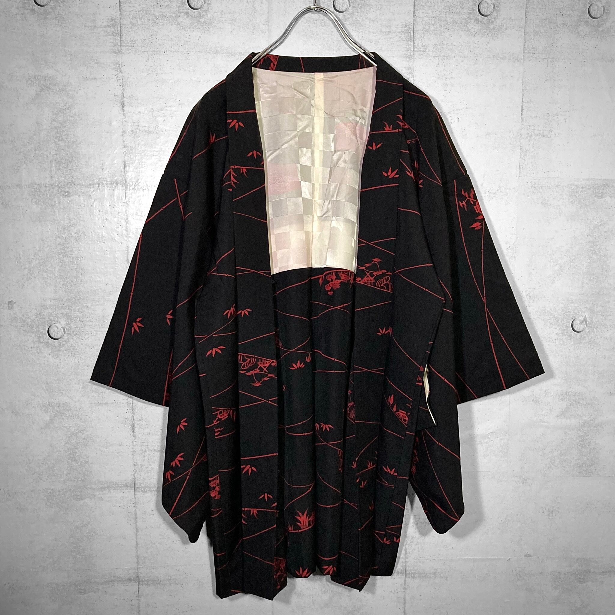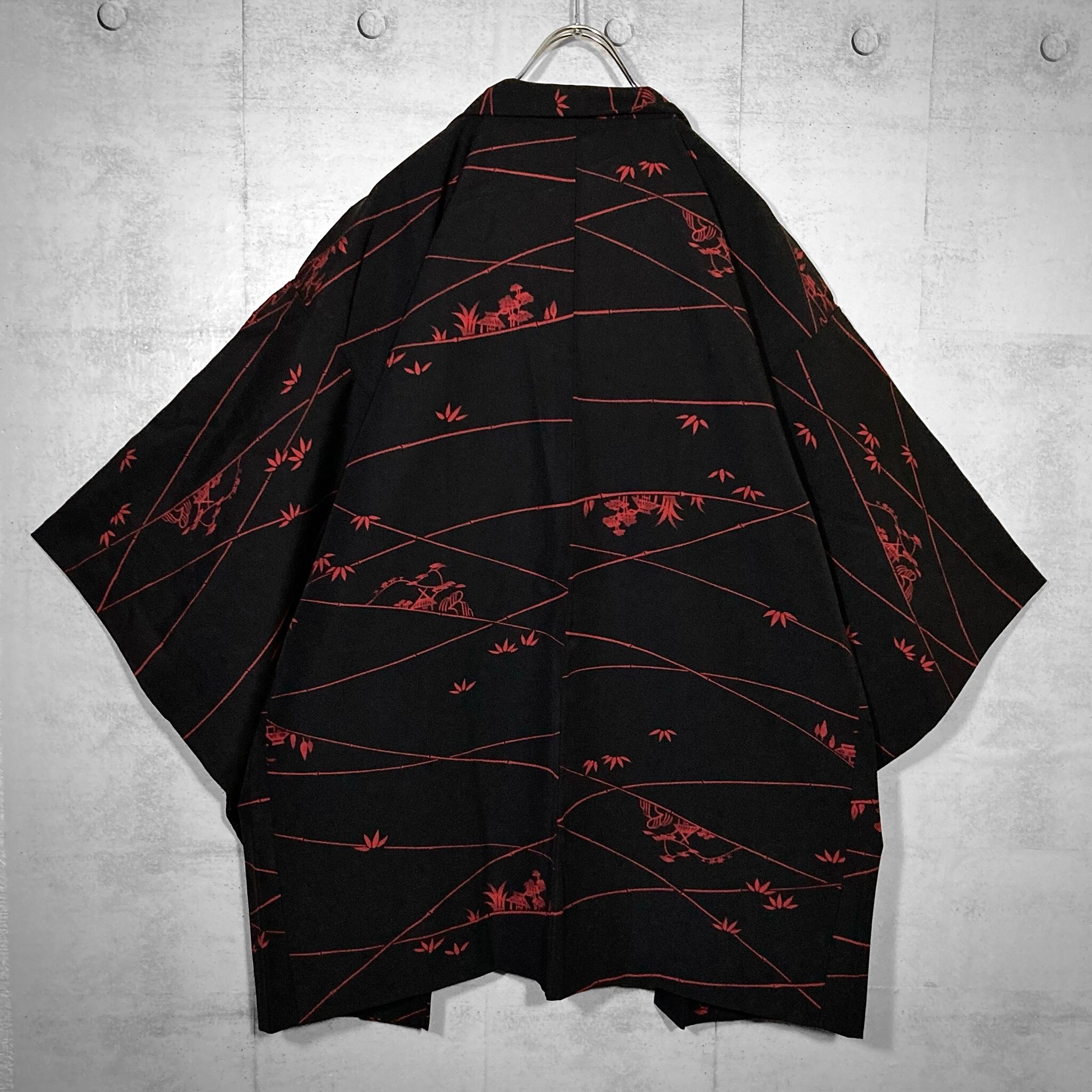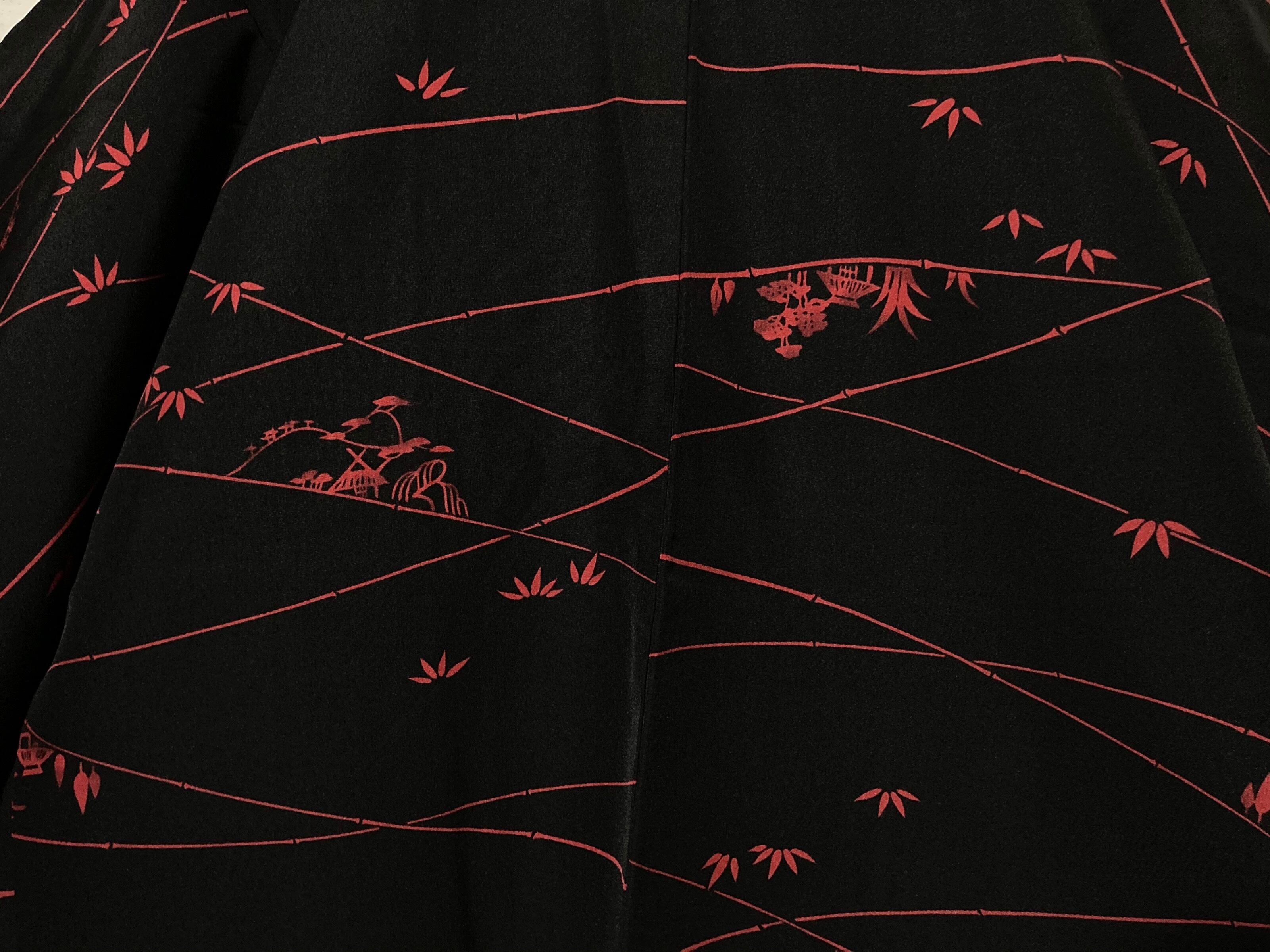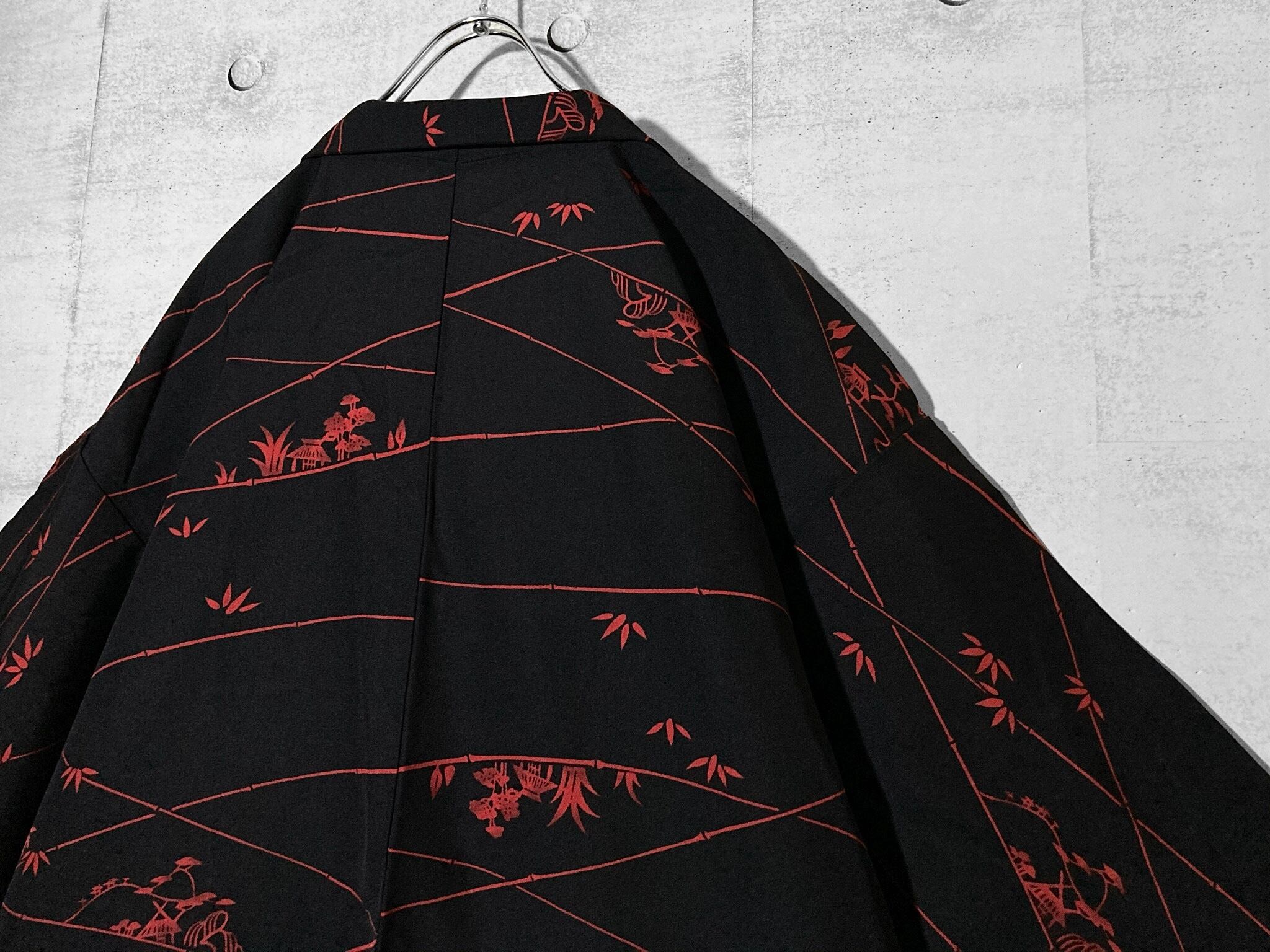 Red bamboo full pattern design Japanese vintage Kuro-Haori