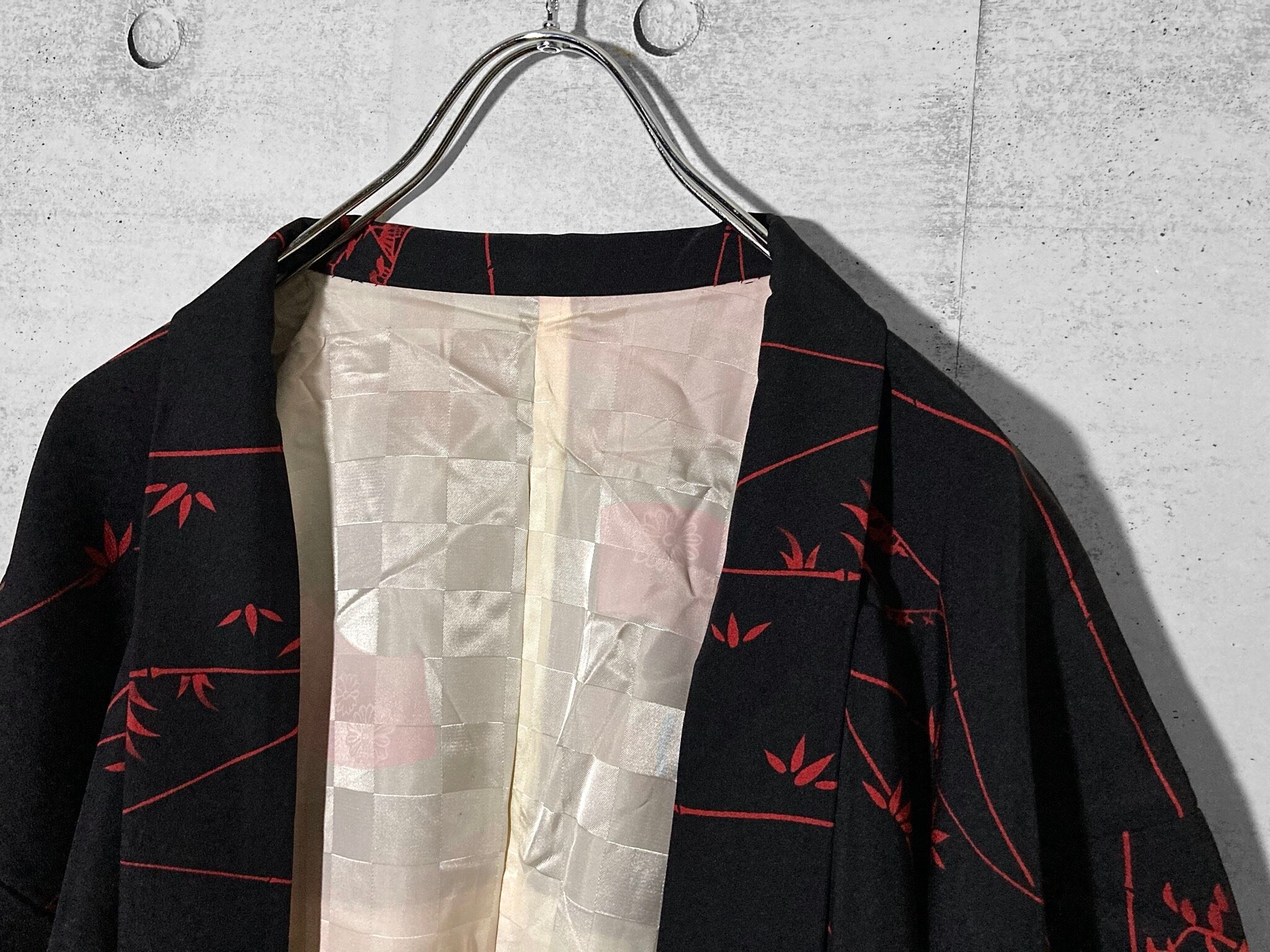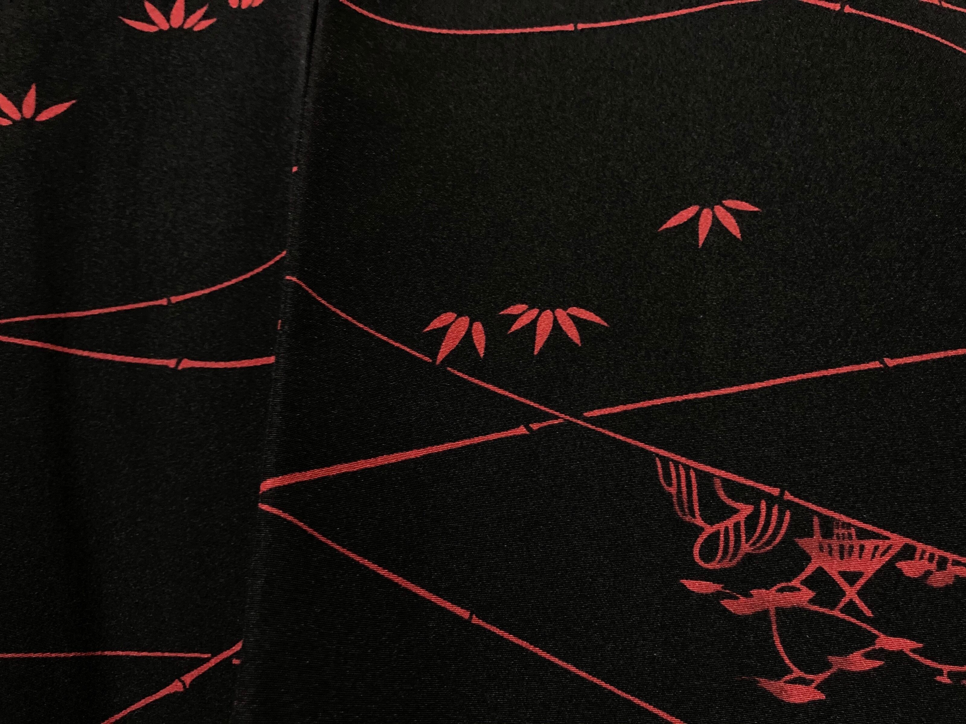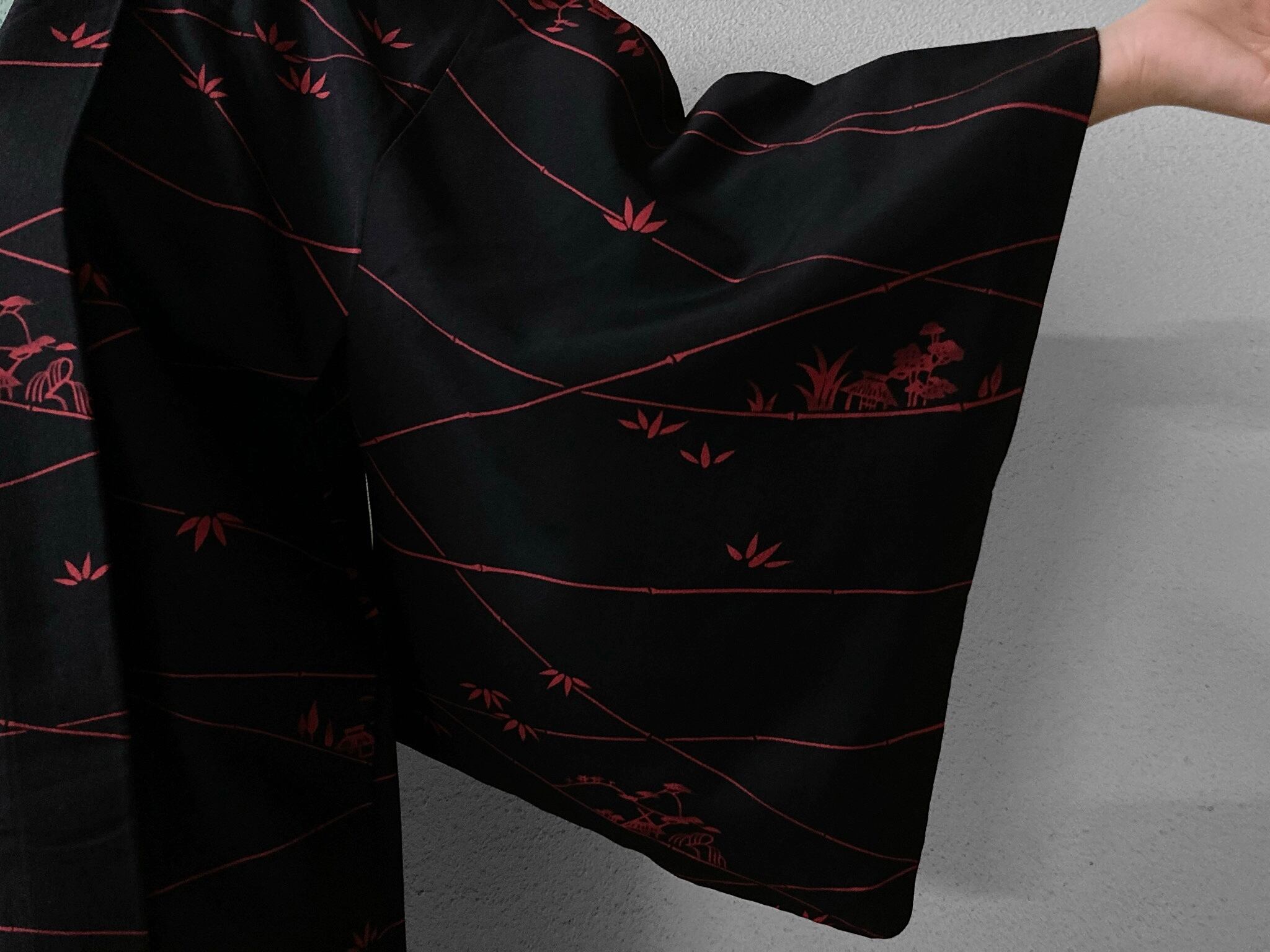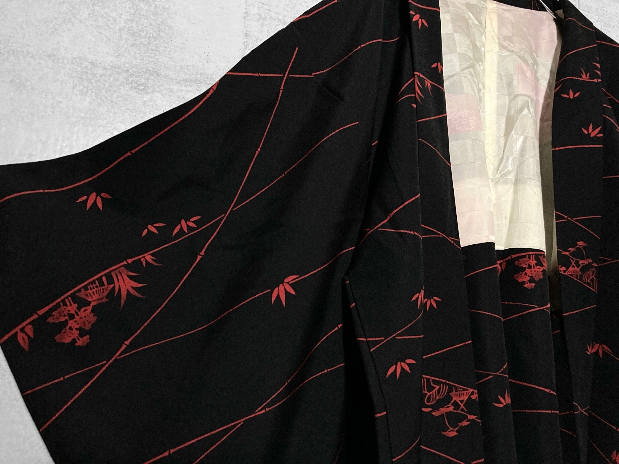 Red bamboo full pattern design Japanese vintage Kuro-Haori