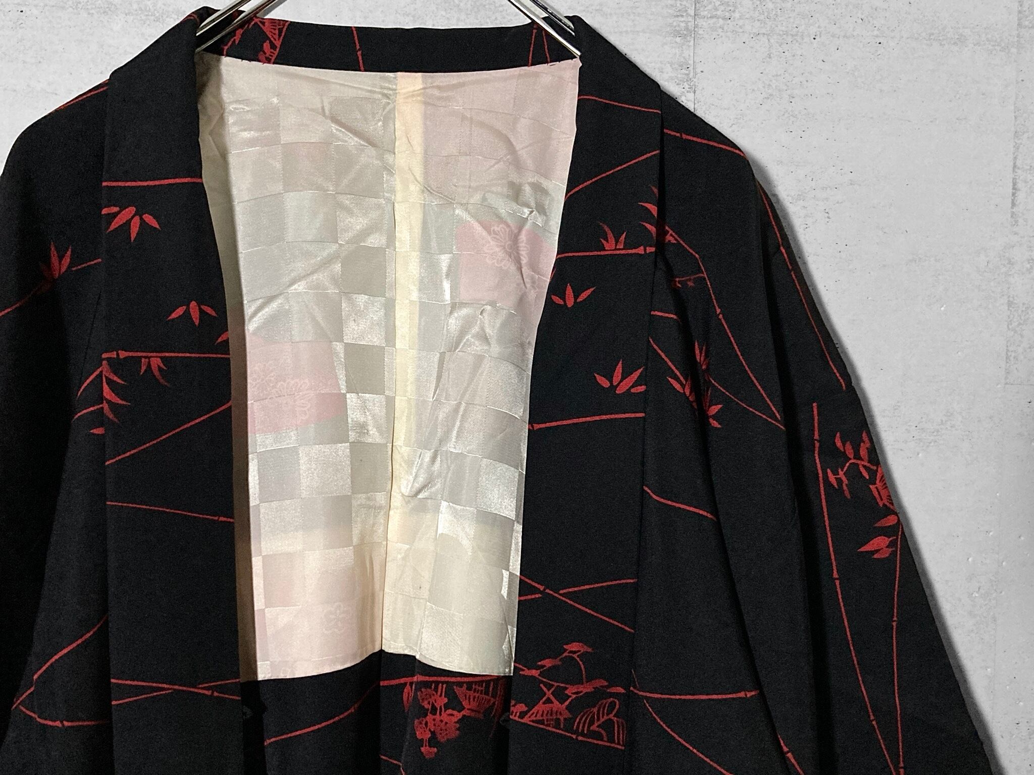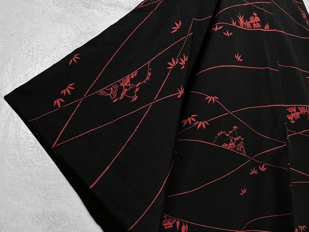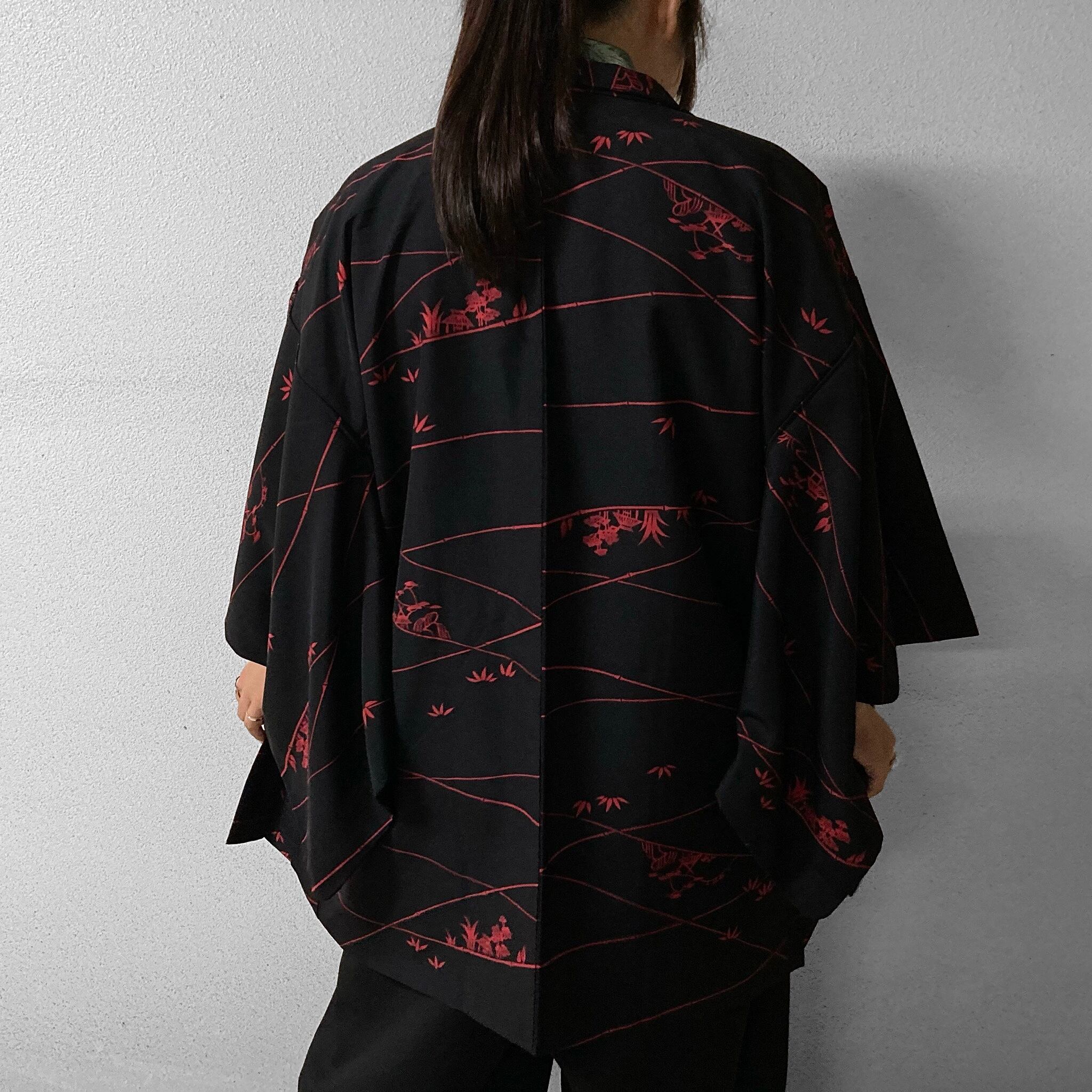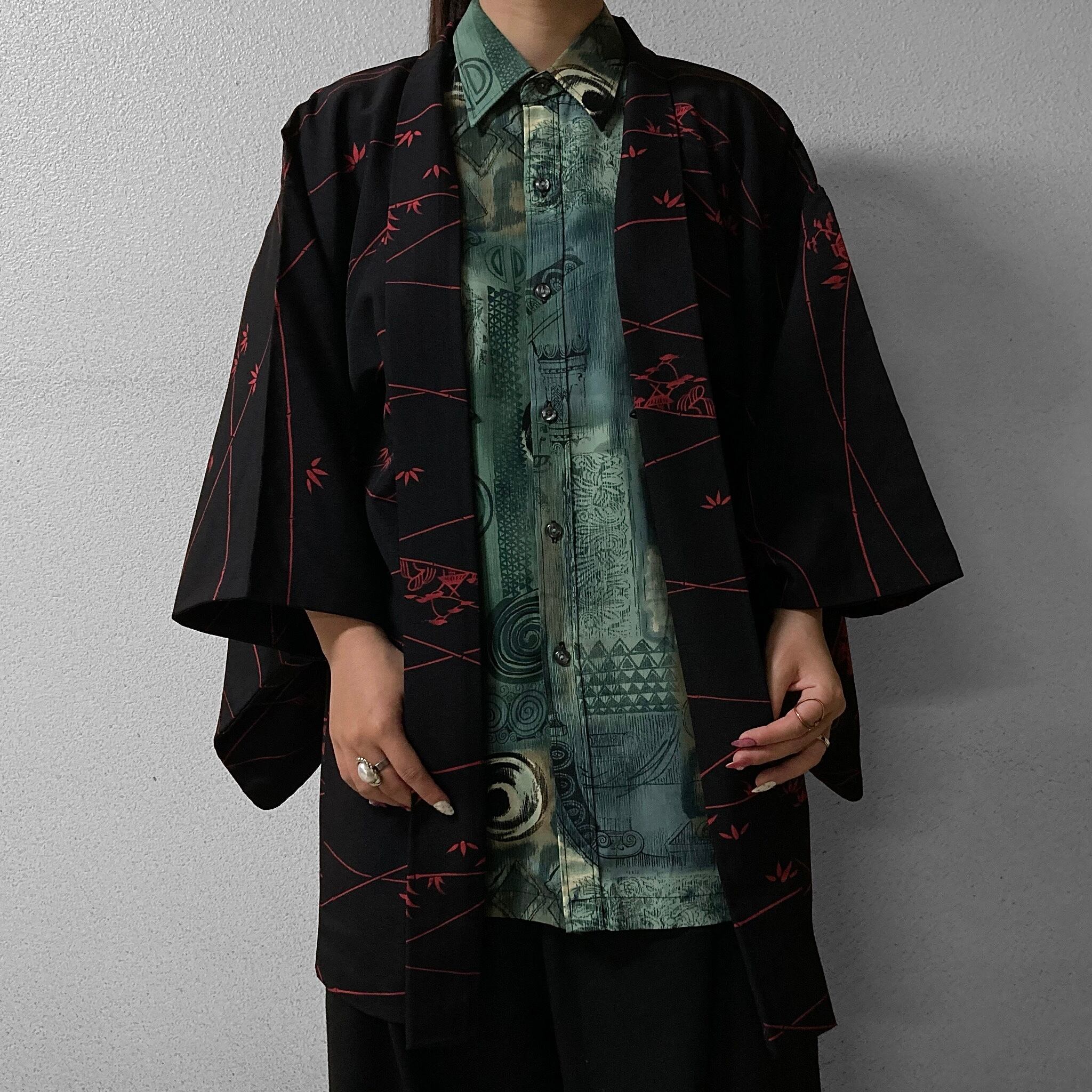 Red bamboo full pattern design Japanese vintage Kuro-Haori