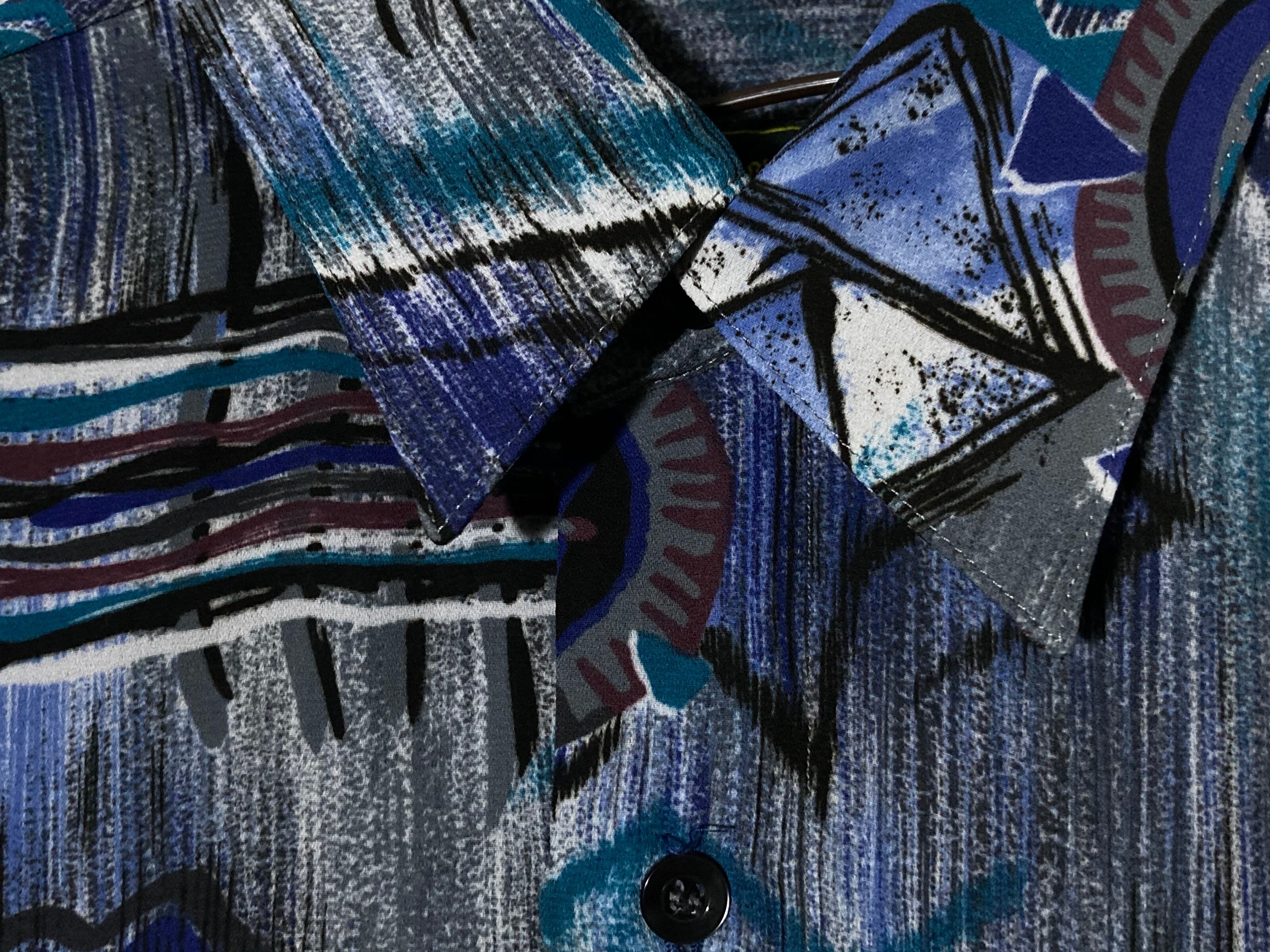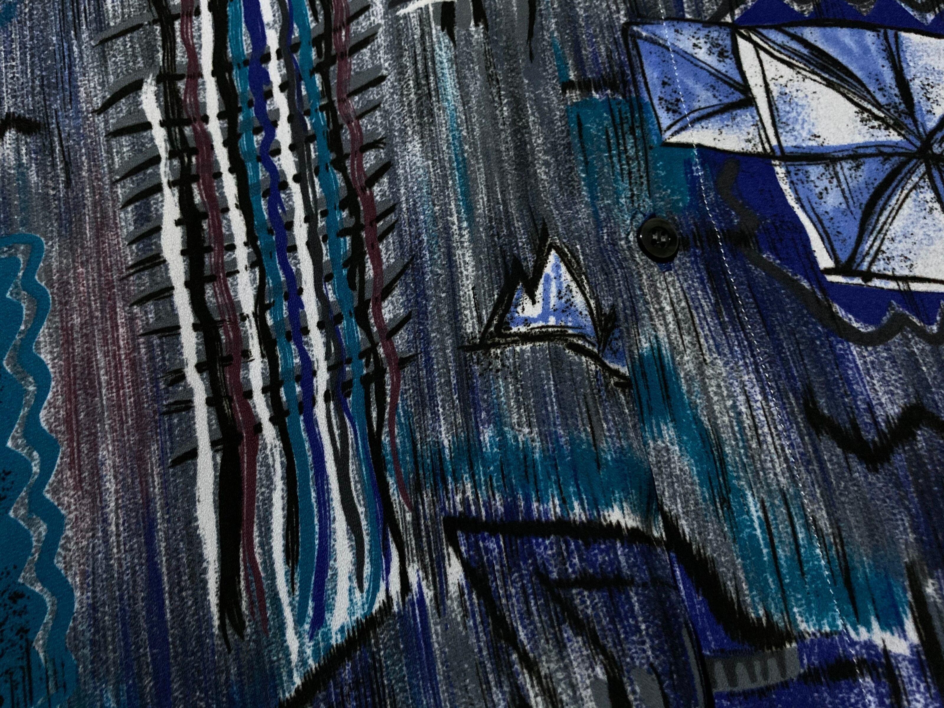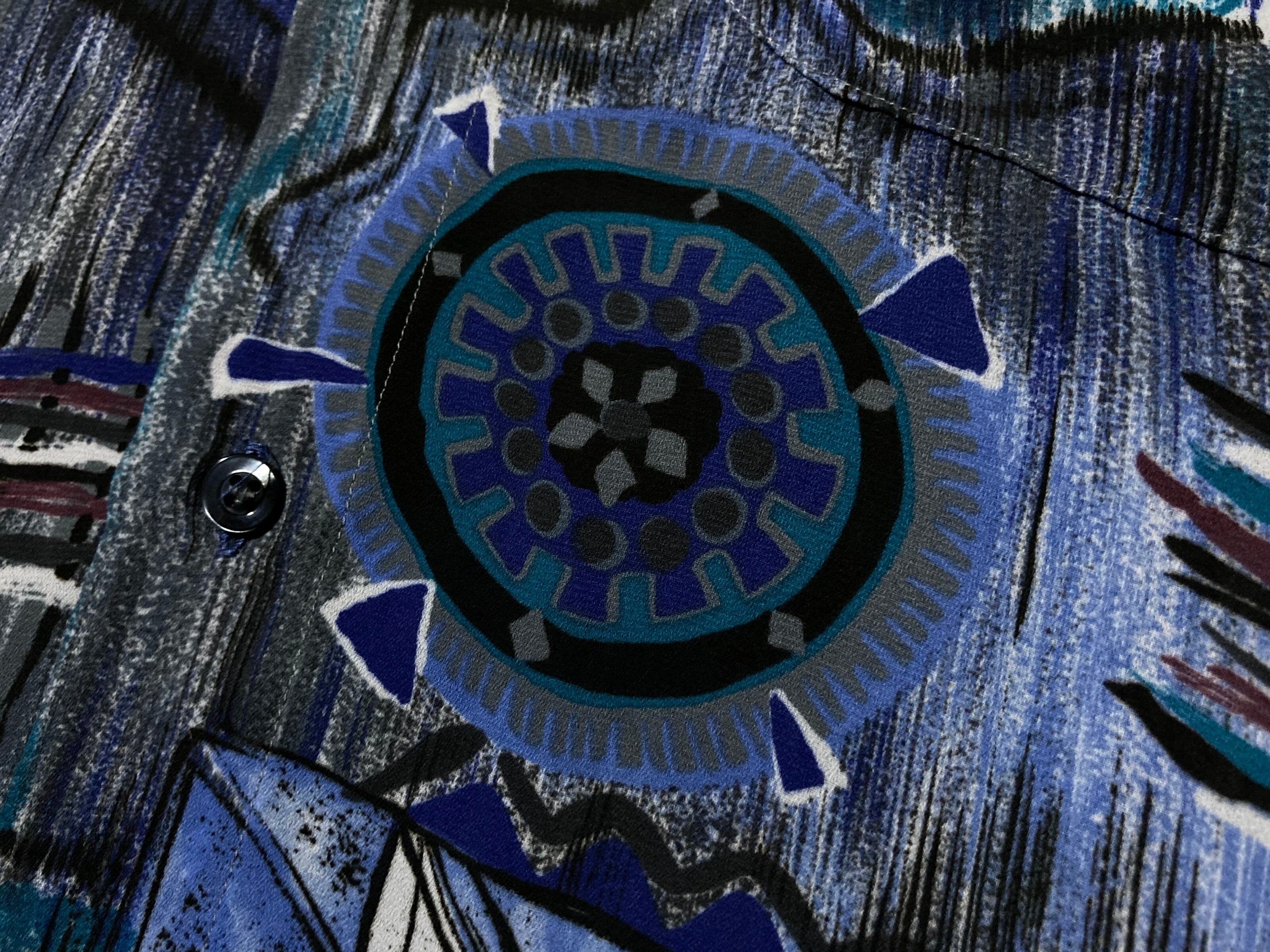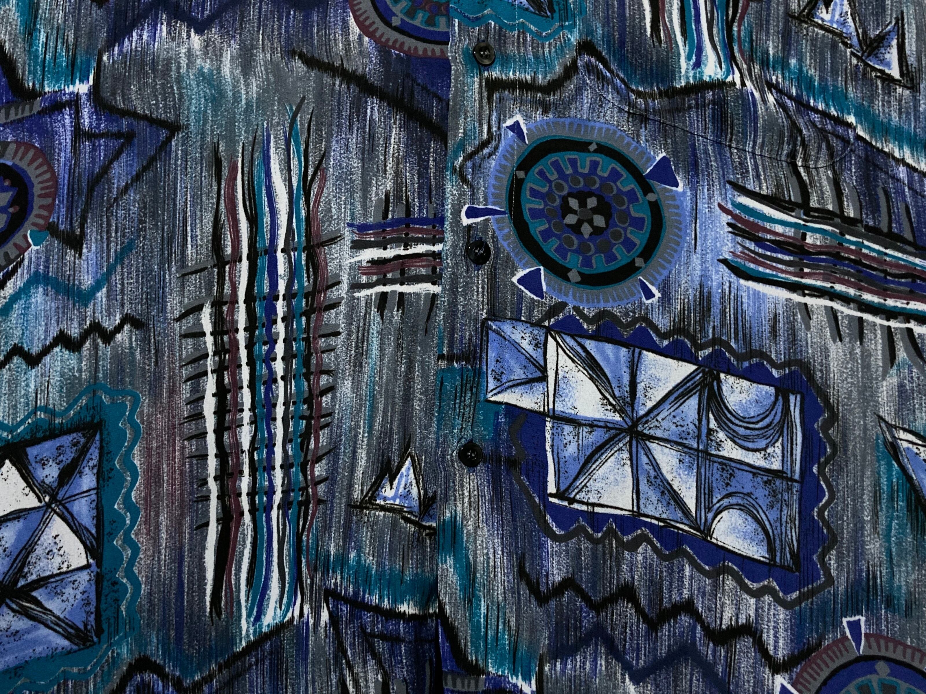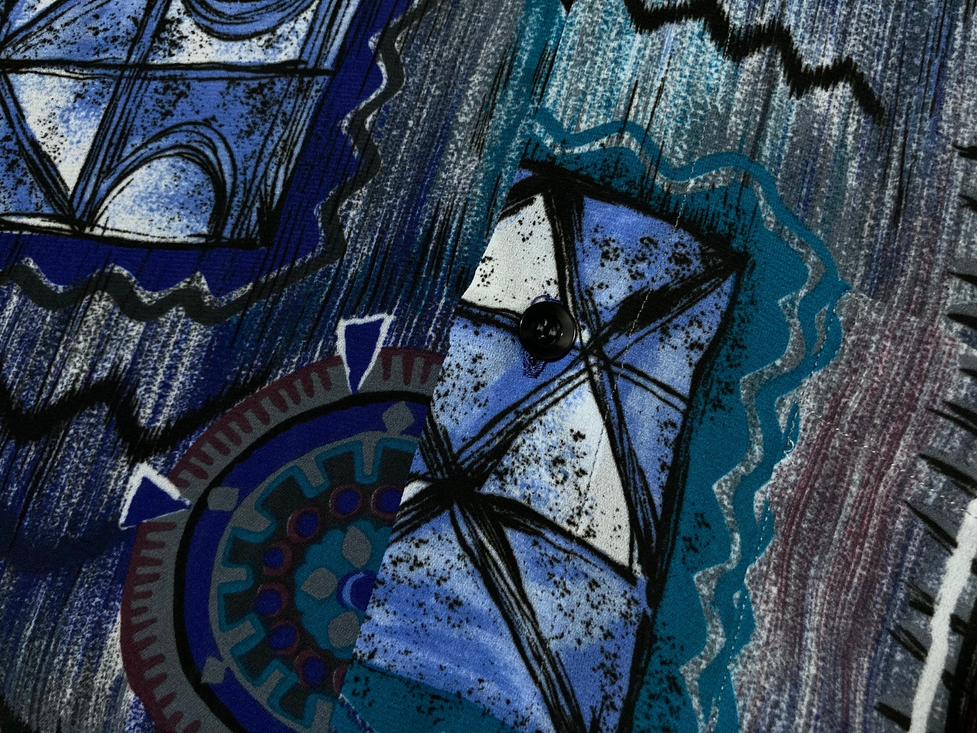 XXL 群青 Deep blue tone Abstract painting pattern all over design H/S shirt