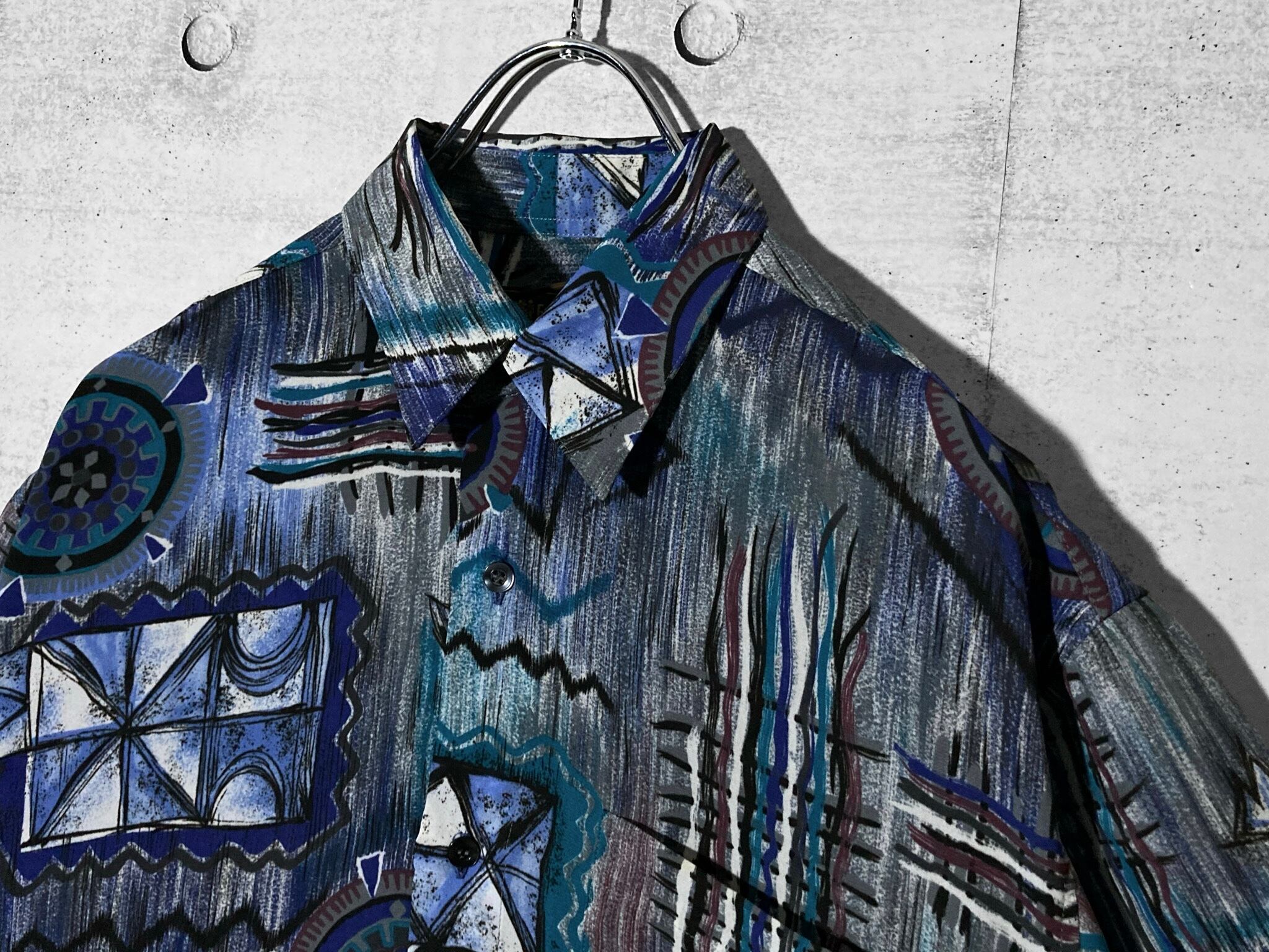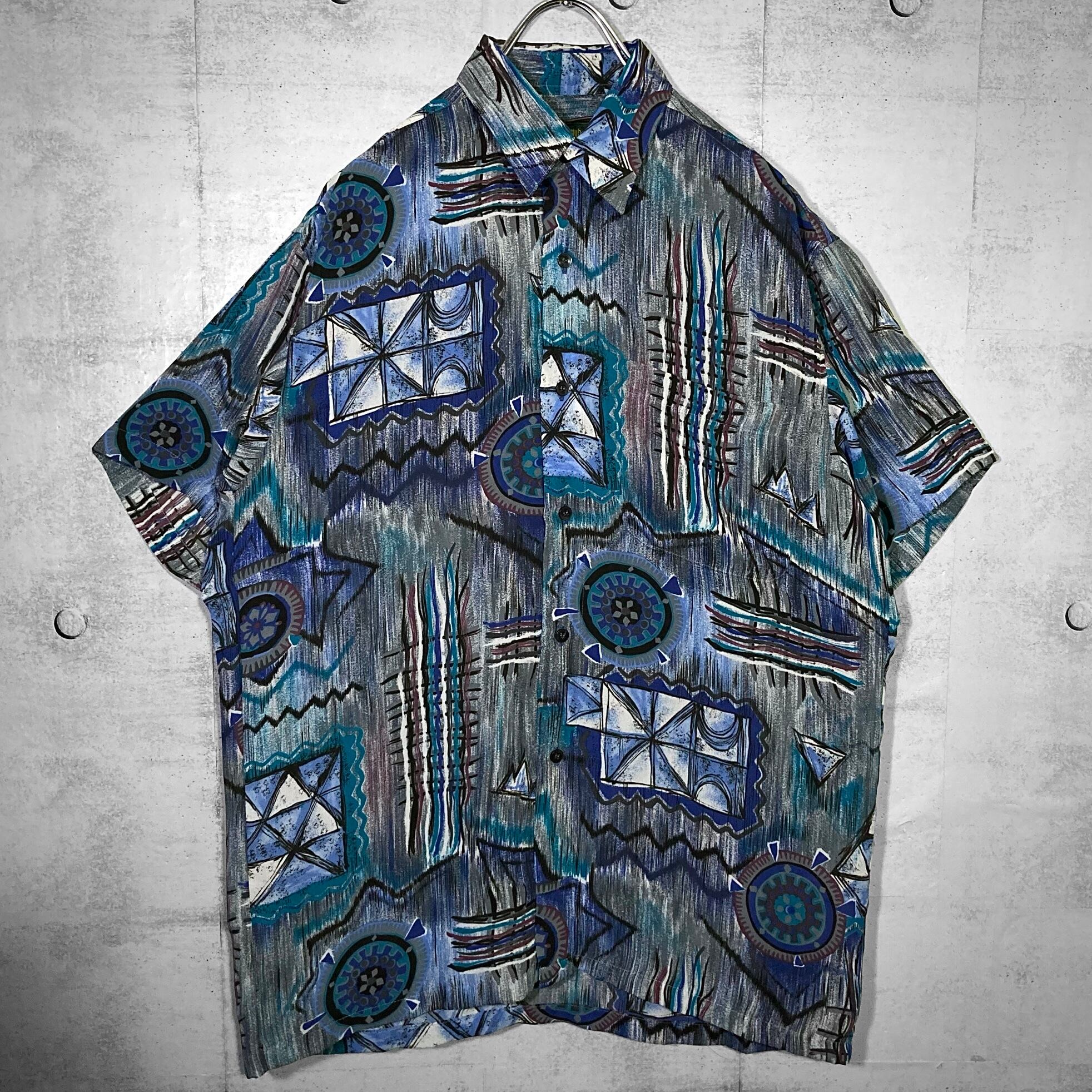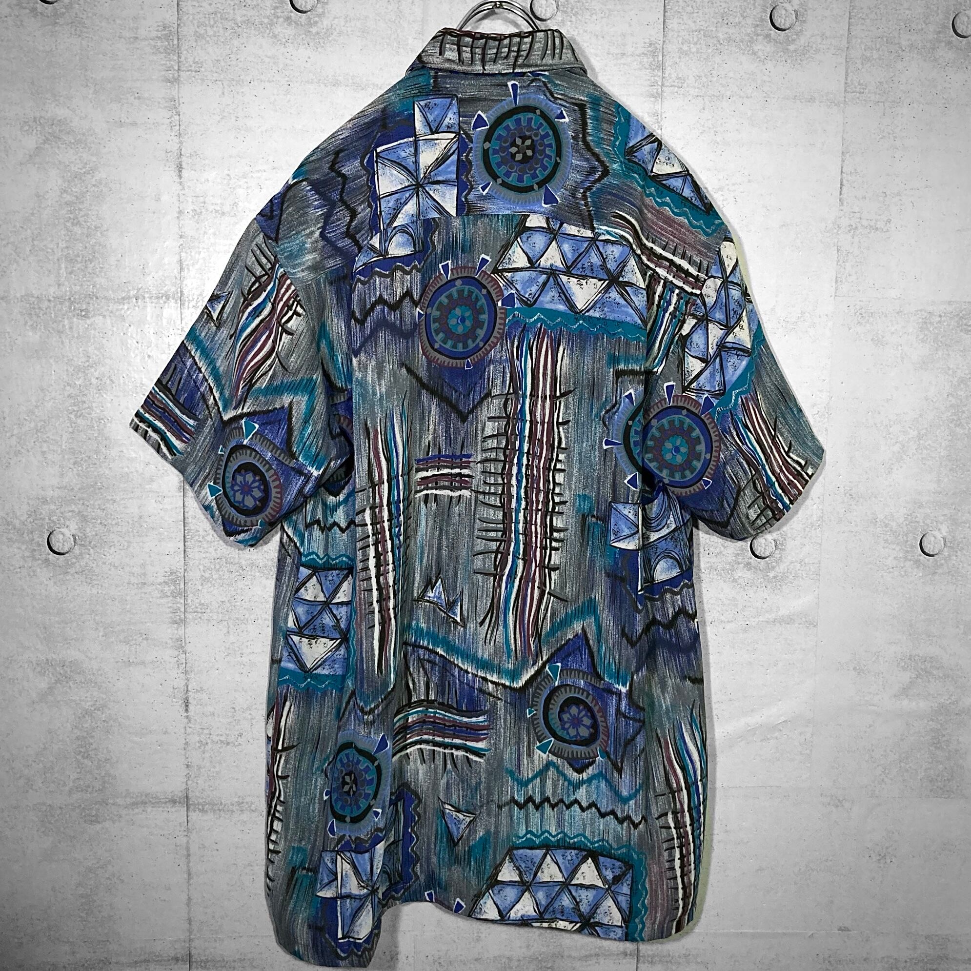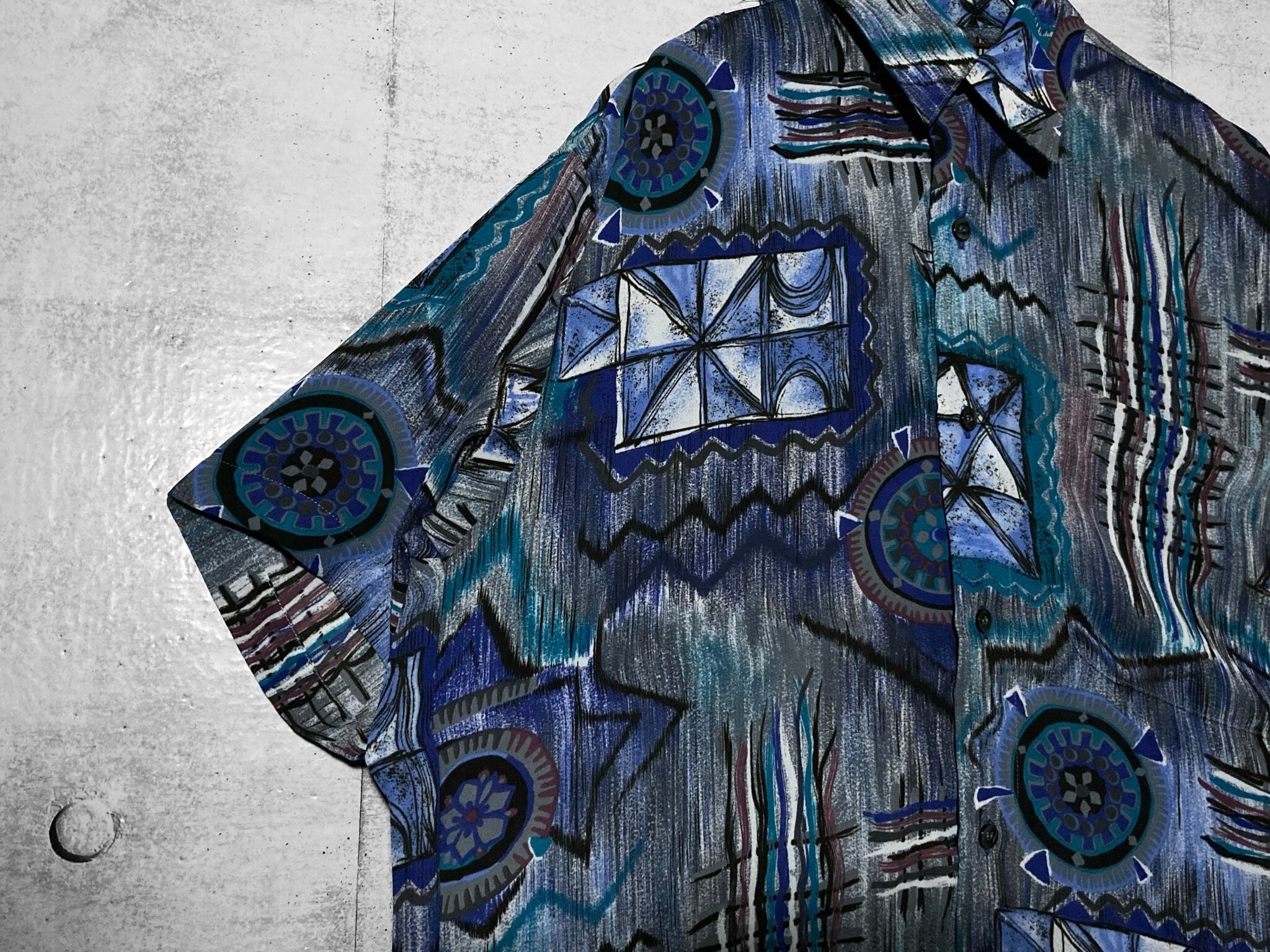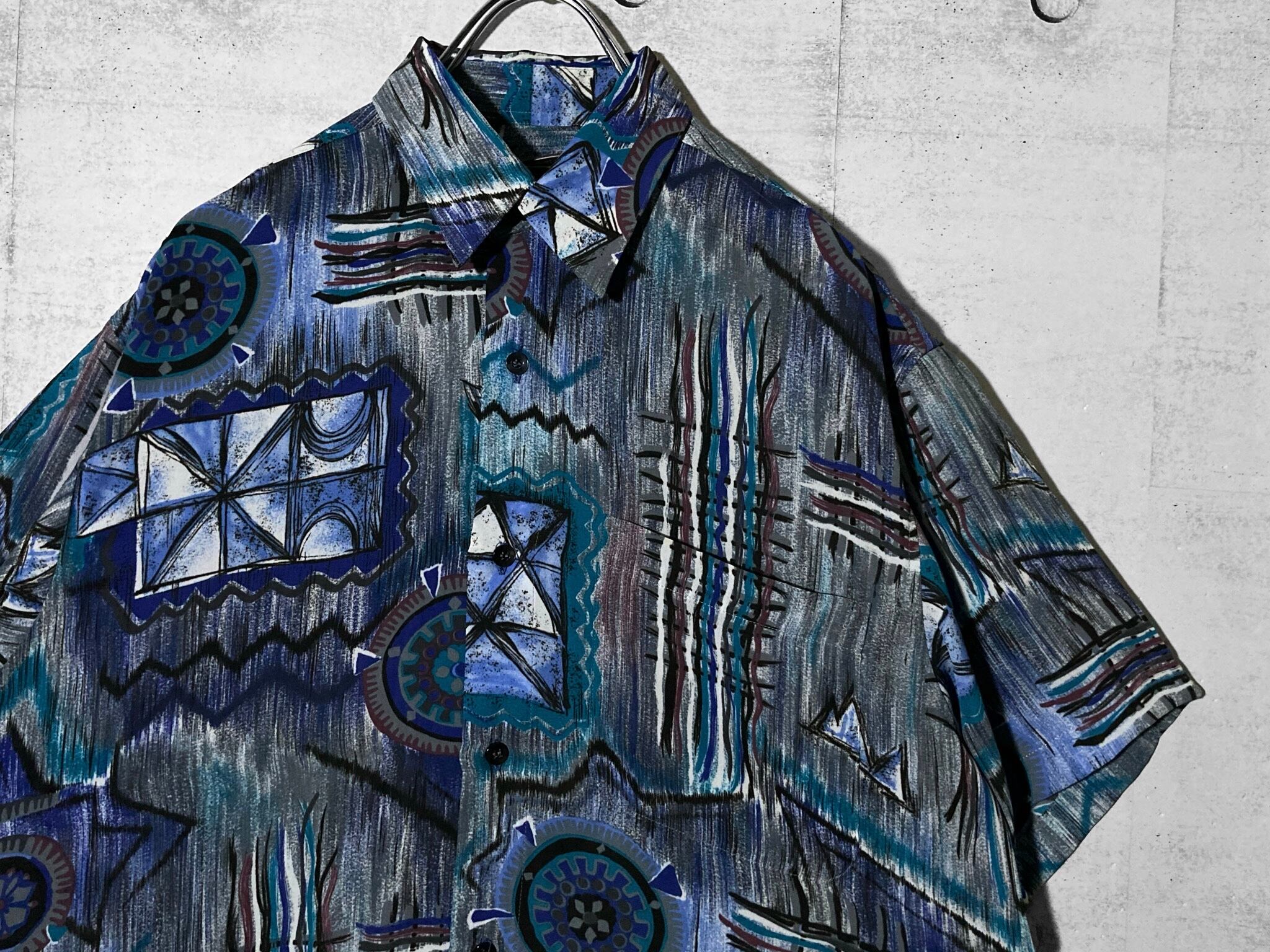 XXL 群青 Deep blue tone Abstract painting pattern all over design H/S shirt