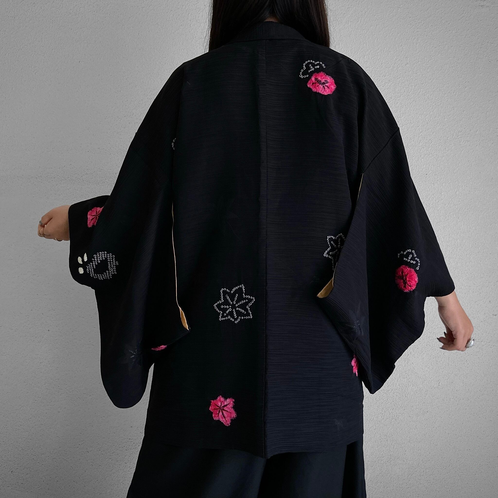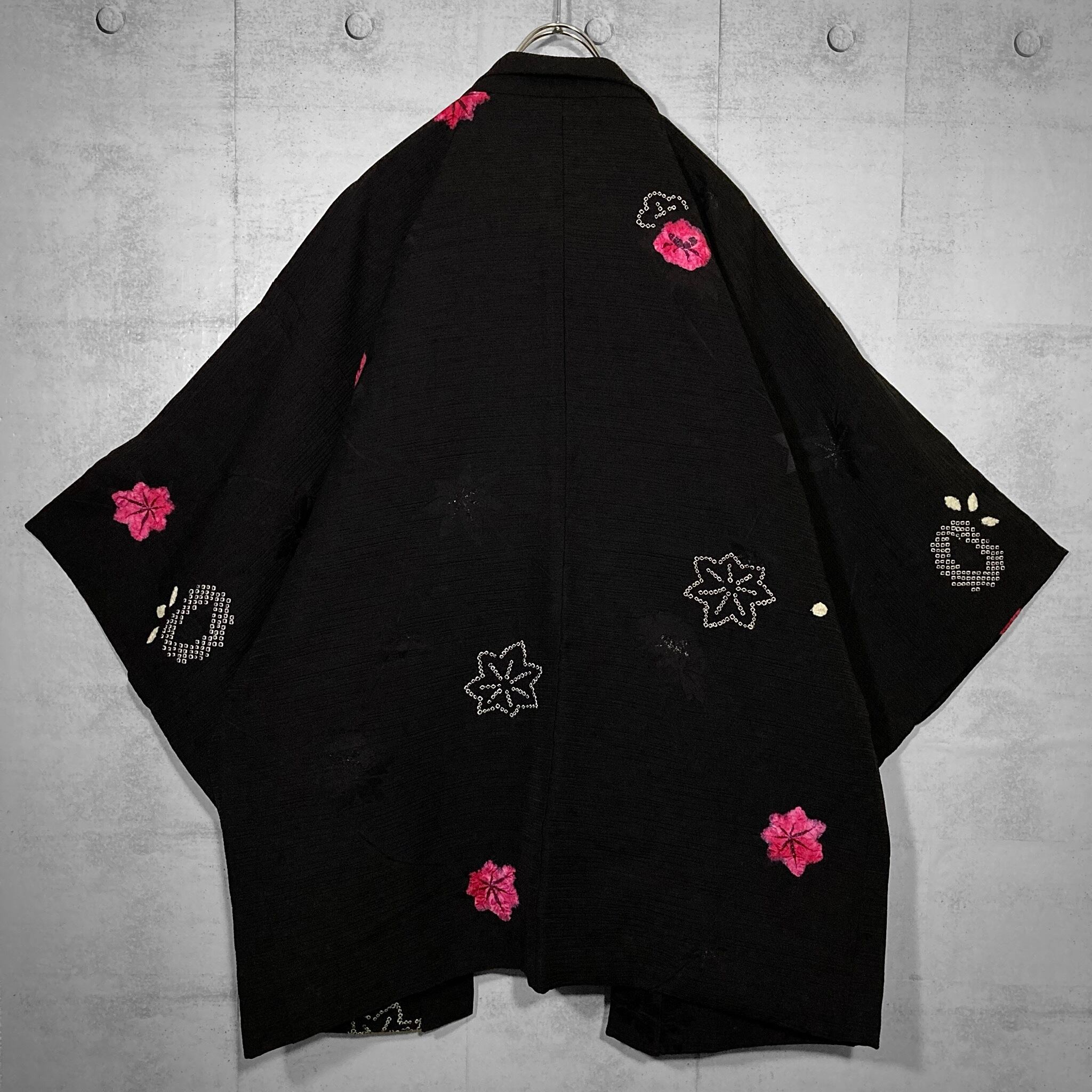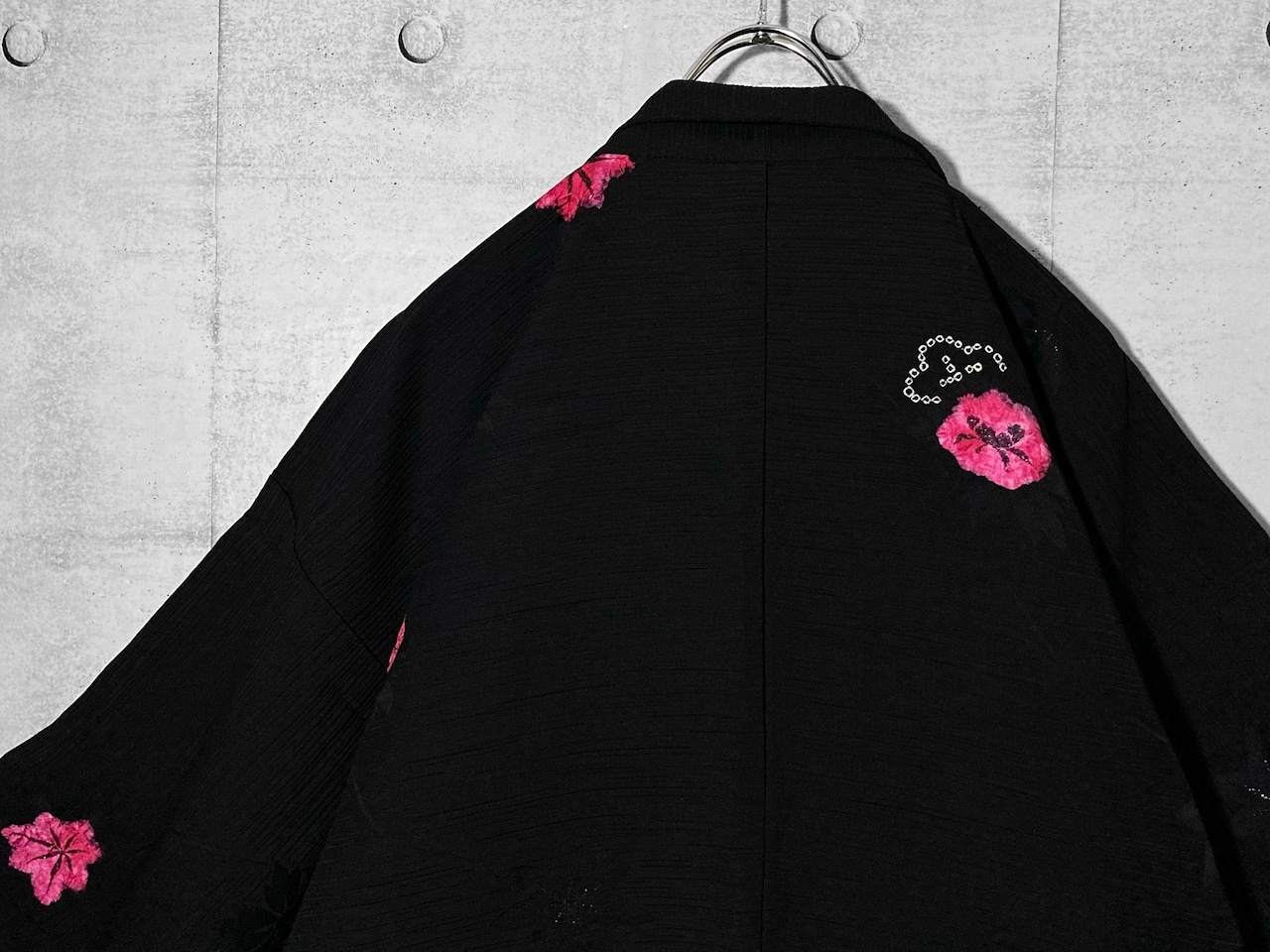 華朧 Flower print pattern design Japanese vintage Kuro-Haori