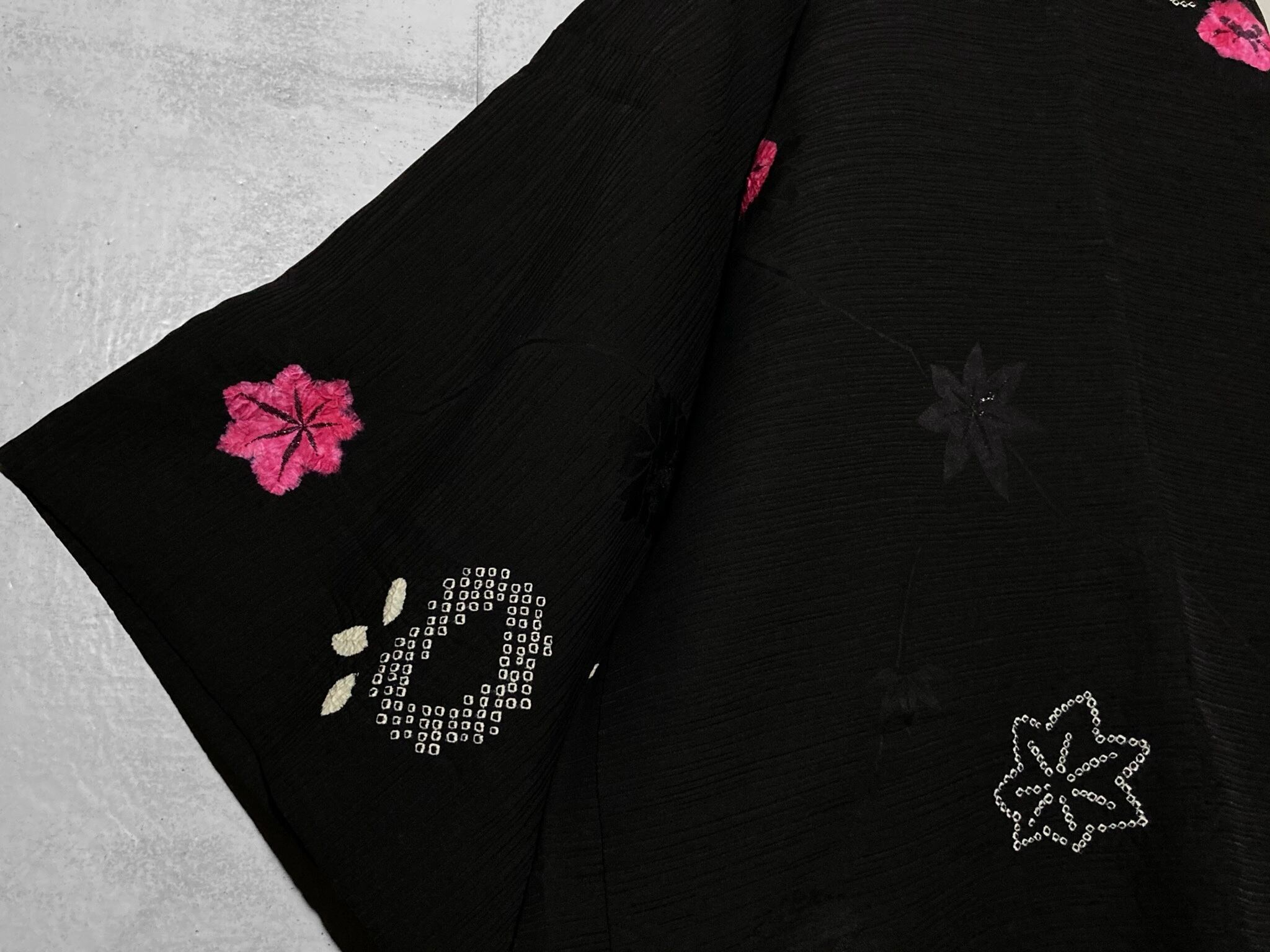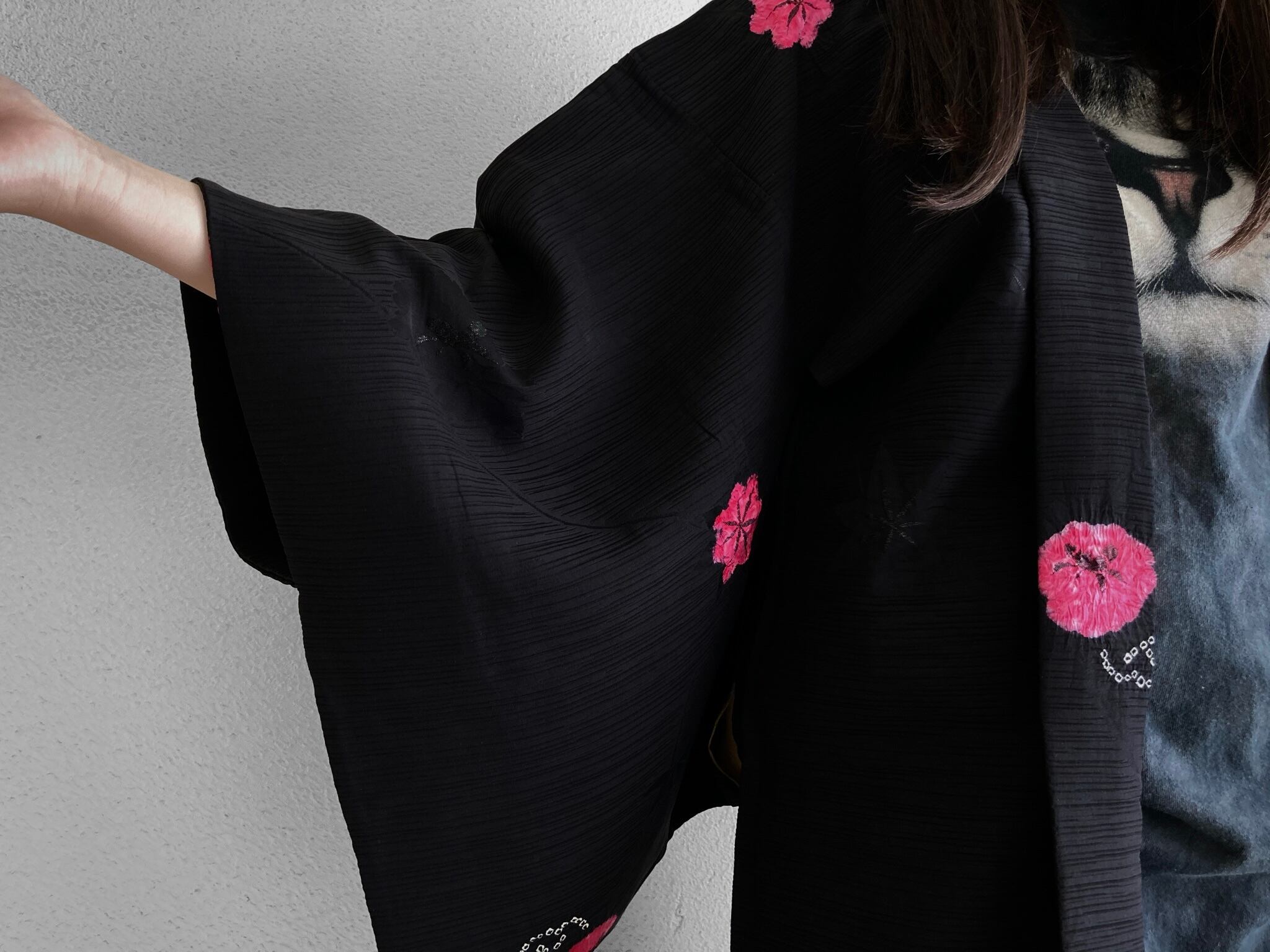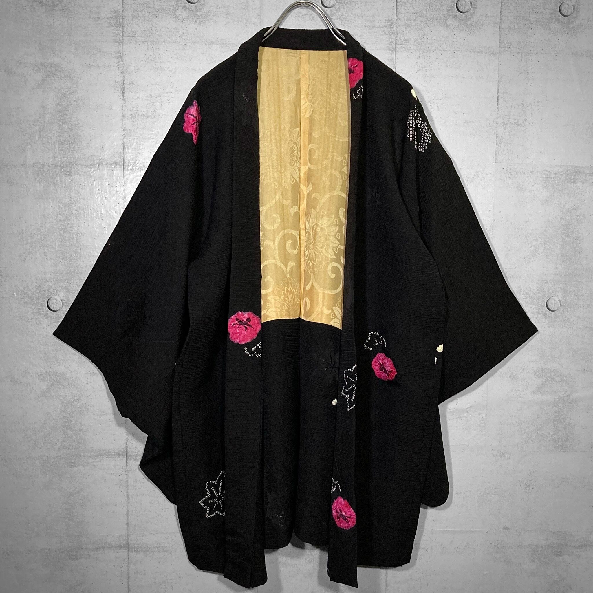華朧 Flower print pattern design Japanese vintage Kuro-Haori