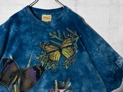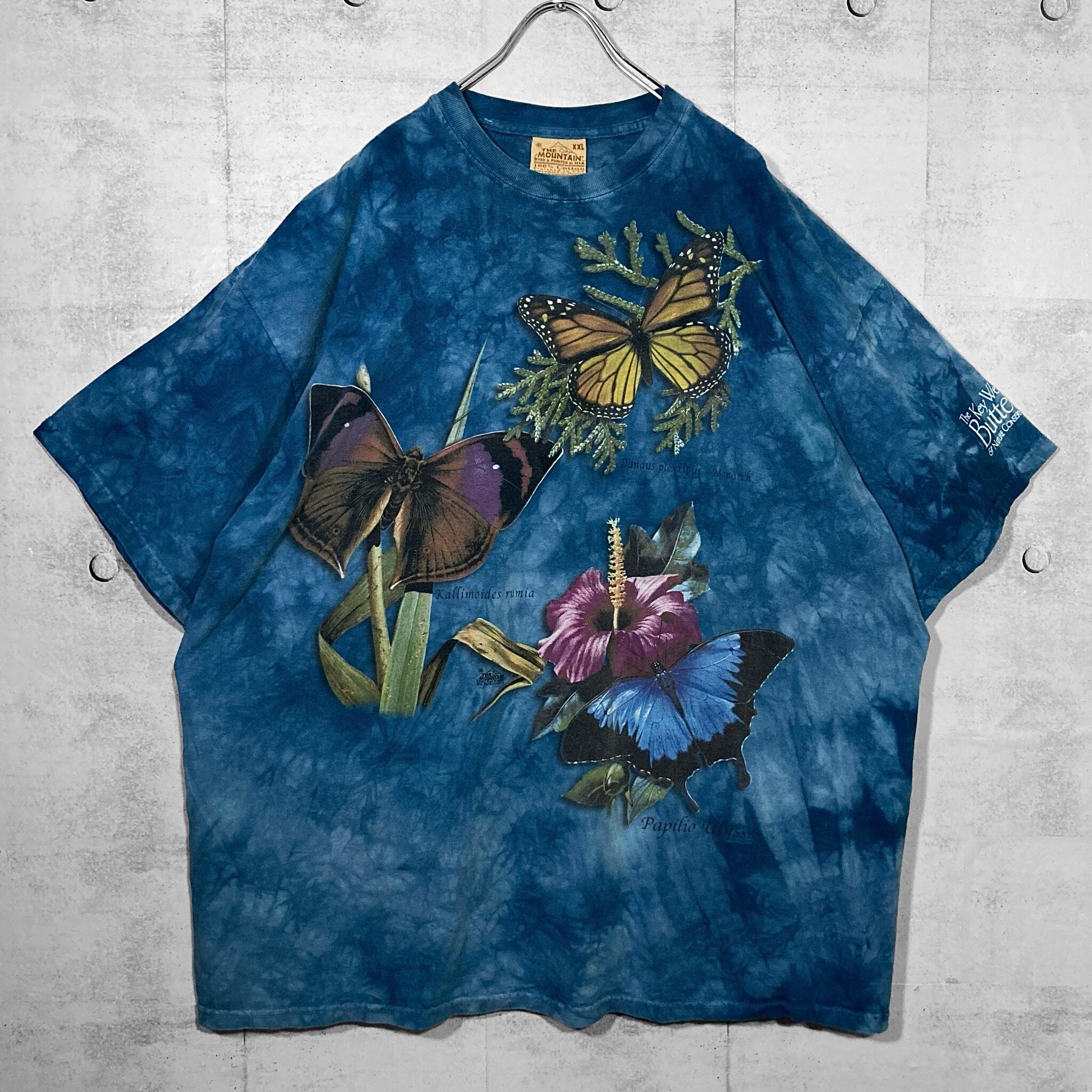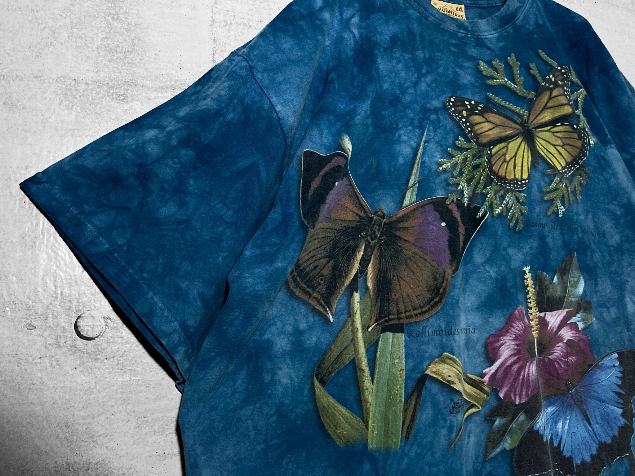 花に誘われてく蝶 XXL size Butterfly print pattern design H/S Tye-dye Tee