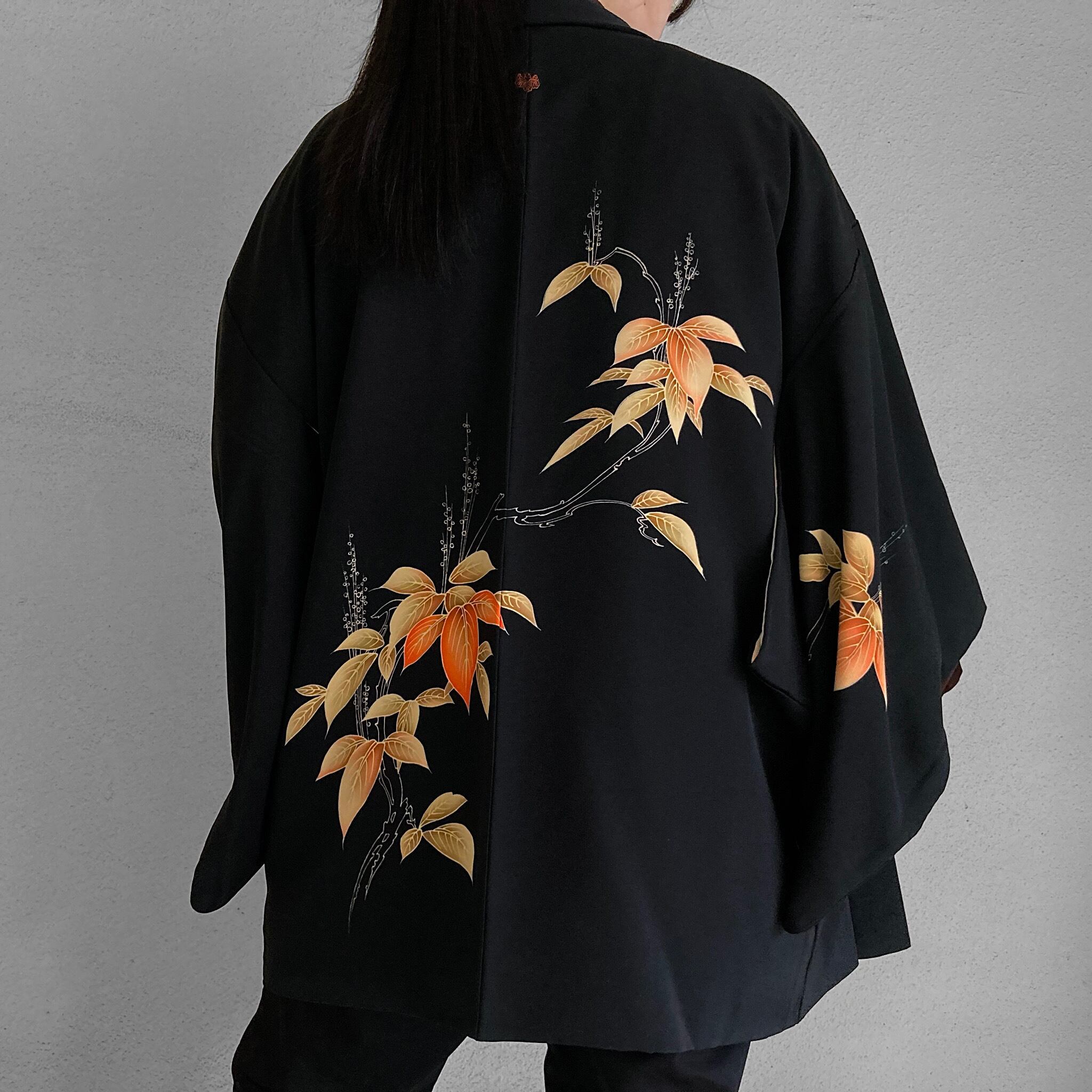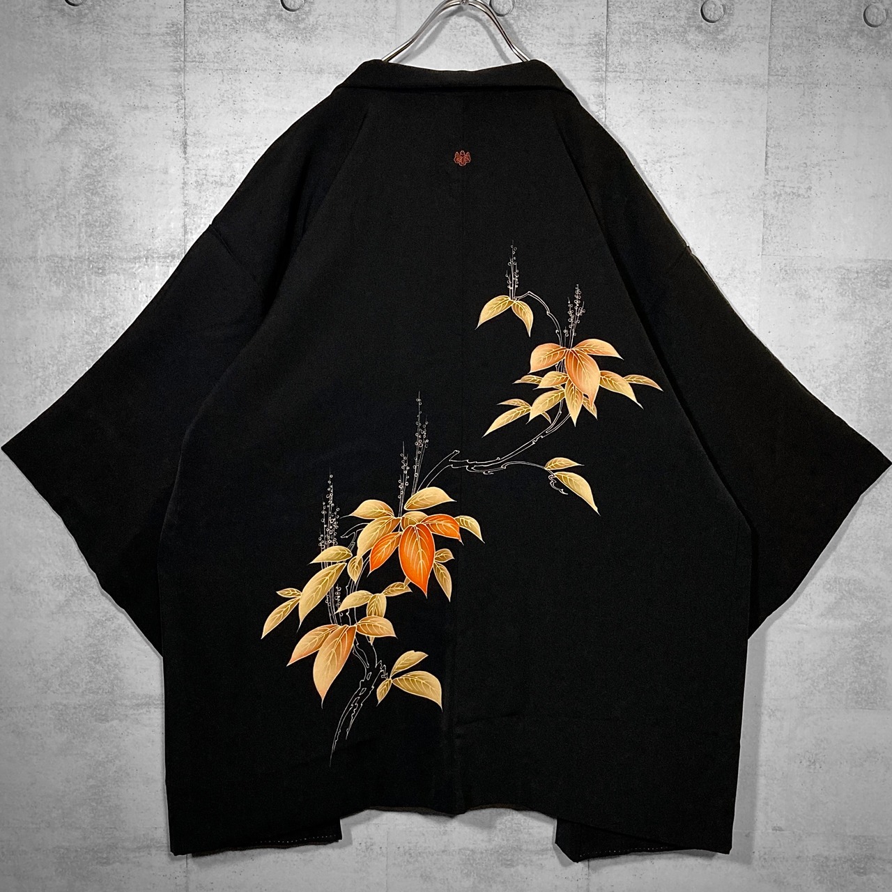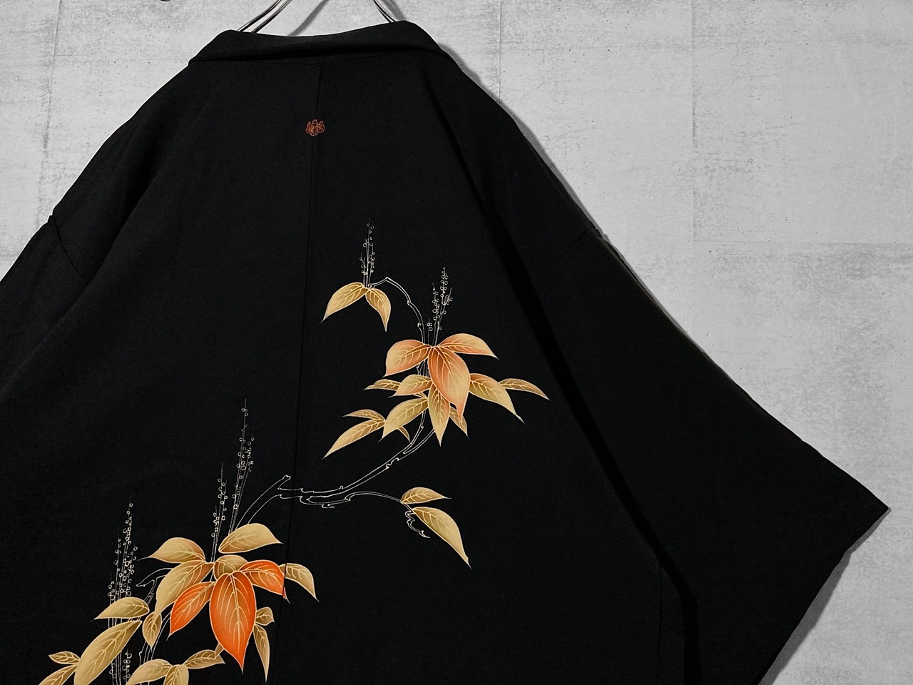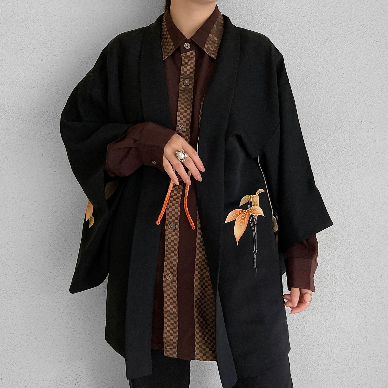 夕色 Evening color leaves print pattern design Japanese vintage Black haori