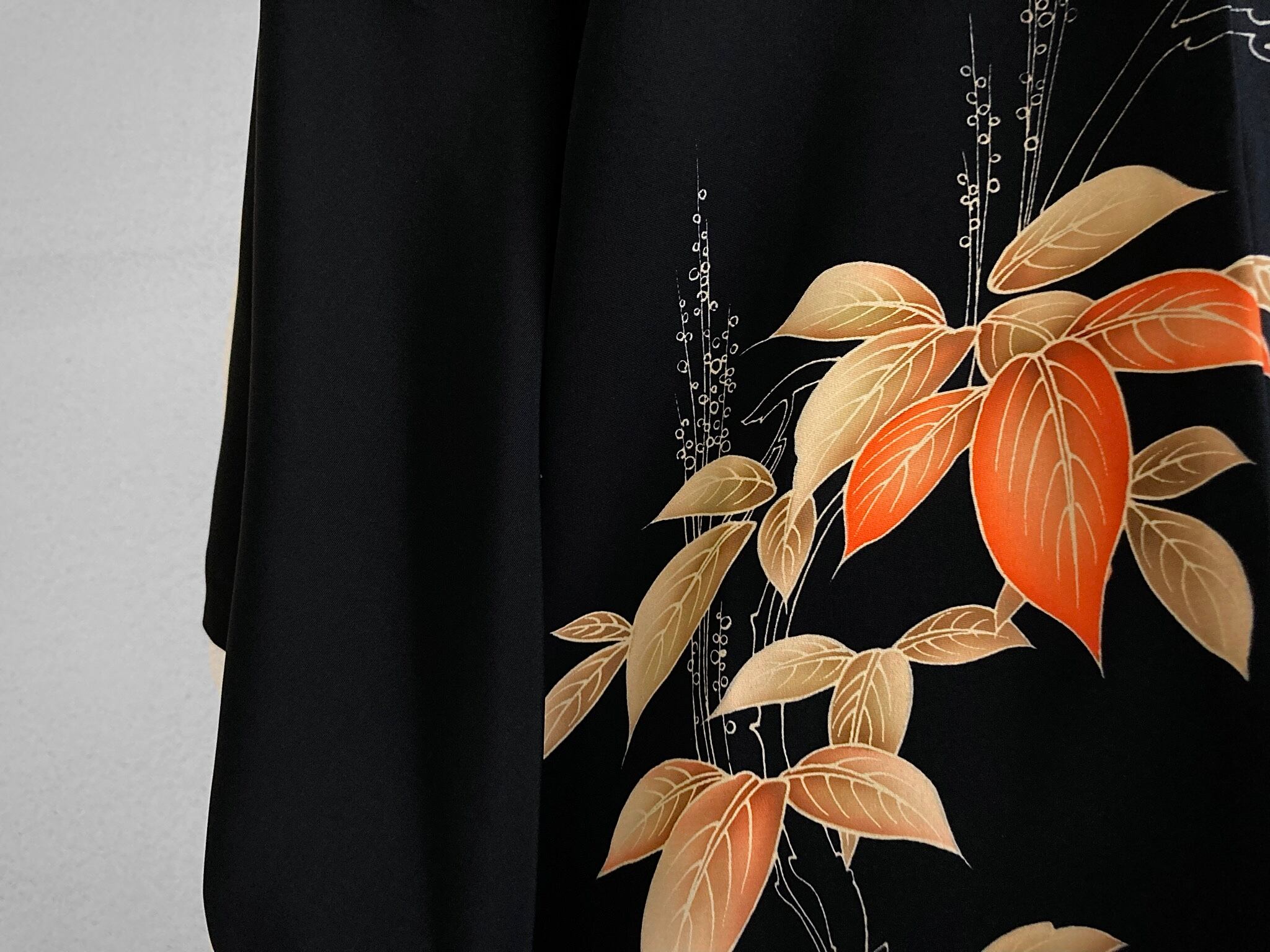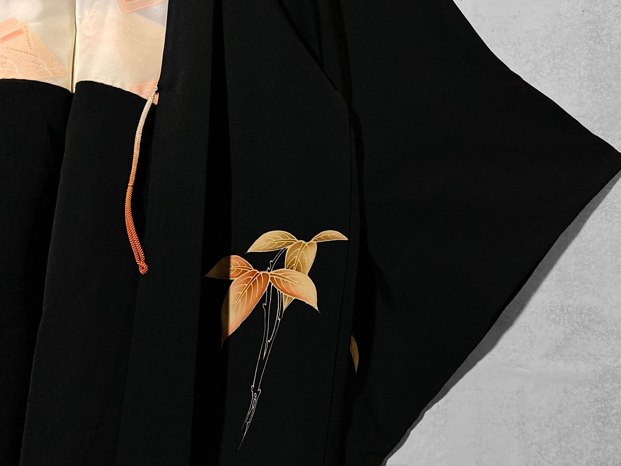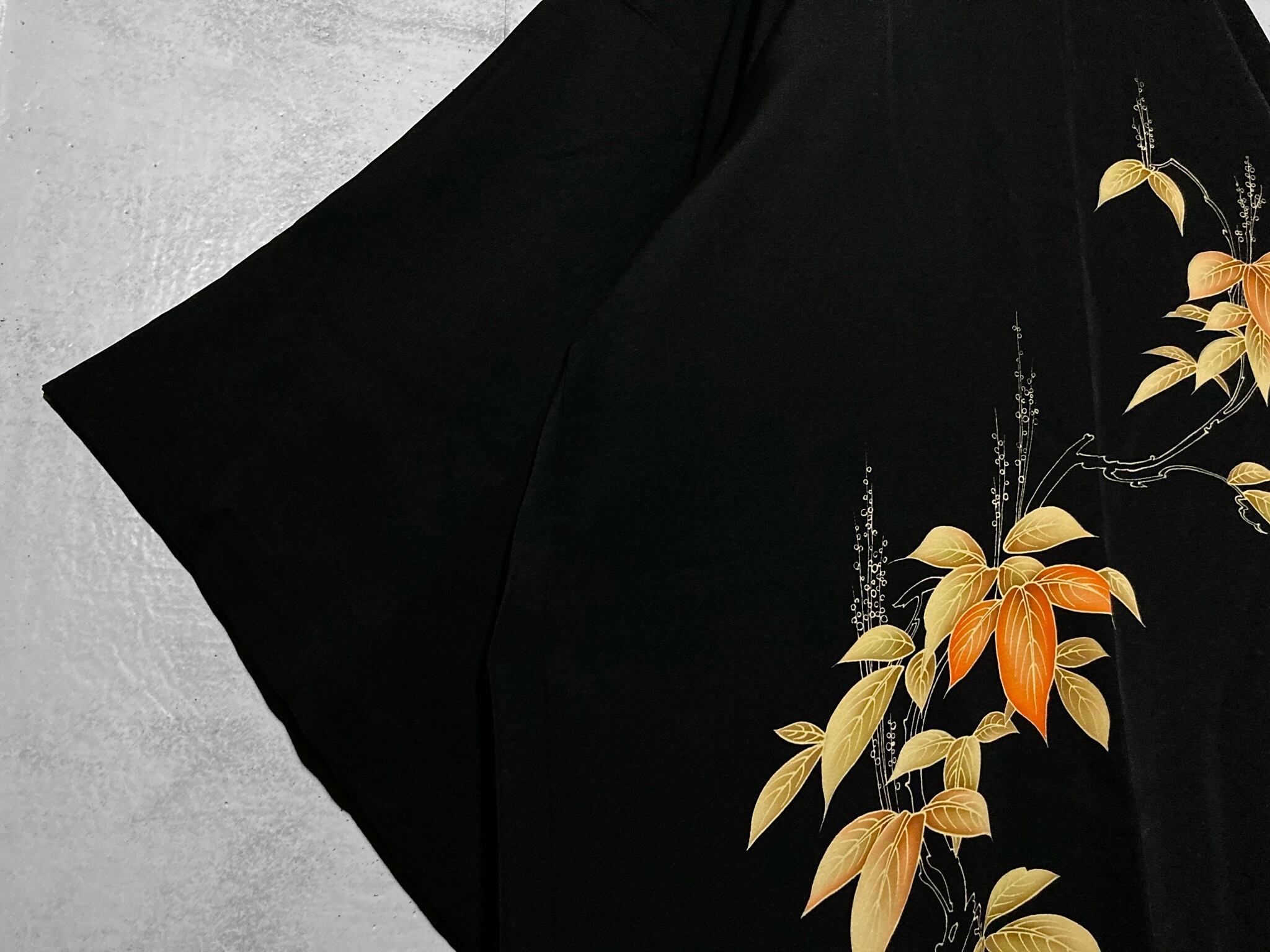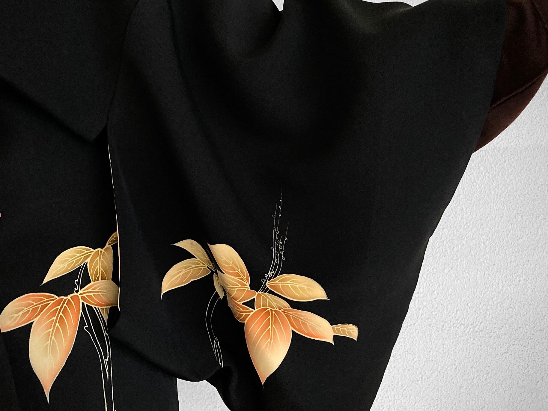 夕色 Evening color leaves print pattern design Japanese vintage Black haori