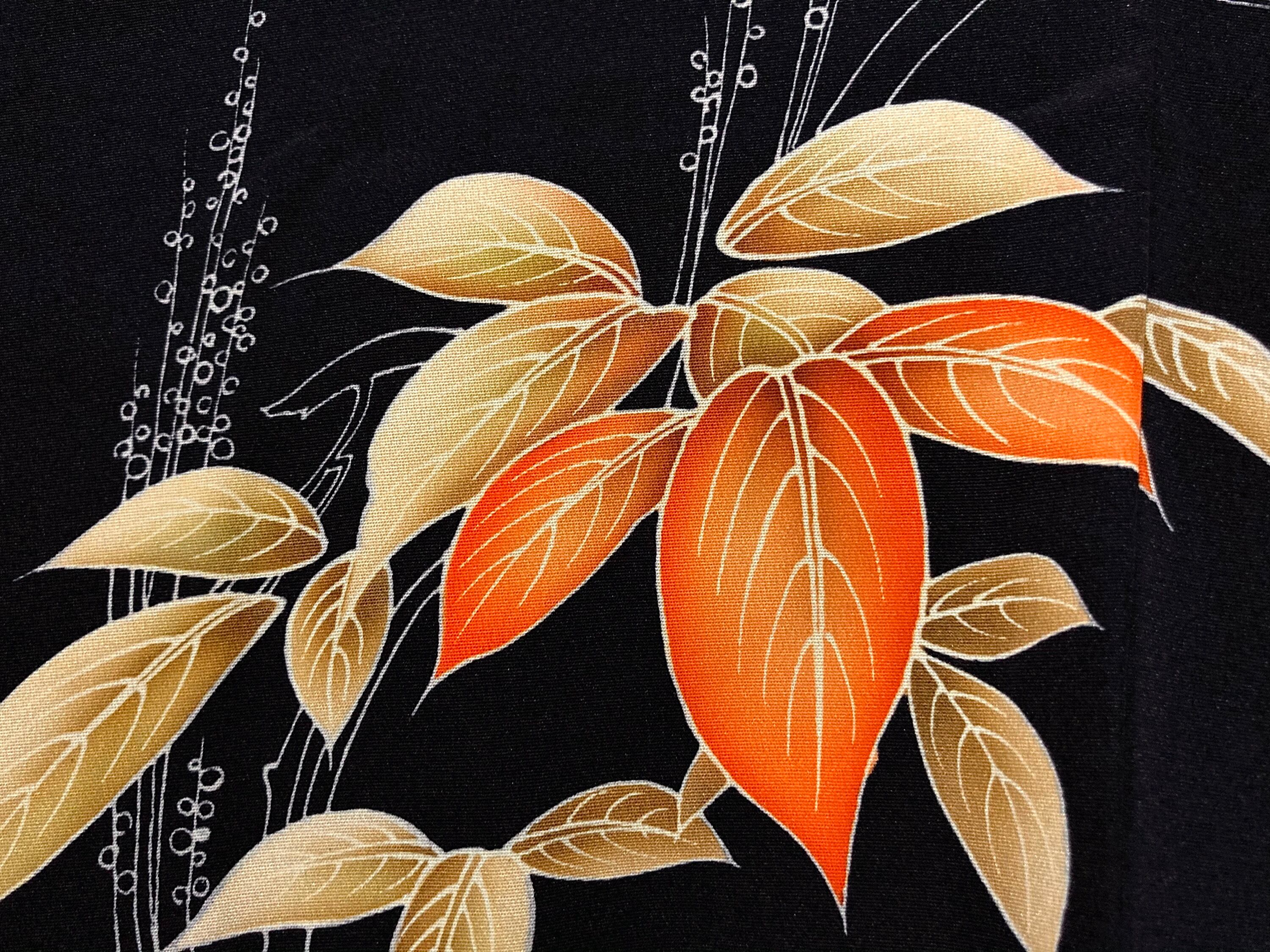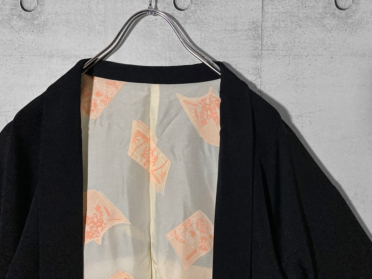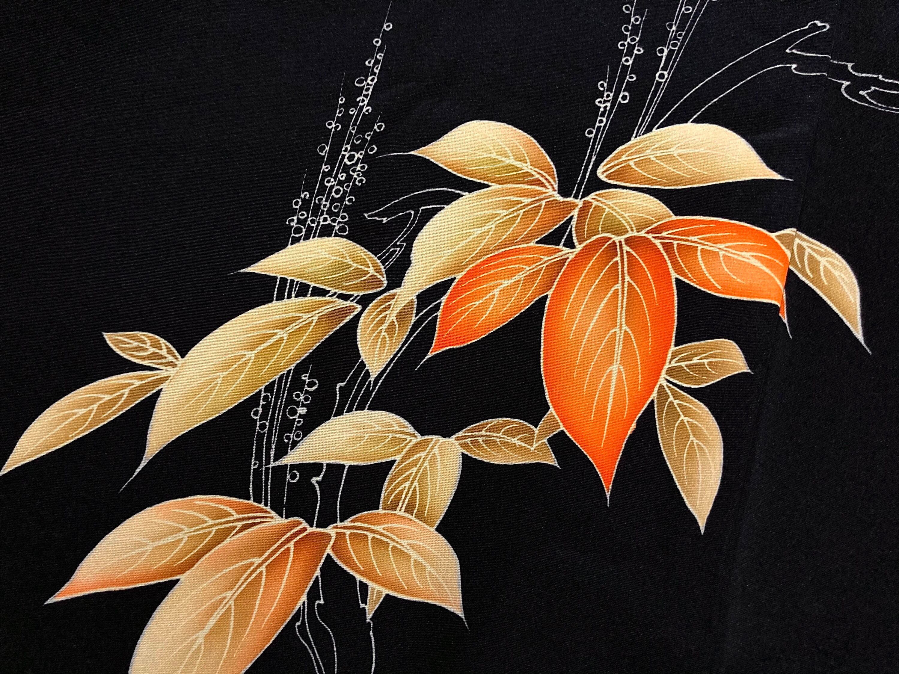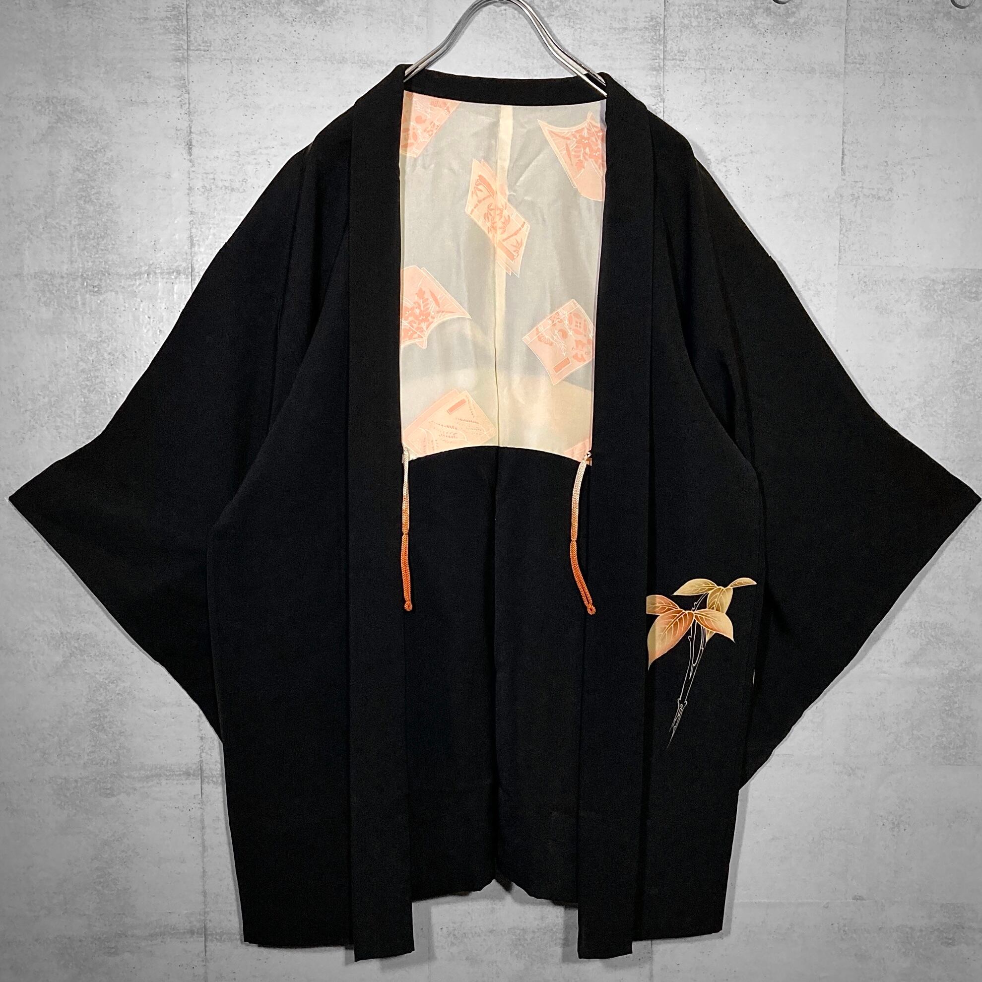 夕色 Evening color leaves print pattern design Japanese vintage Black haori