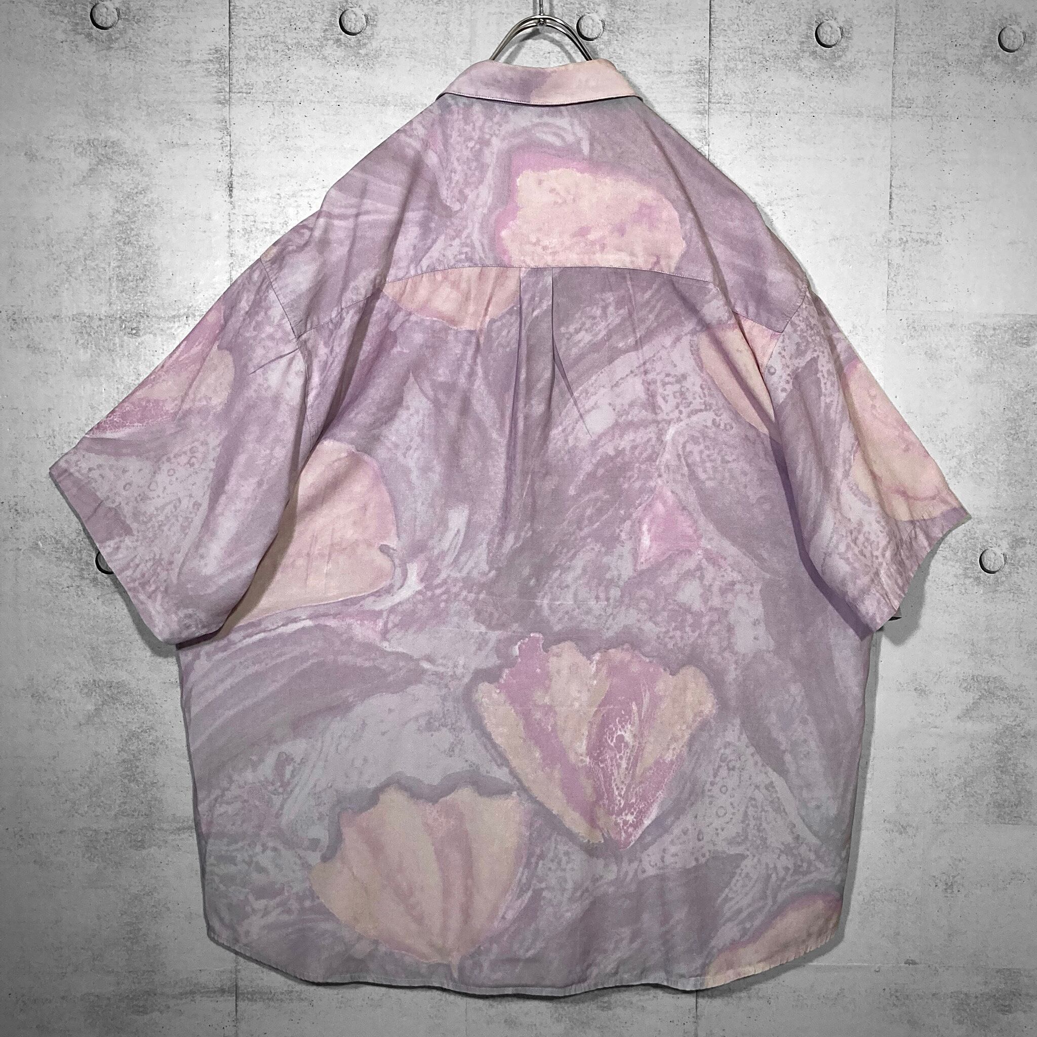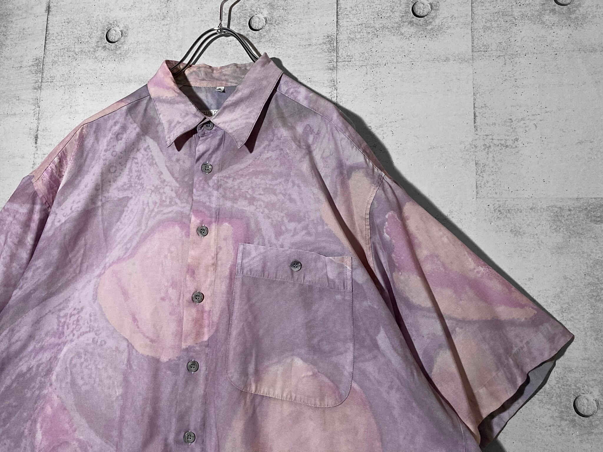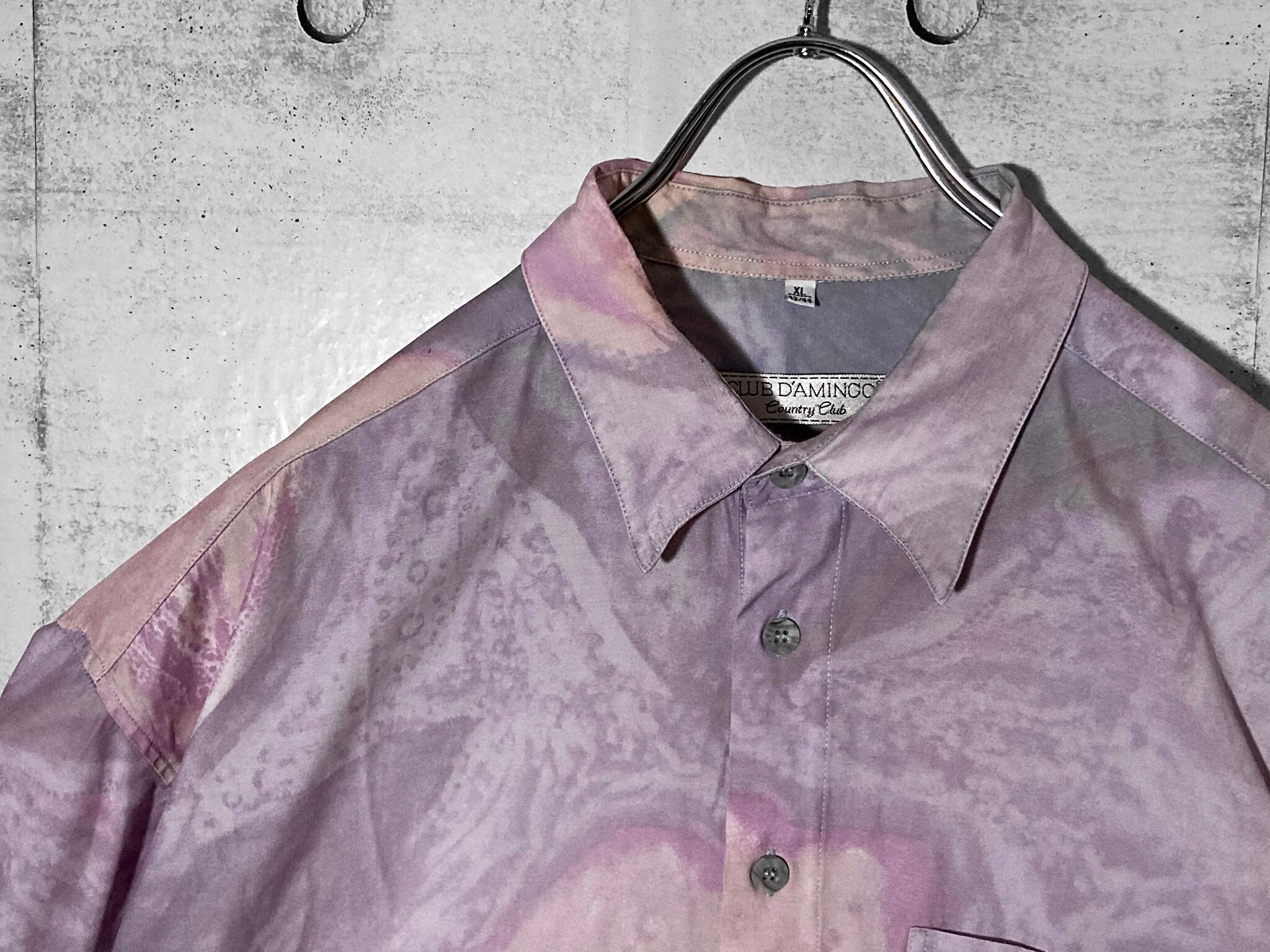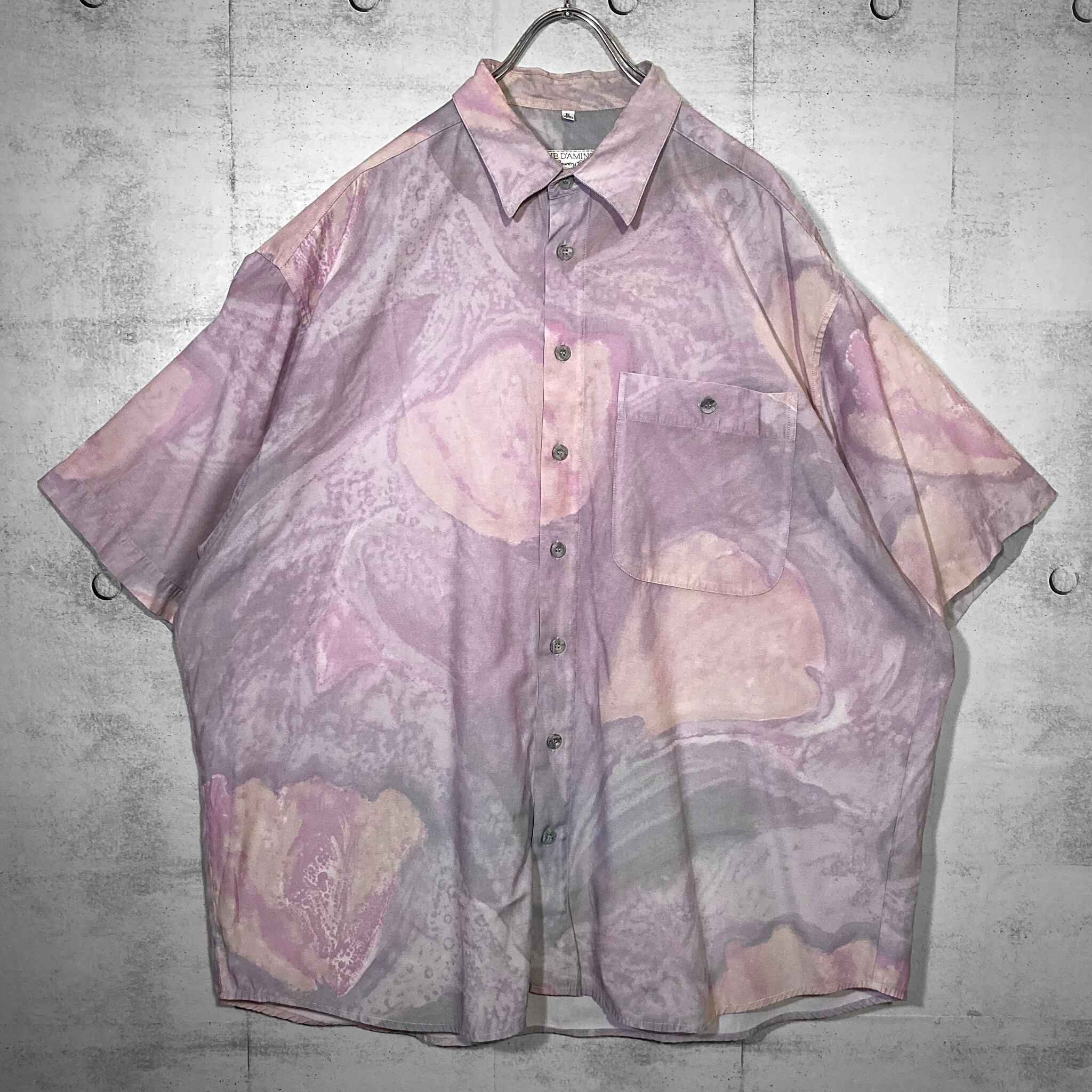XL size Pale tone × とろみ pattern all over design H/S shirt