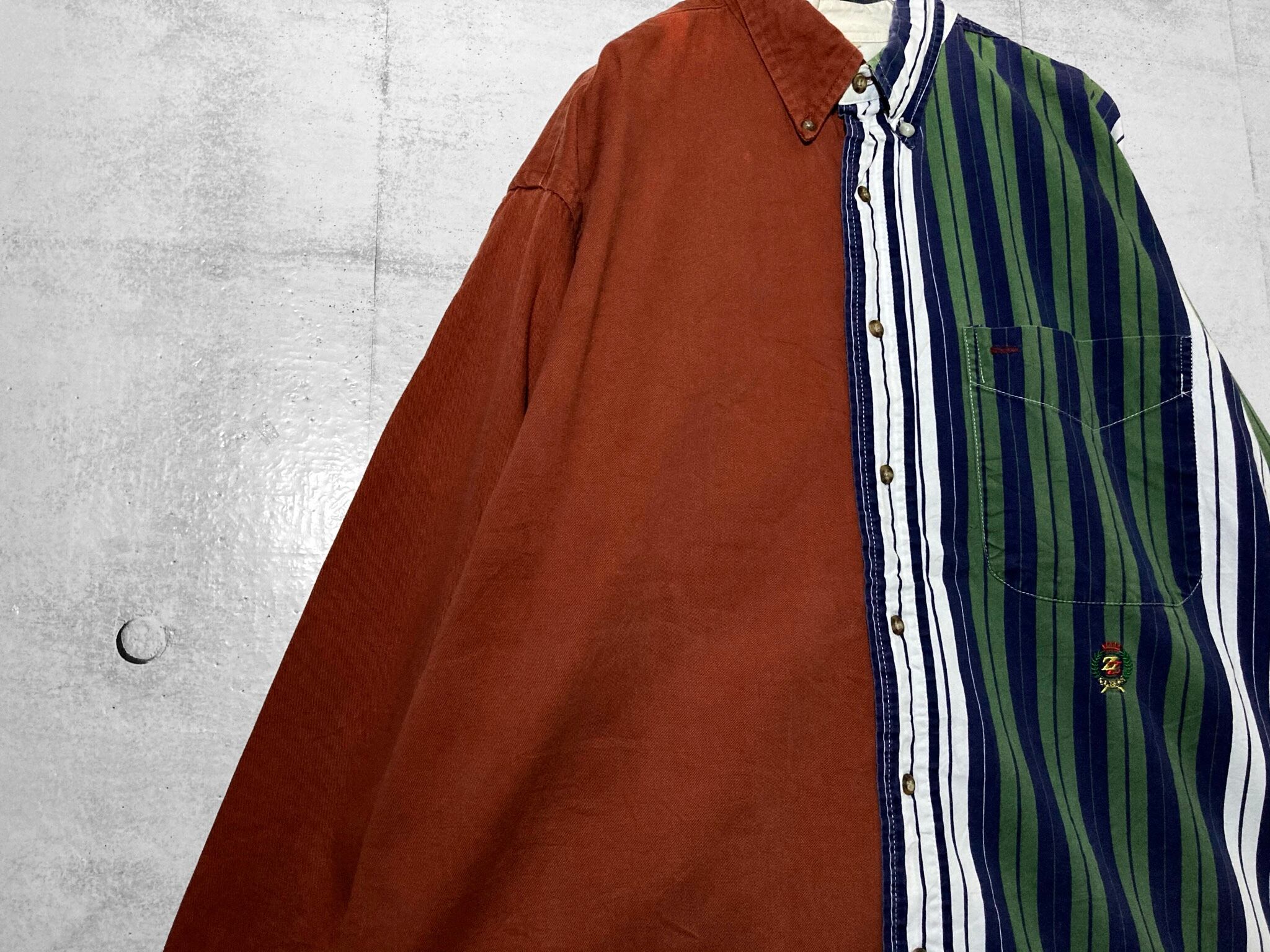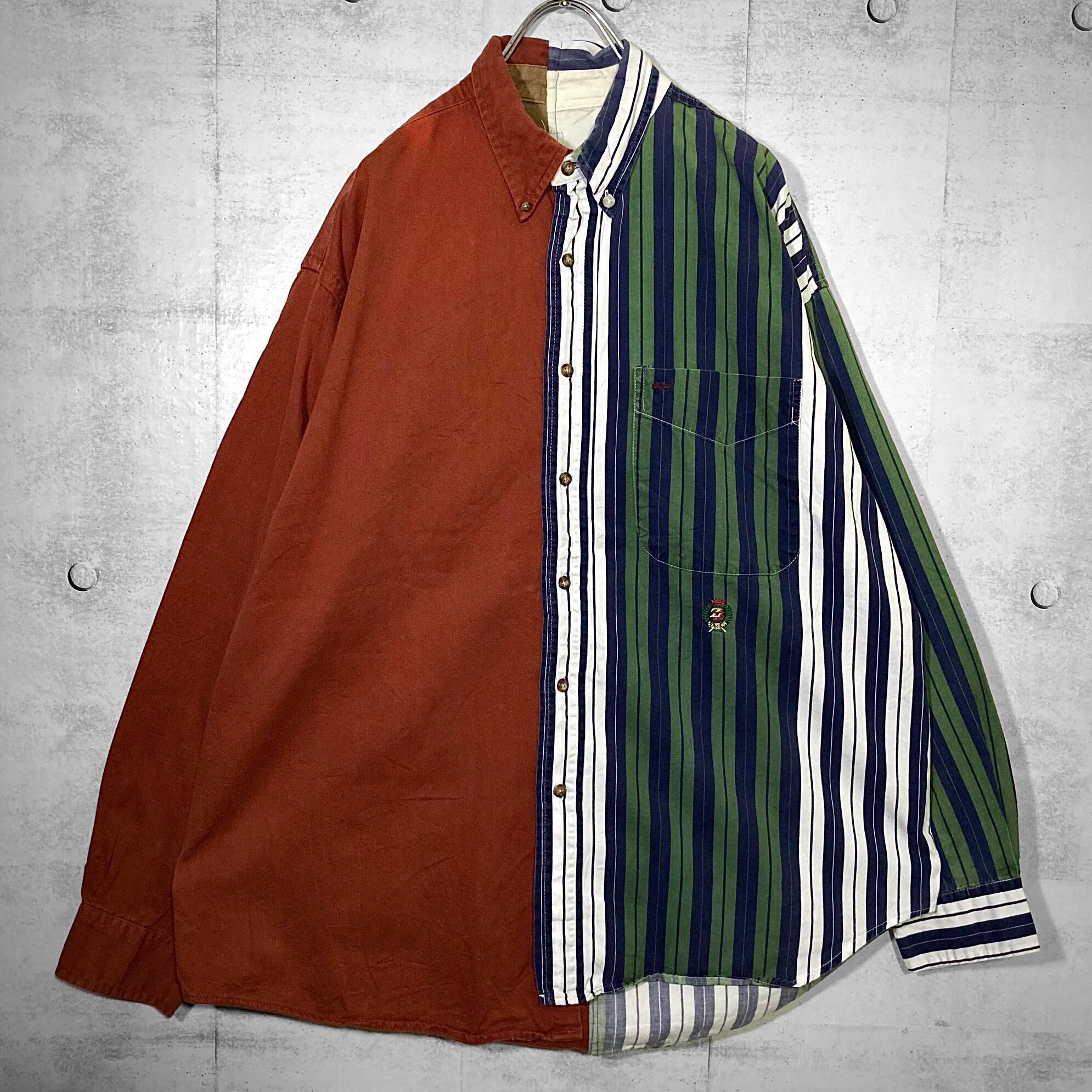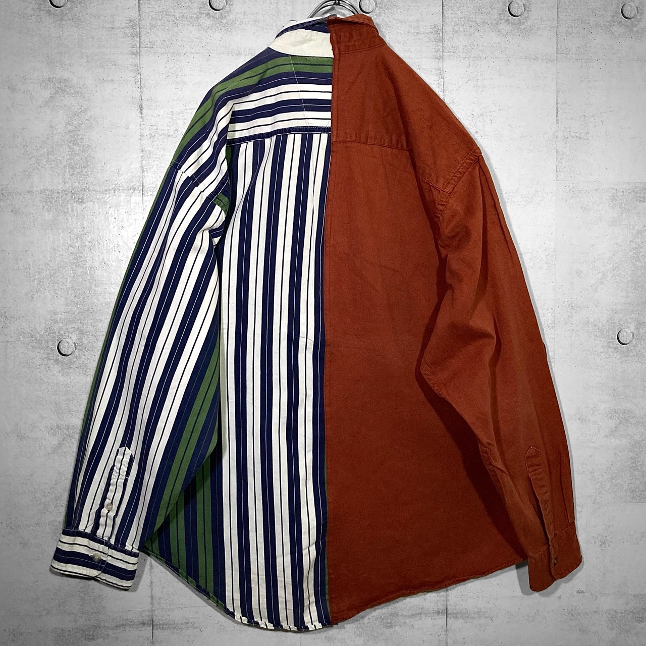 XXL Multiple stripe pattern × Dark Orange combination design L/S shirt