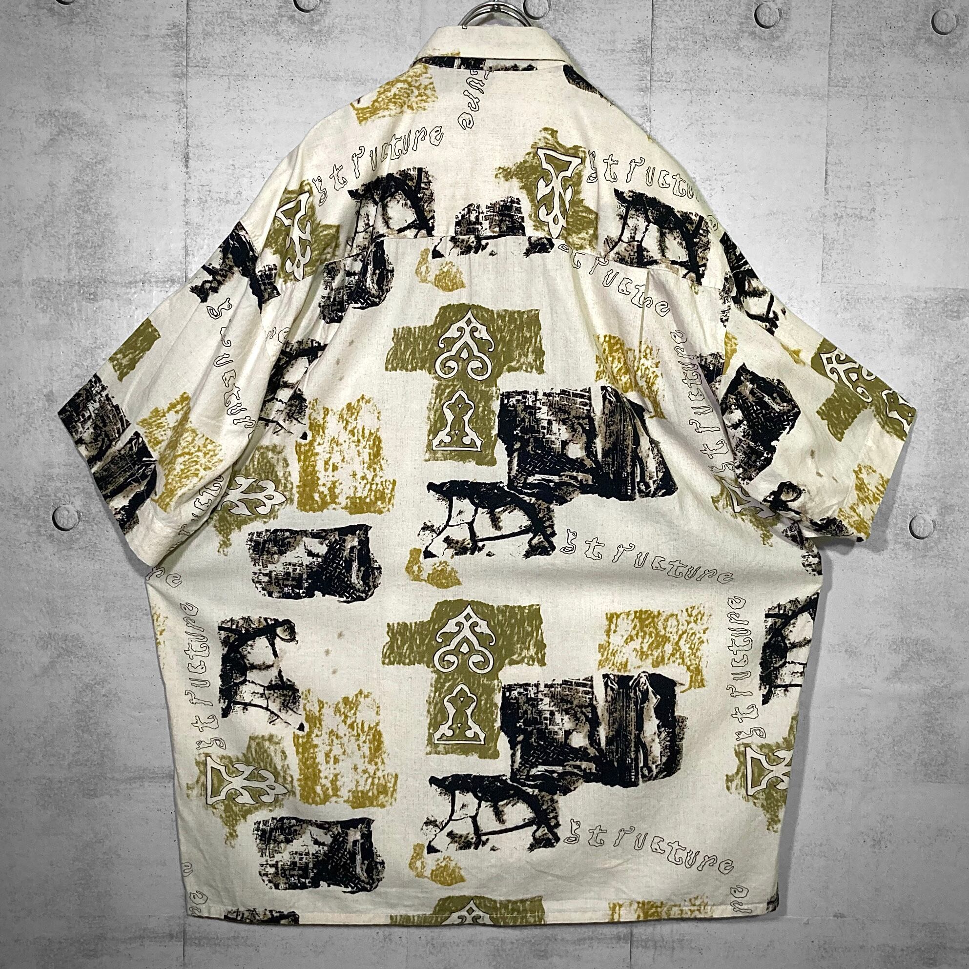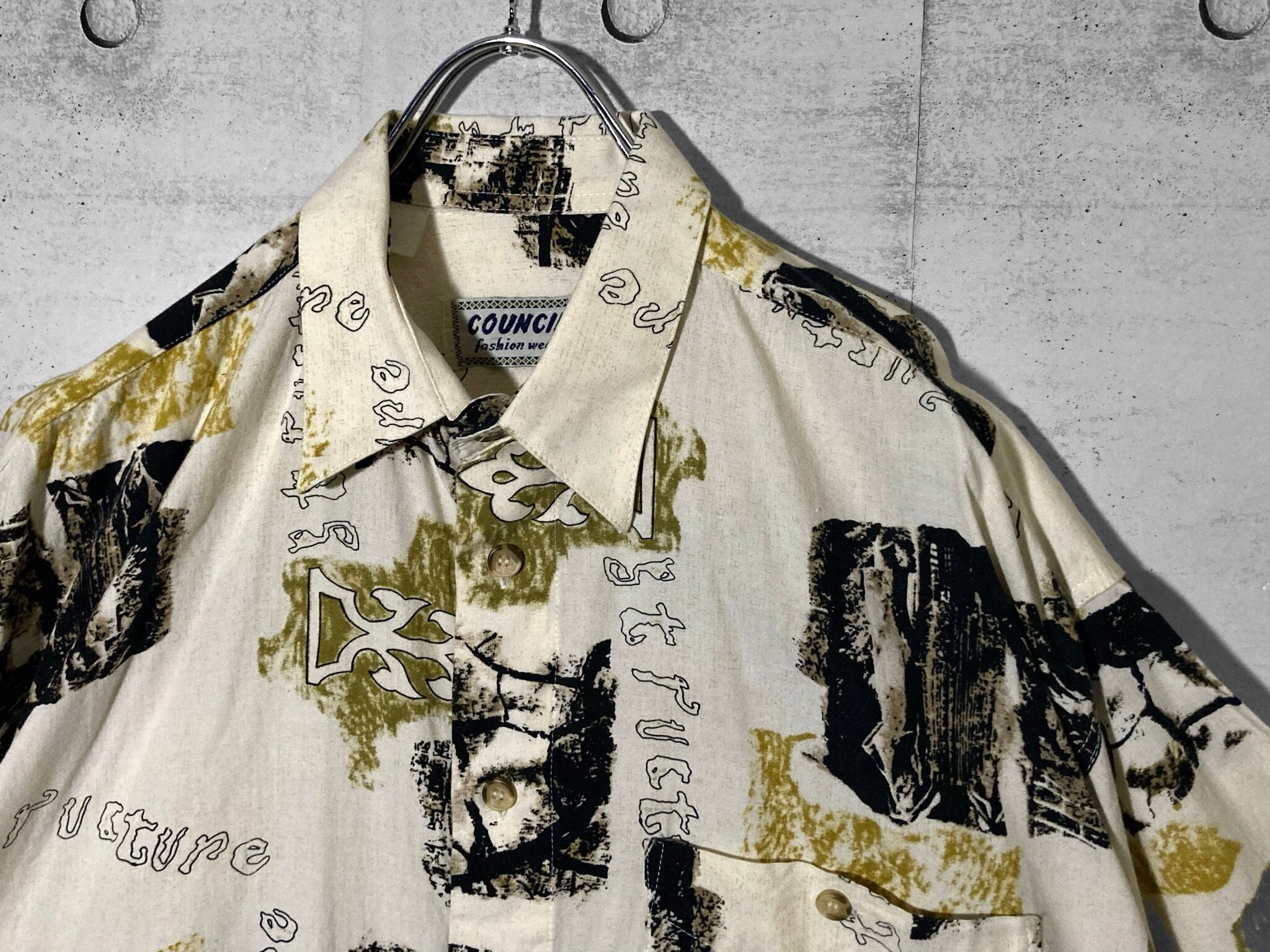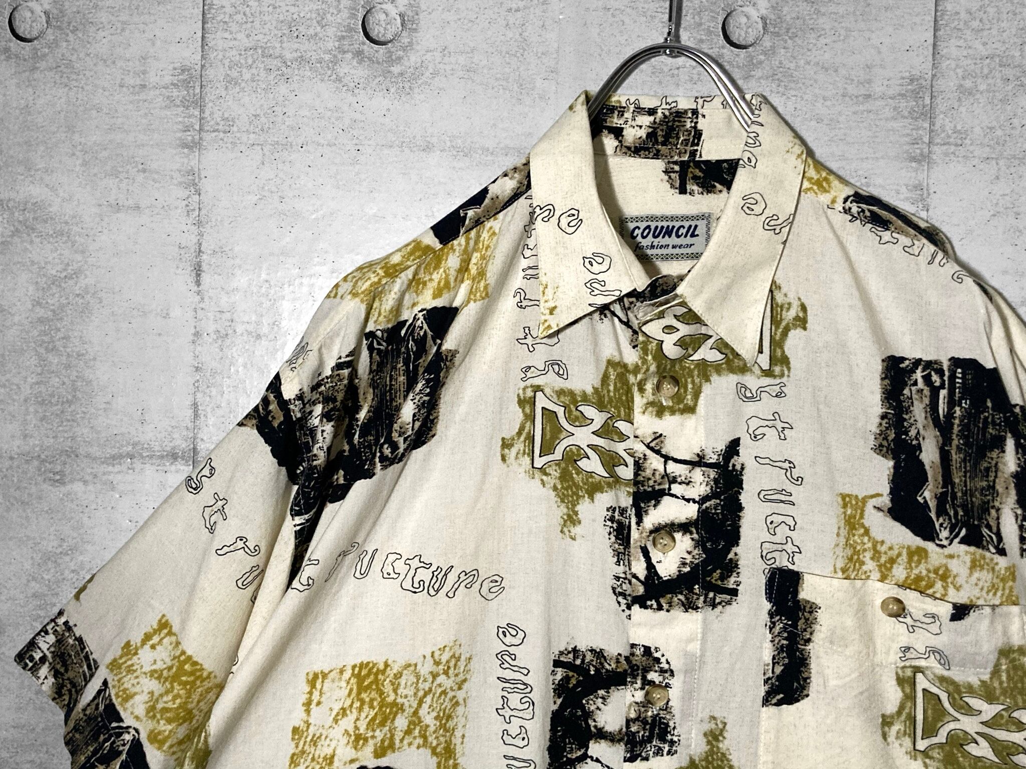 XL size 擦れ Handwriting art pattern all over design S/S shirt
