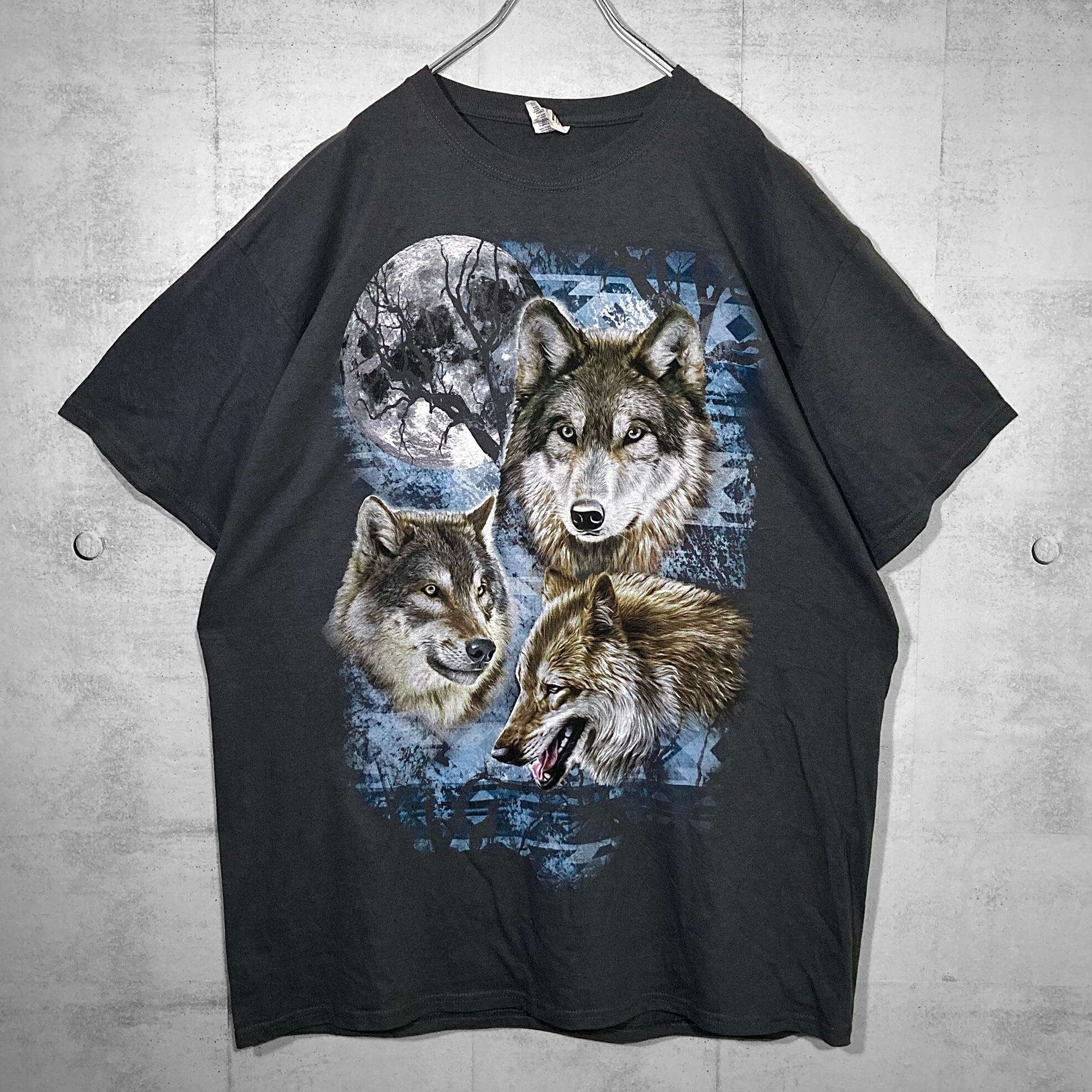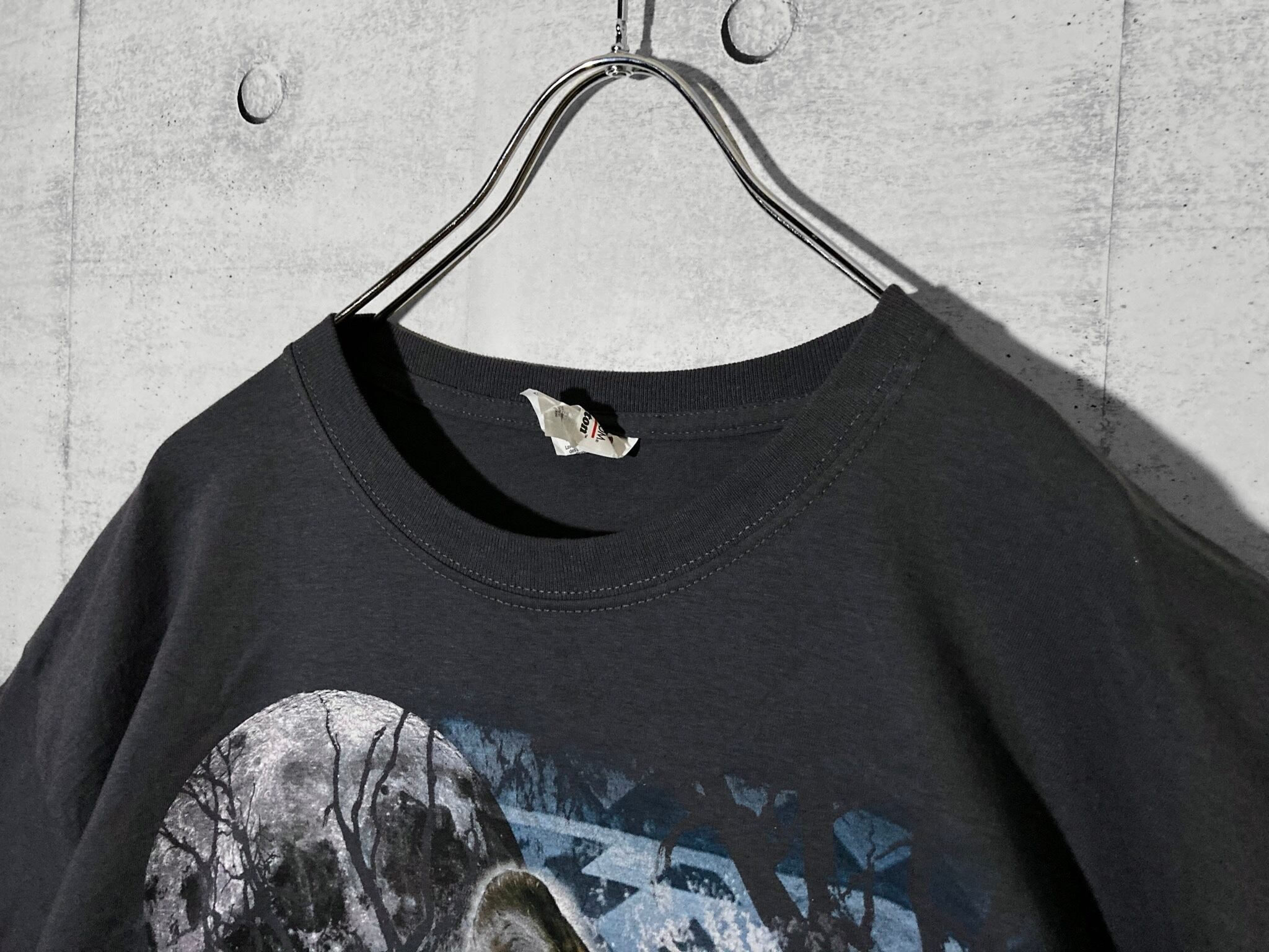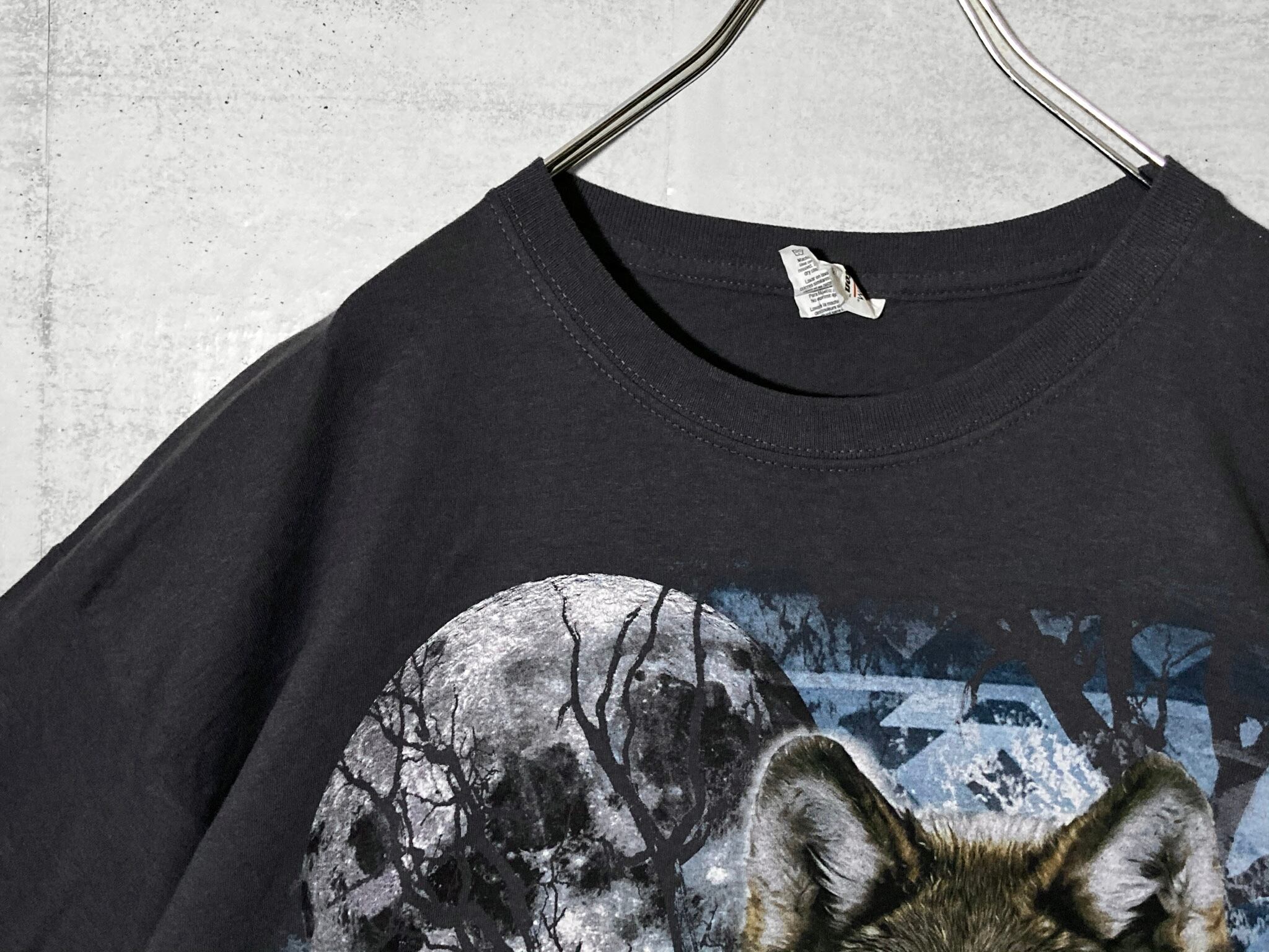 月夜と狼 XL size Moon and wolf print pattern design S/S Tee / Gray