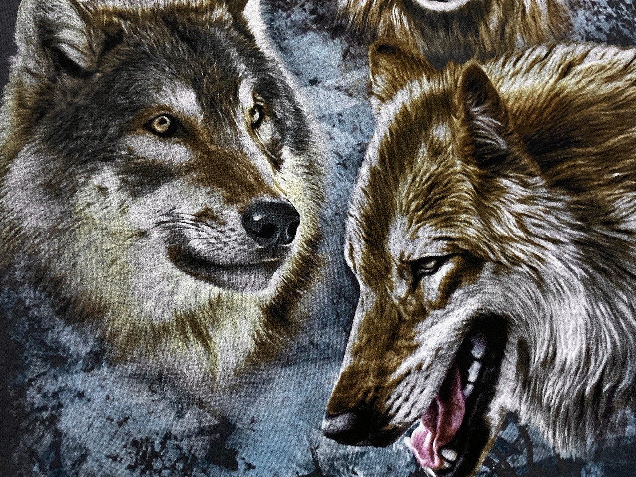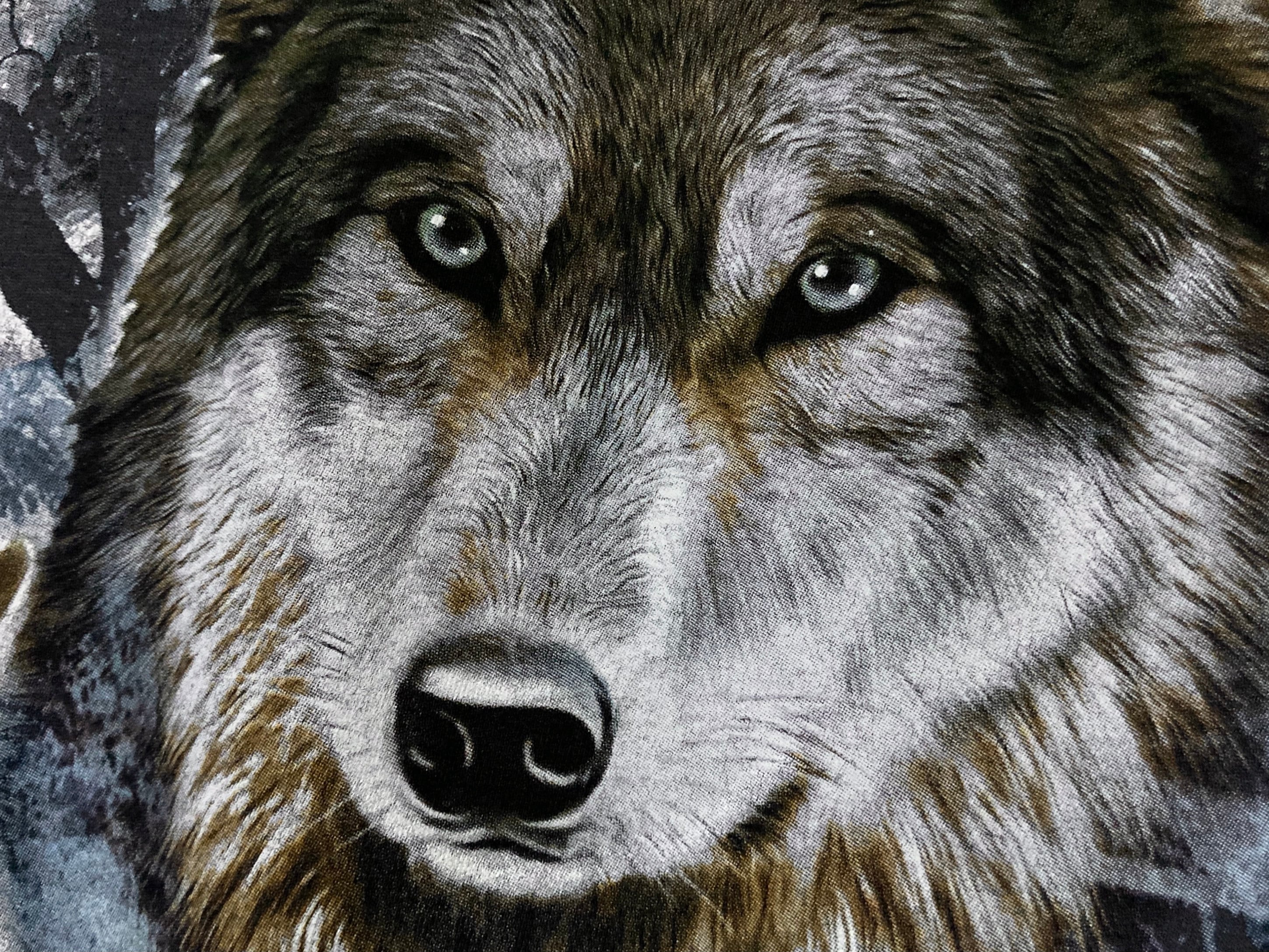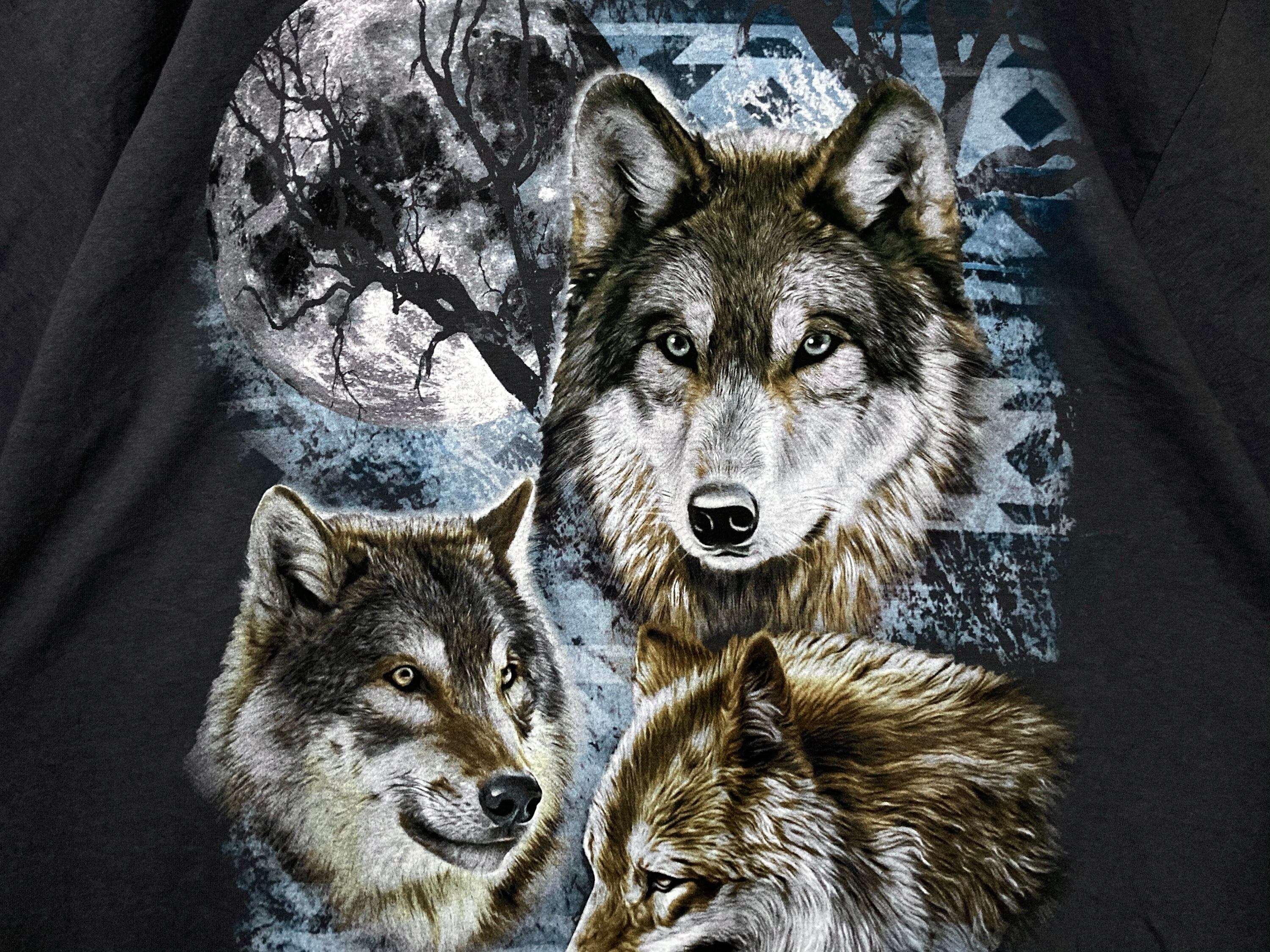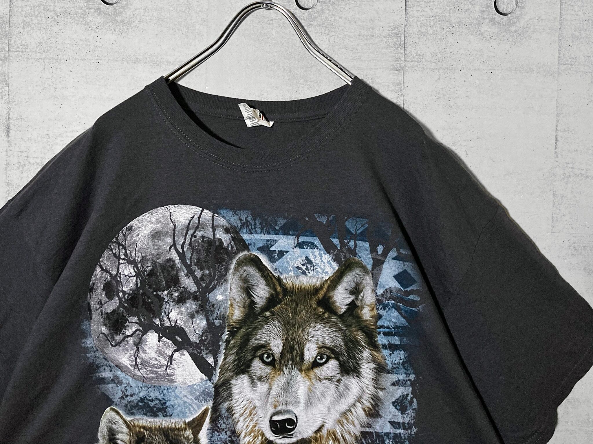 月夜と狼 XL size Moon and wolf print pattern design S/S Tee / Gray