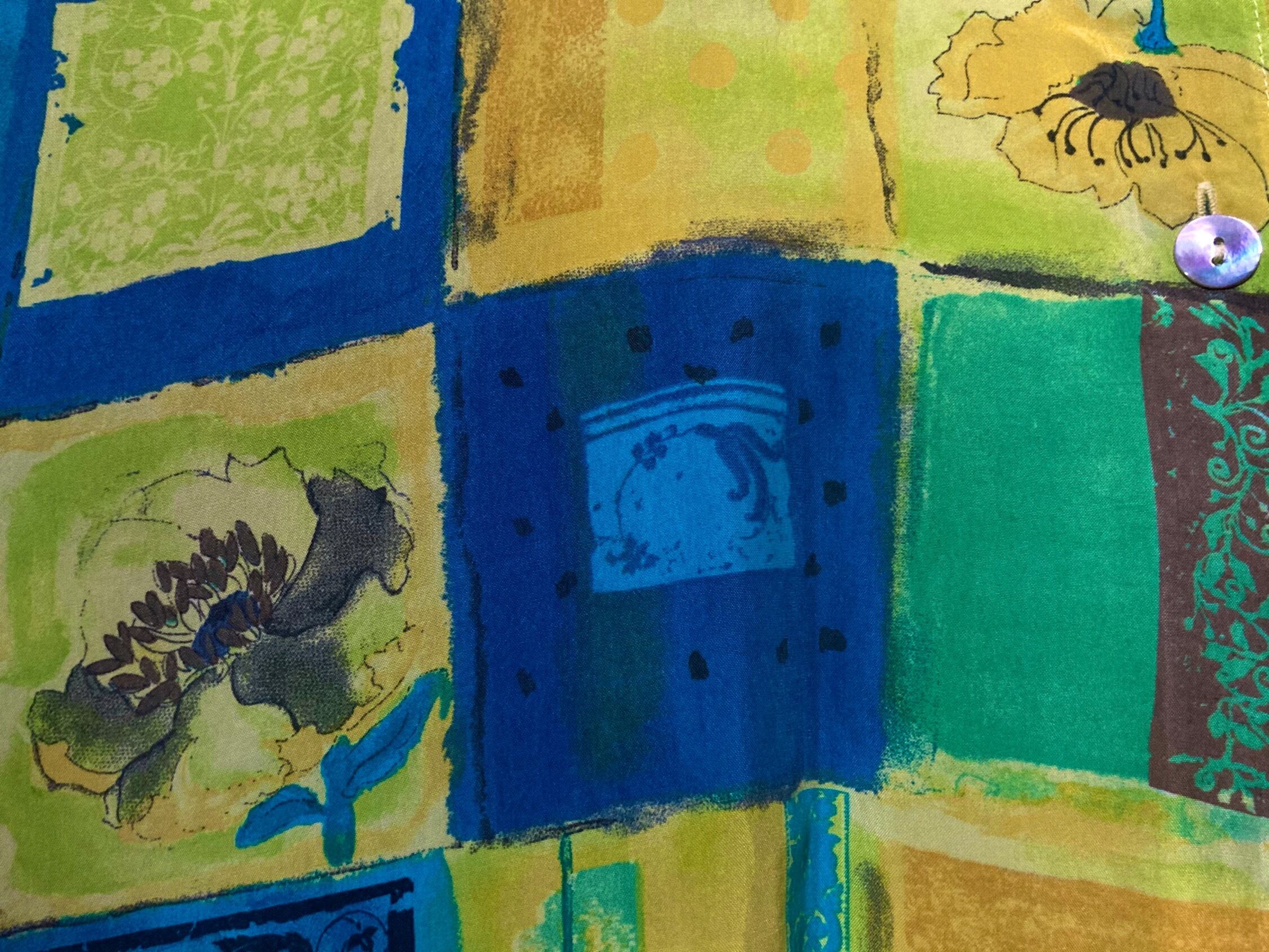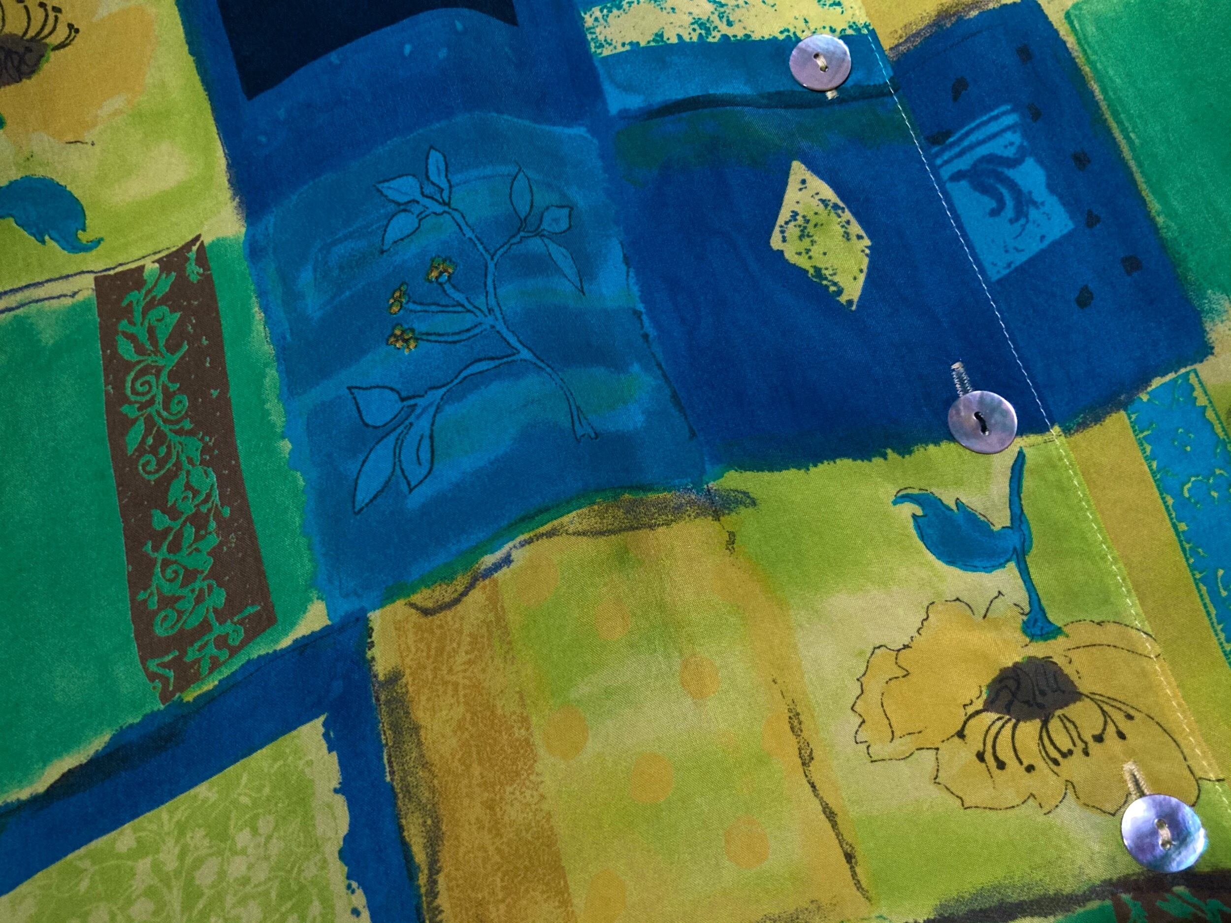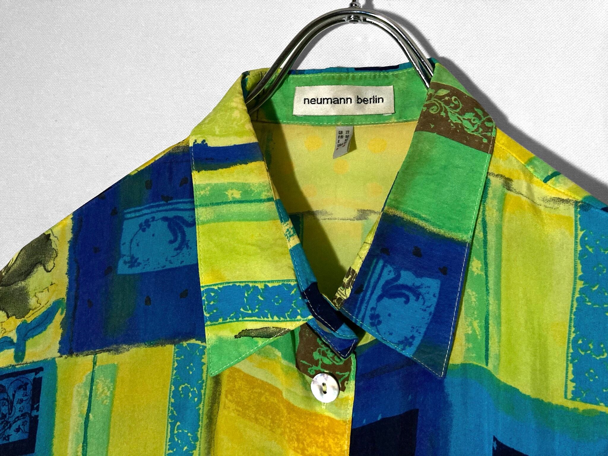 滲む青と花 - Blurred blue and flowers pattern all over design Over-silhouette H/S shirt