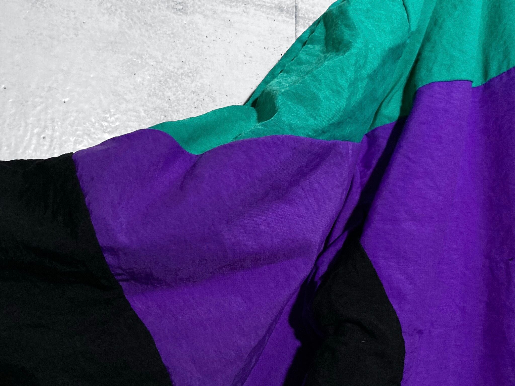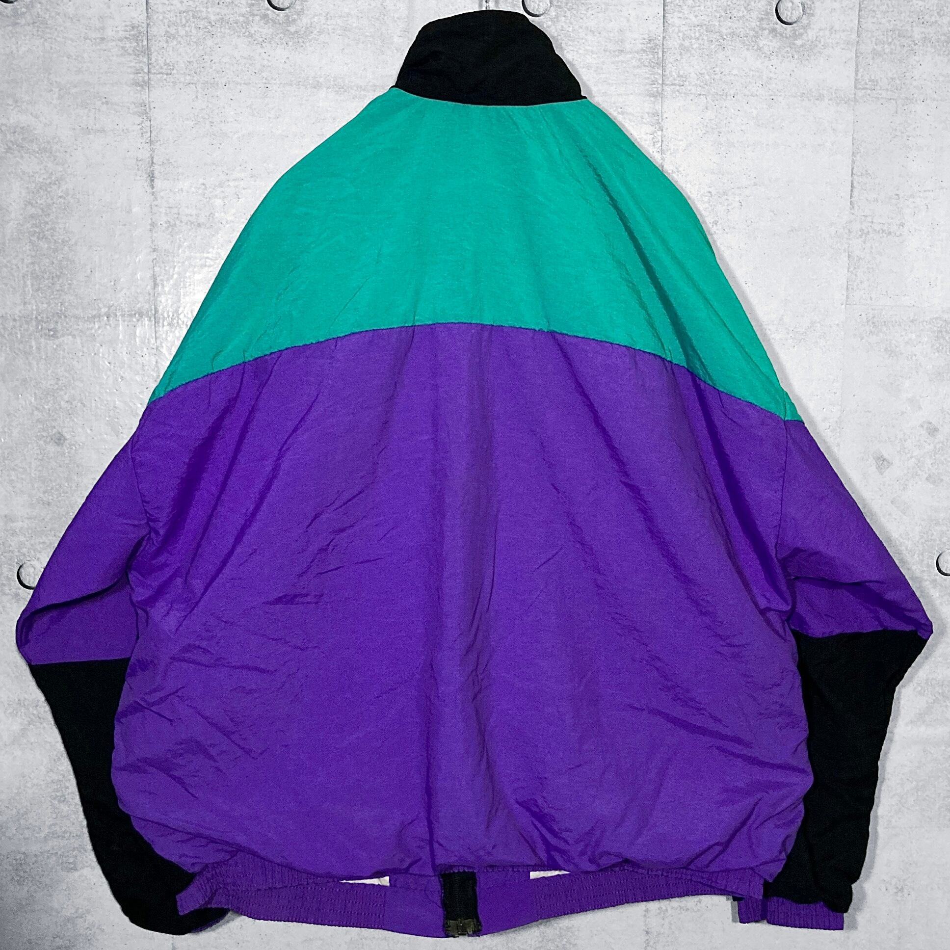 90's Purple × Turquoise blue pattern design Switch Nylon blouson