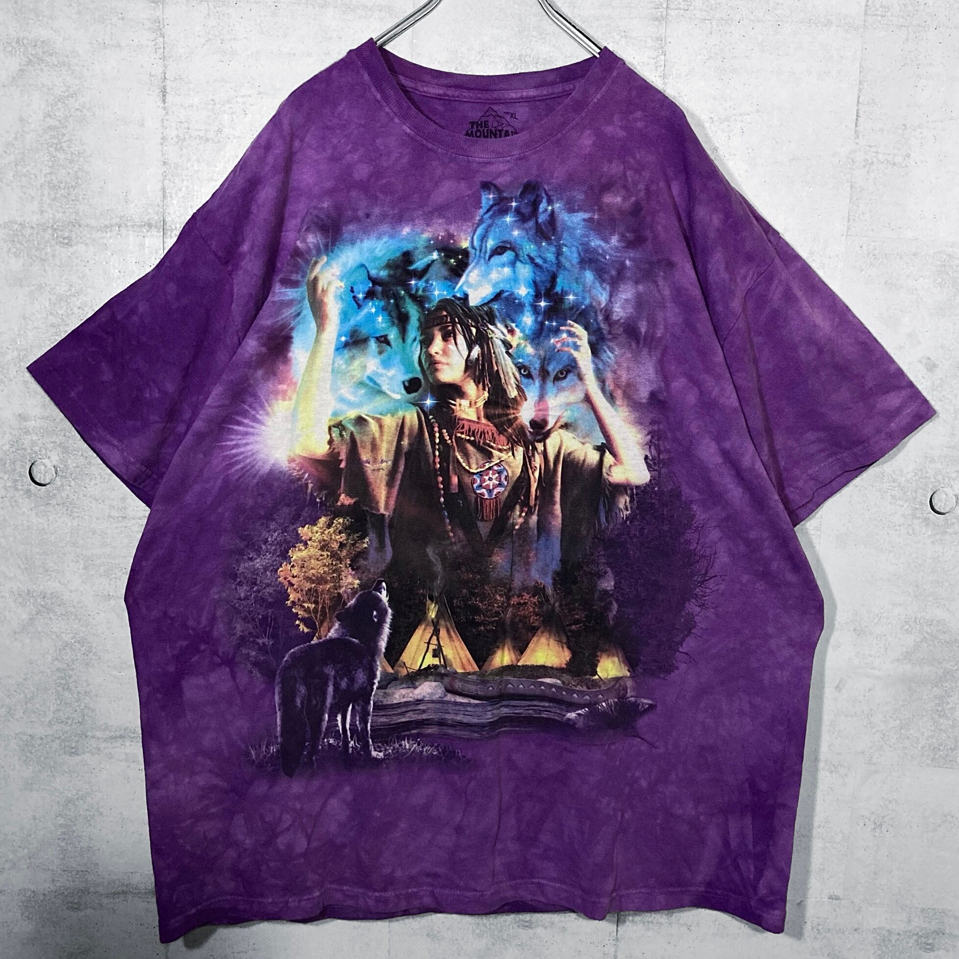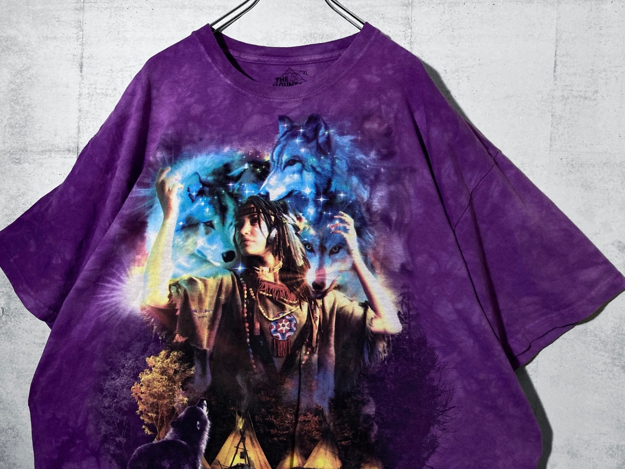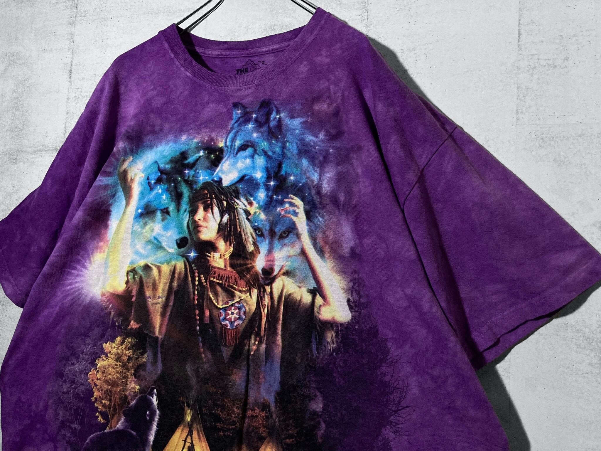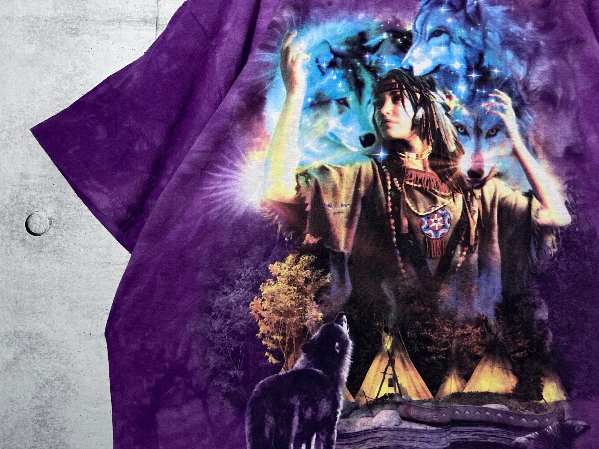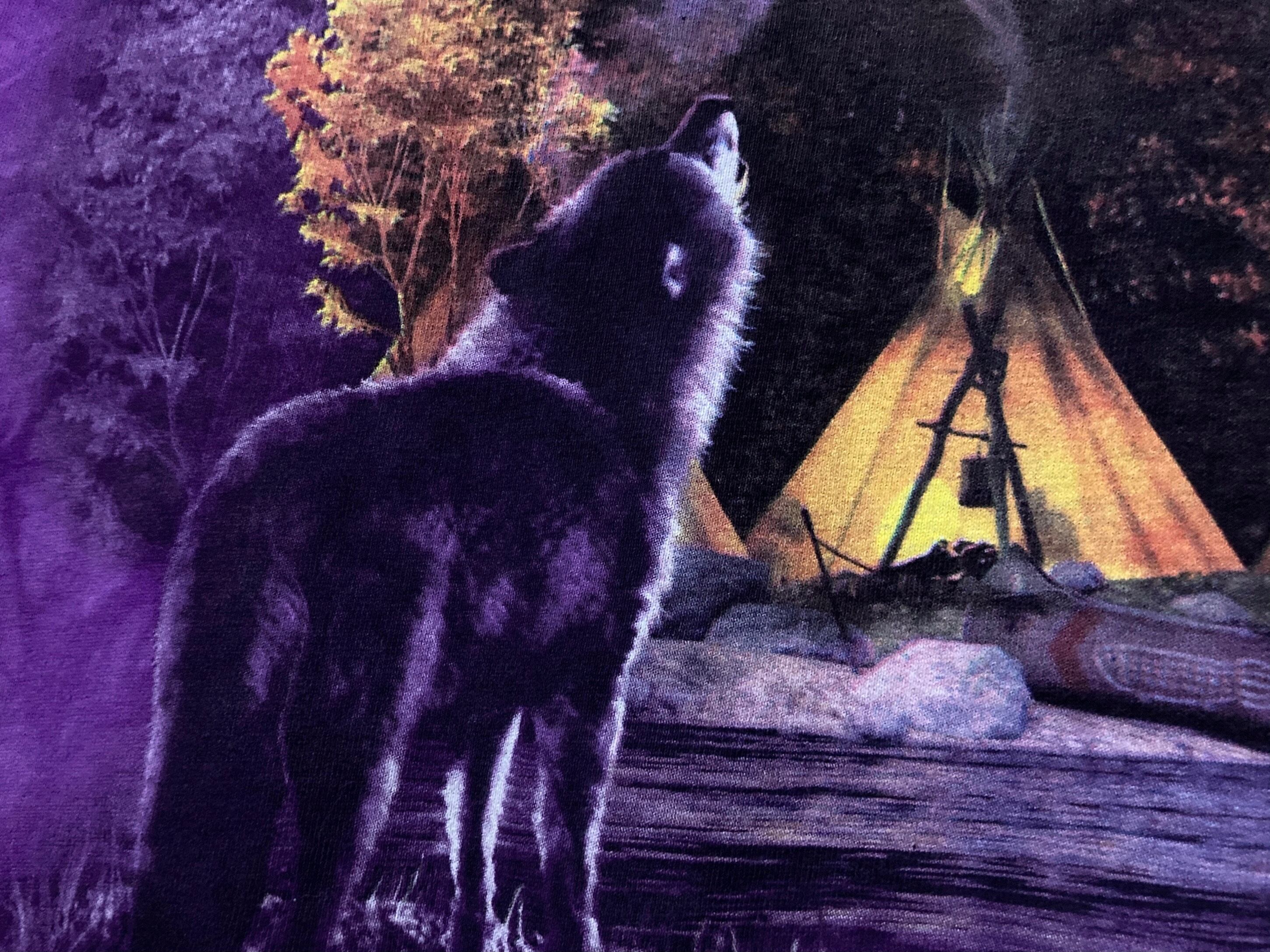 XL size People and wolf print pattern design Bleaching S/S Purple Tee