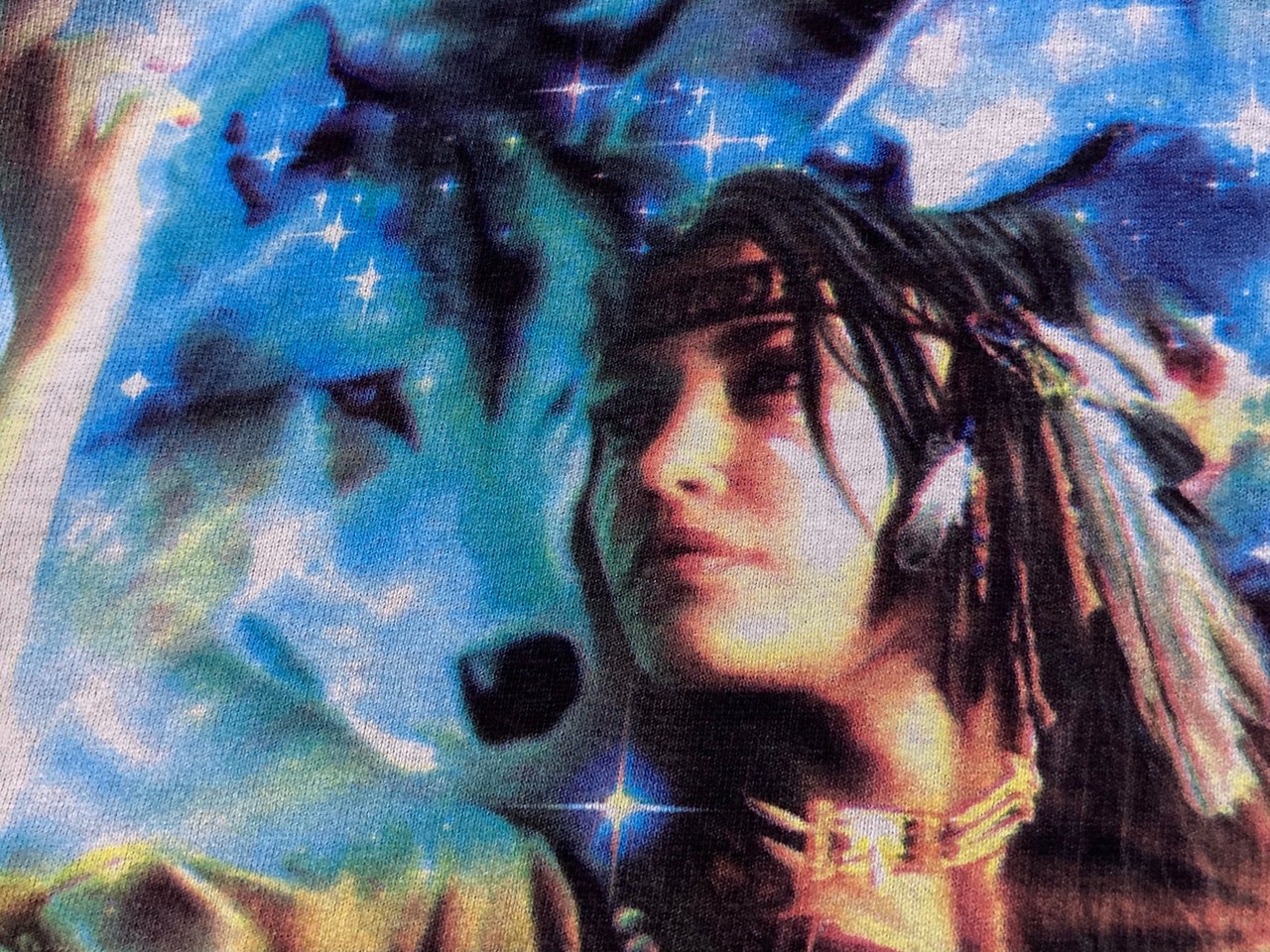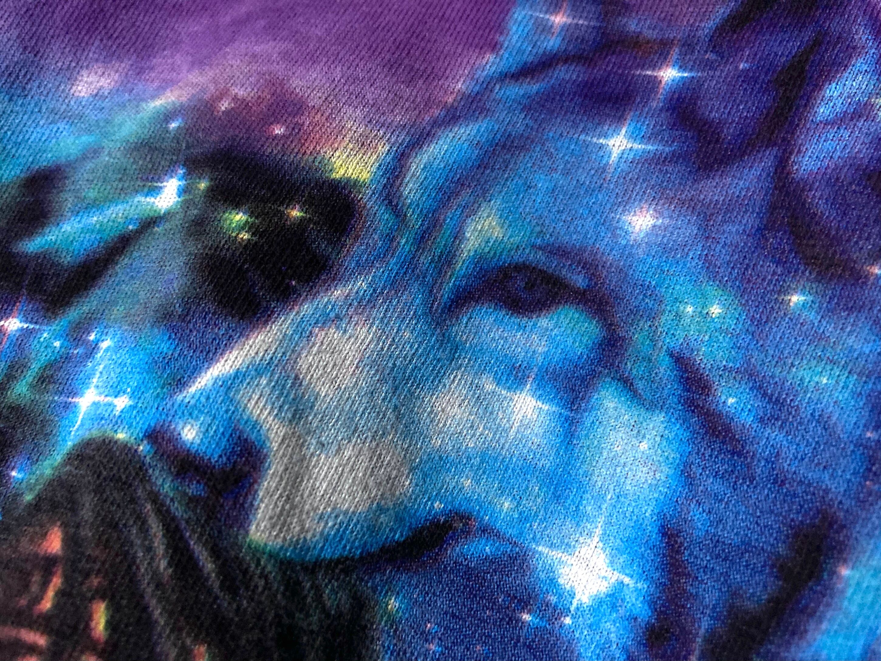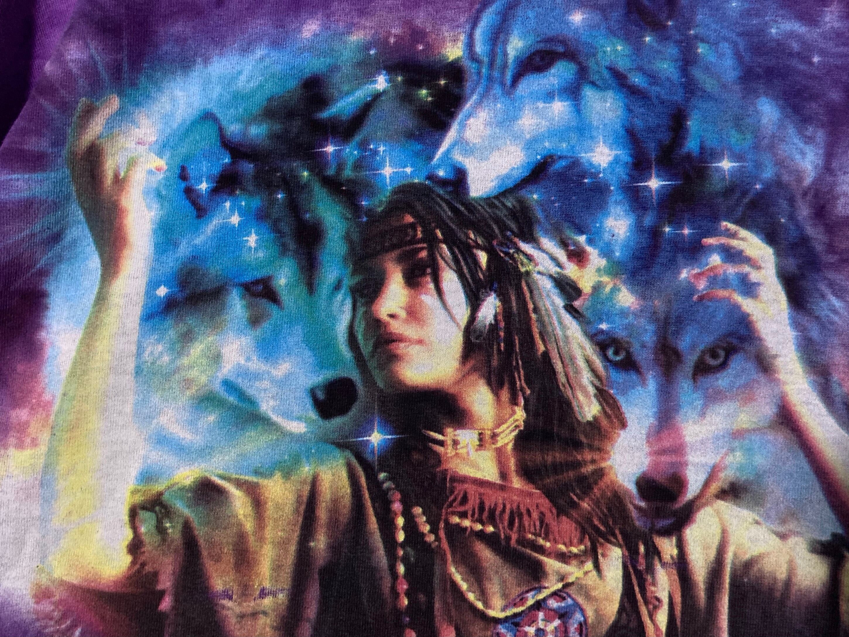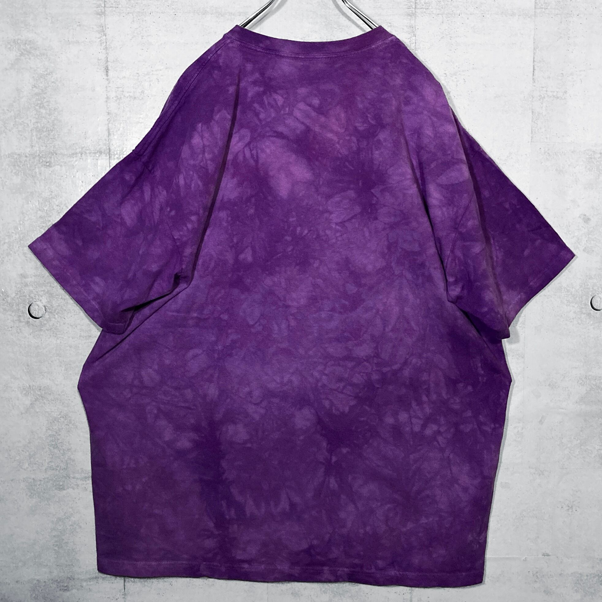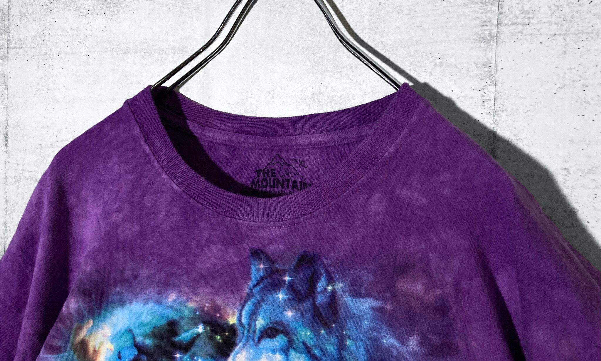 XL size People and wolf print pattern design Bleaching S/S Purple Tee
