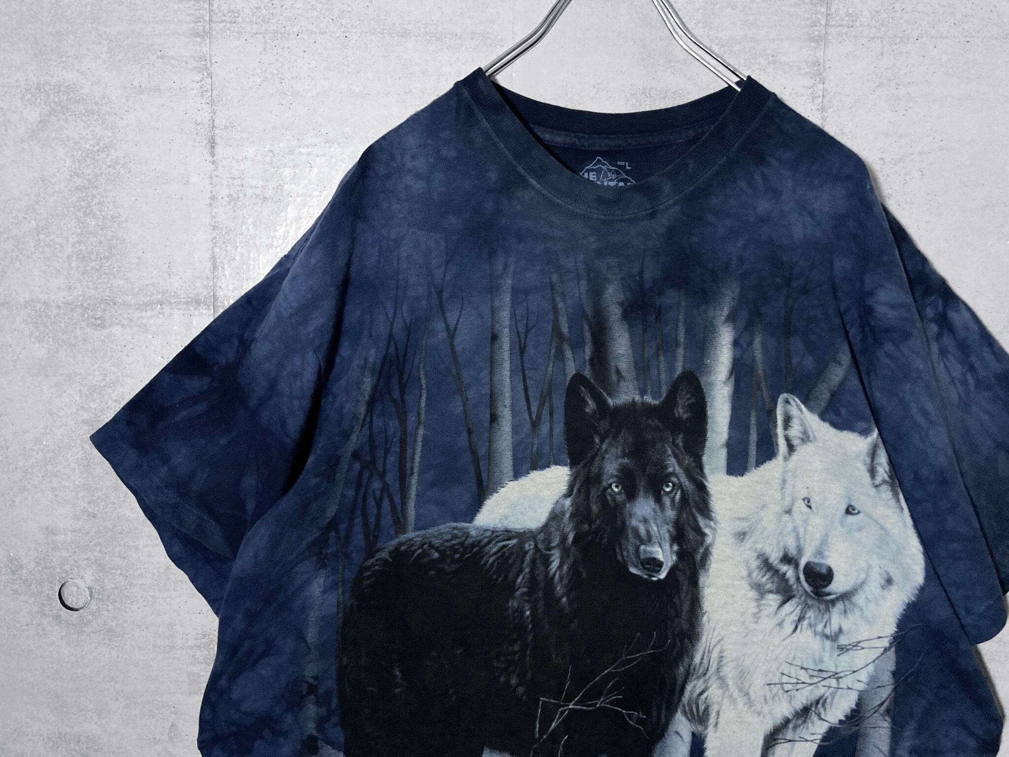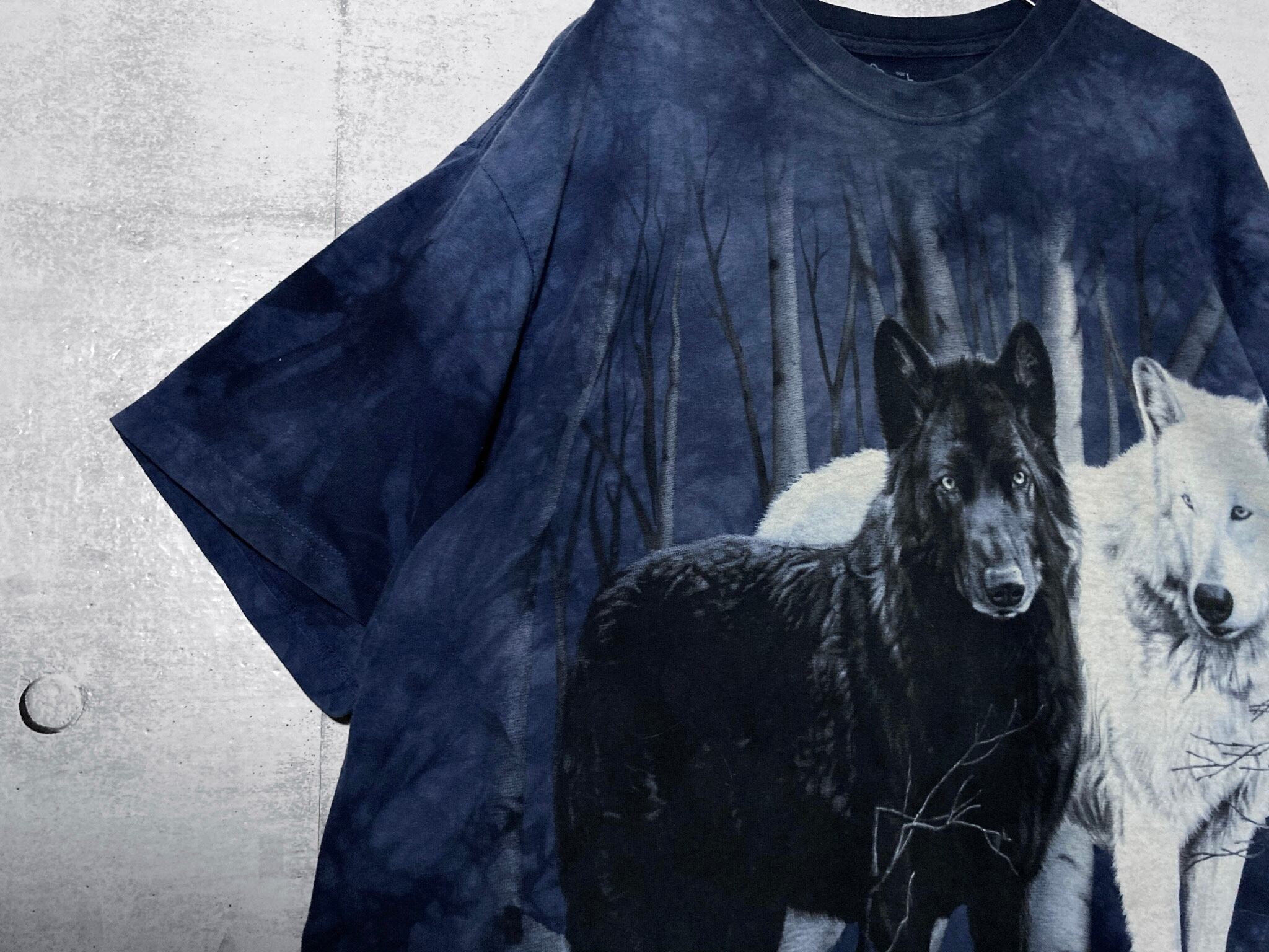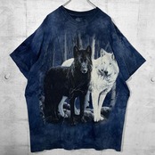 Wolf print pattern design Tye-dye S/S Tee / Deep Blue