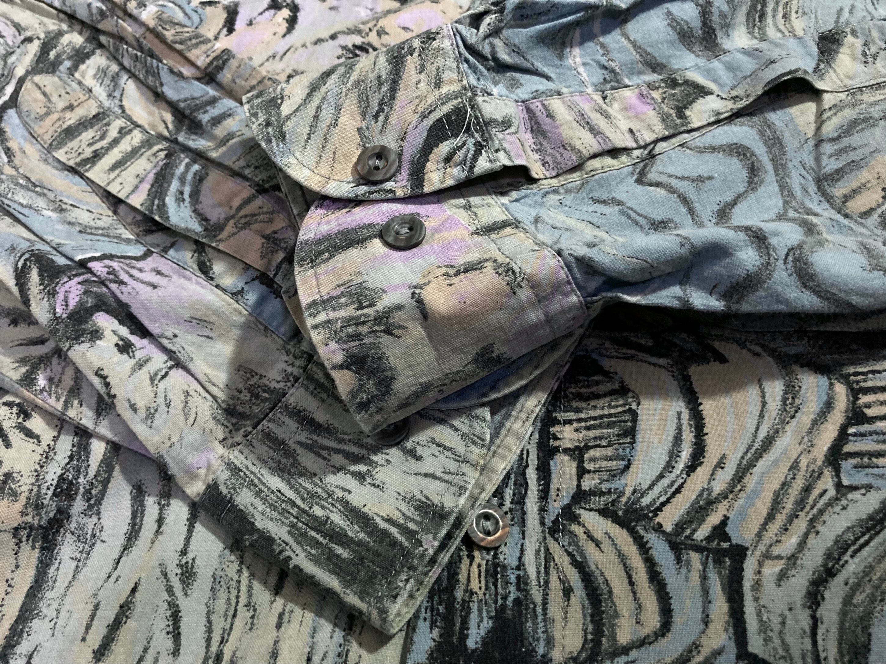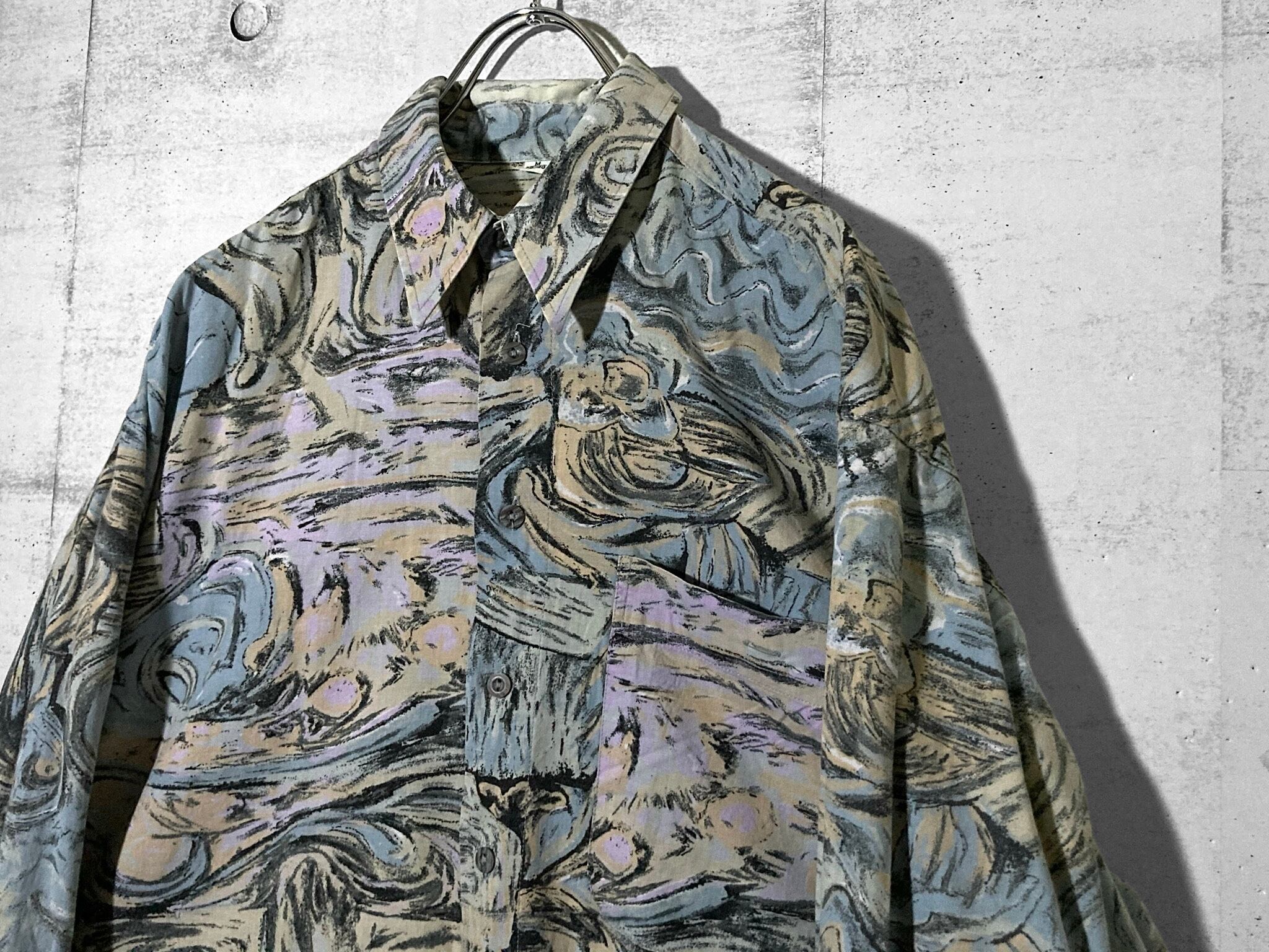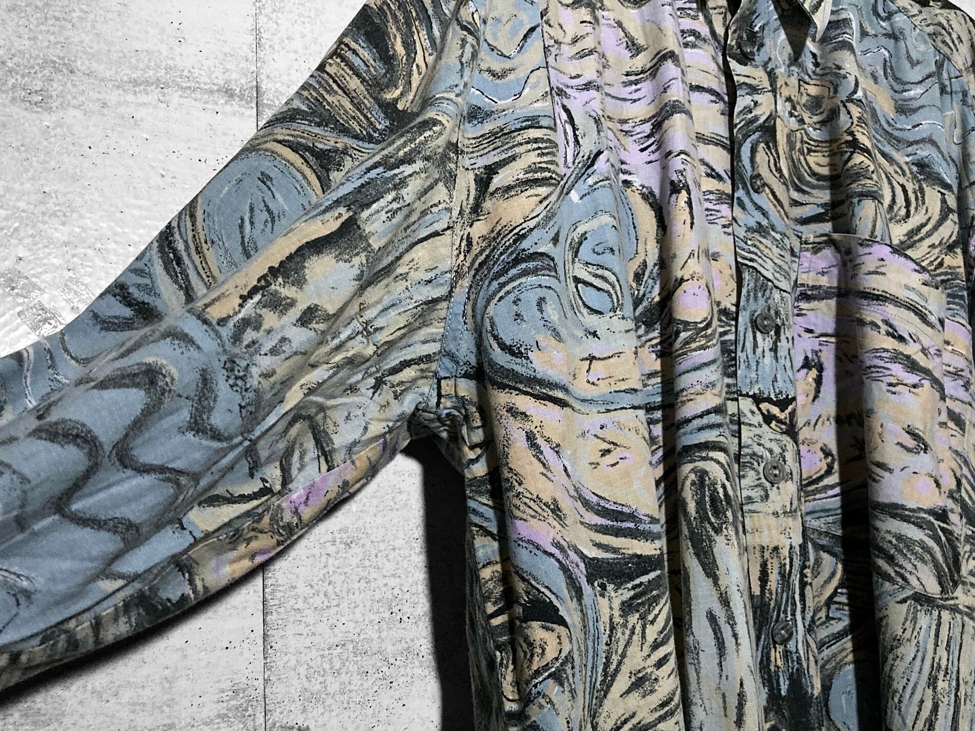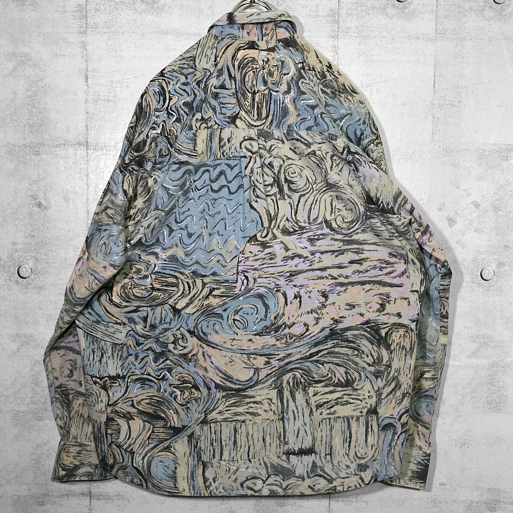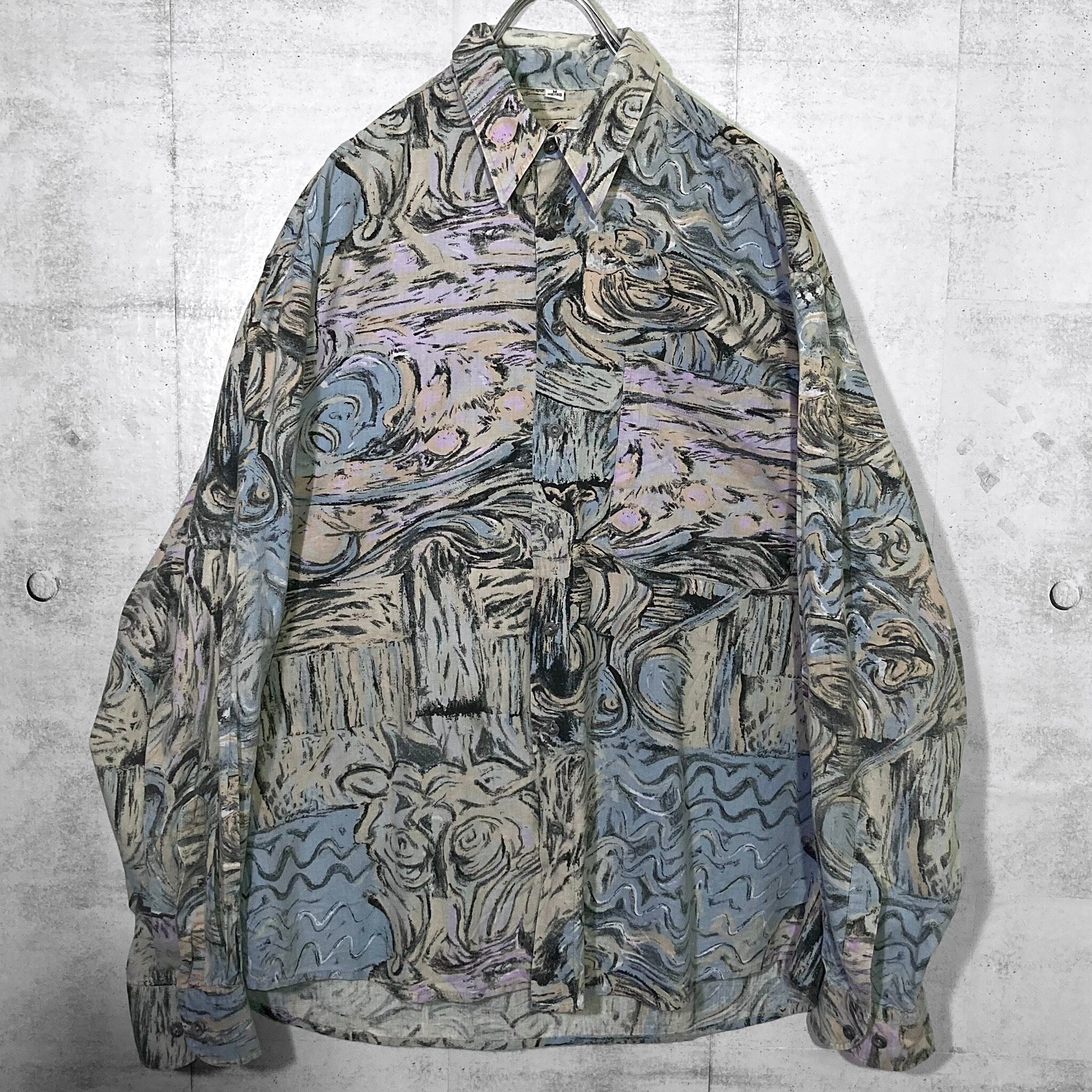 " 渦 " Hand drawn art full pattern design L/S shirt
