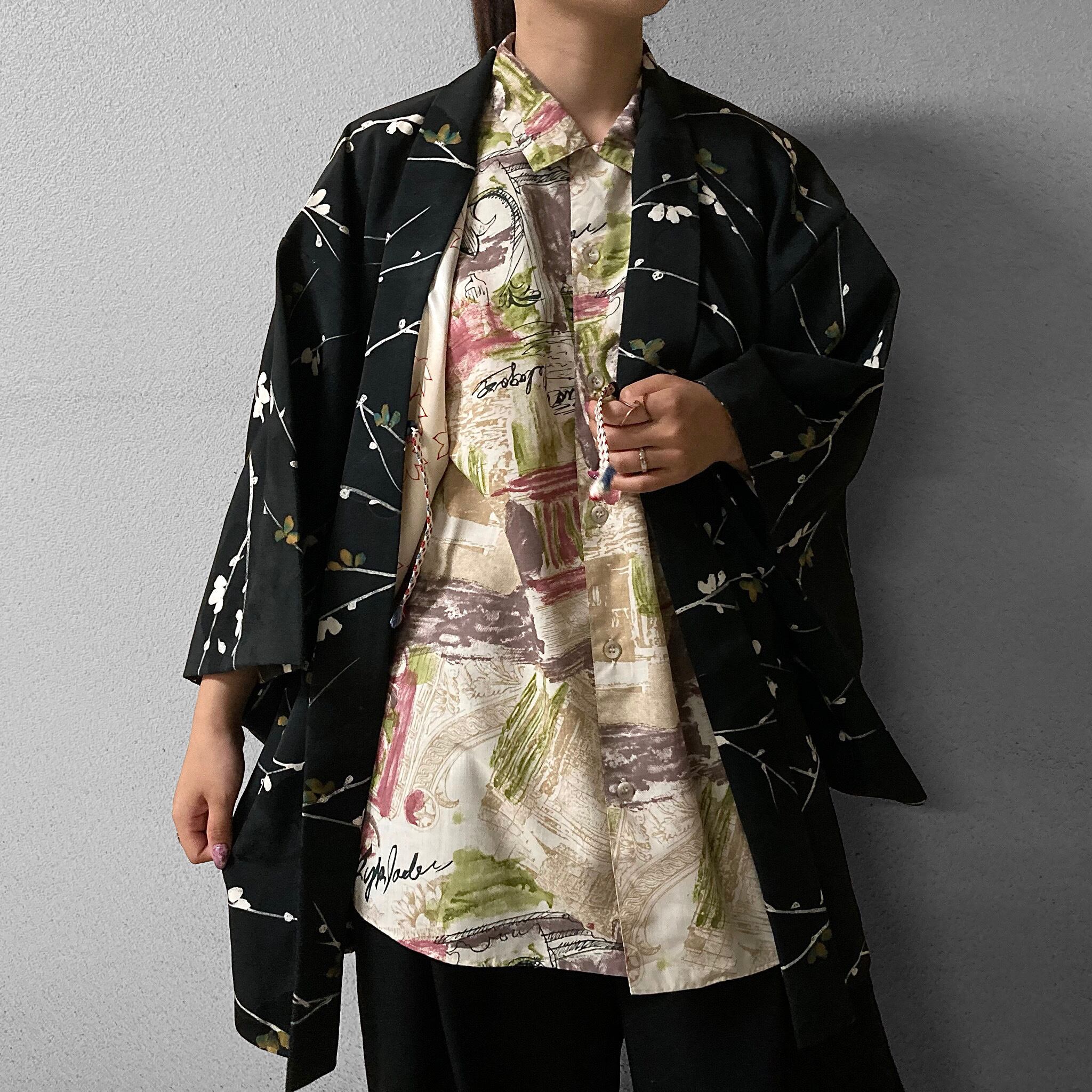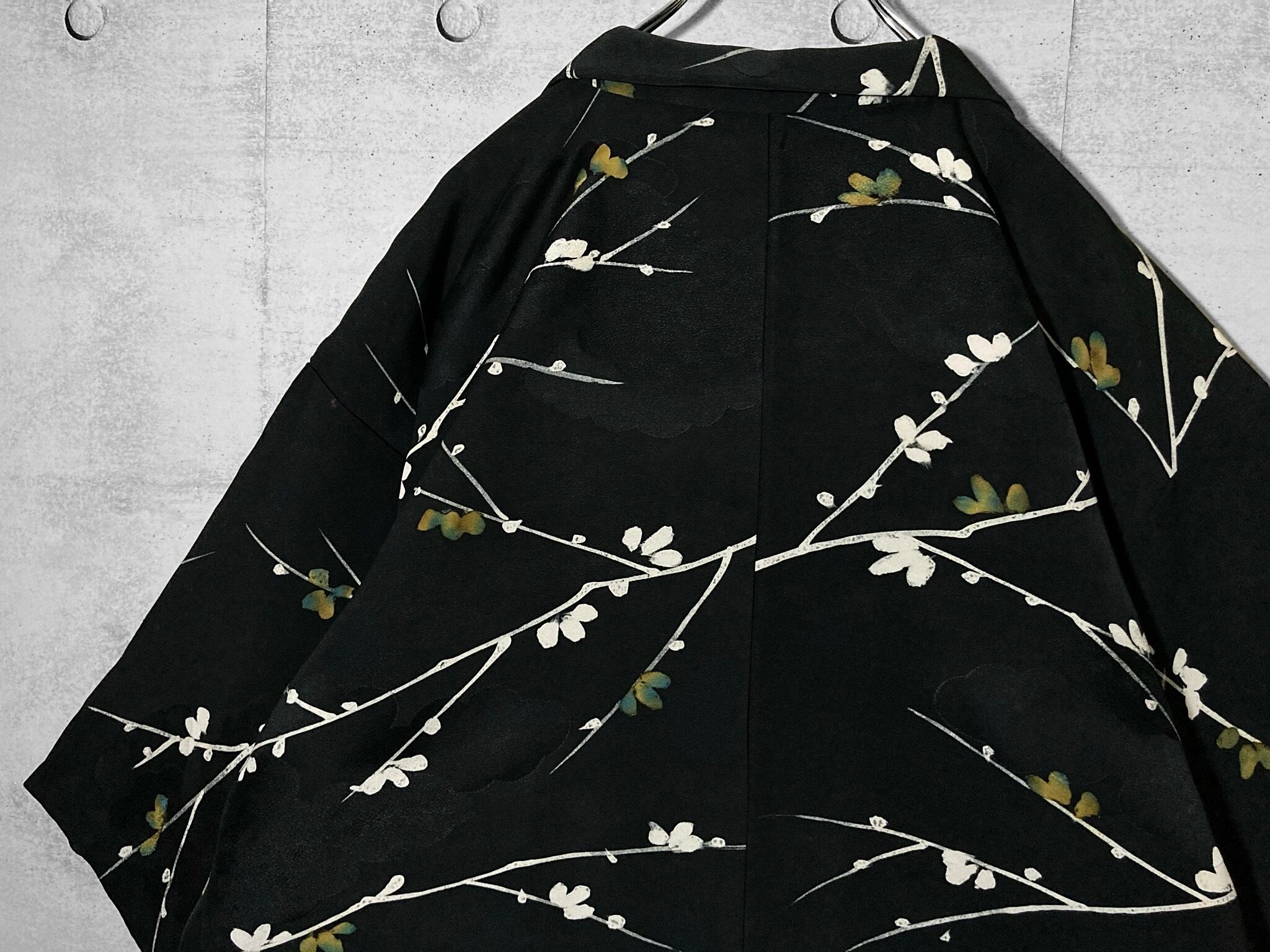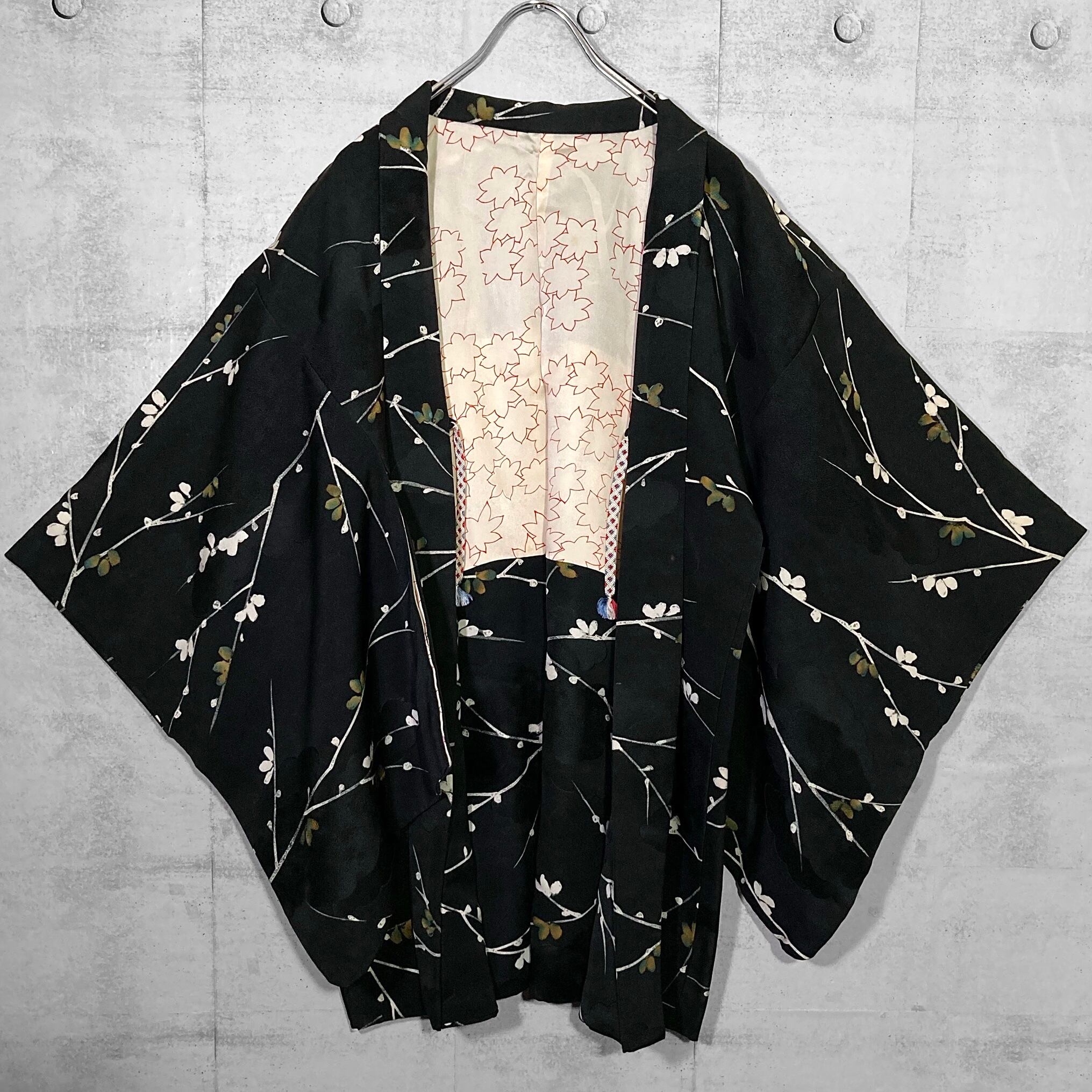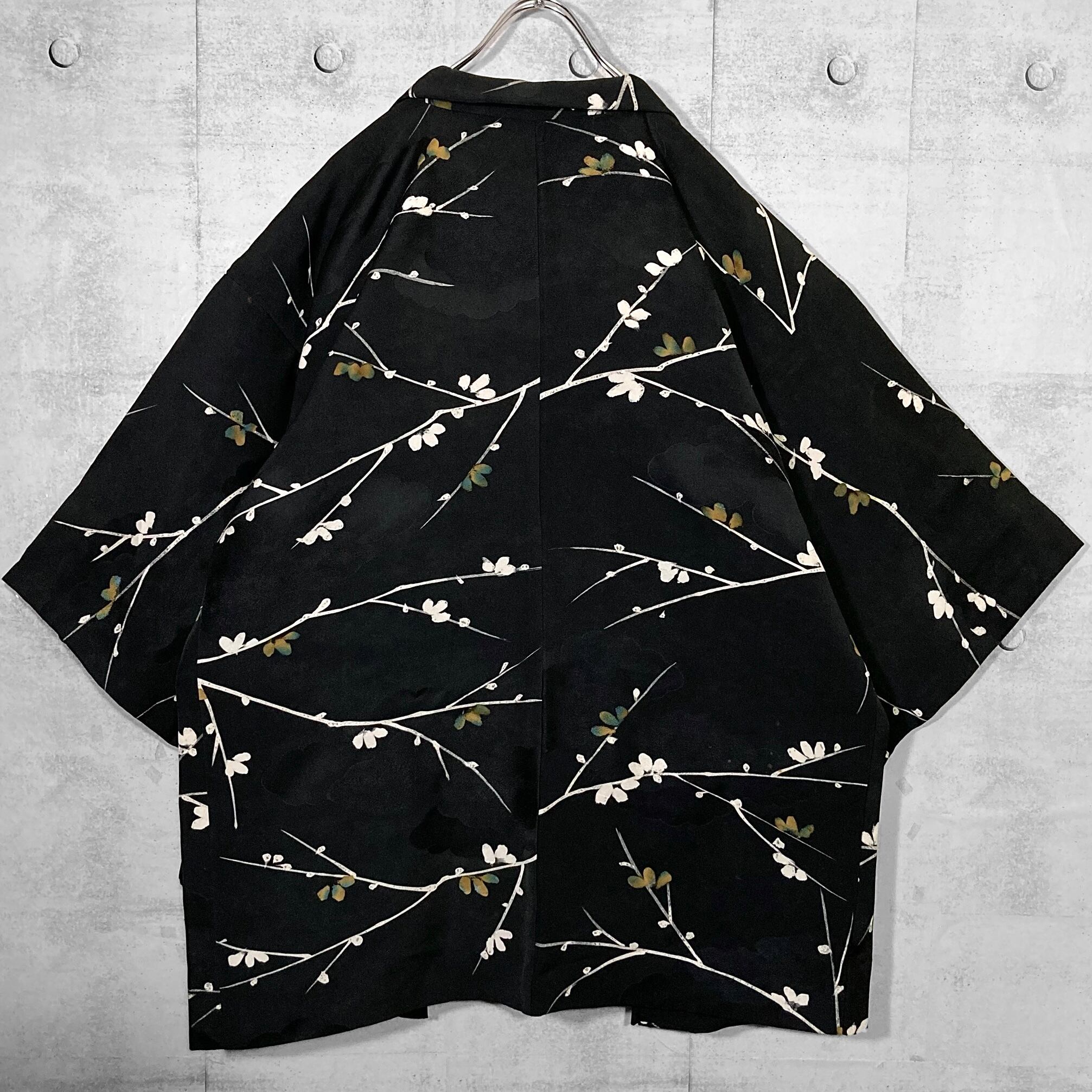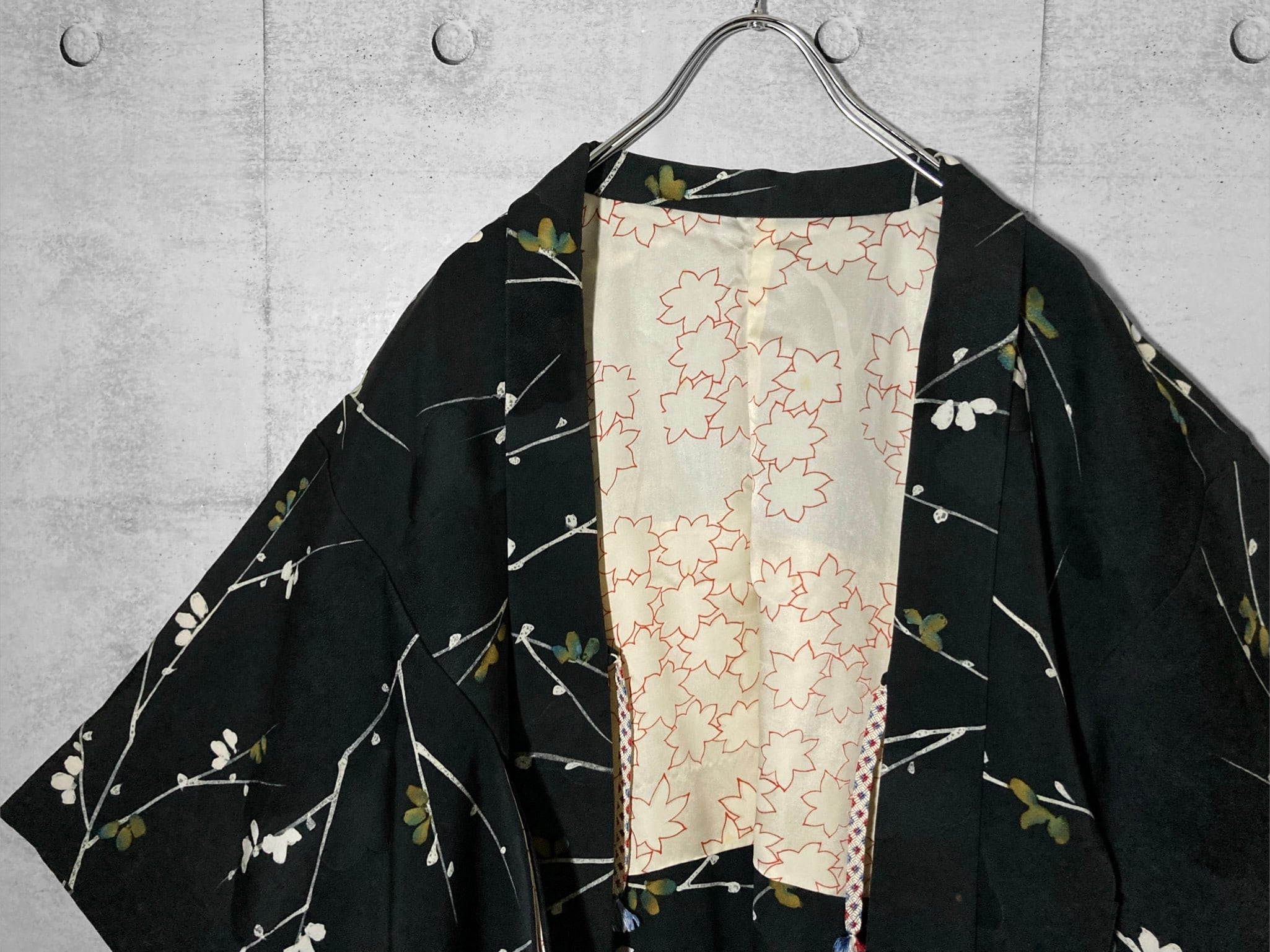 華蕾 Flower bud full pattern design Japanese vintage Black haori