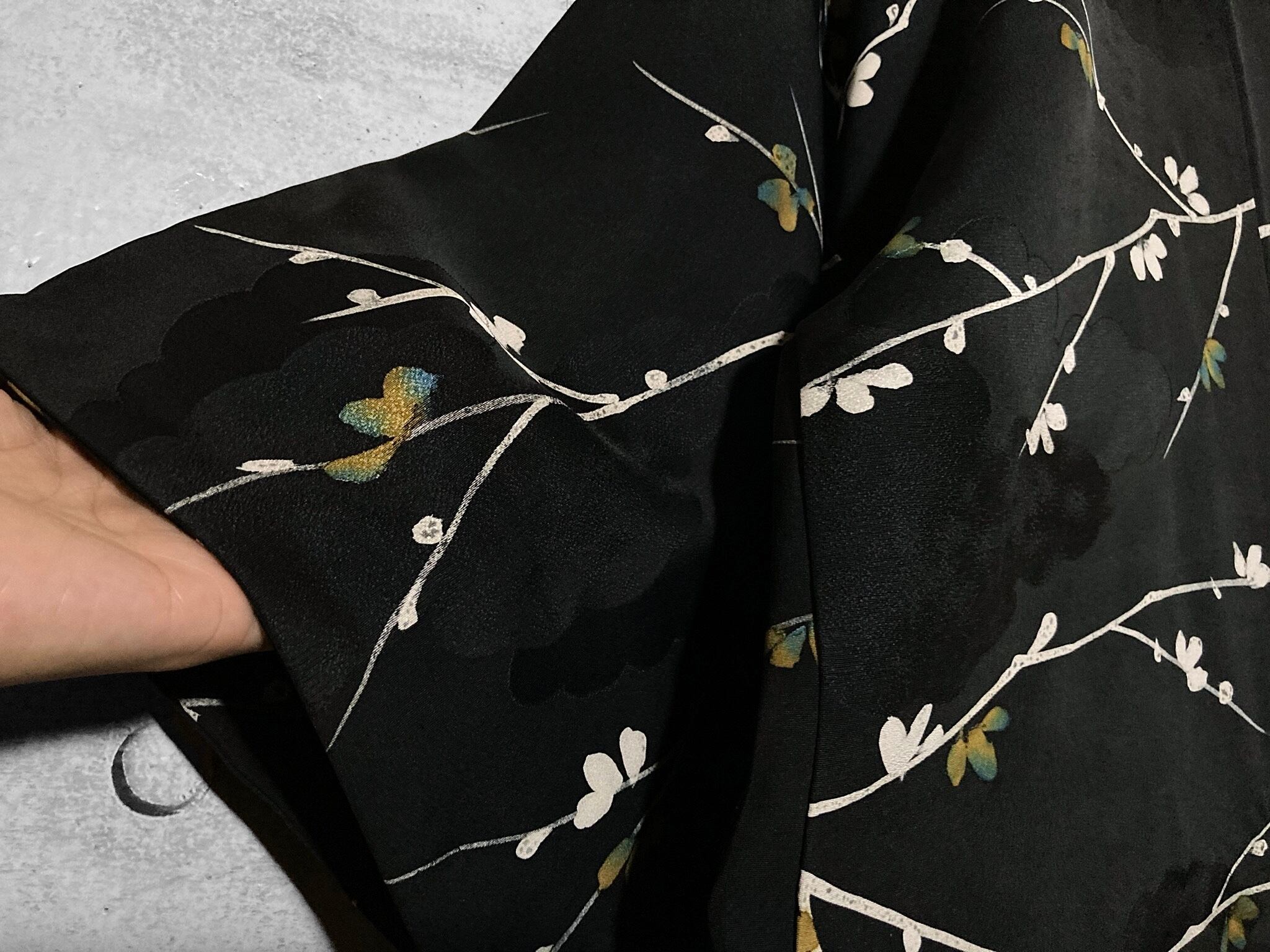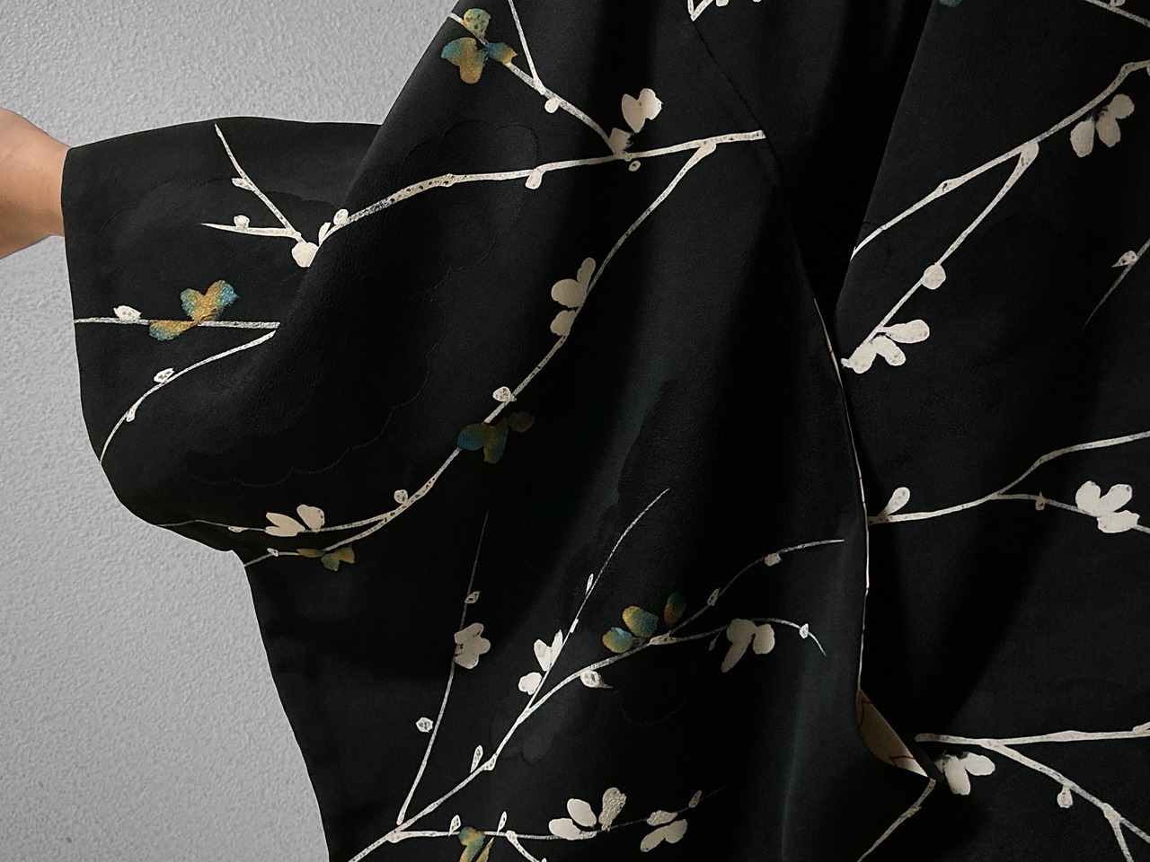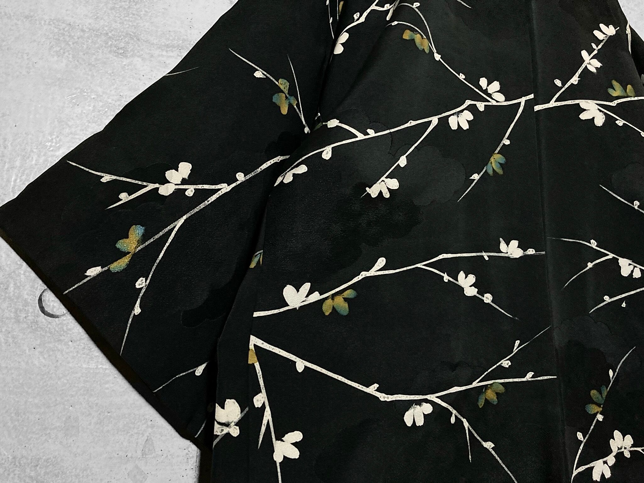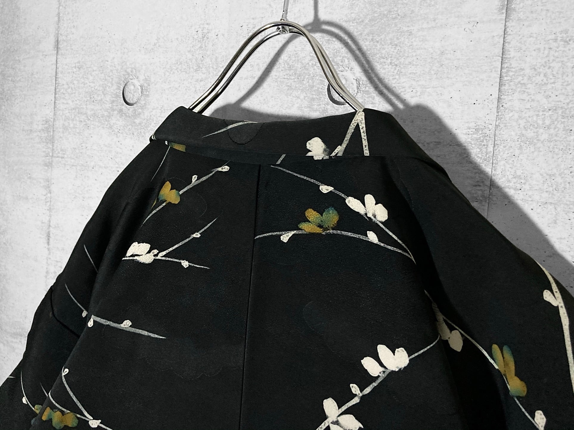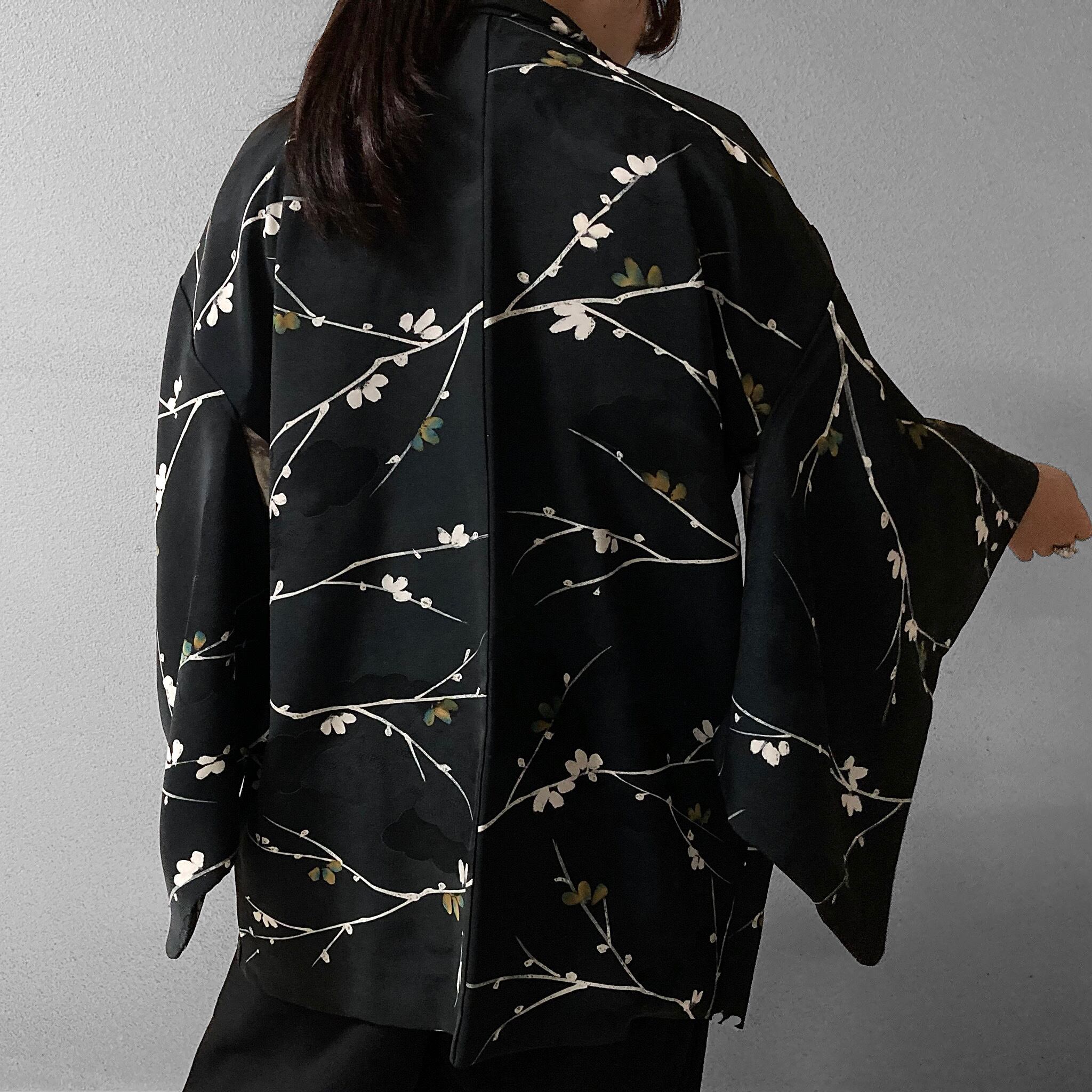 華蕾 Flower bud full pattern design Japanese vintage Black haori