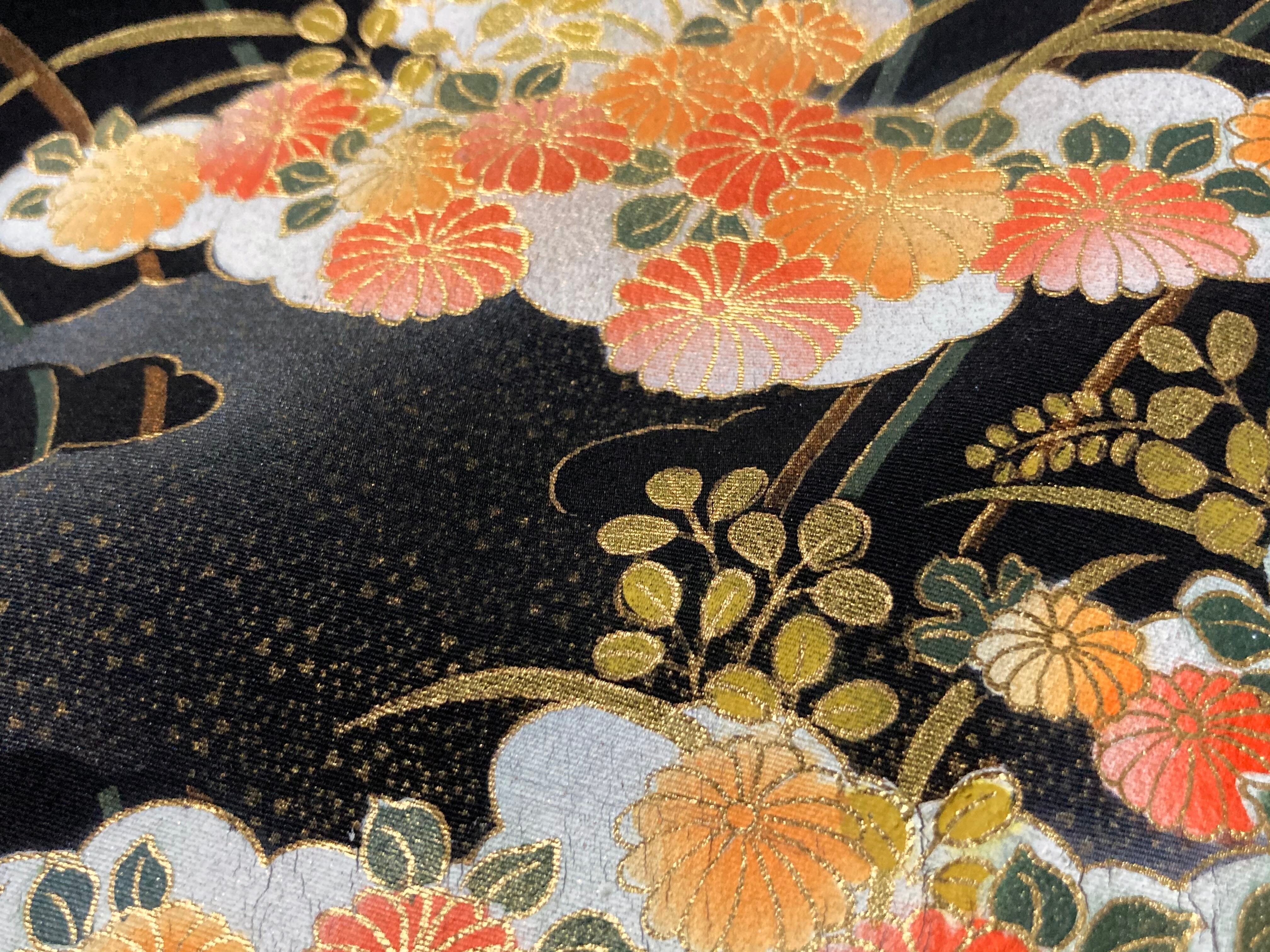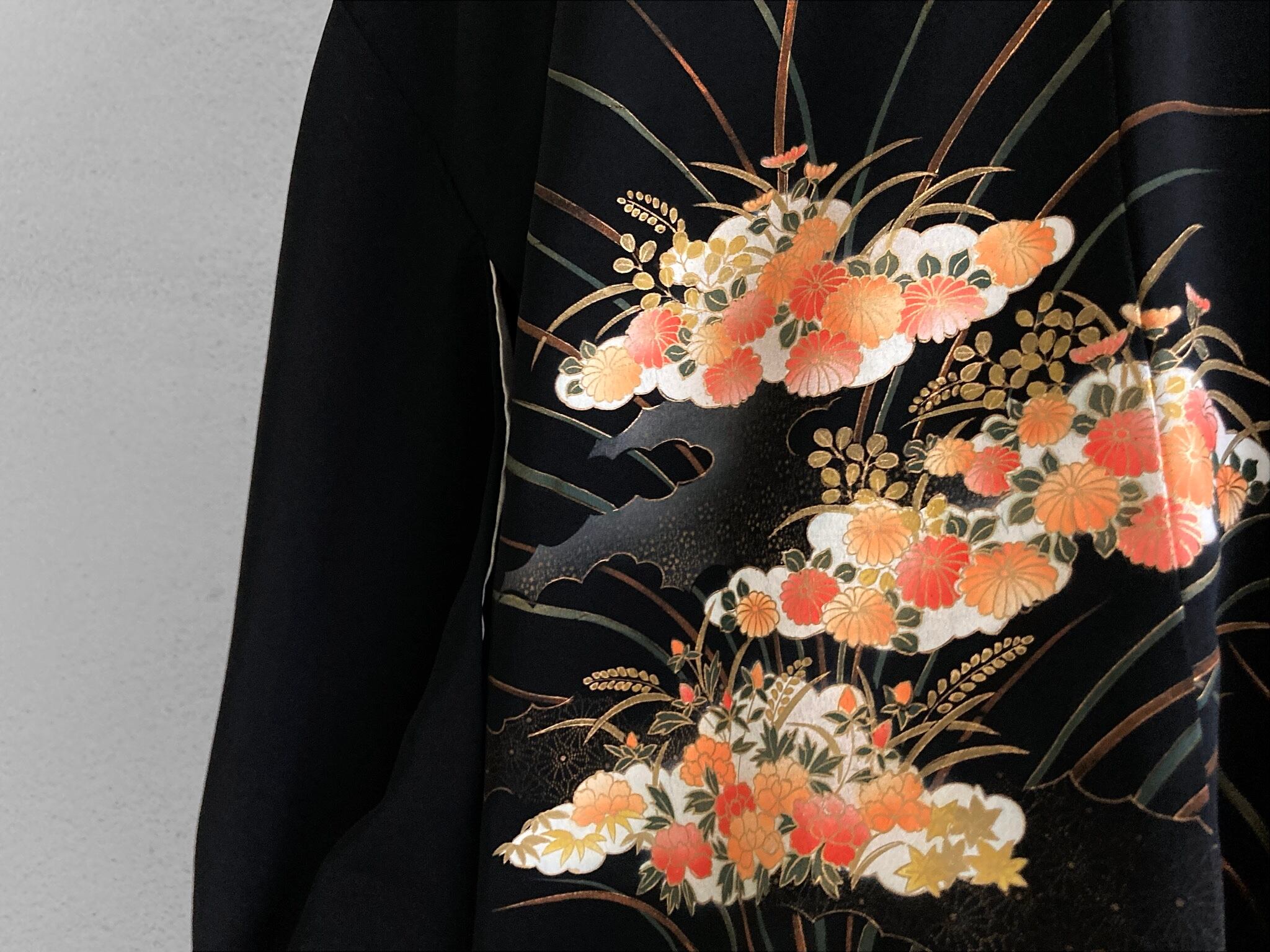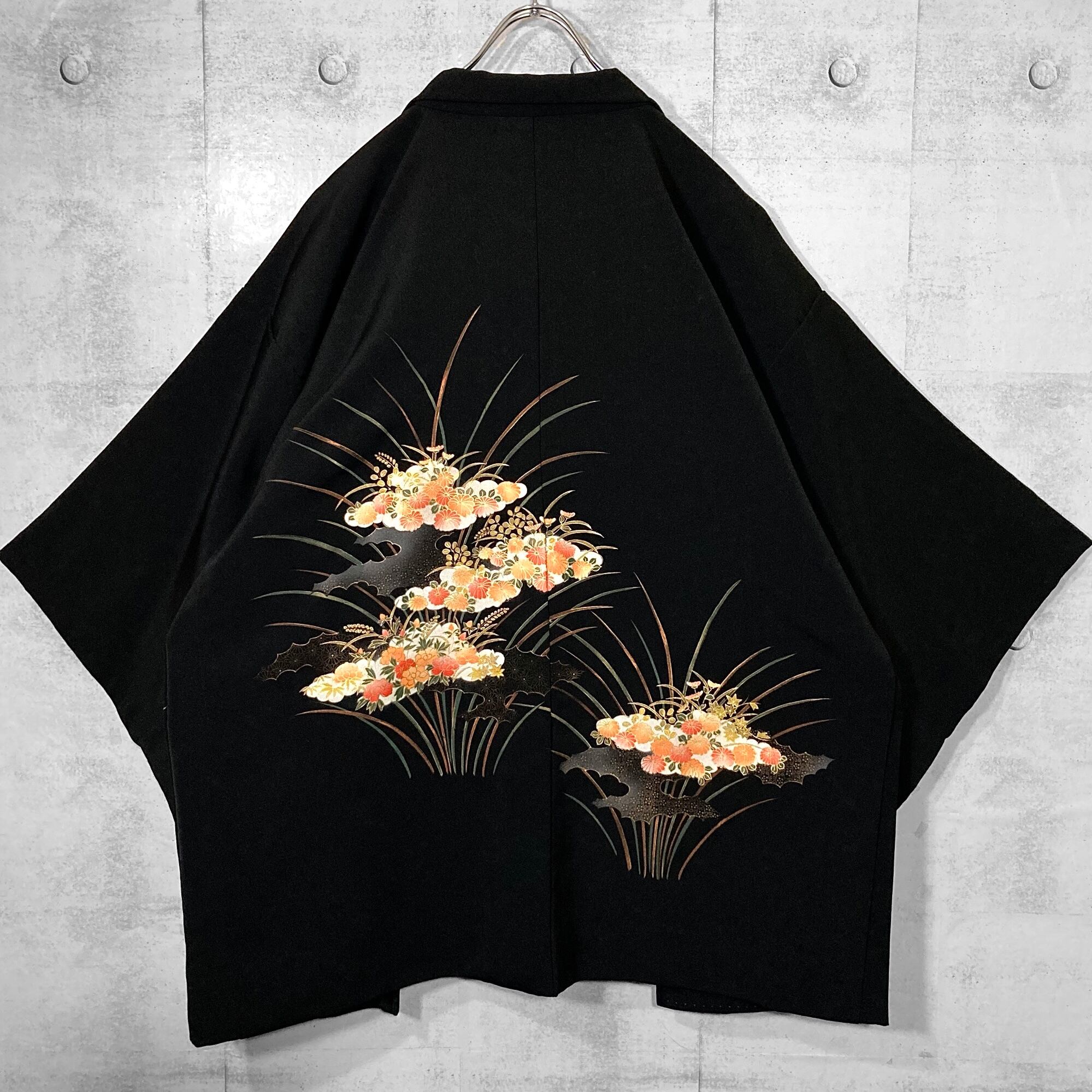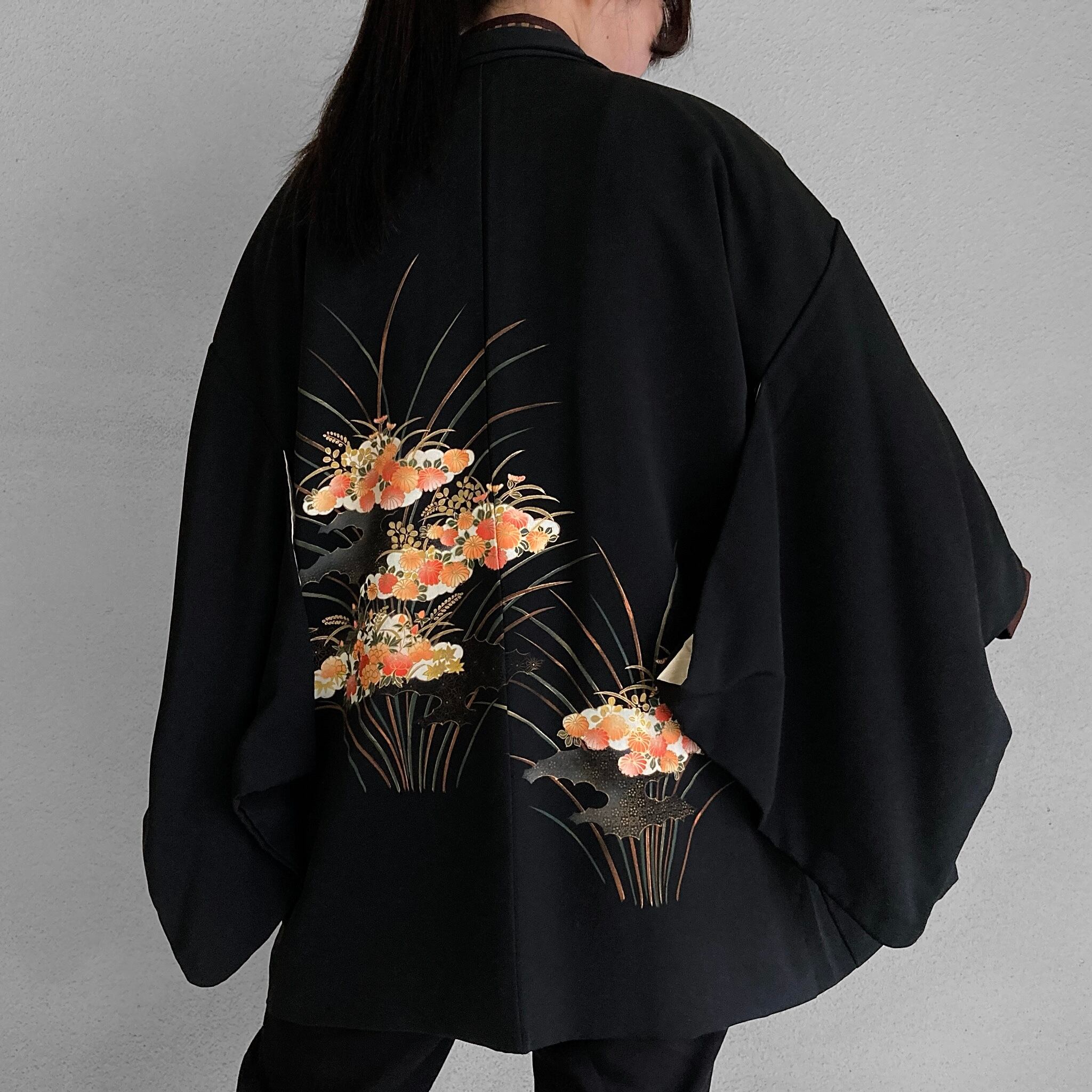 秋菊 Chrysanthemum print pattern design Japanese vintage Black haori