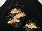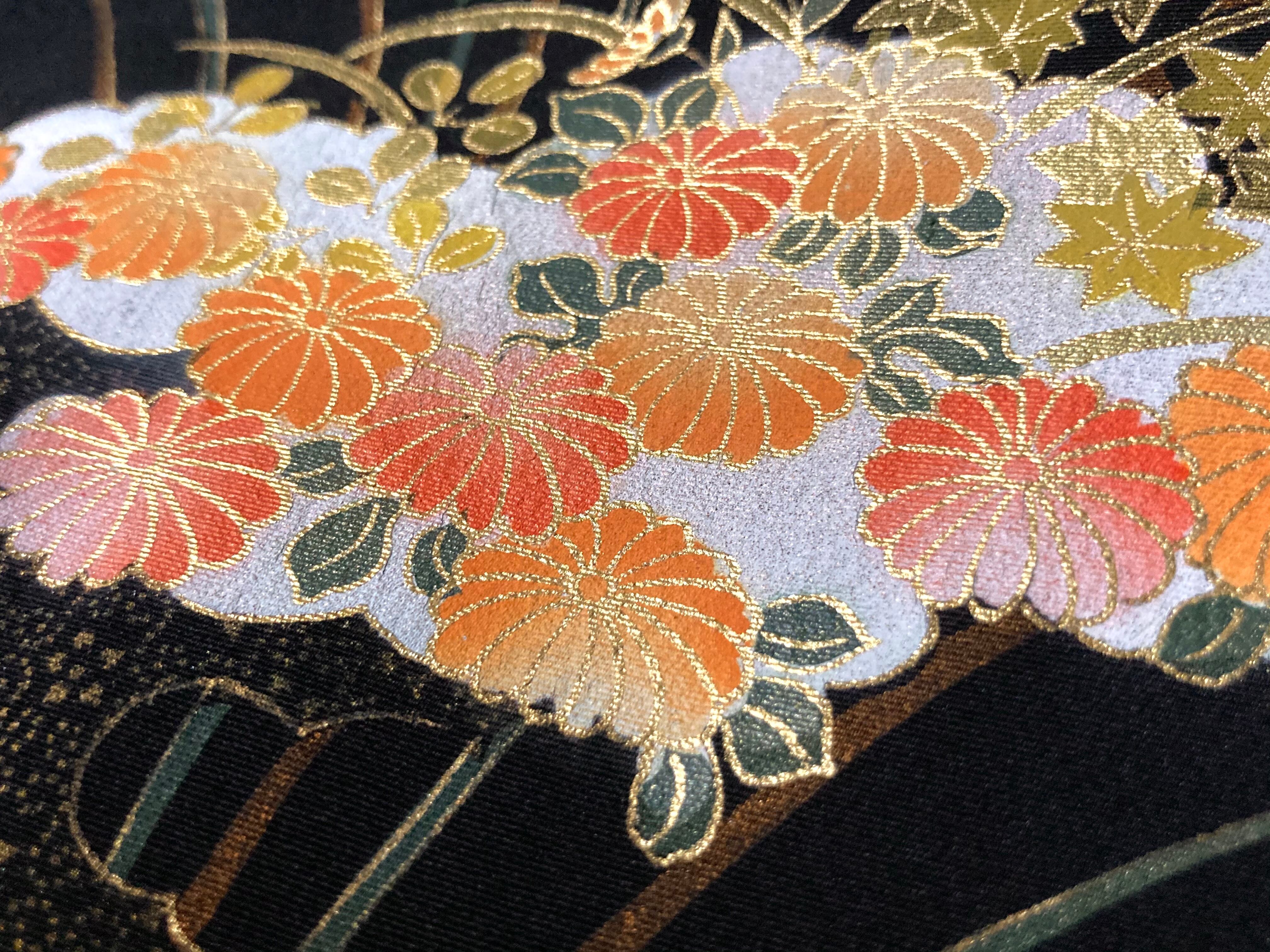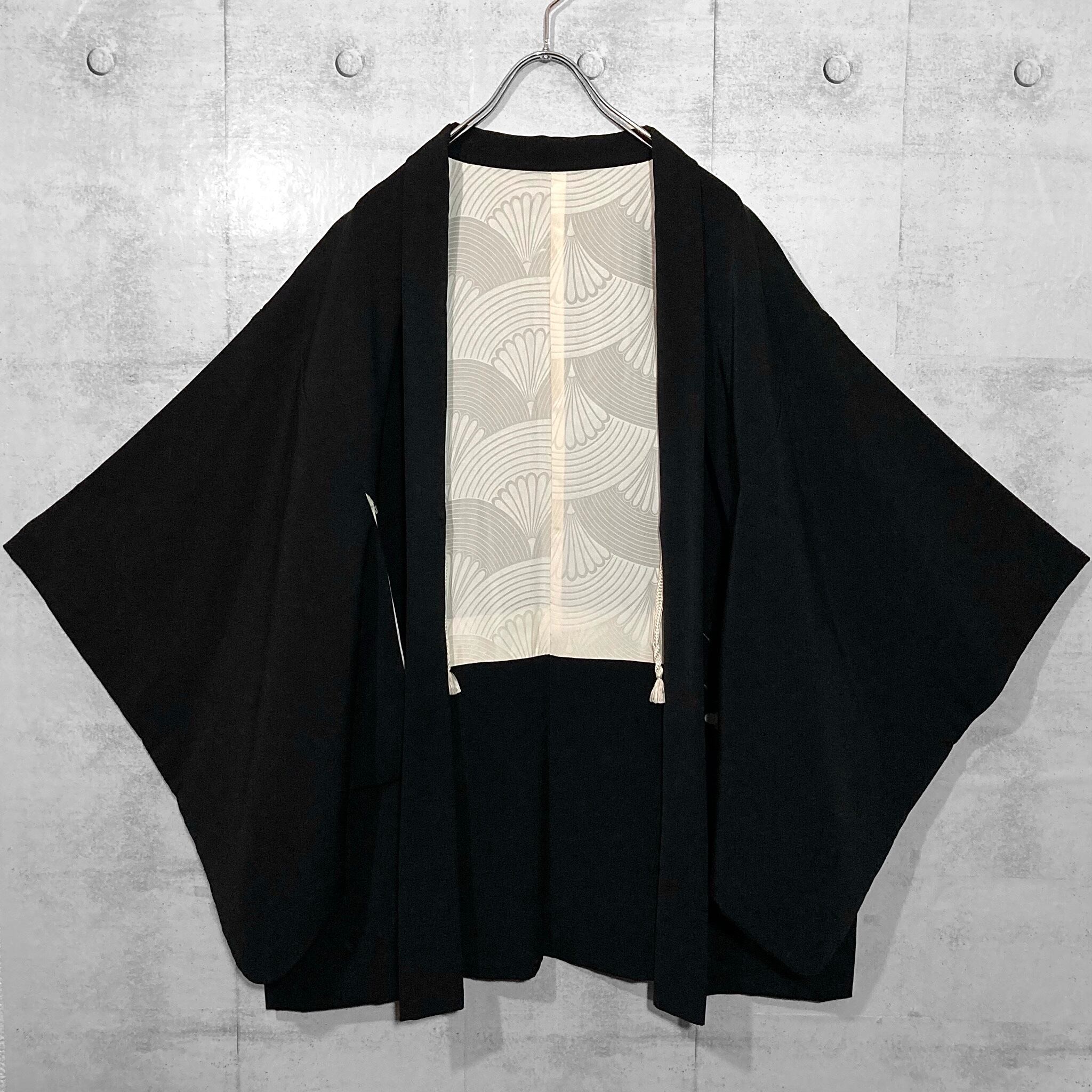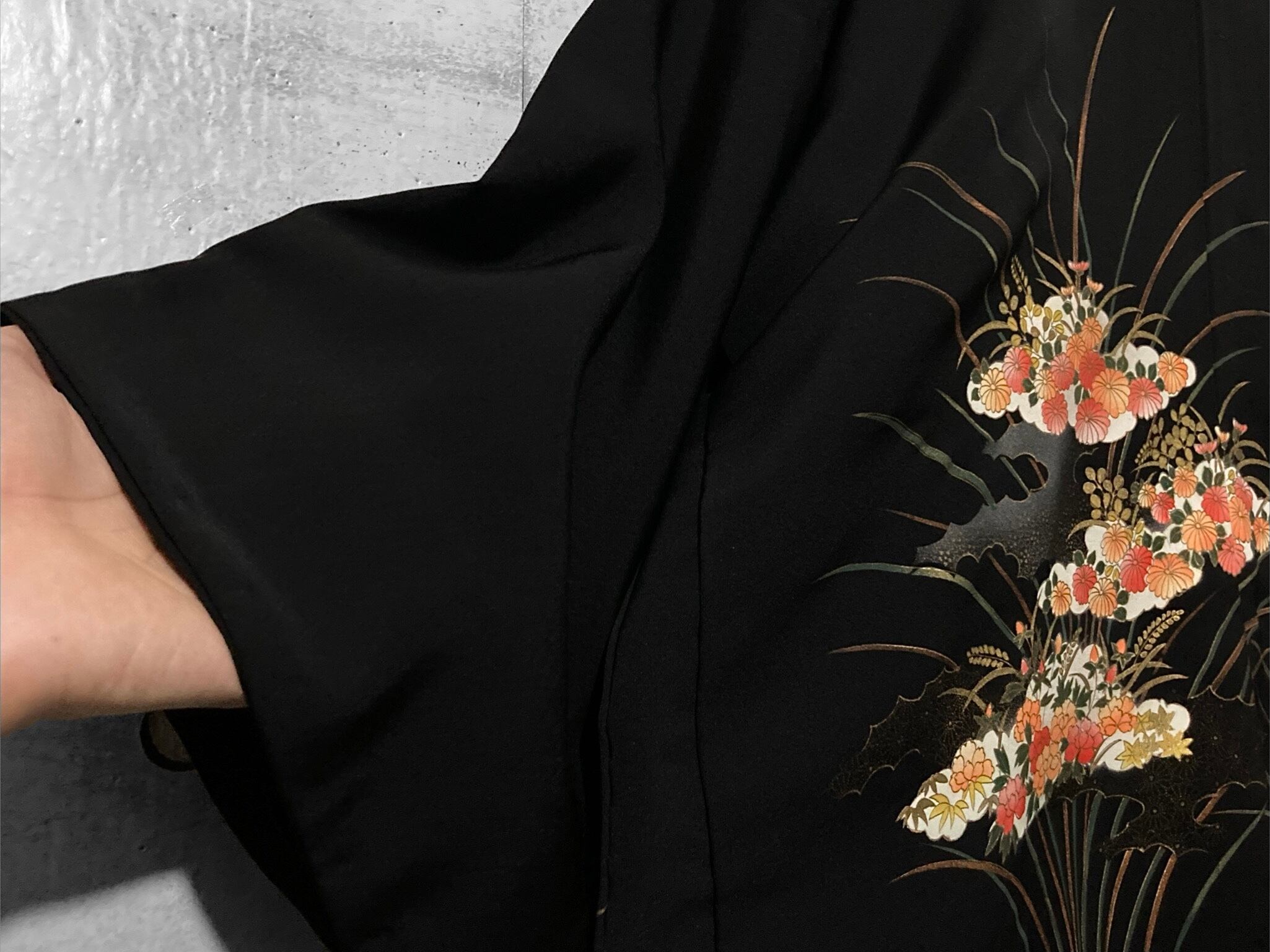 秋菊 Chrysanthemum print pattern design Japanese vintage Black haori