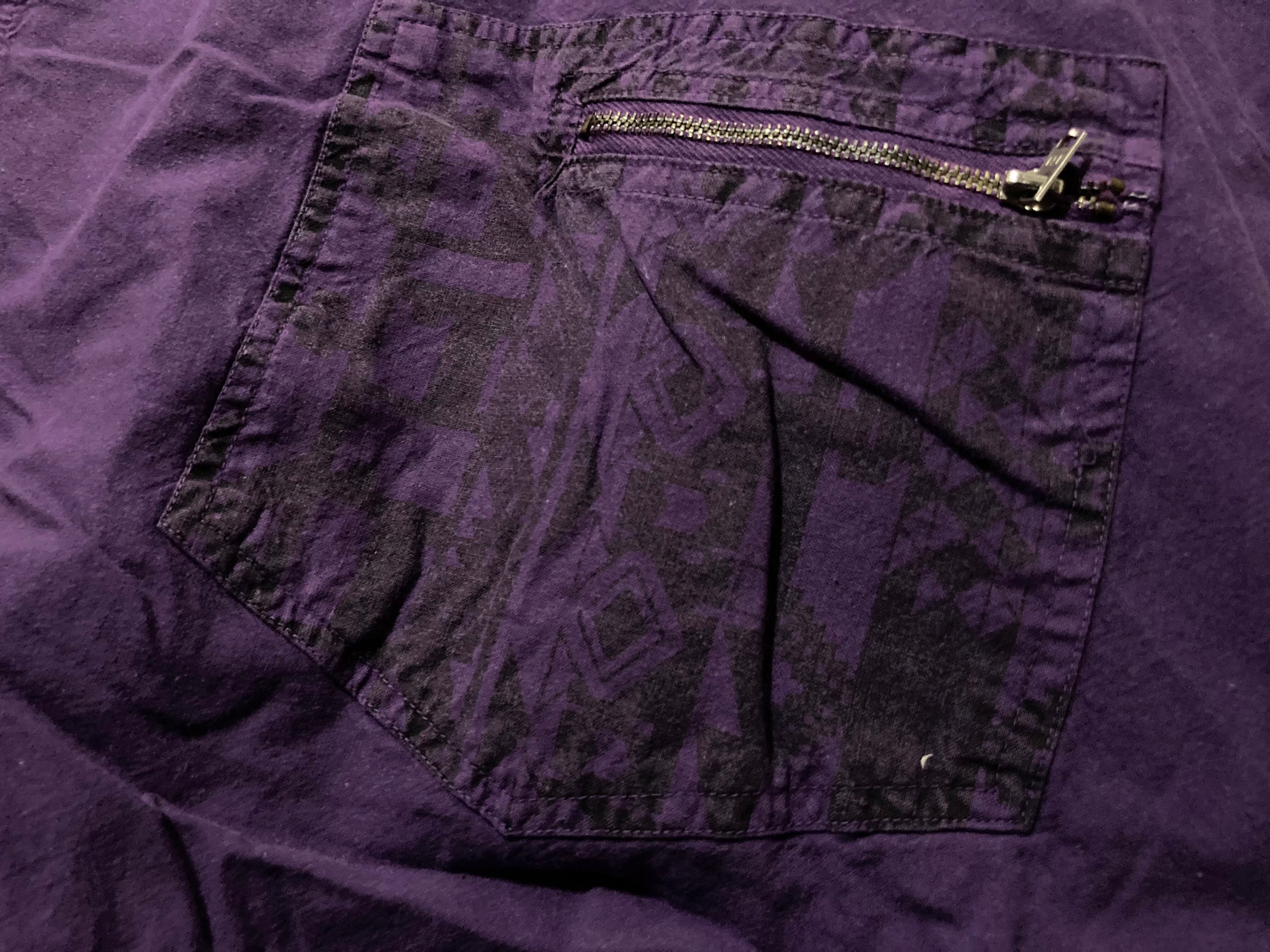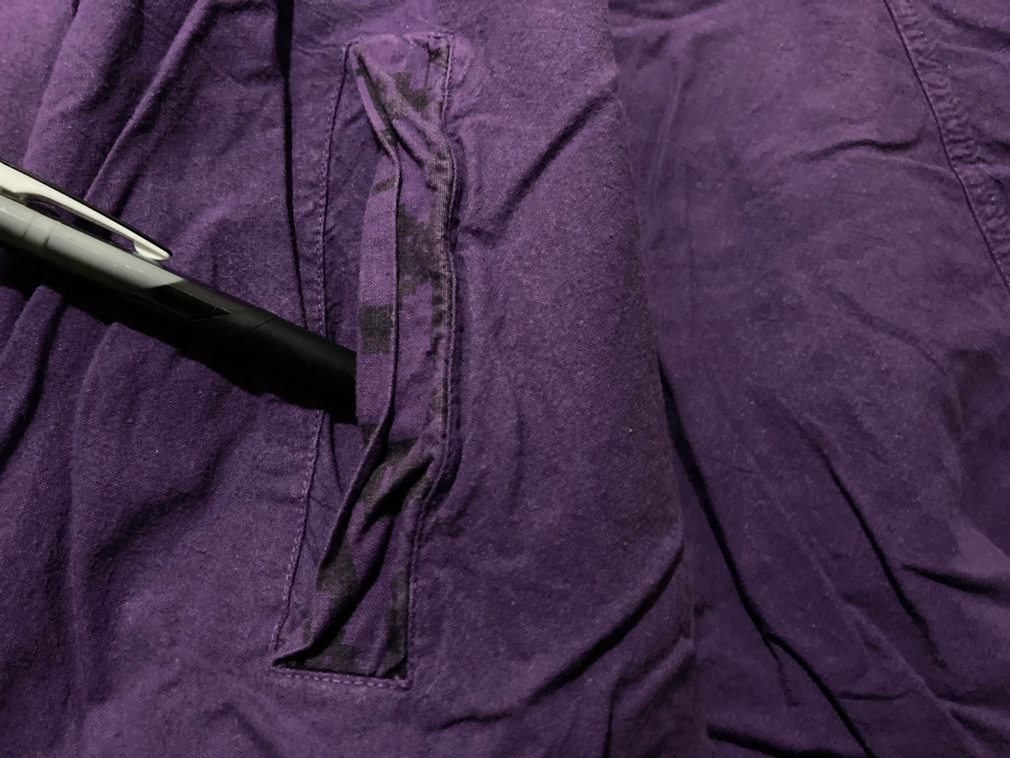 左右非対称なポケットの配置や幾何学柄の切り替えなど細かいデザインがgood。
