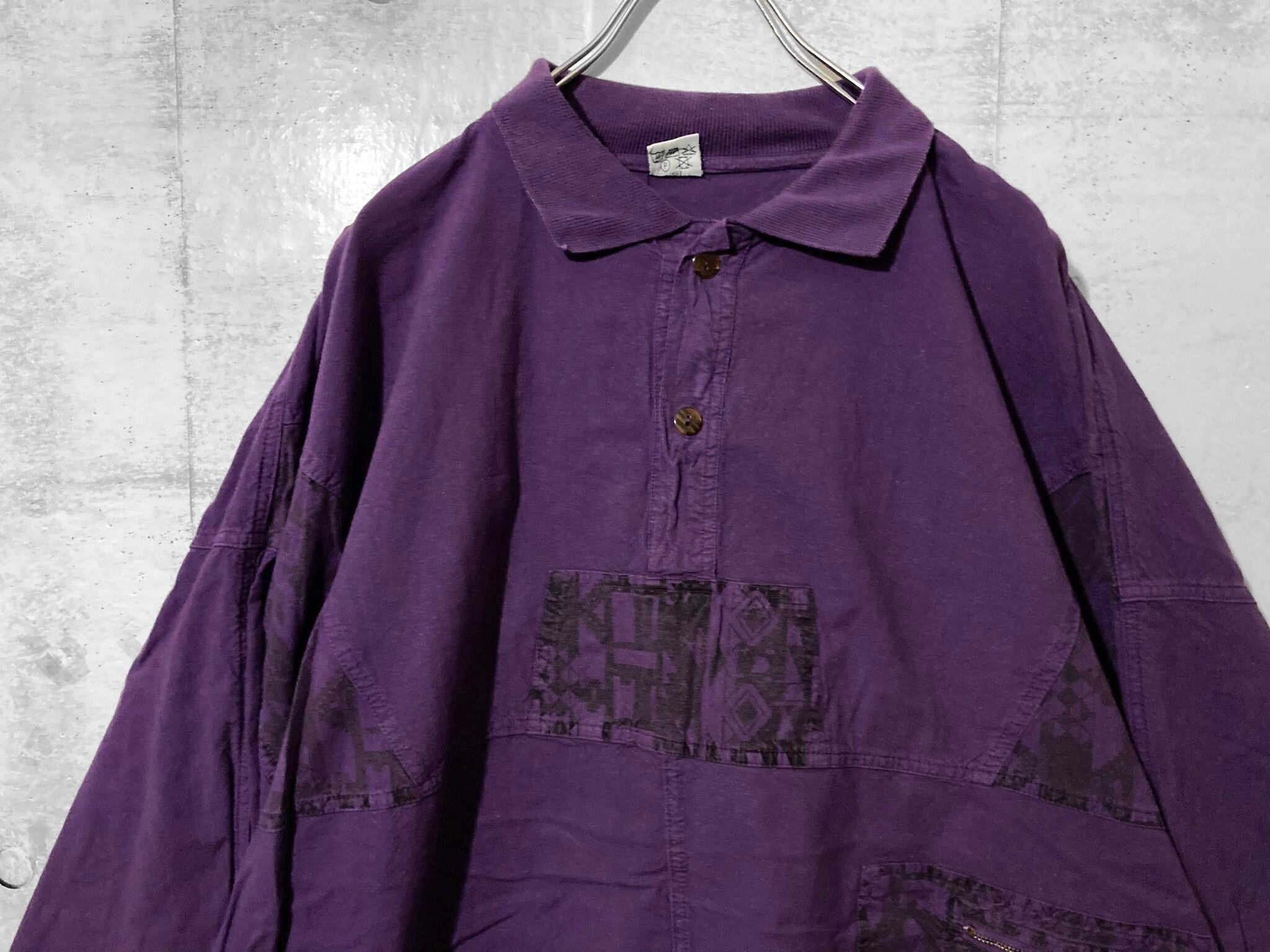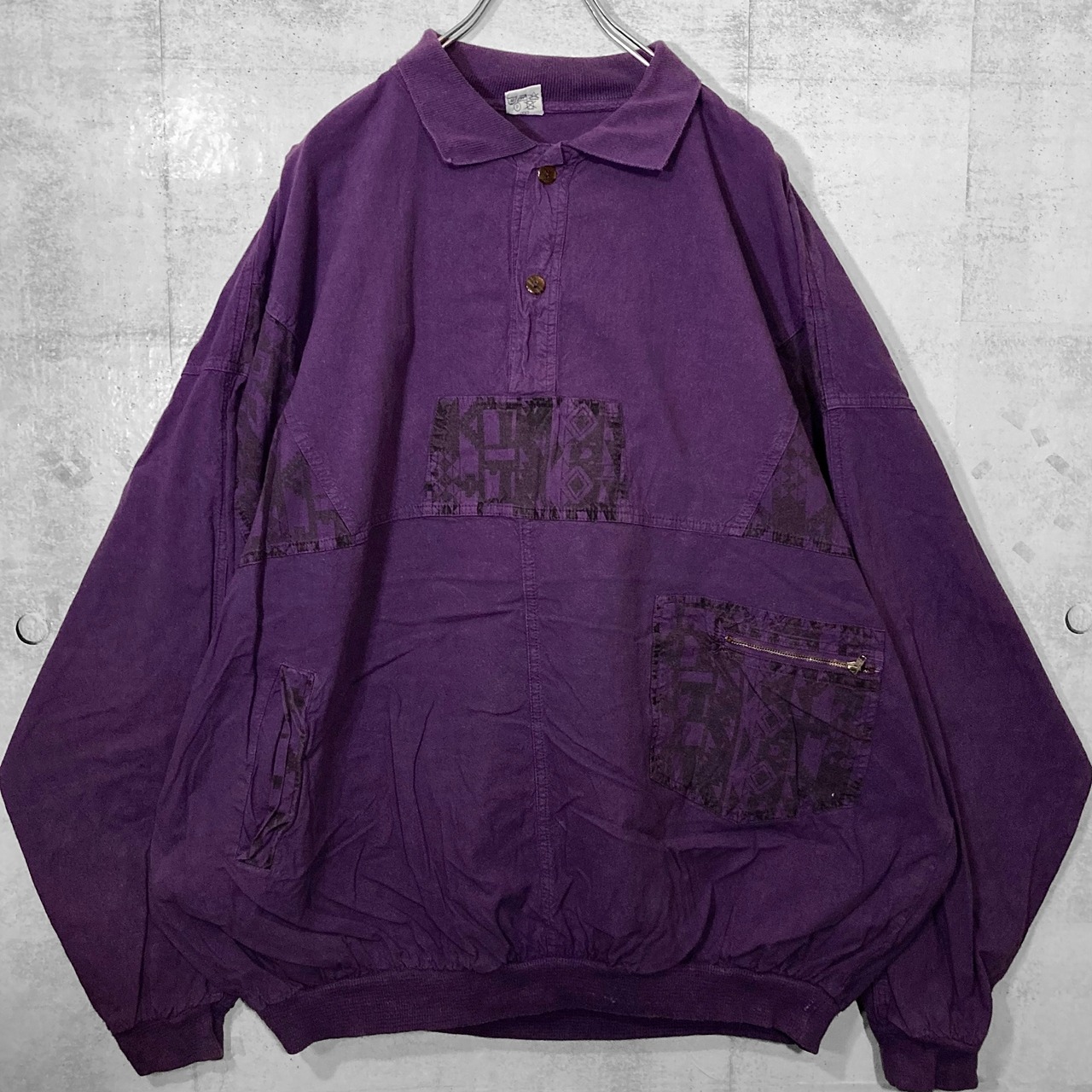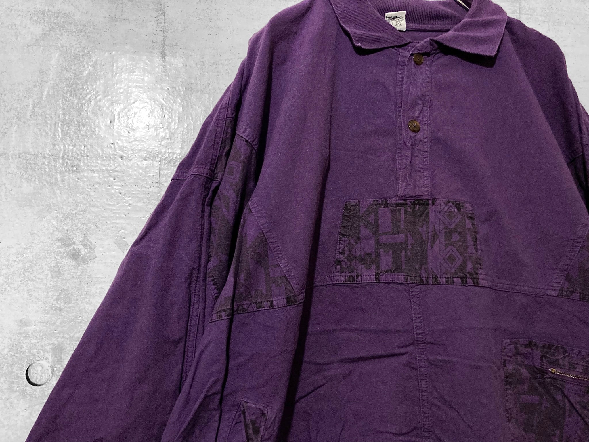 Purple color × Geometric pattern design Wide silhouette Half button Pull-over jacket