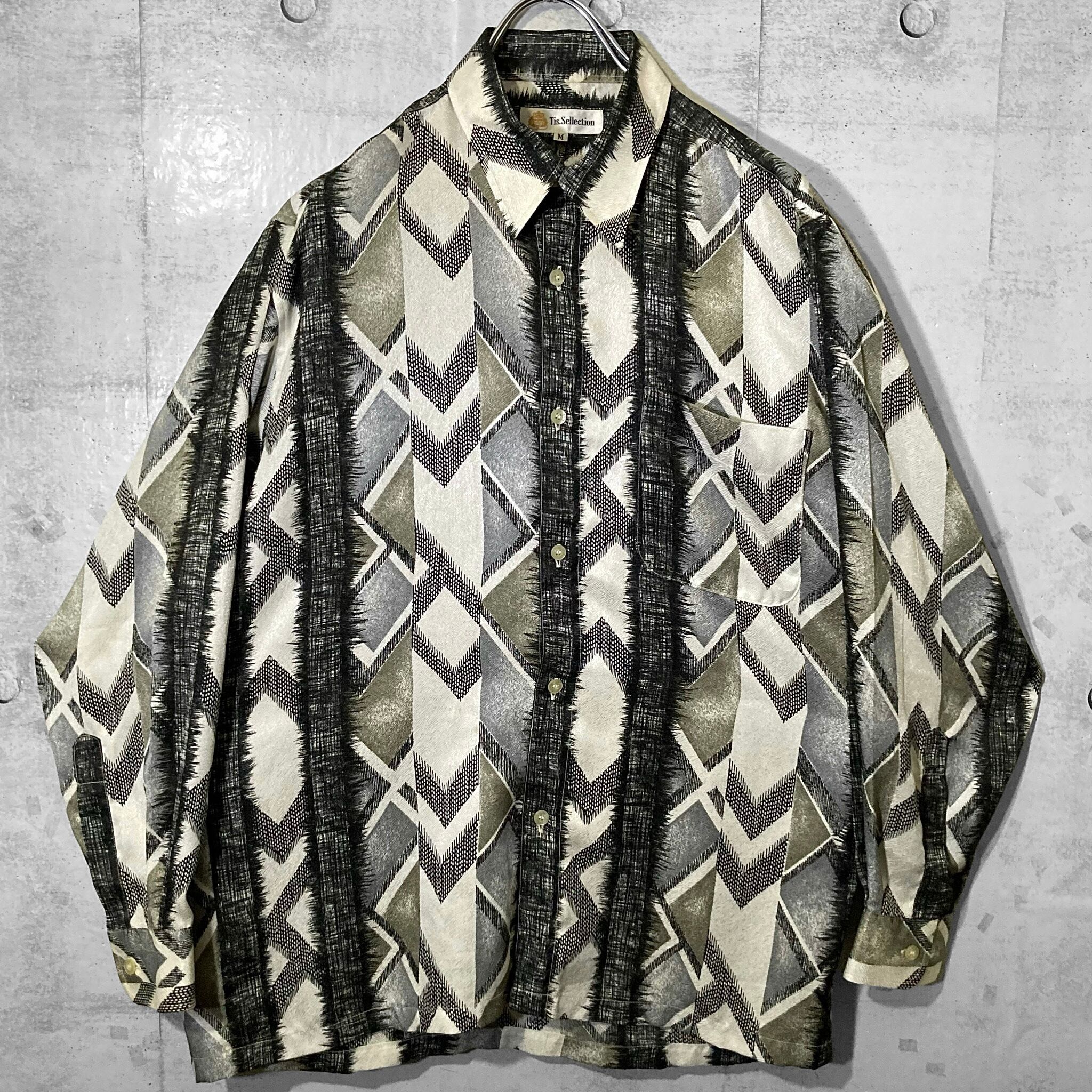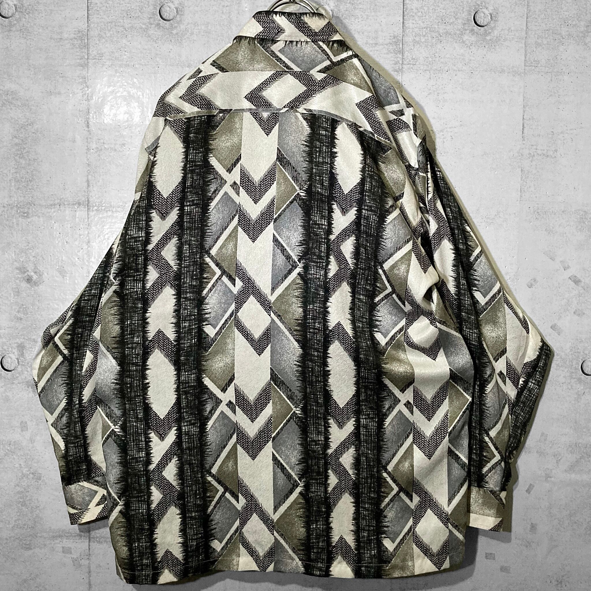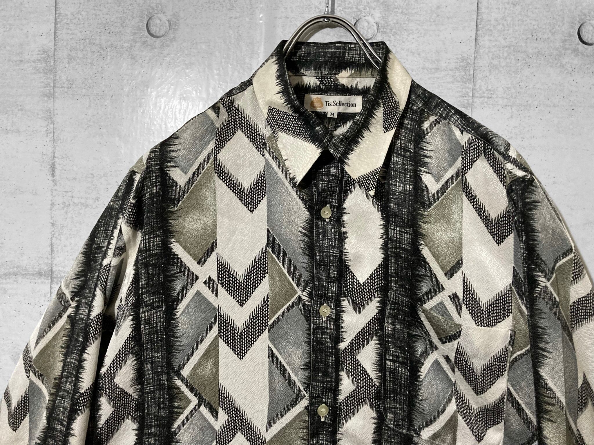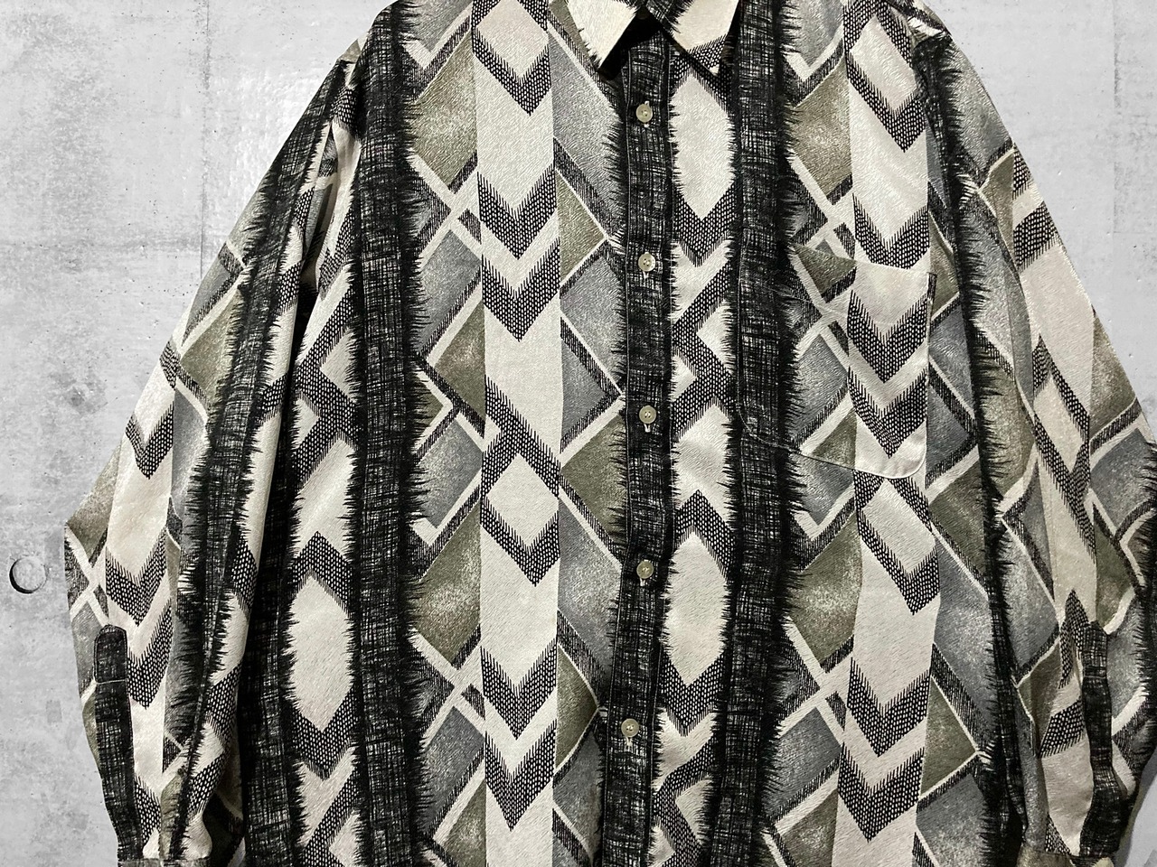 オフホワイトにのせた幾何学パターンの総柄シャツ♦︎♢