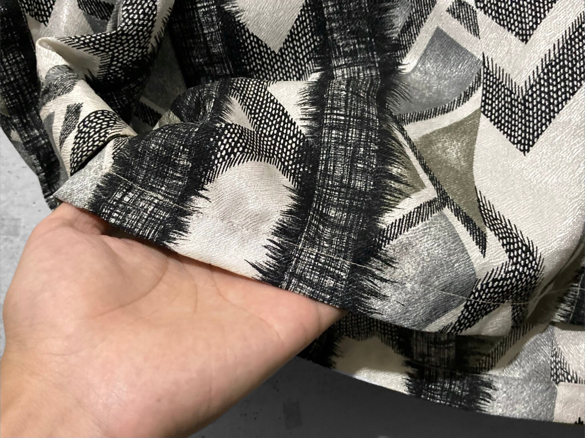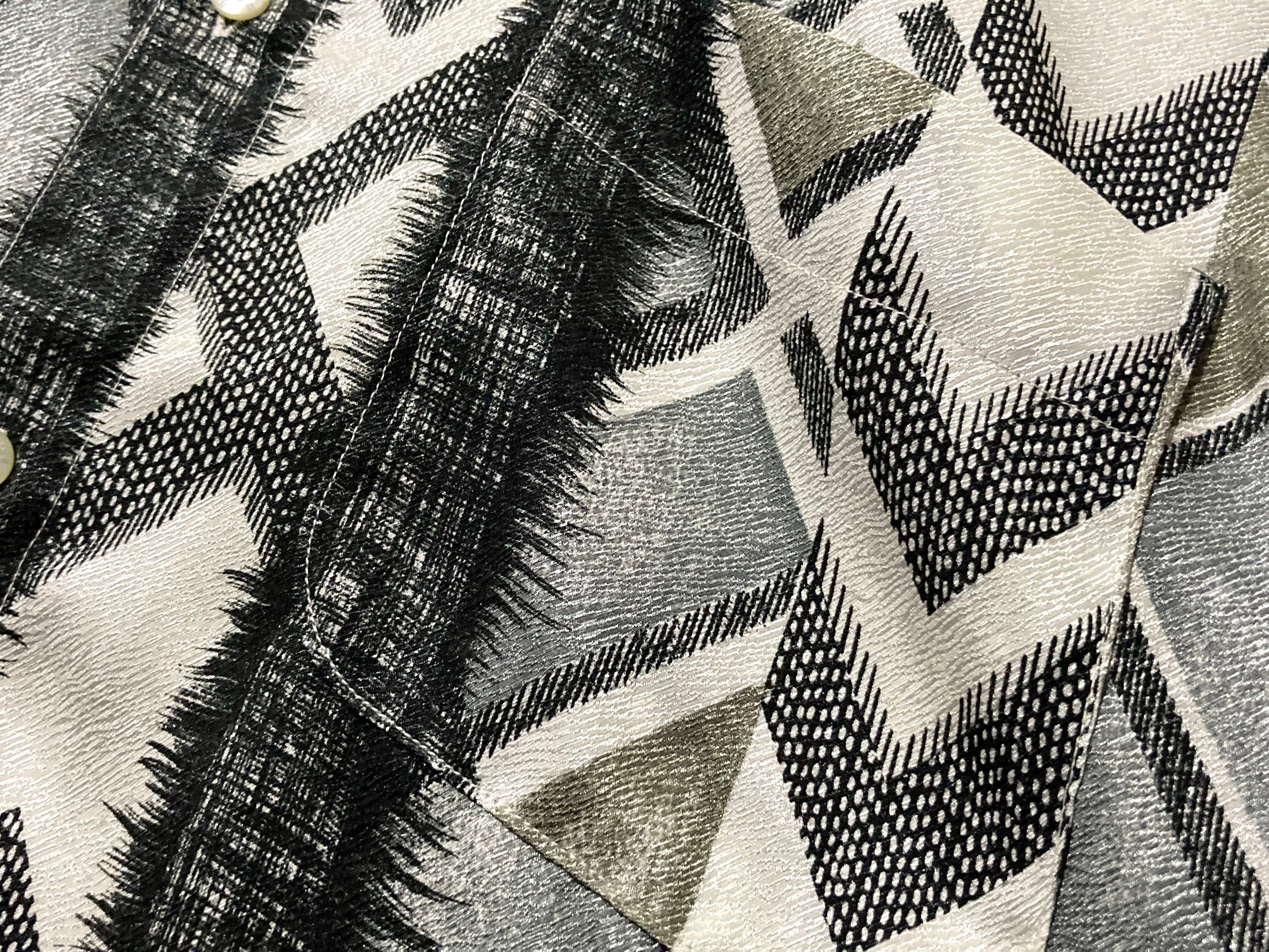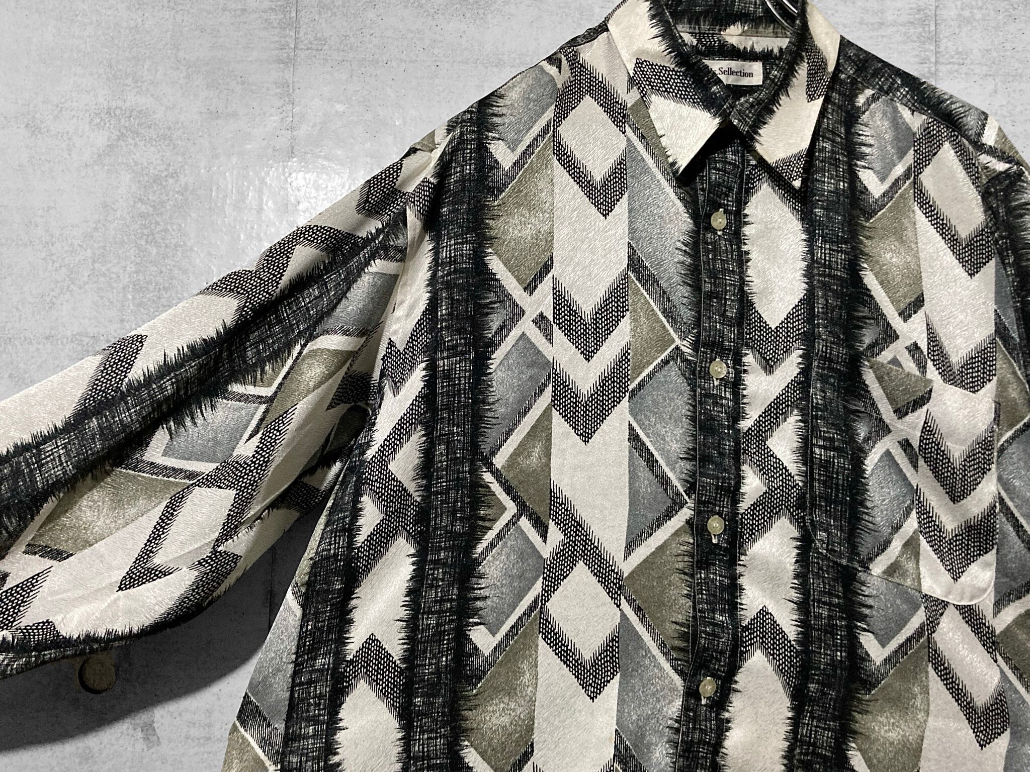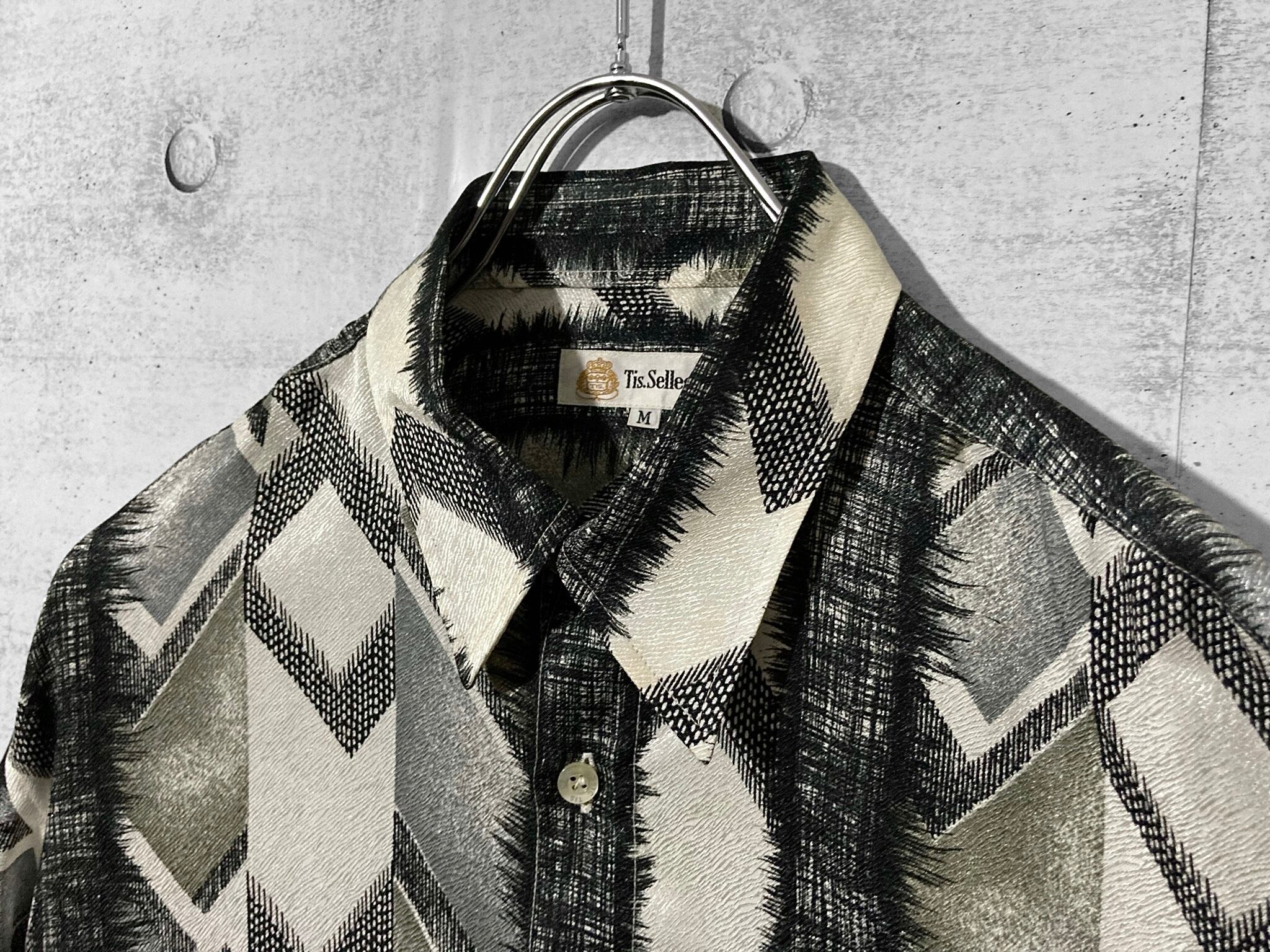 オフホワイトにのせた幾何学パターンの総柄シャツ♦︎♢