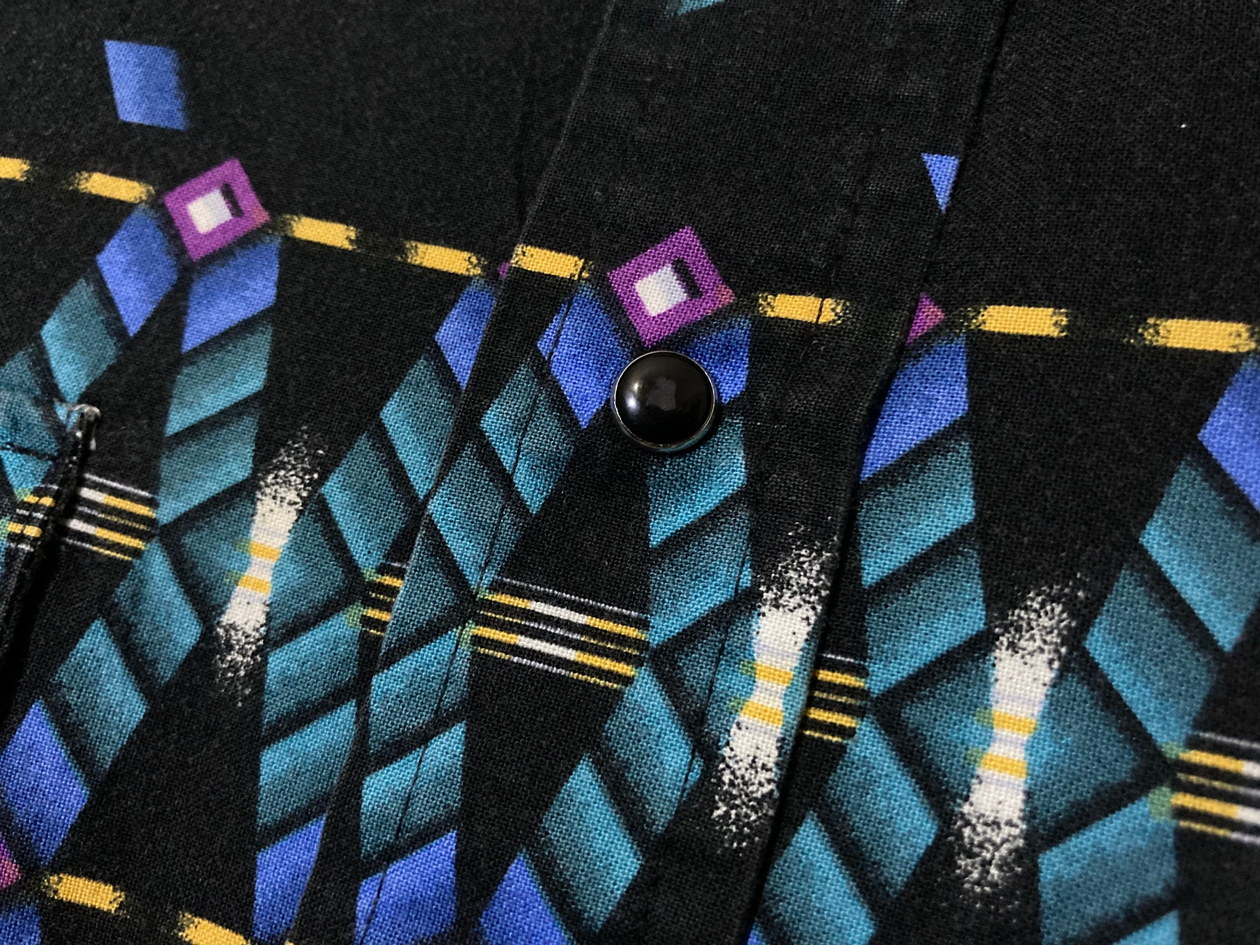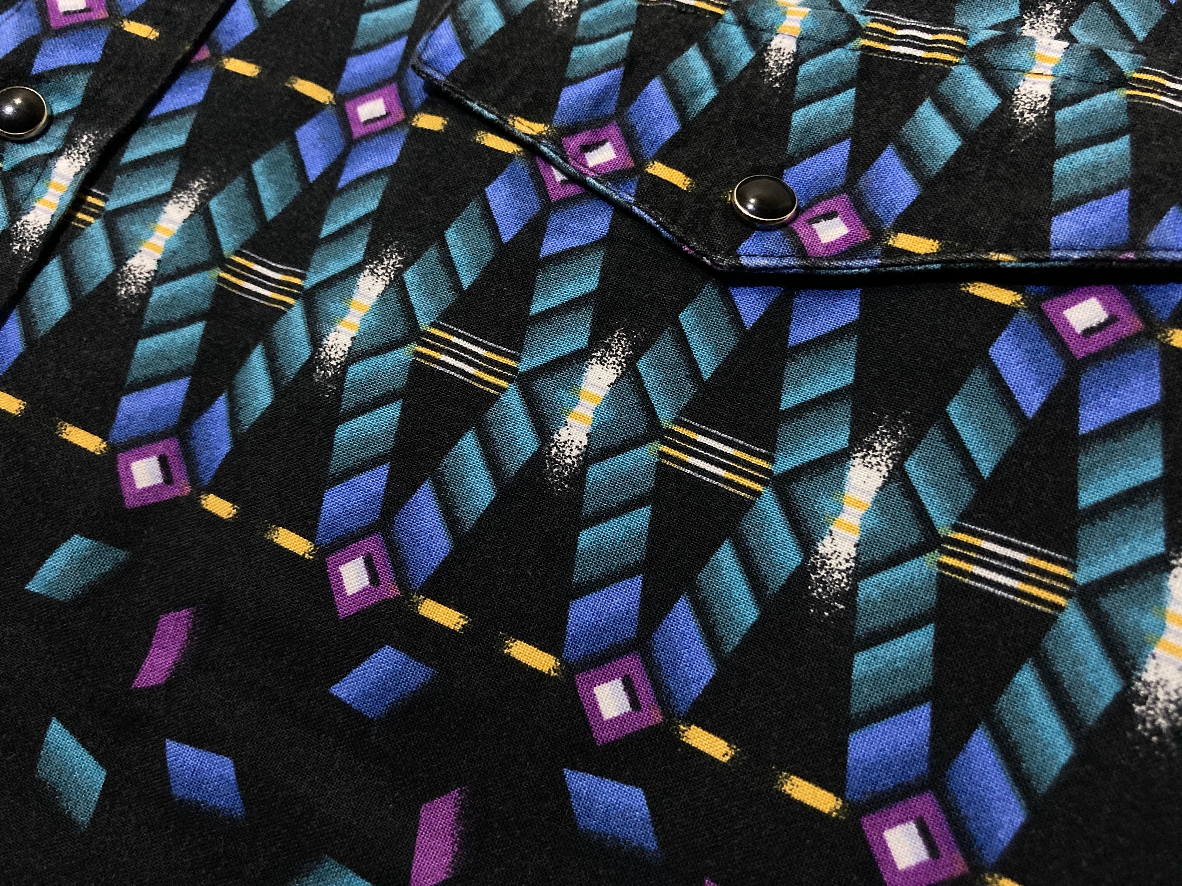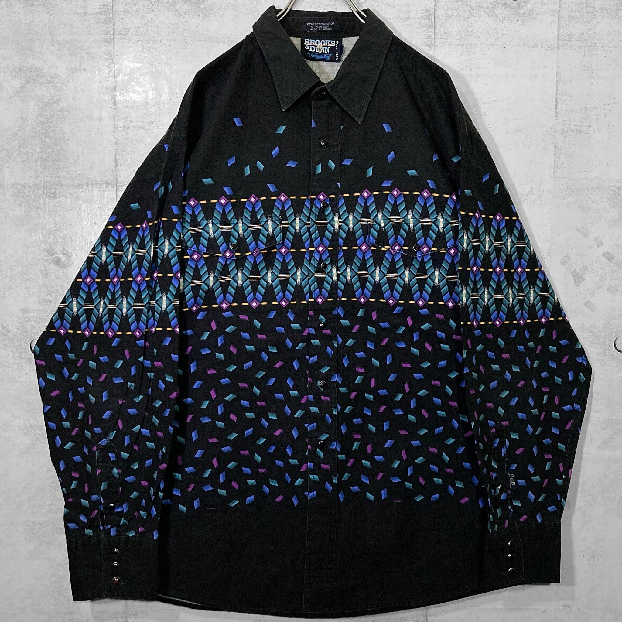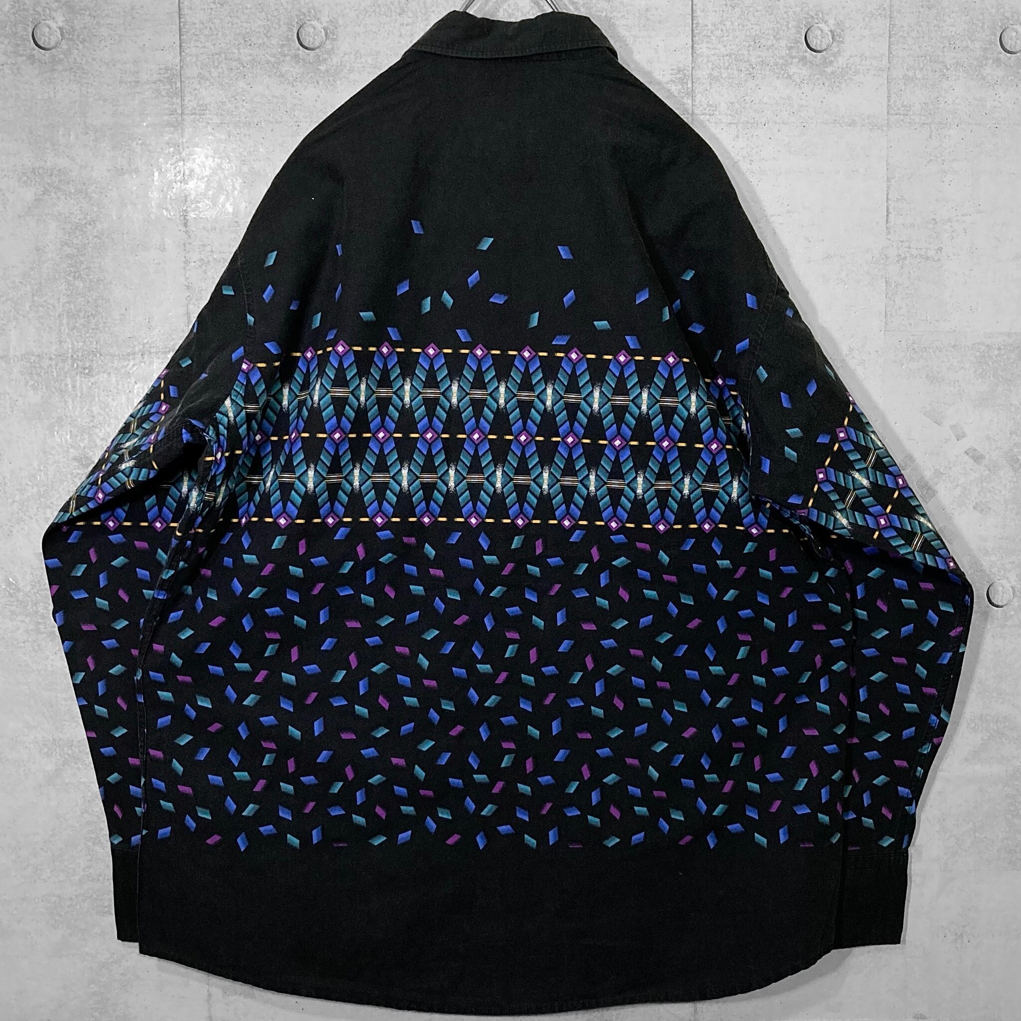 剥がれ落ちる XL Black × Blue Geometric pattern design L/S shirt