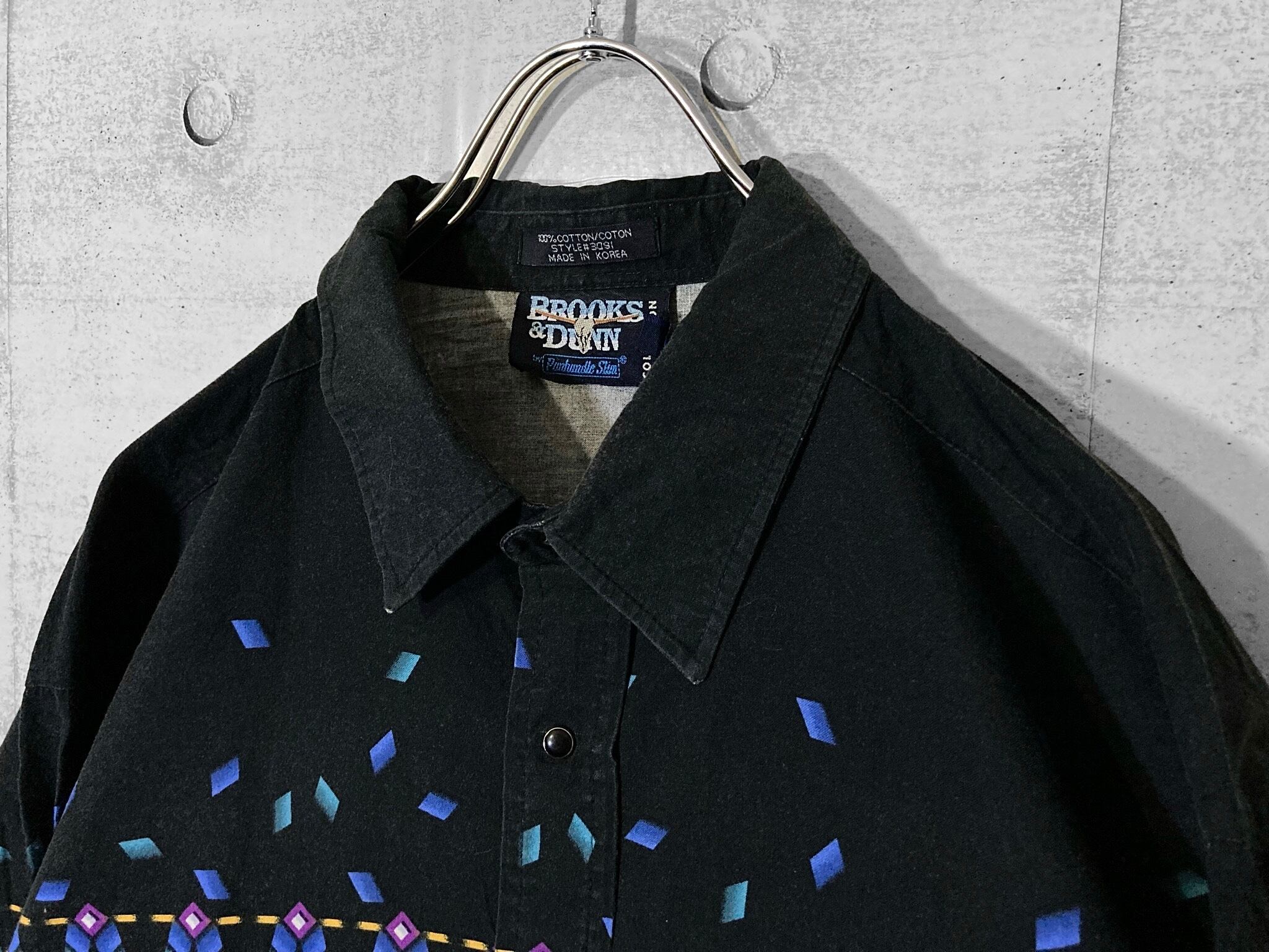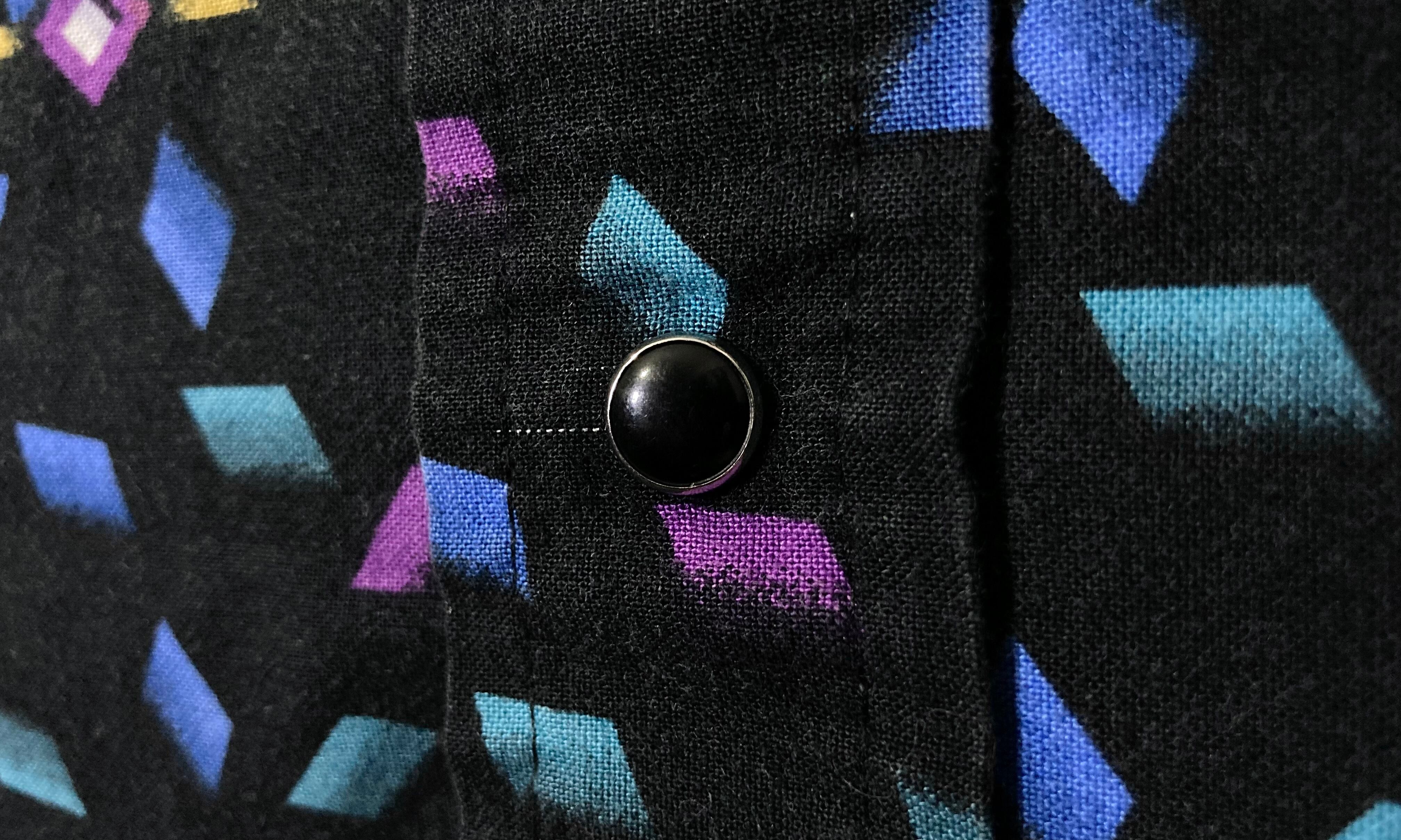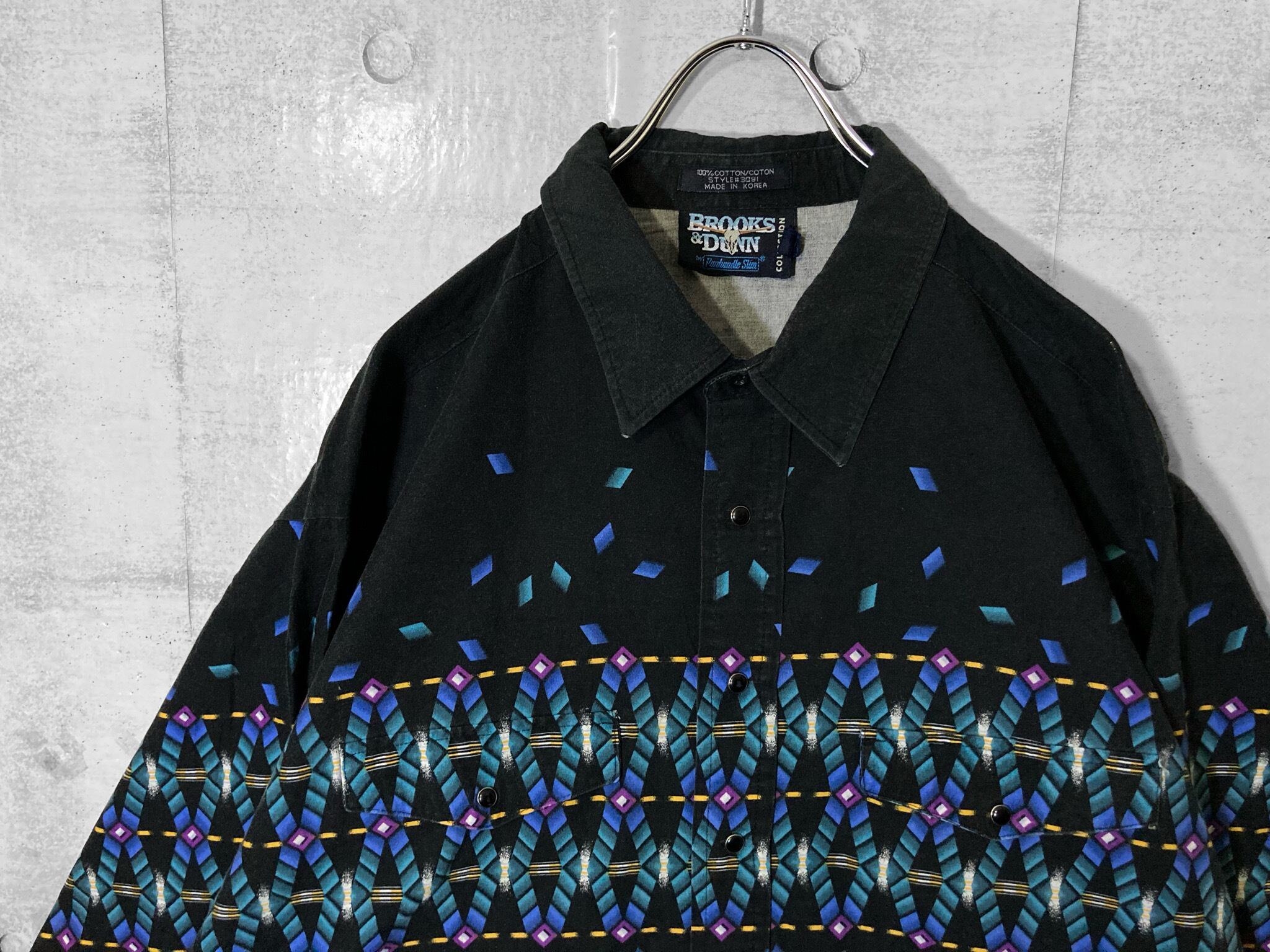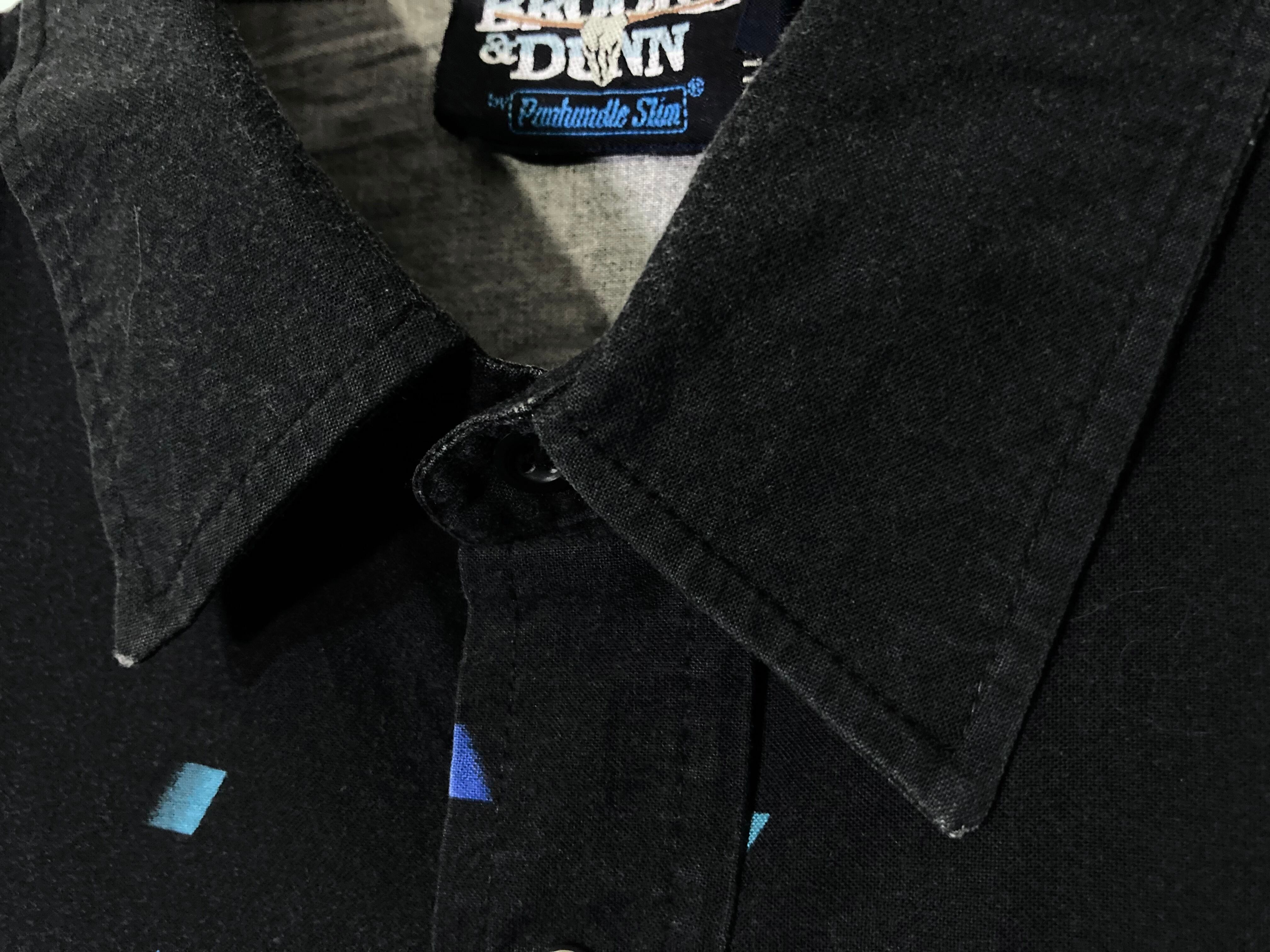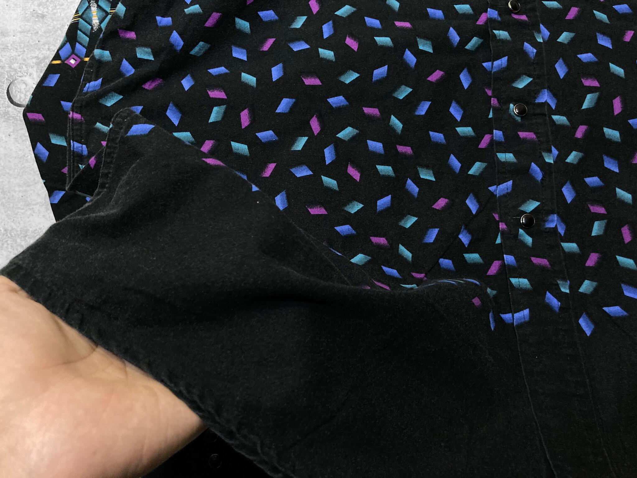 剥がれ落ちる XL Black × Blue Geometric pattern design L/S shirt