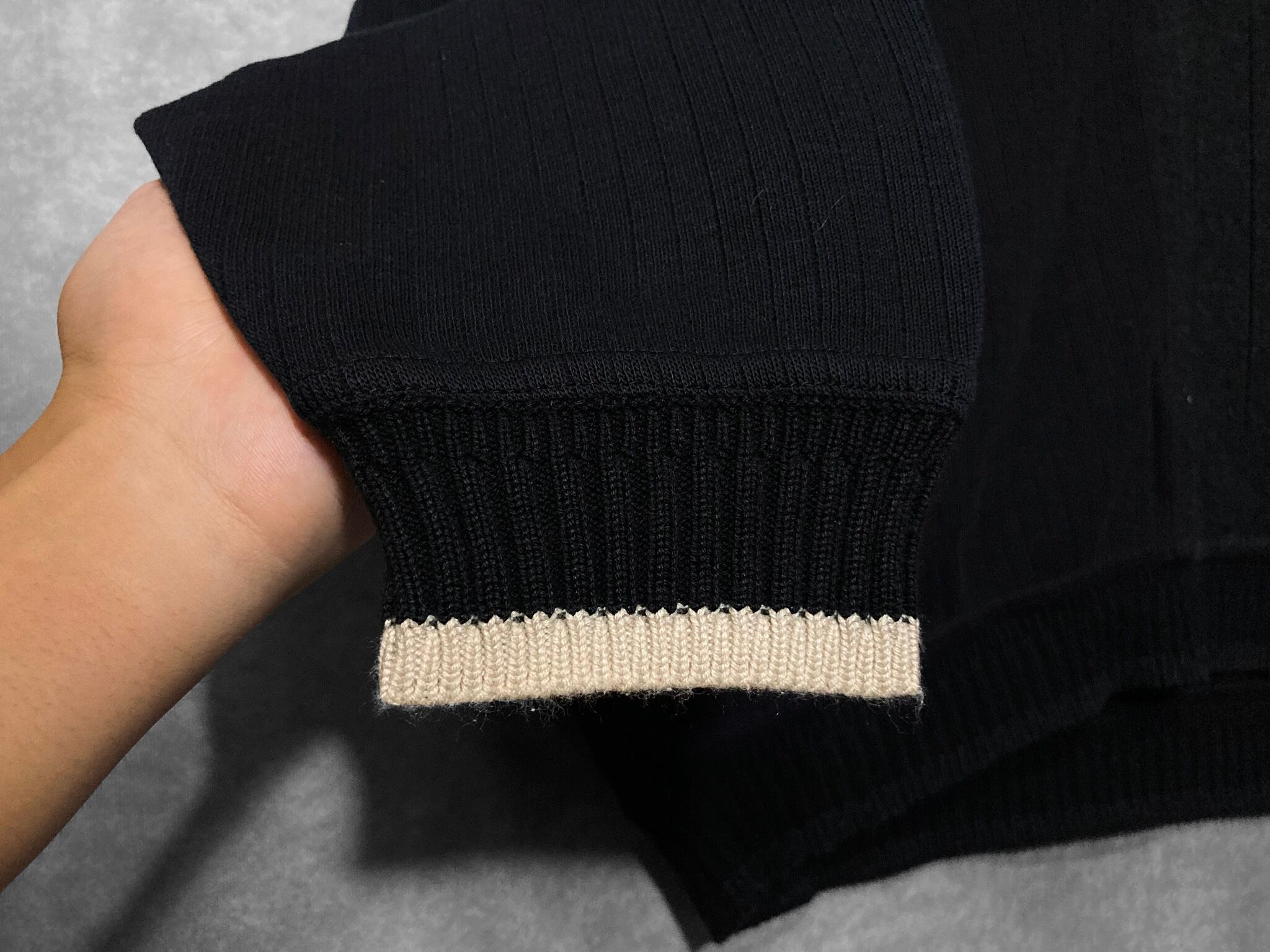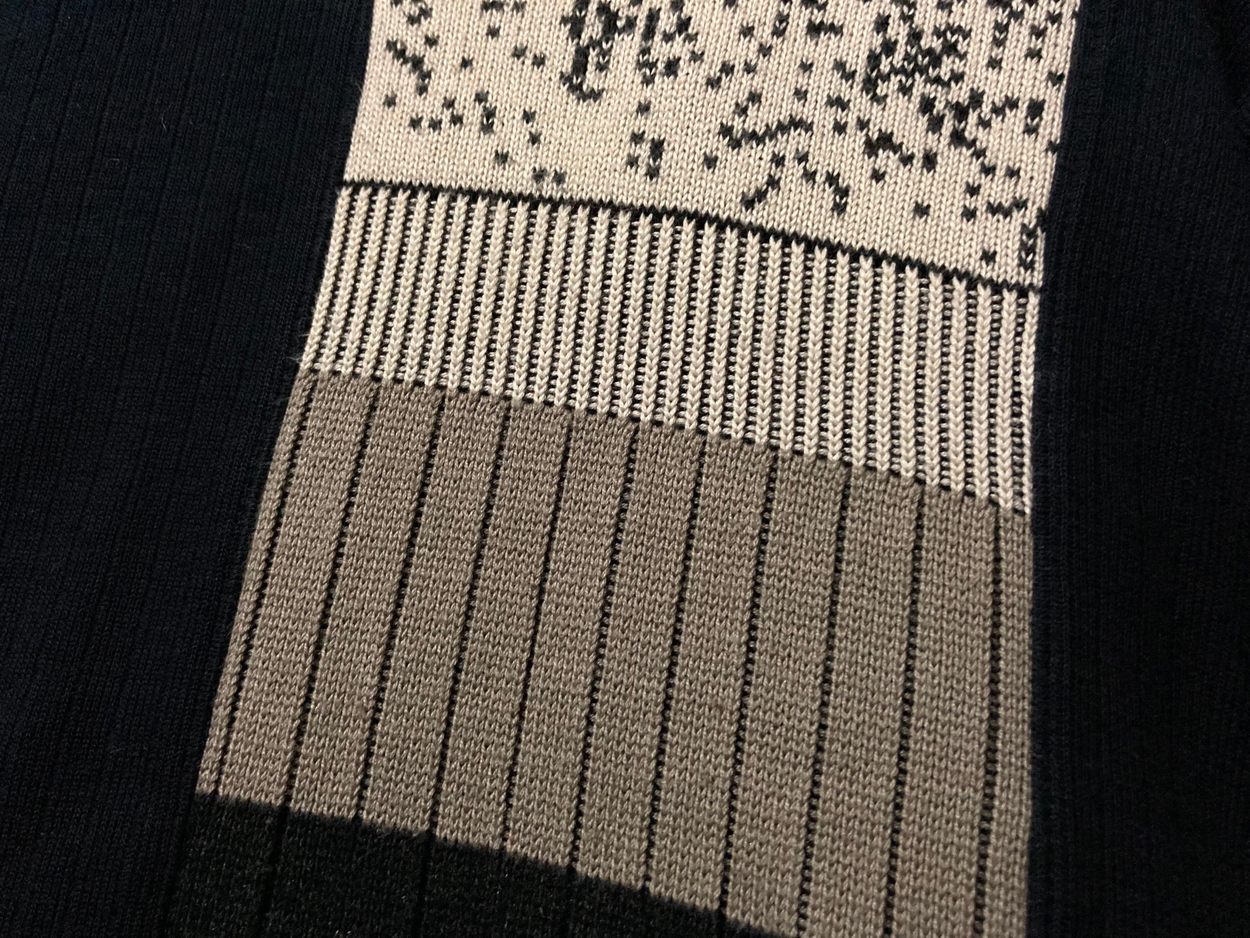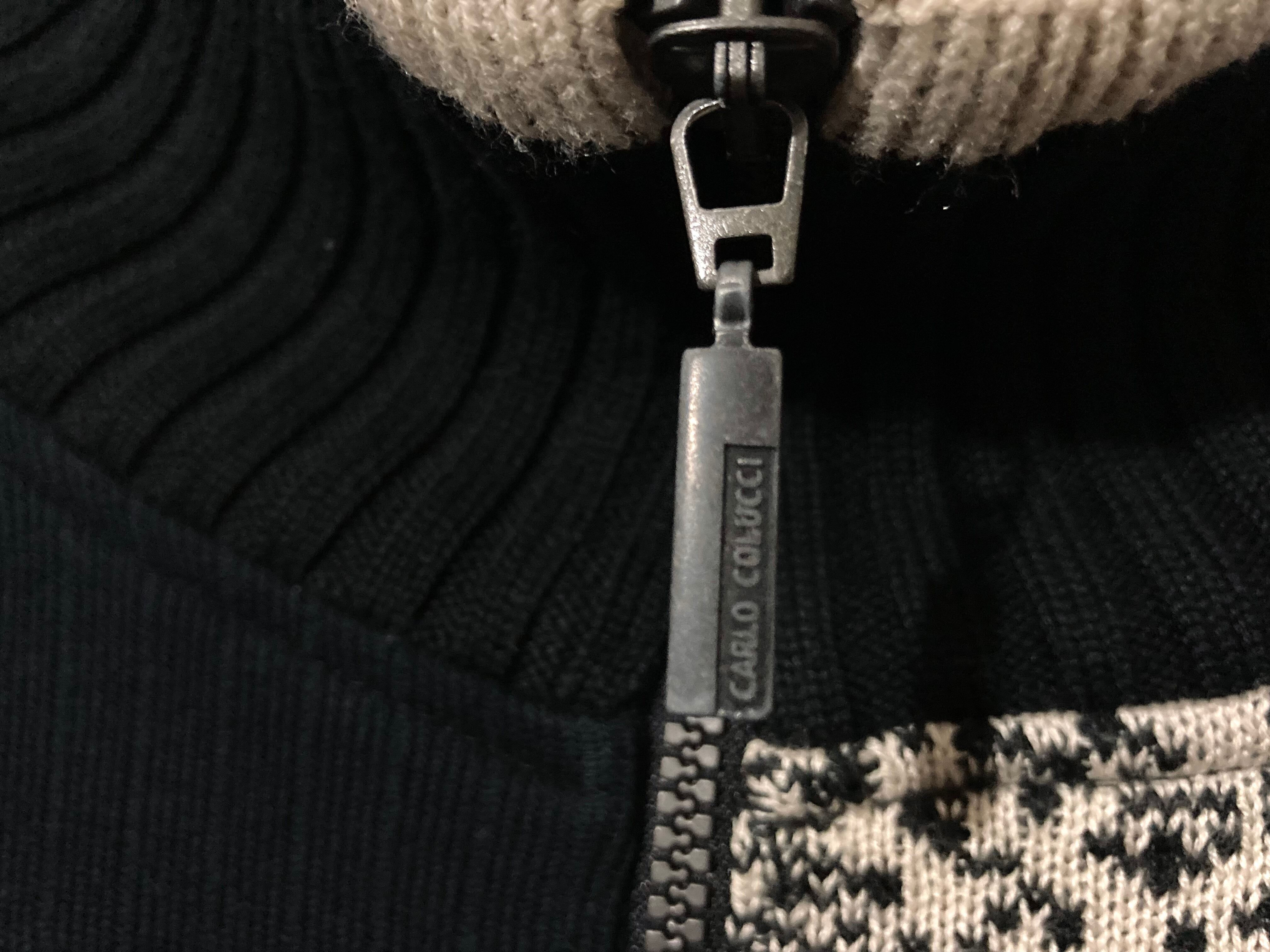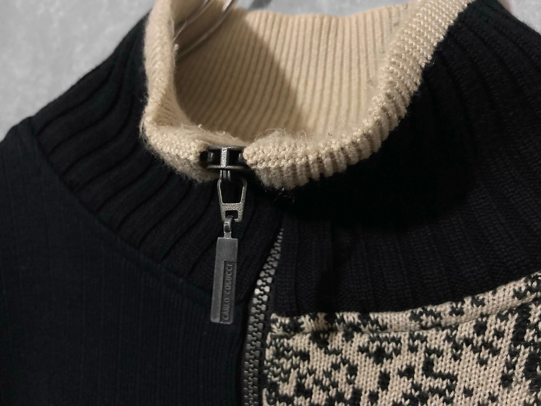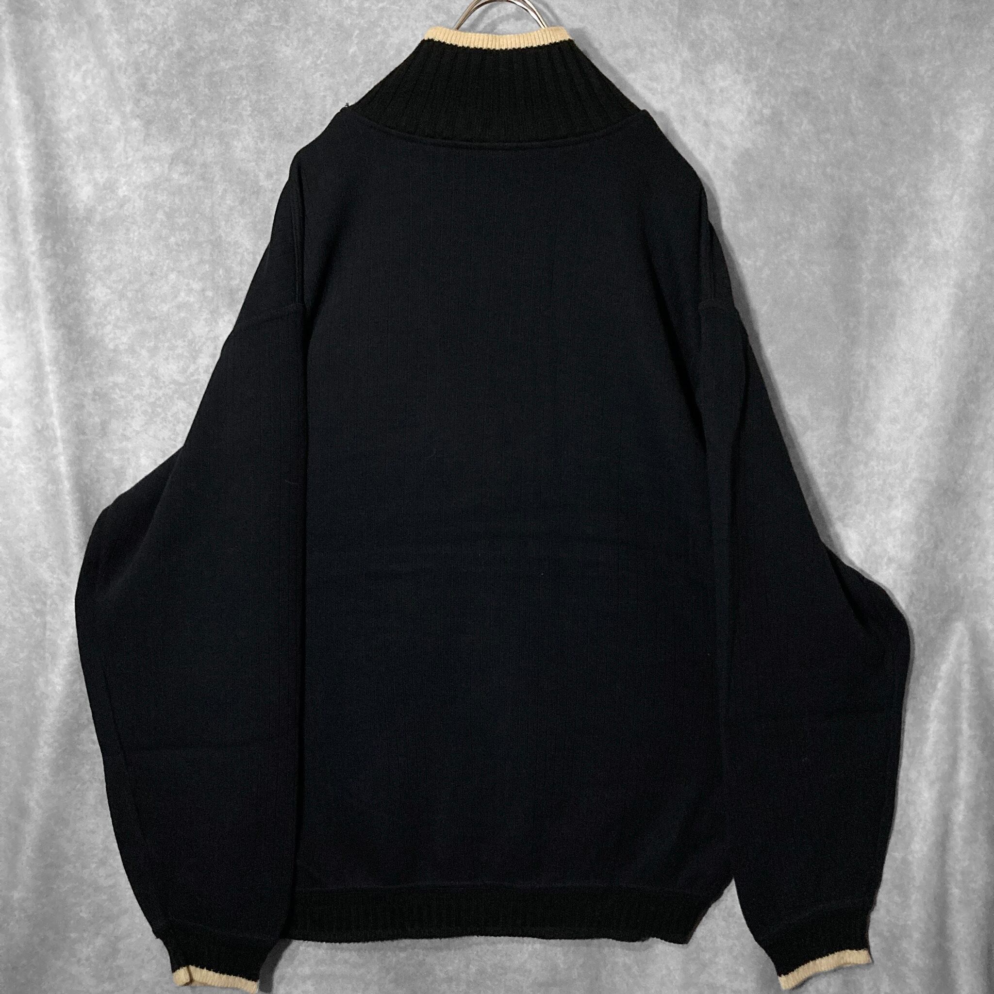 XL size Different material knitting Black × Beige color pattern design Switch Half-zip knit