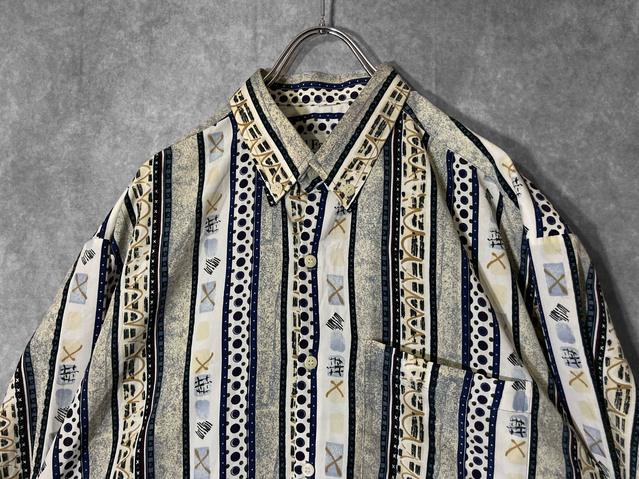 XL Hand drawn Geometric art pattern all over design L/S shirt