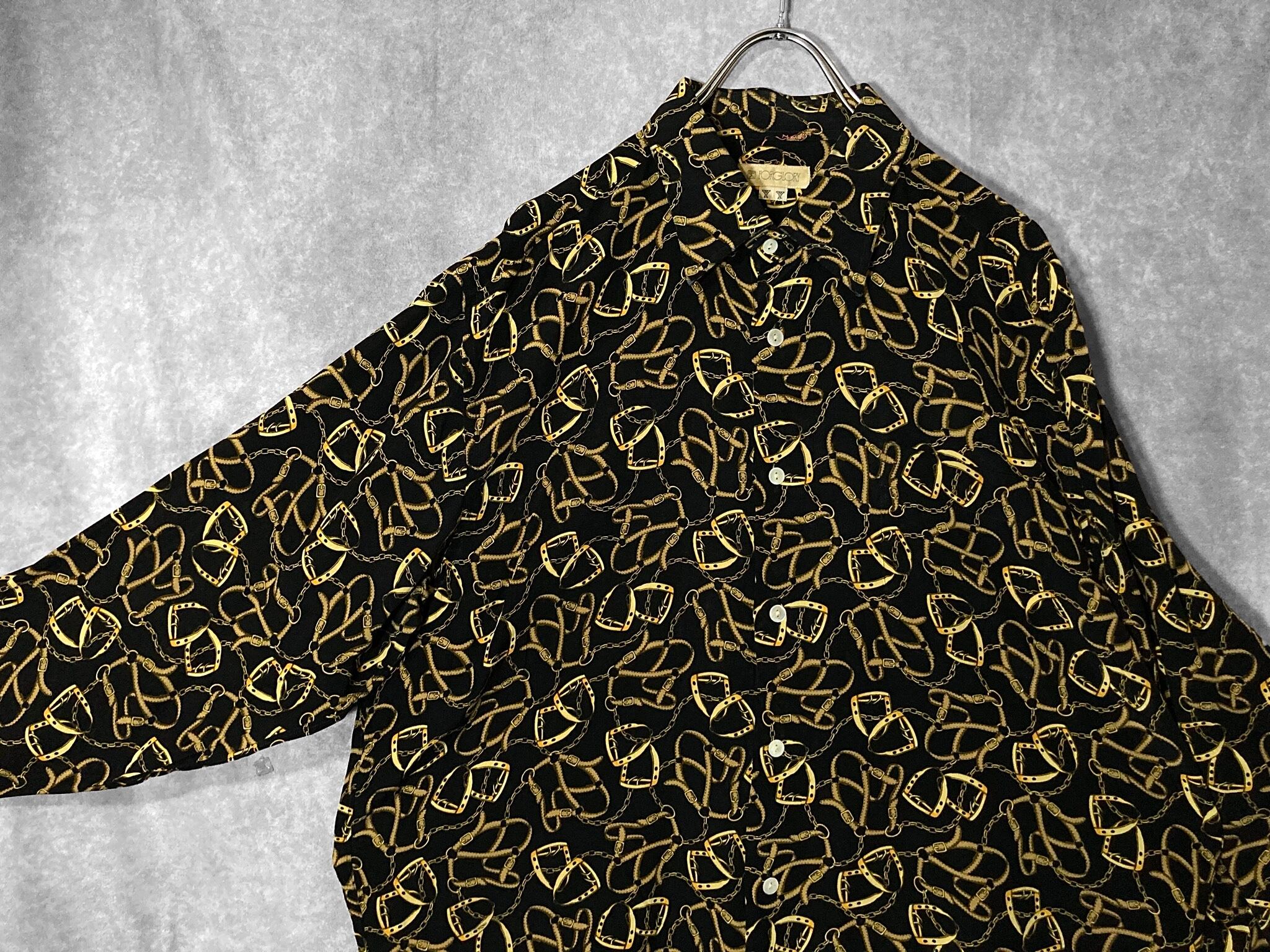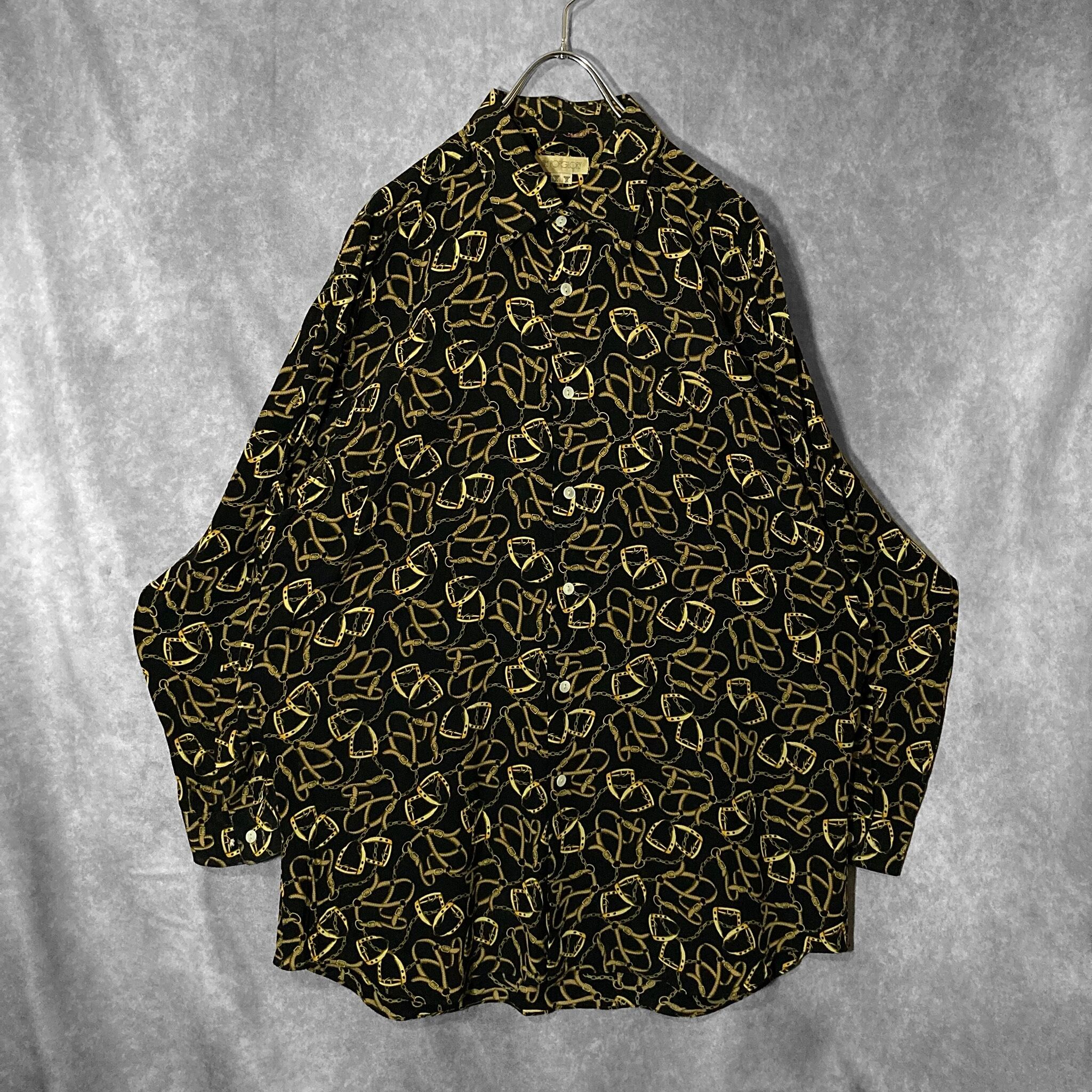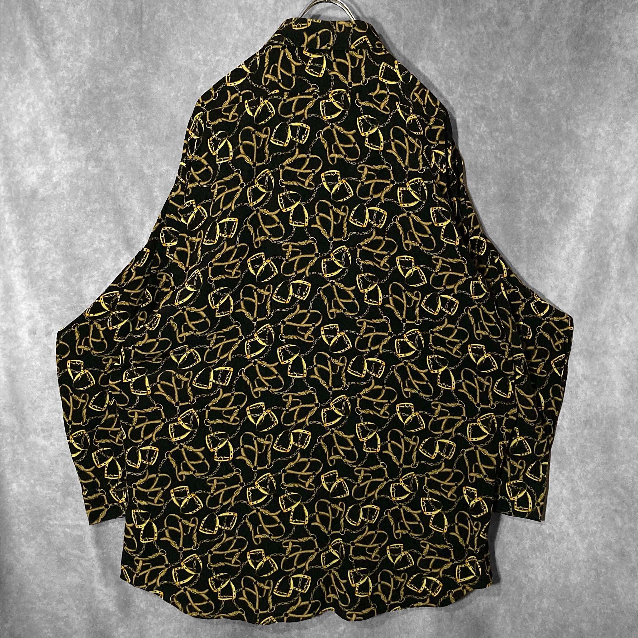 XXL Black × Gold Ornament full pattern design L/S shirt