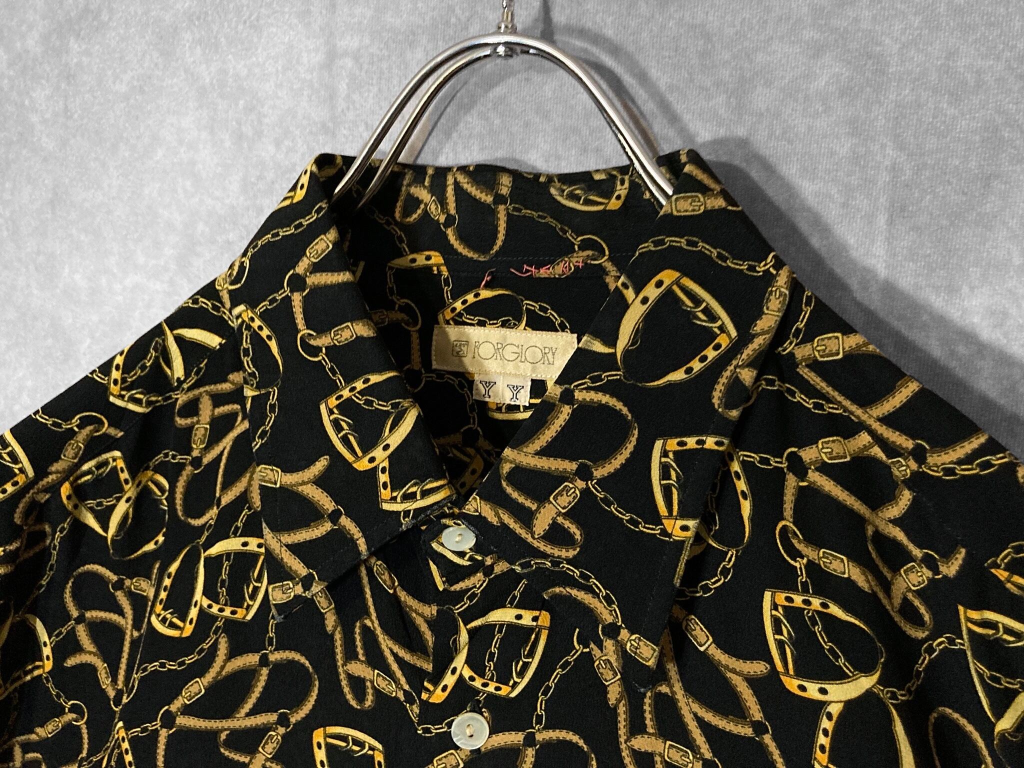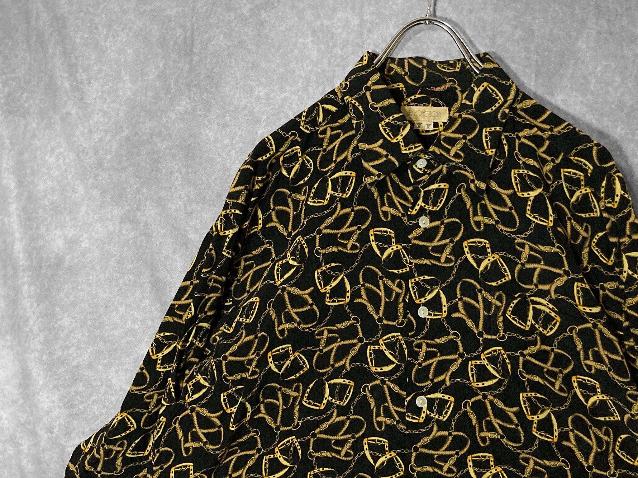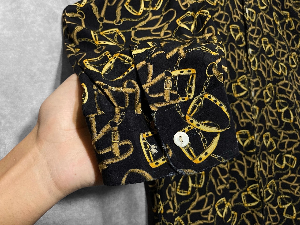 XXL Black × Gold Ornament full pattern design L/S shirt