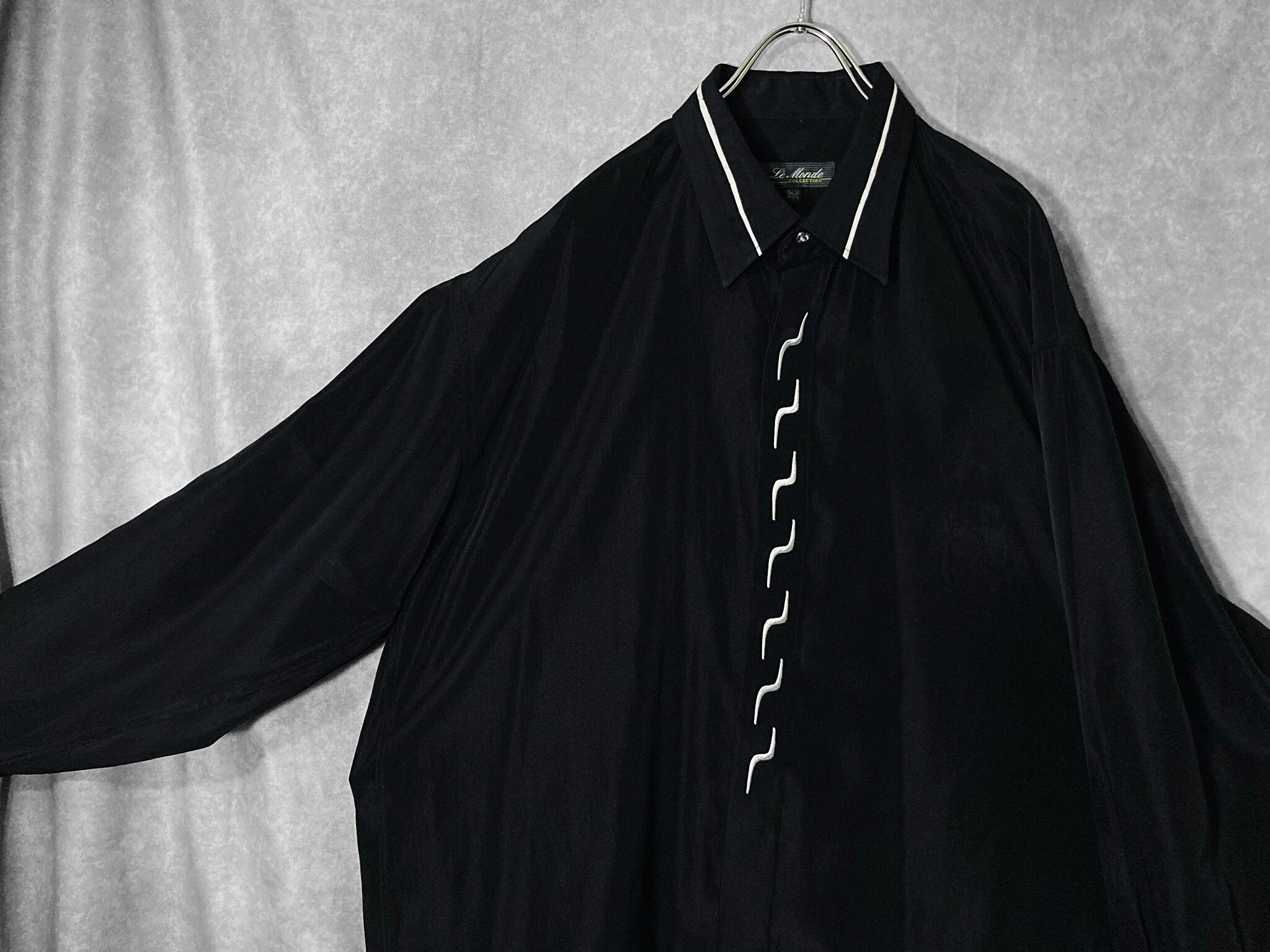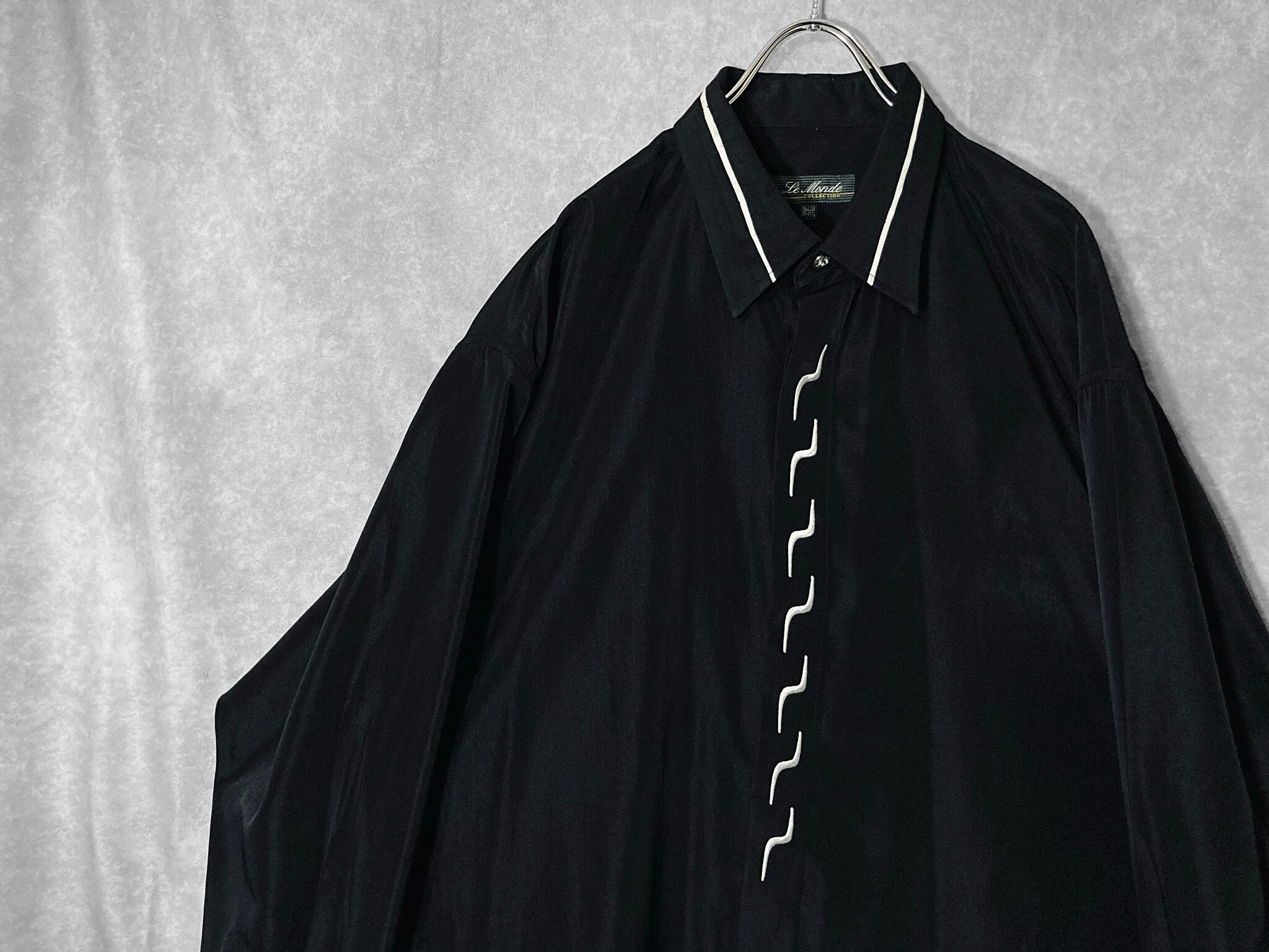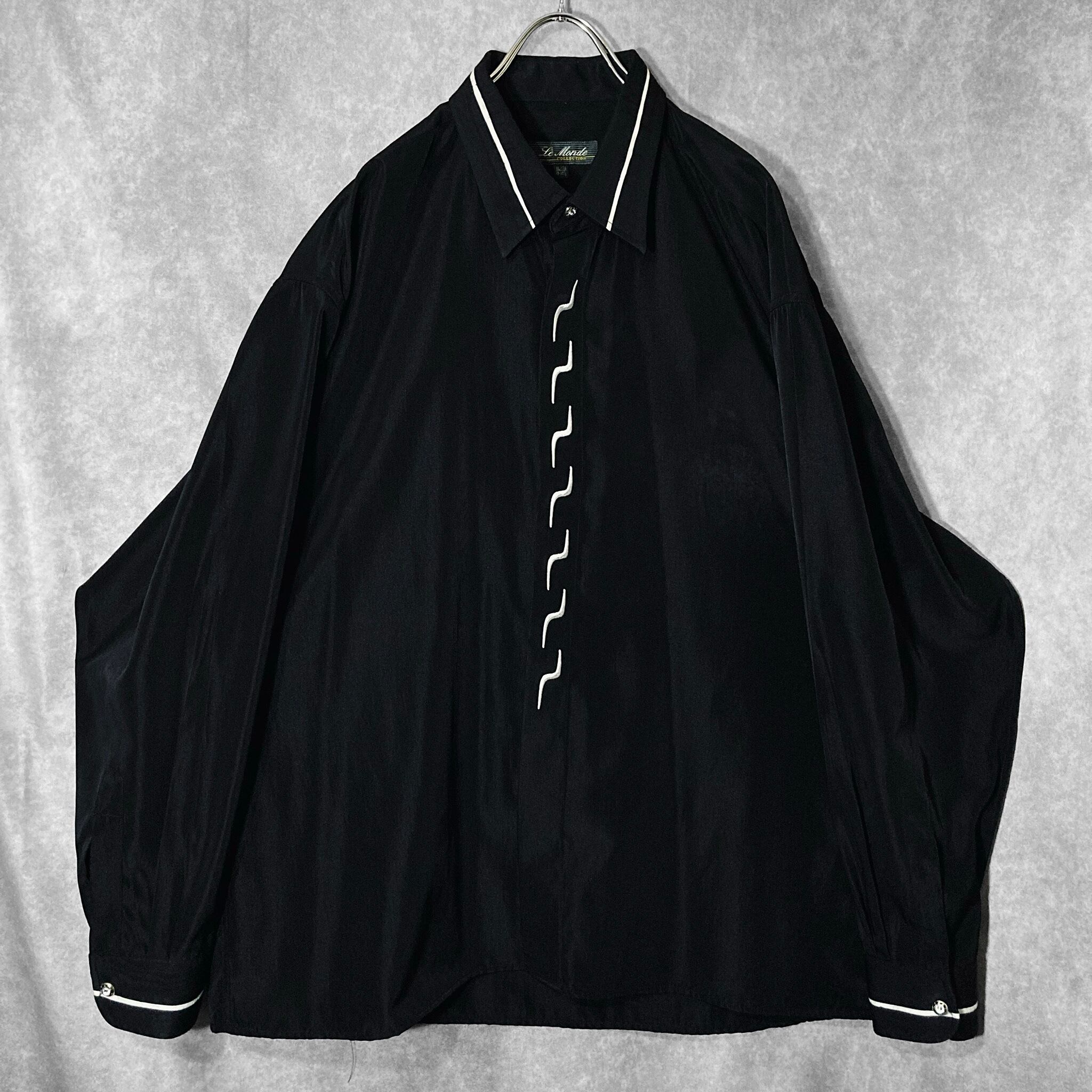 XL Black × White Embroidery Lightning pattern monochrome design L/S shirt