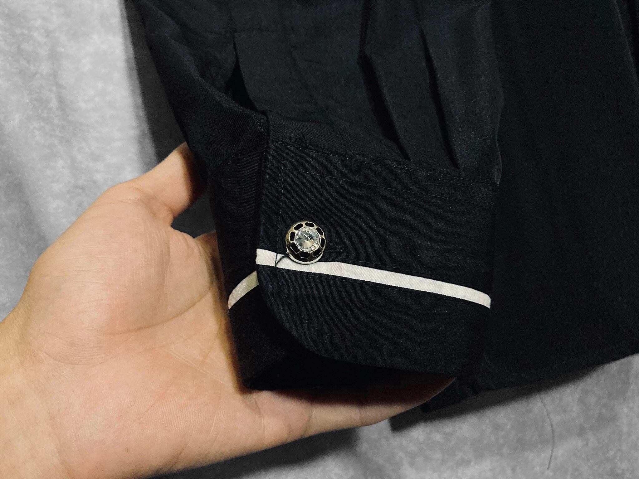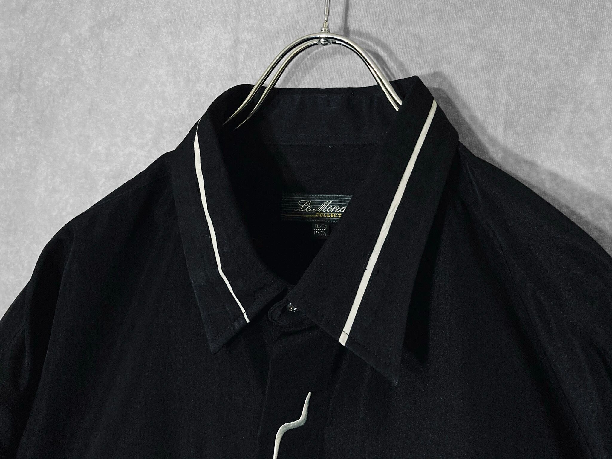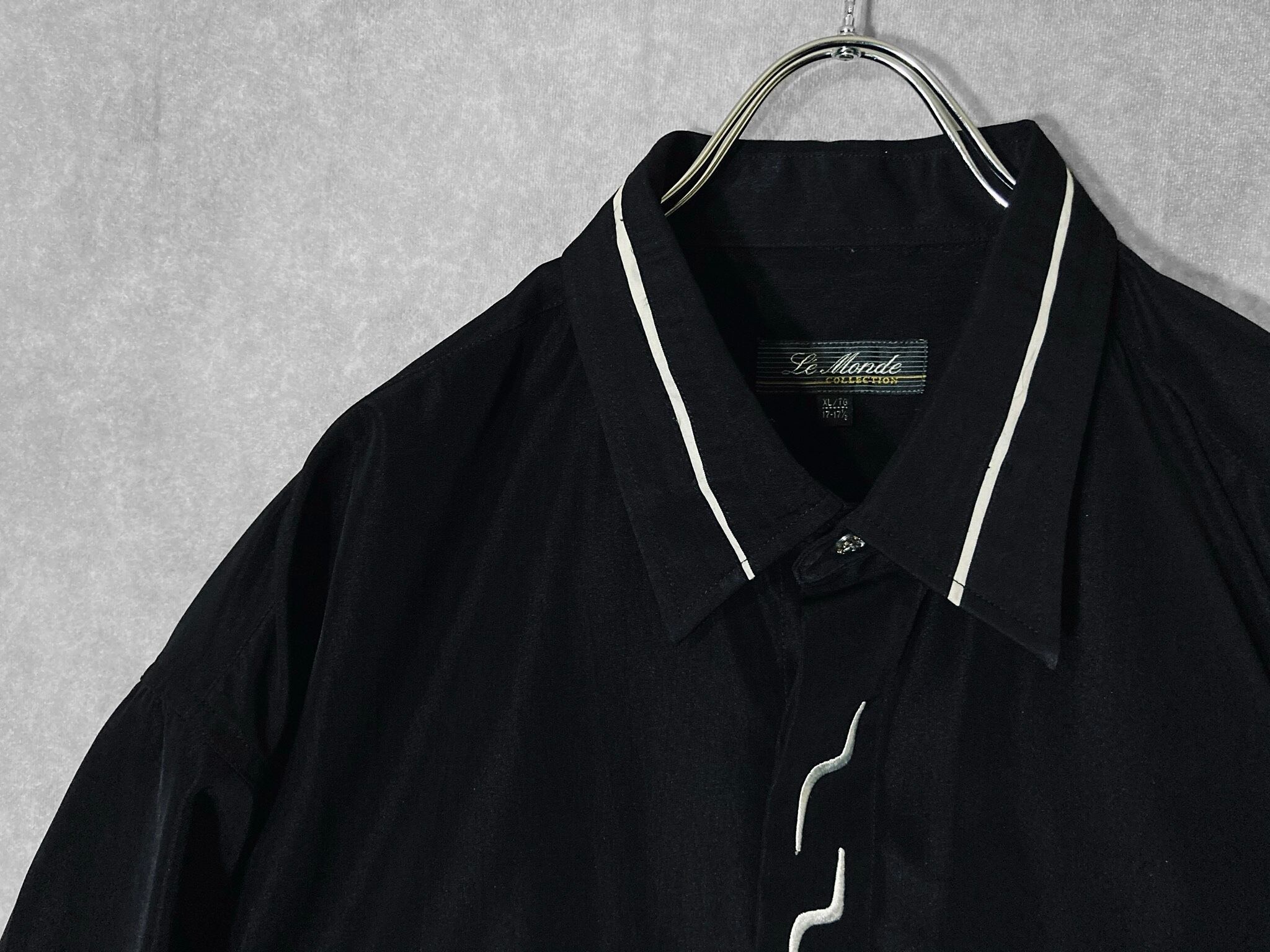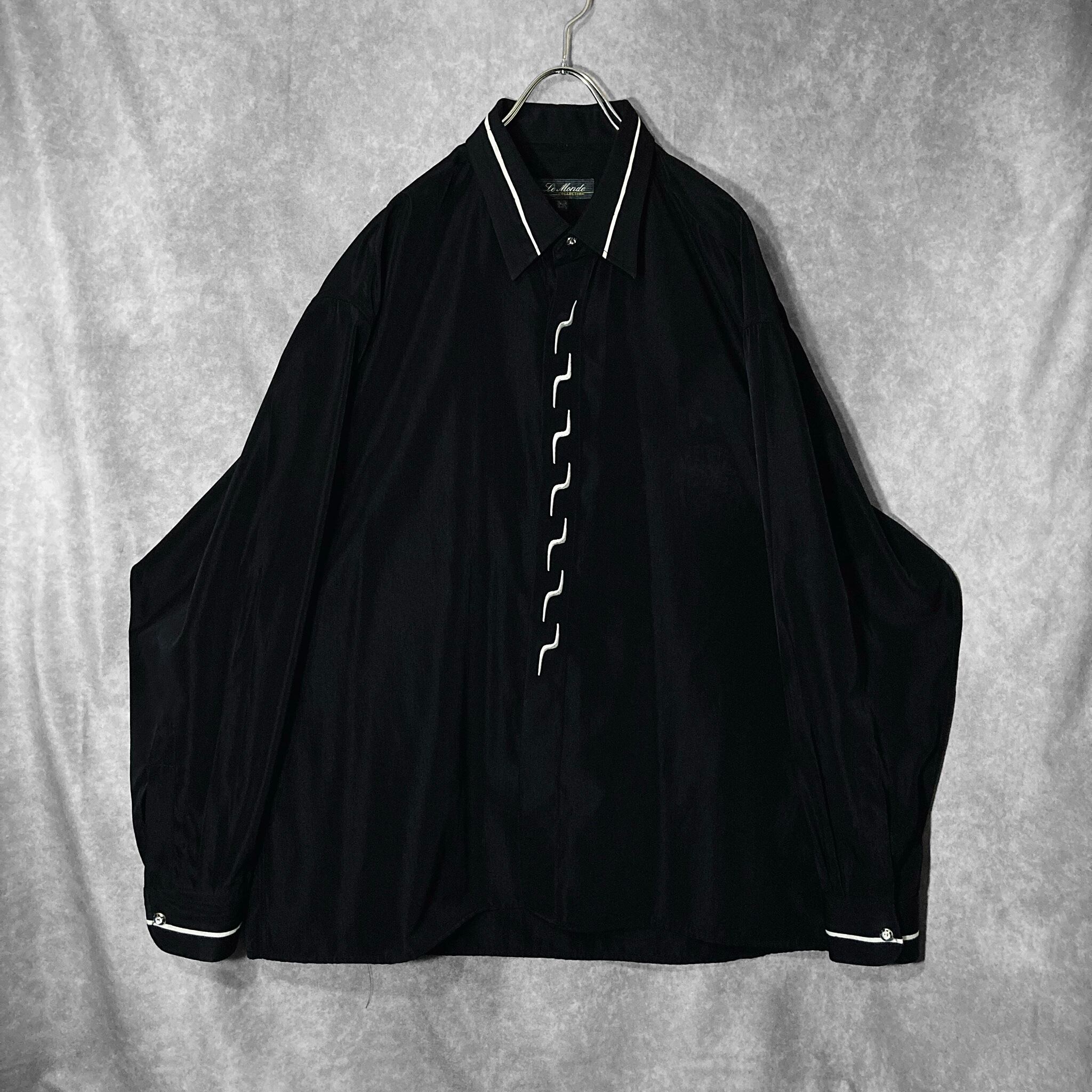 XL Black × White Embroidery Lightning pattern monochrome design L/S shirt