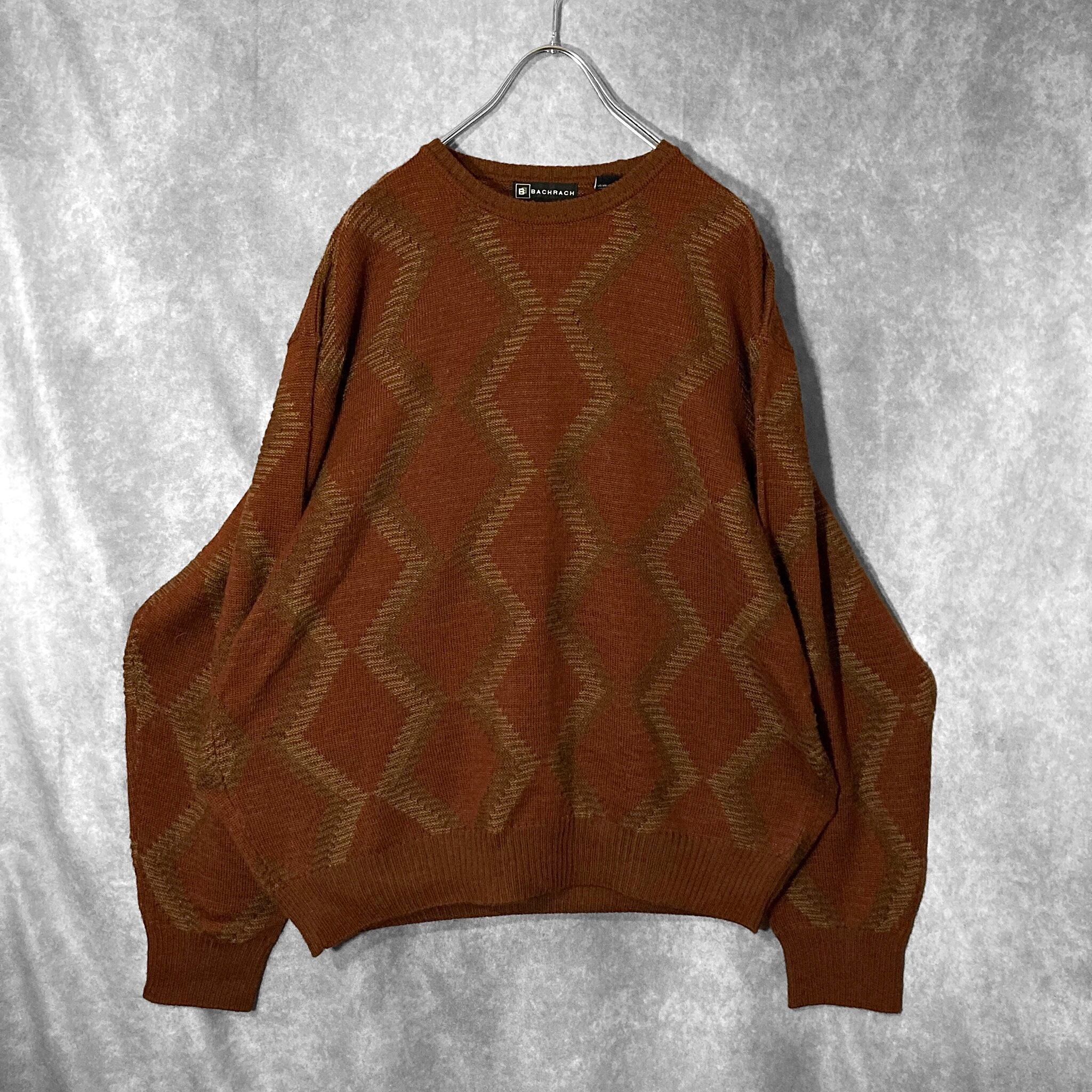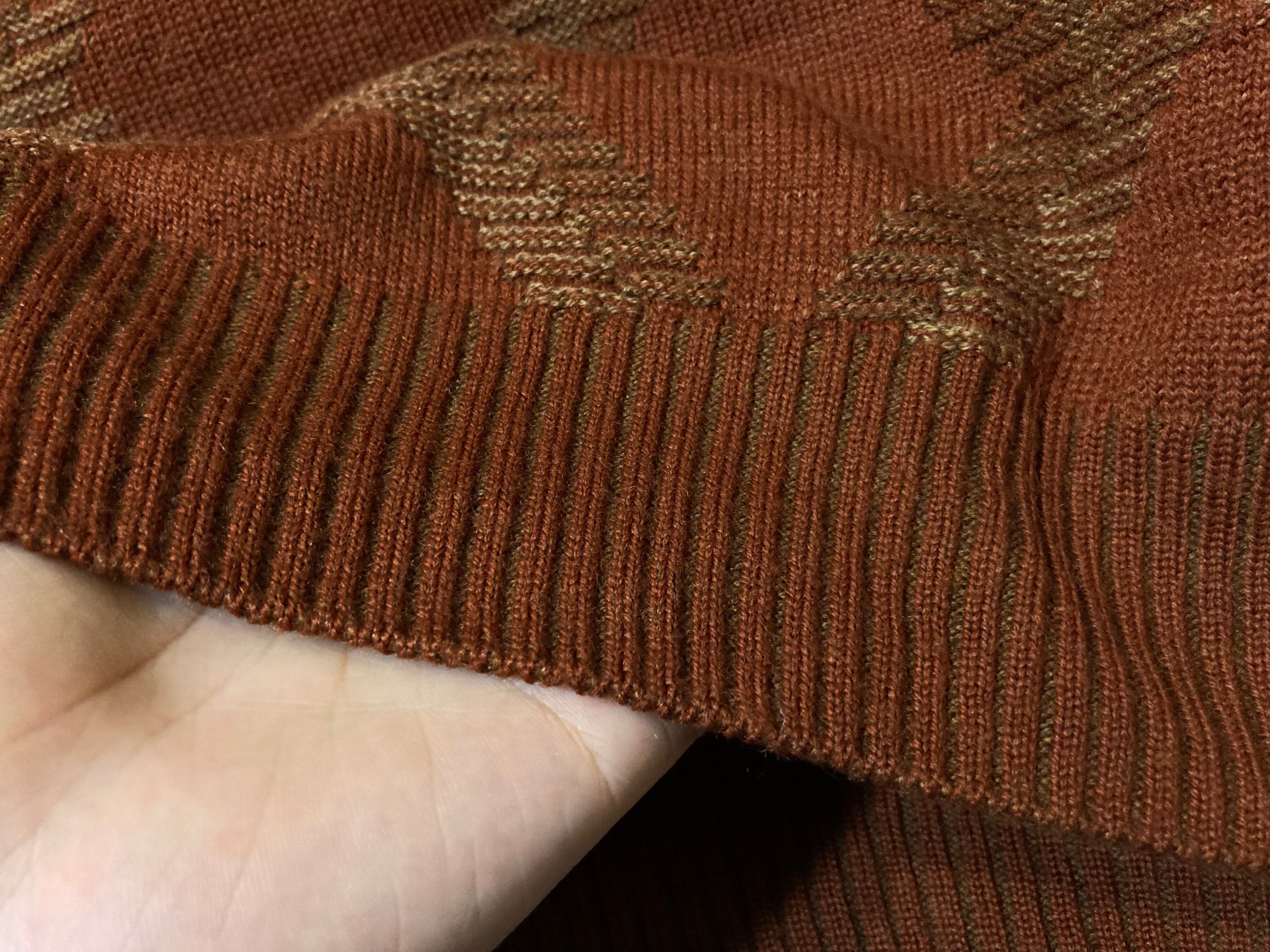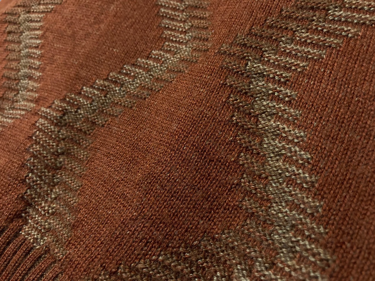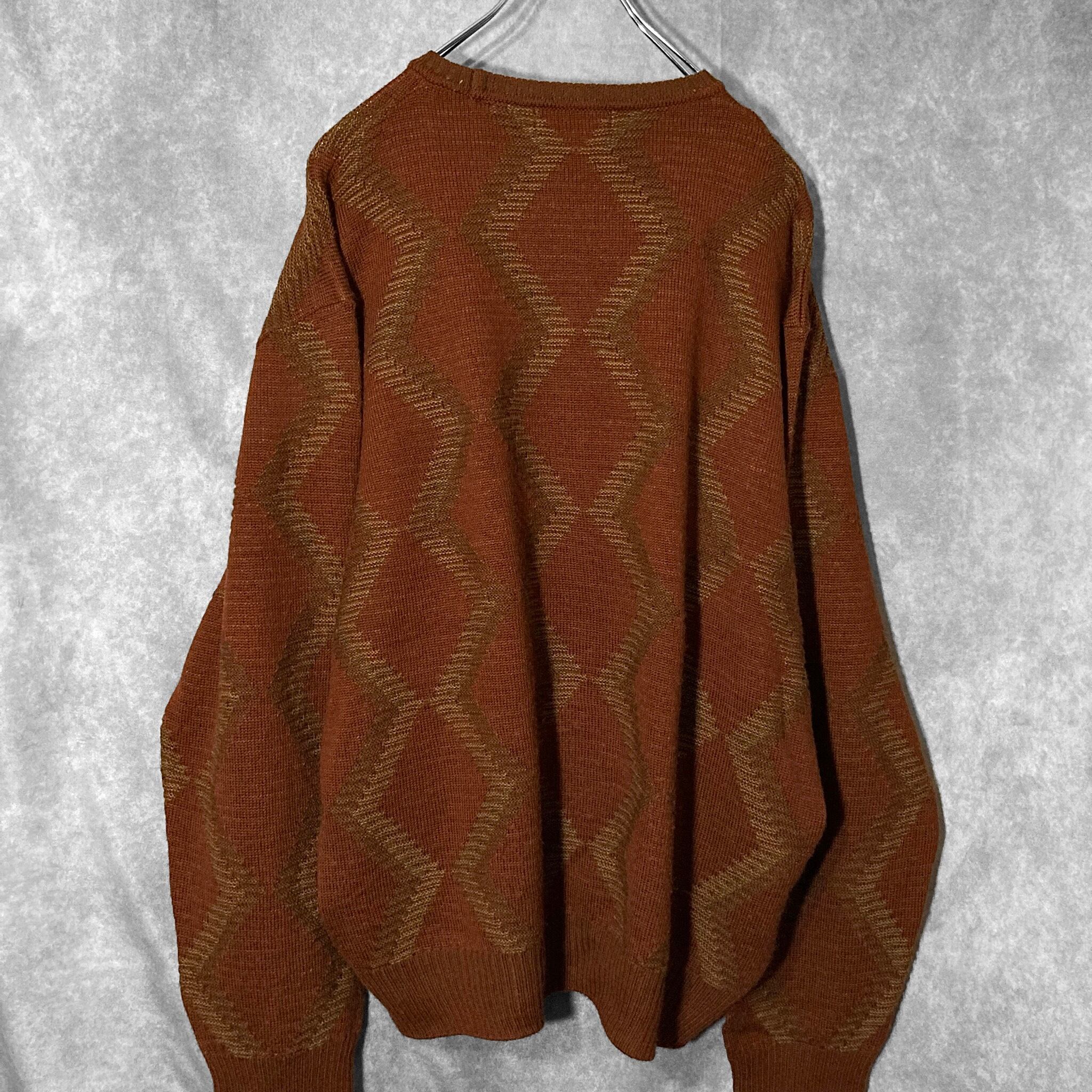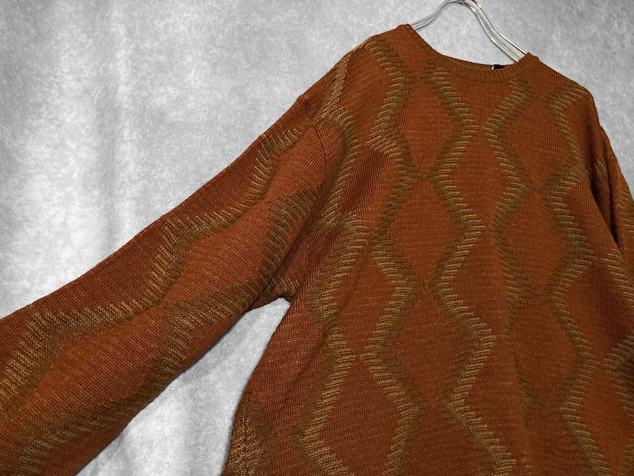 あたたかみを感じる秋っぽブラウンカラーの総柄ニット。