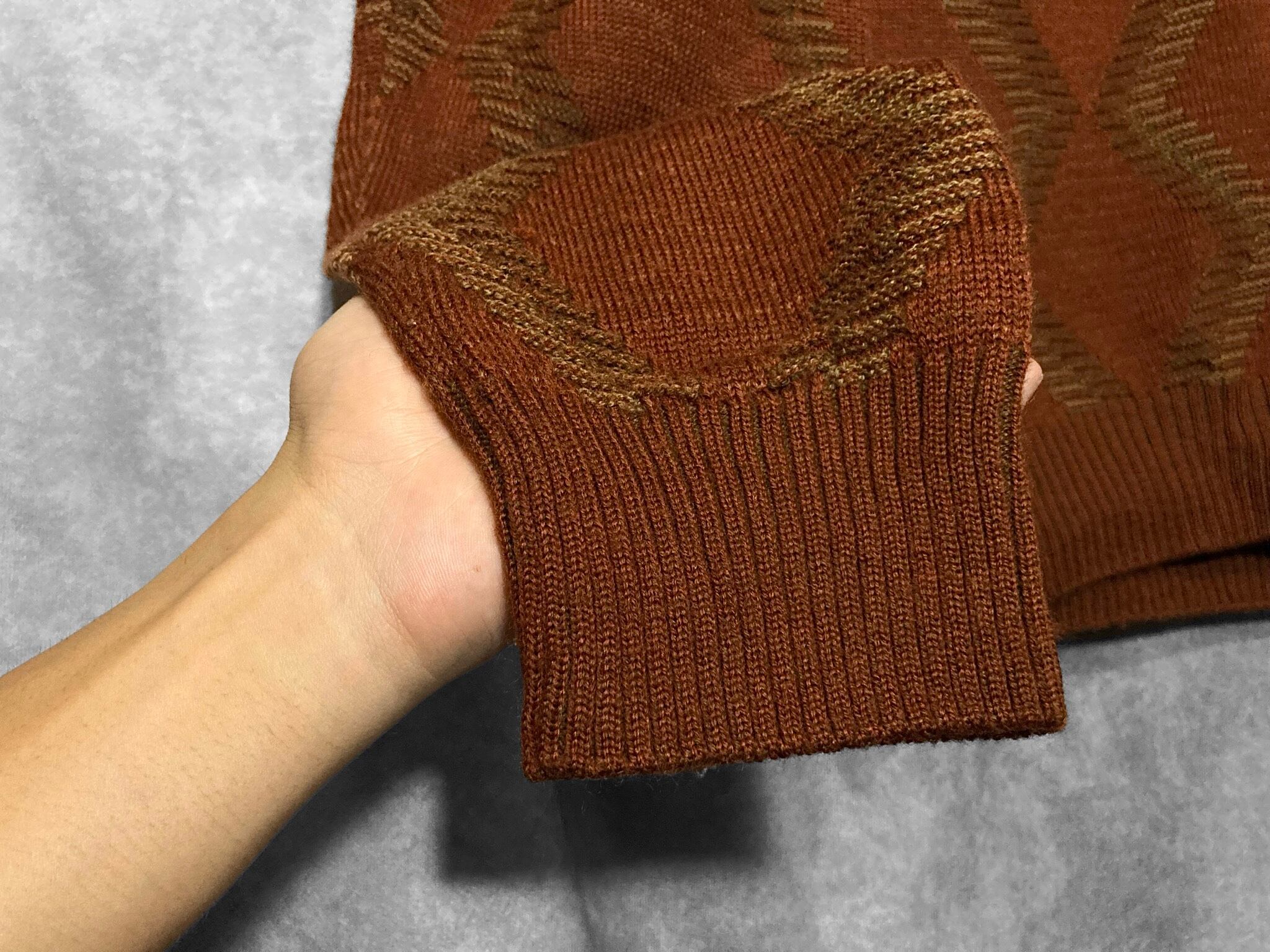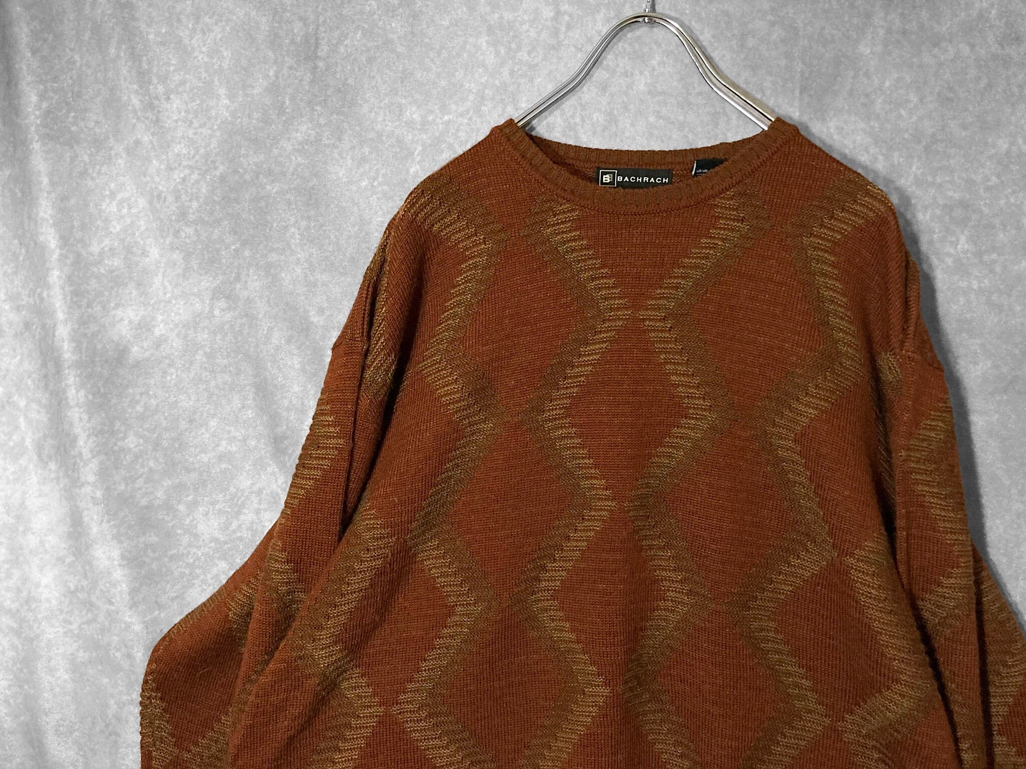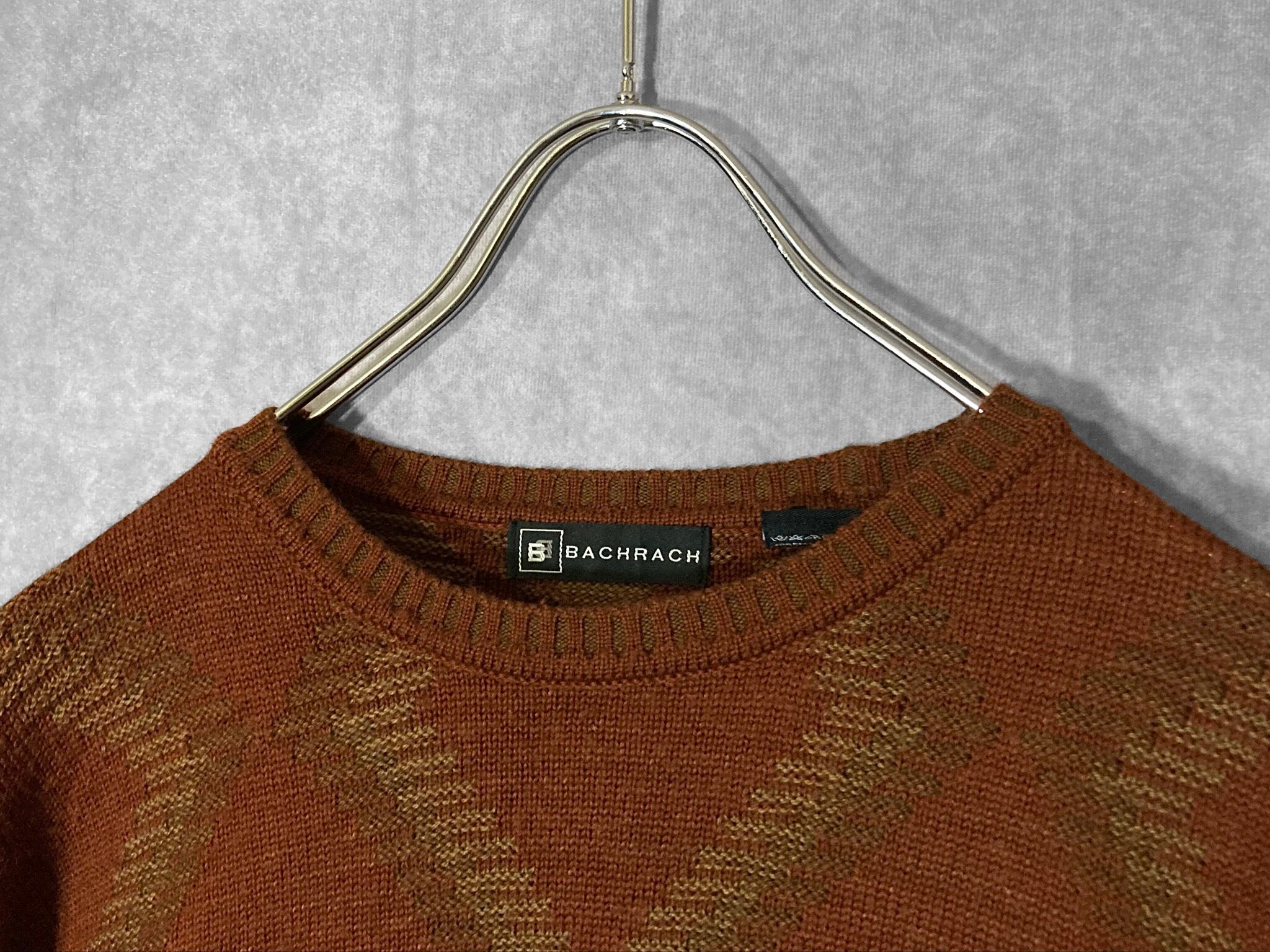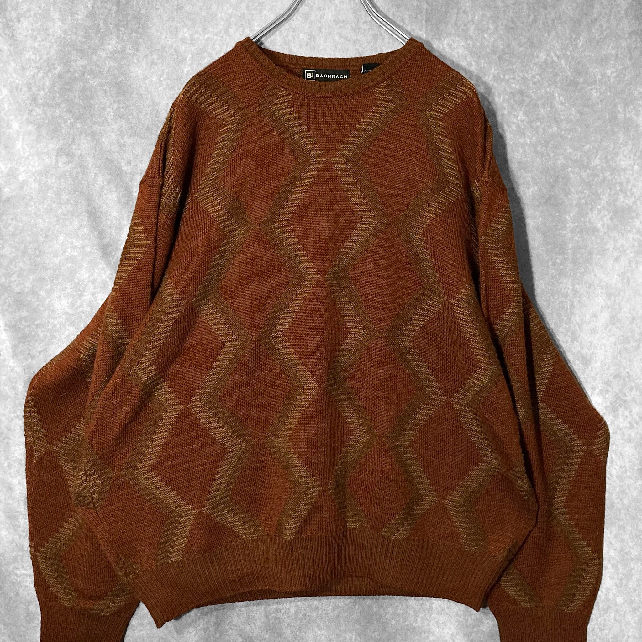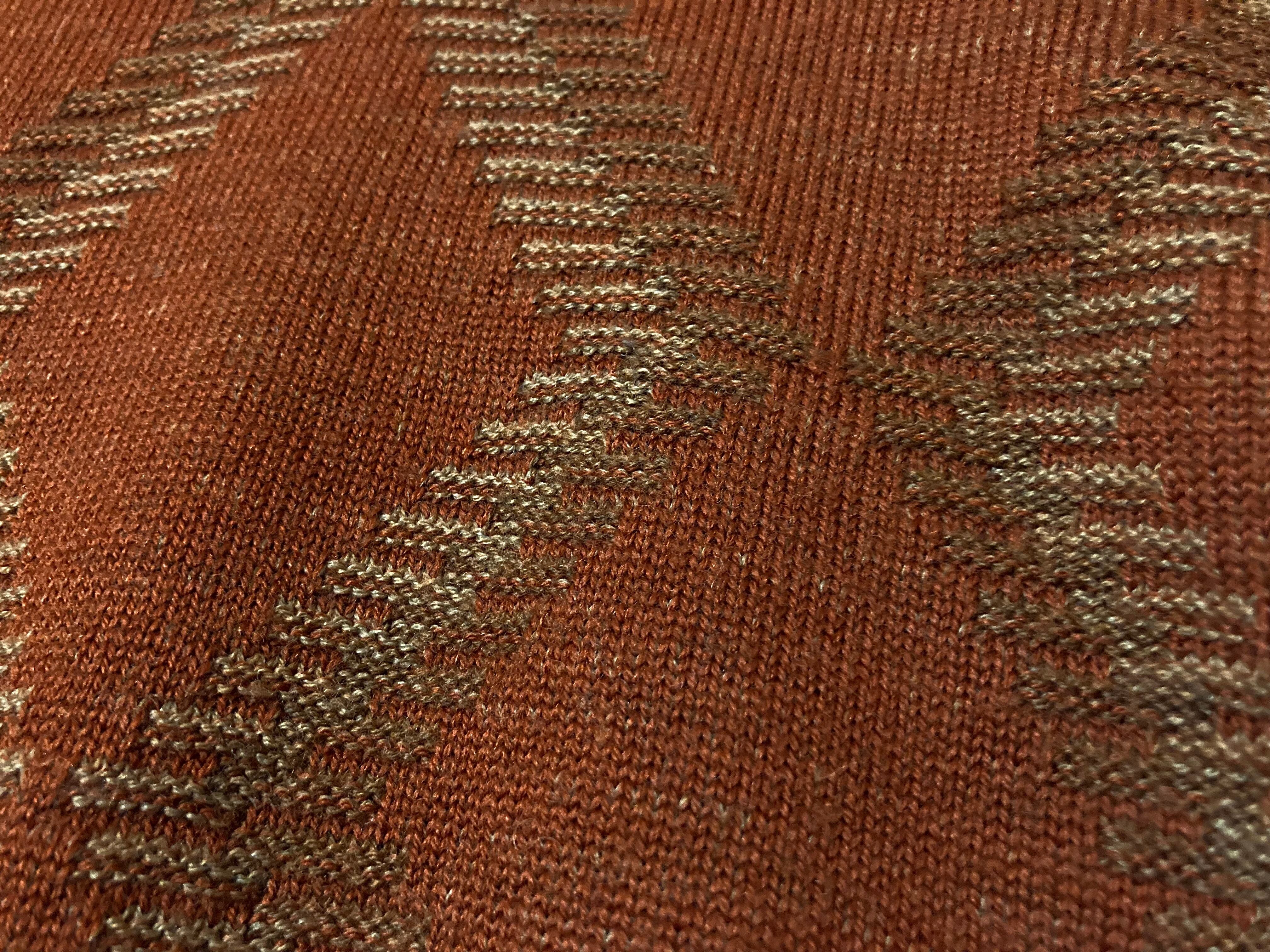 あたたかみを感じる秋っぽブラウンカラーの総柄ニット。
