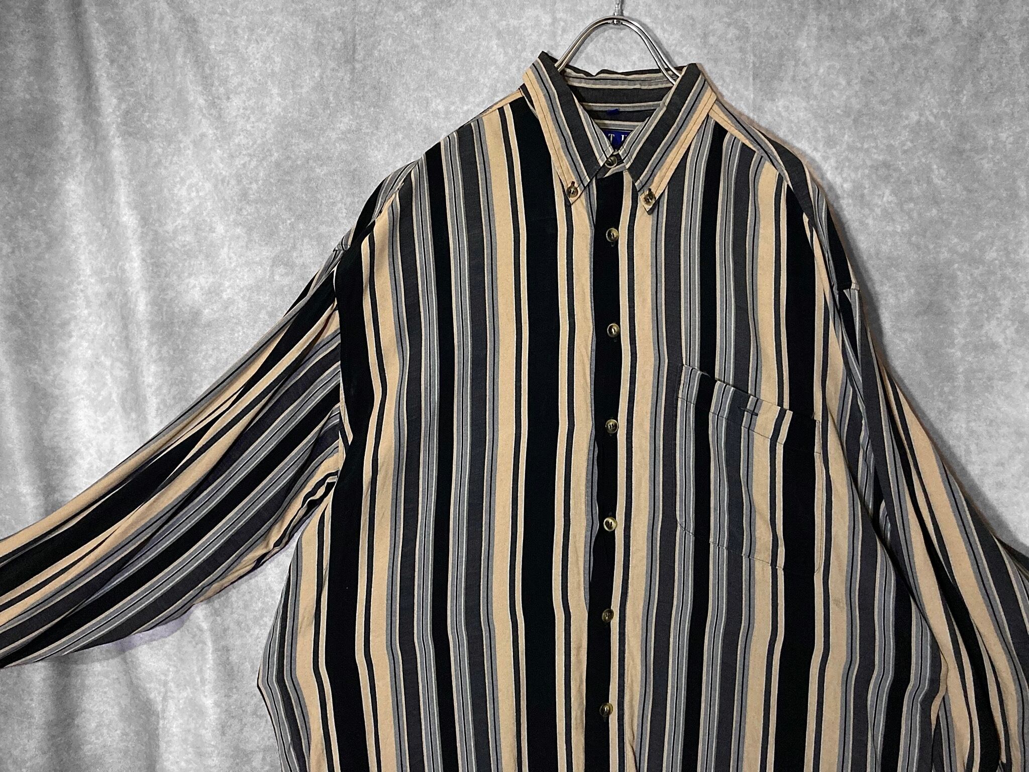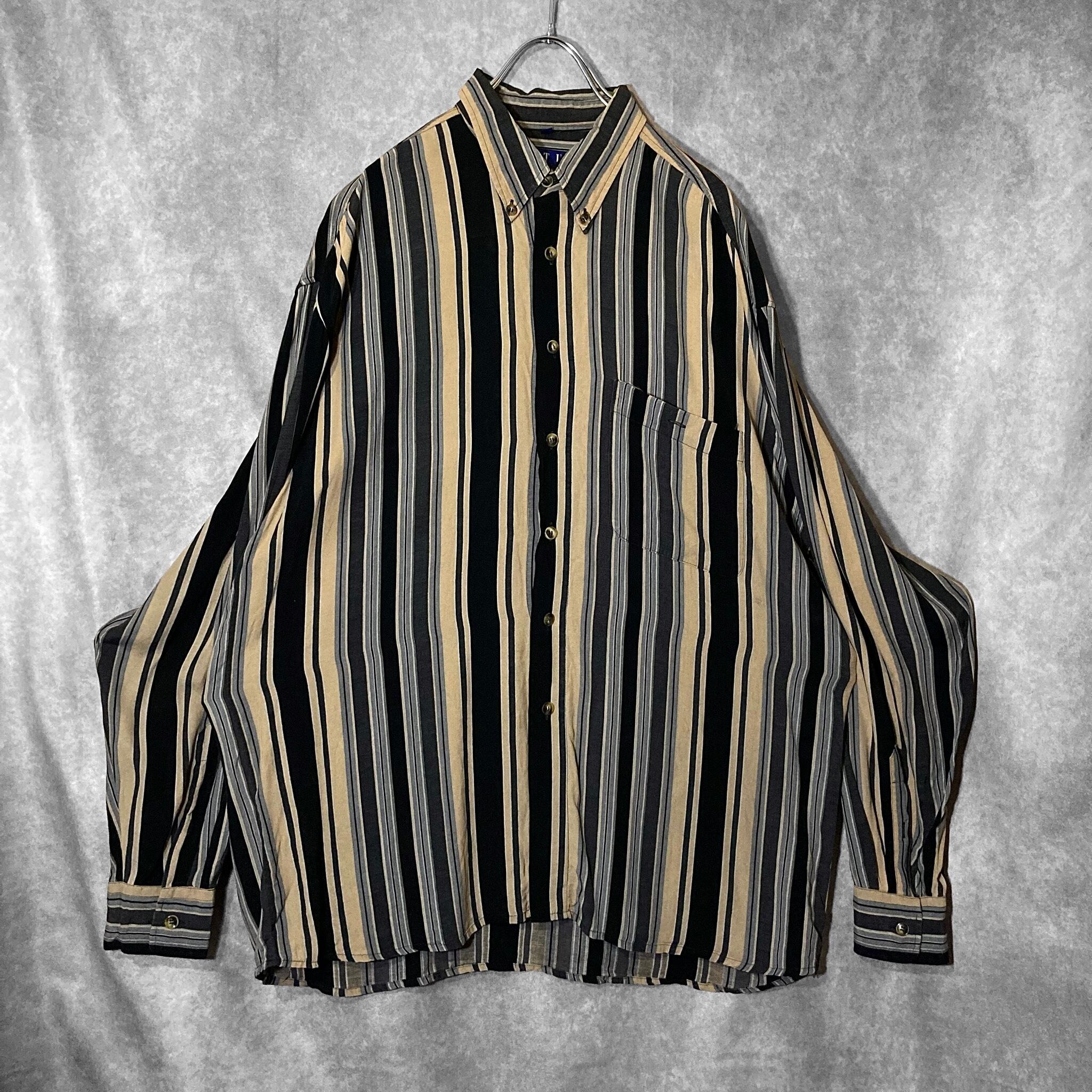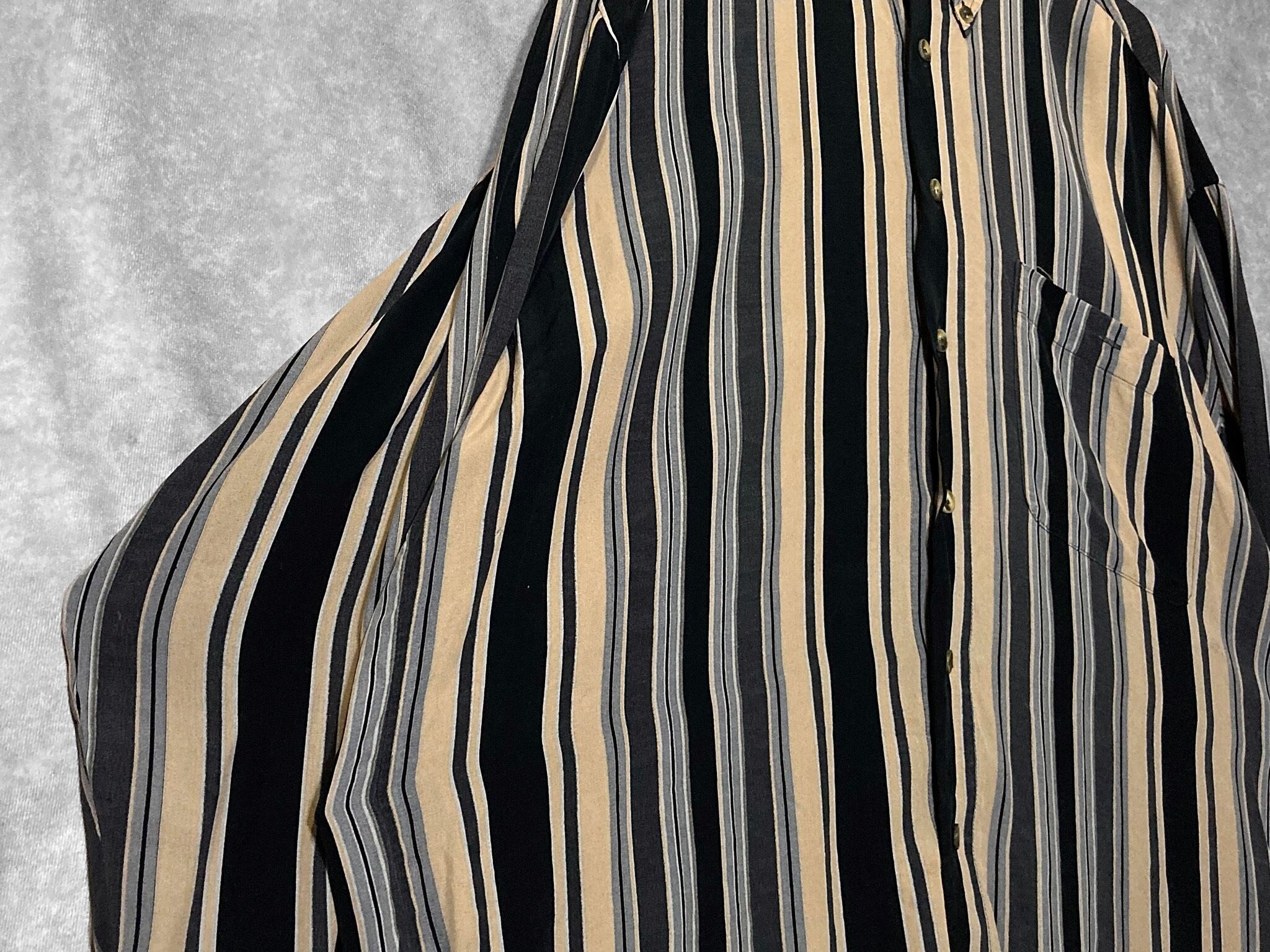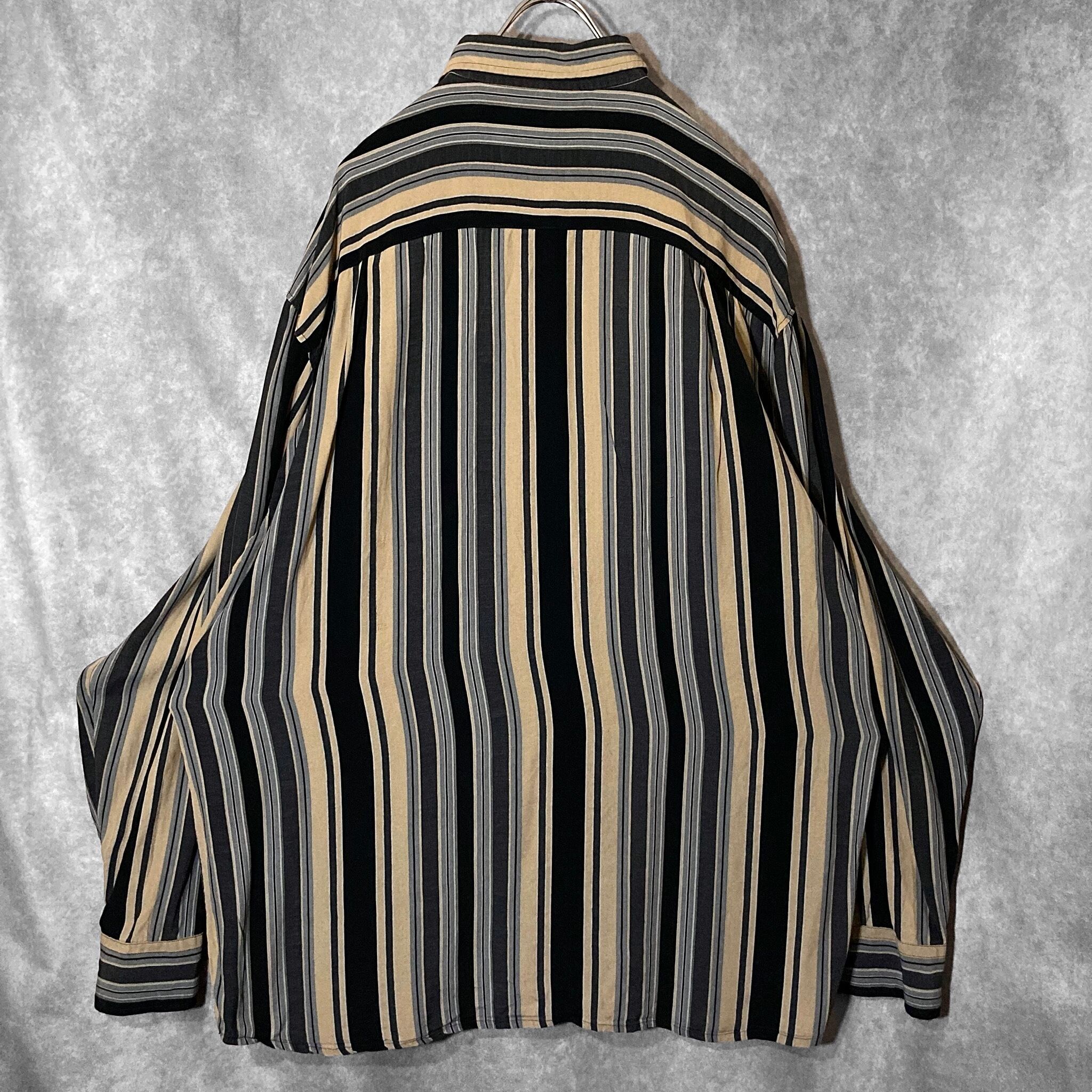 XL Black × Beige Mulch stripe pattern design L/S shirt