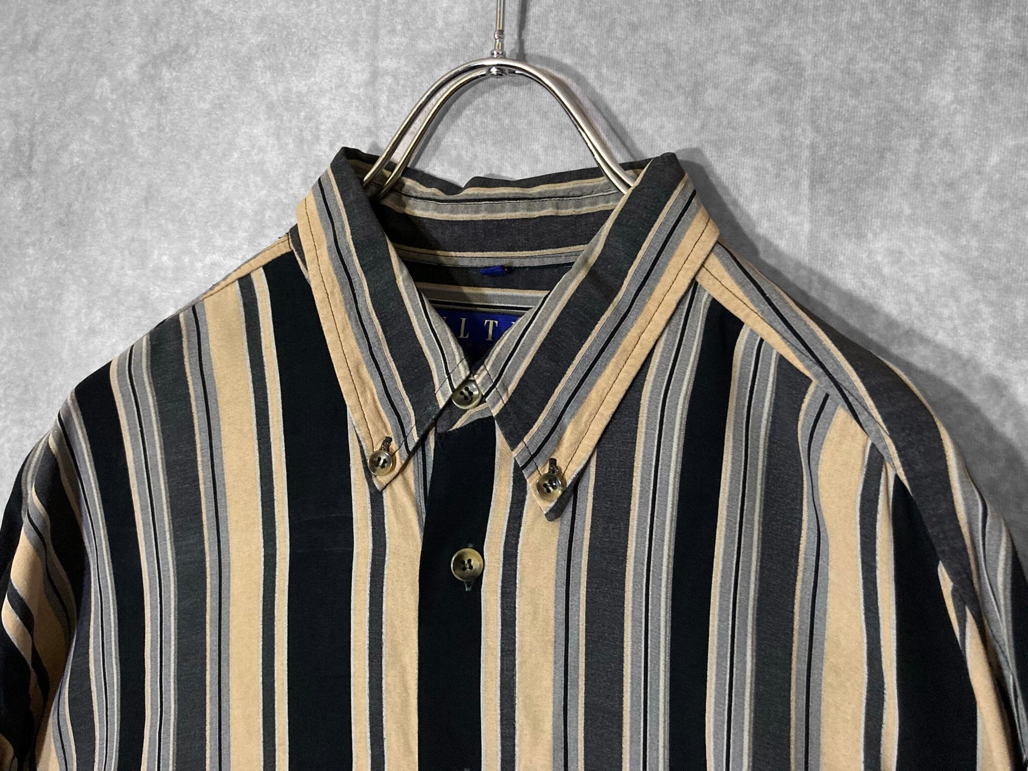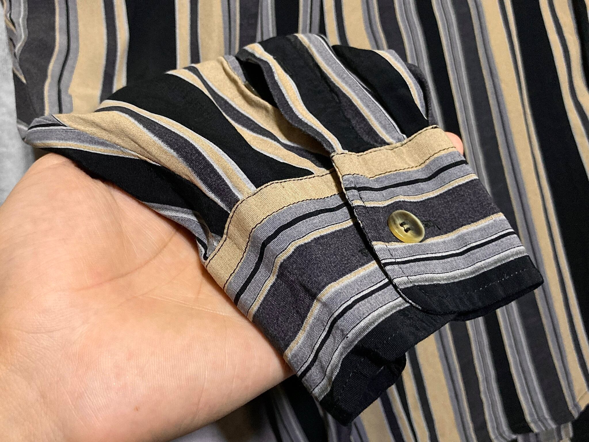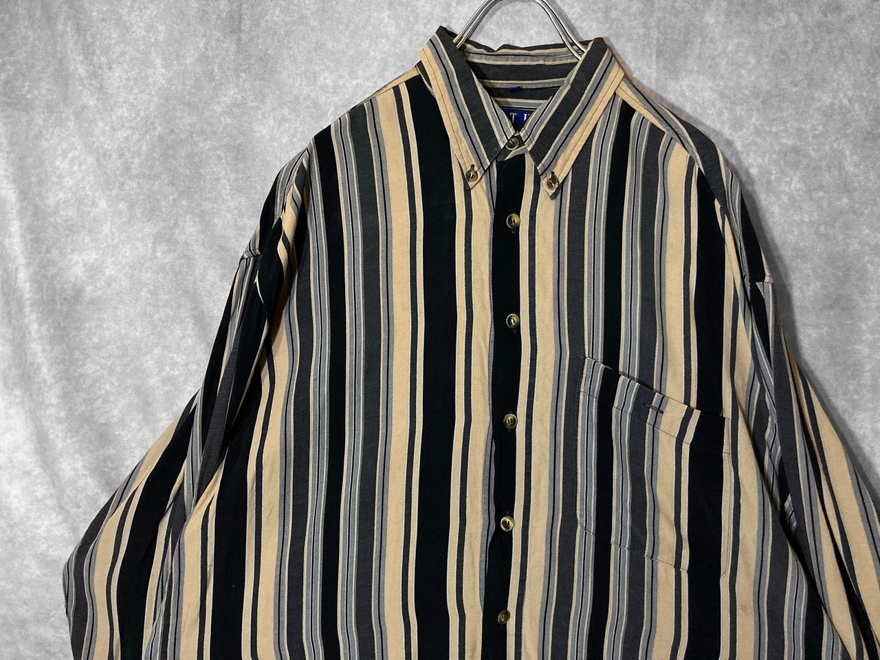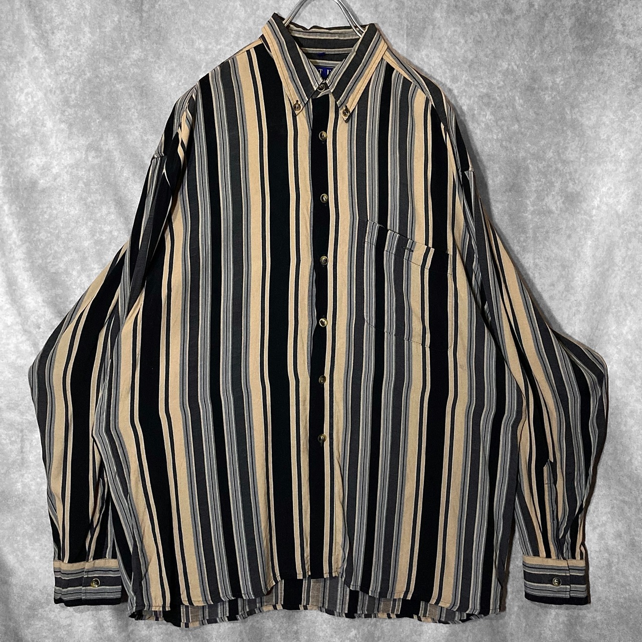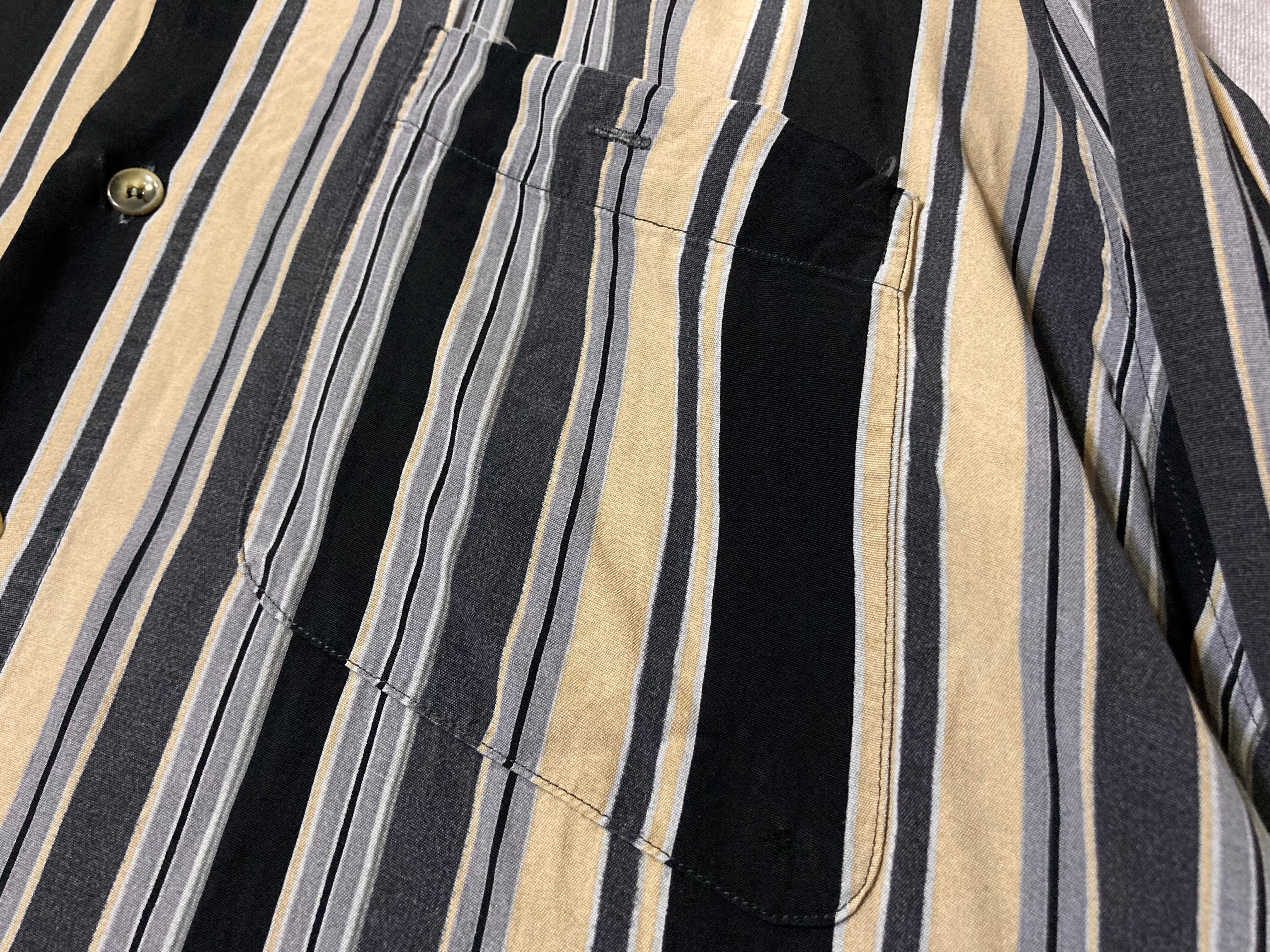 XL Black × Beige Mulch stripe pattern design L/S shirt
