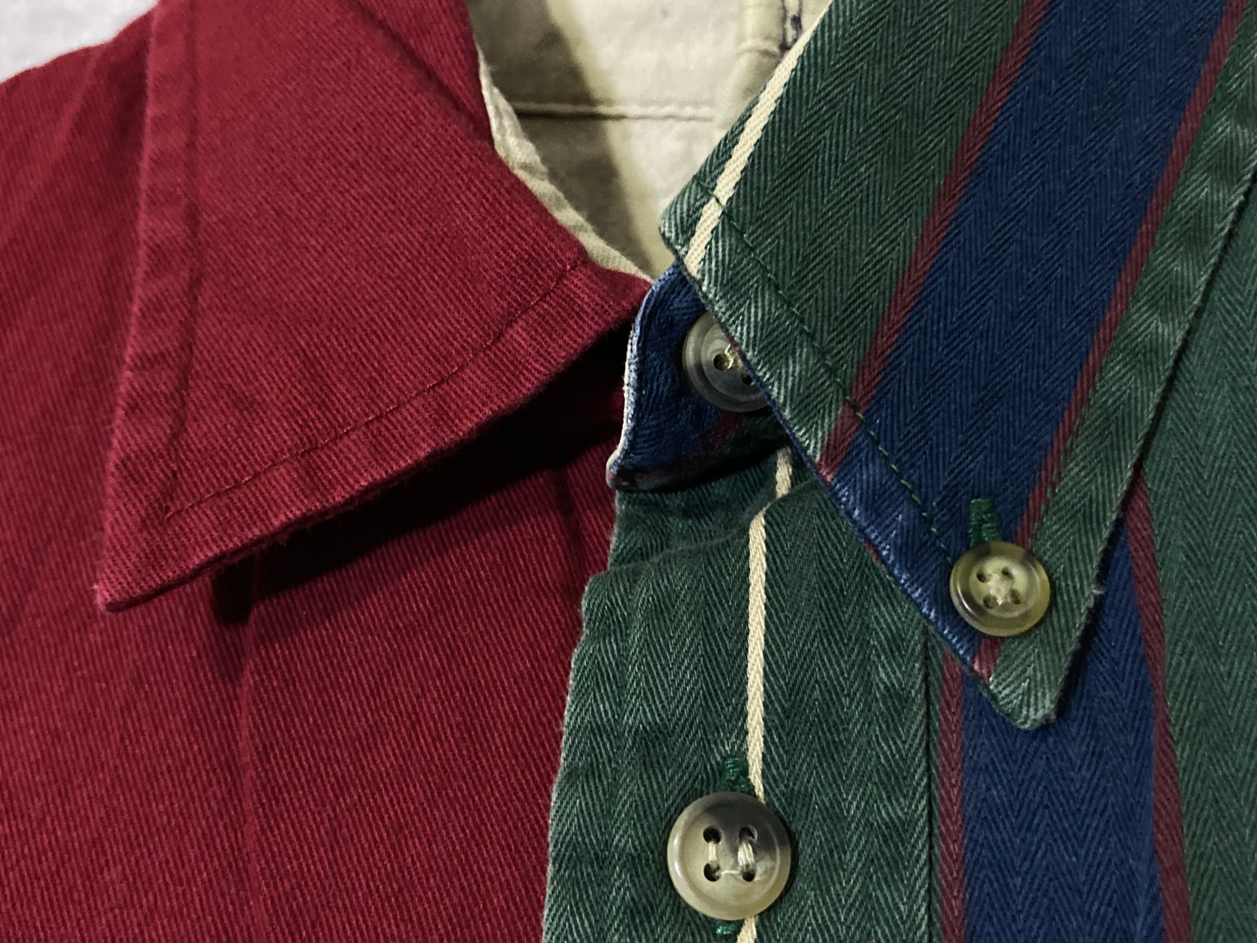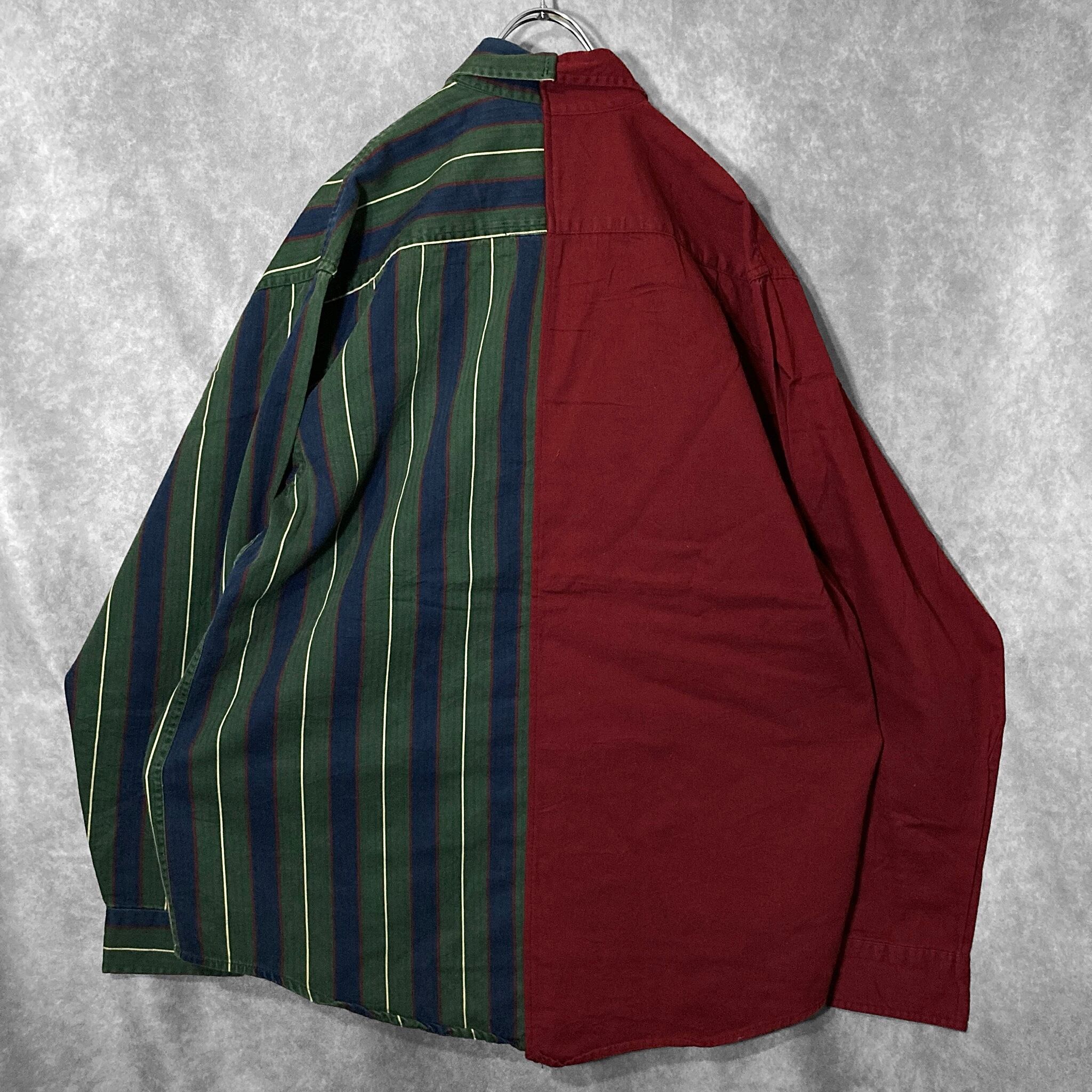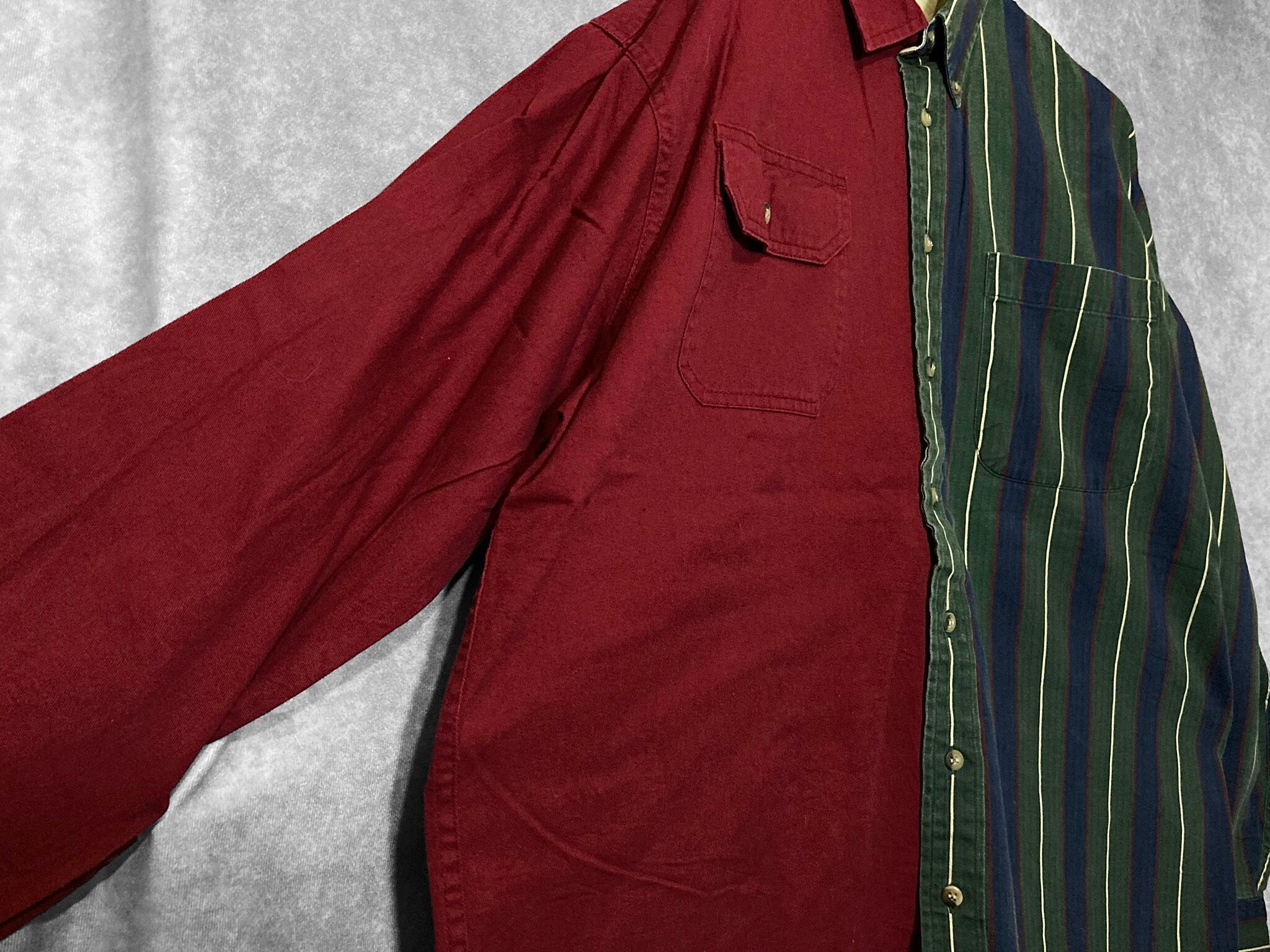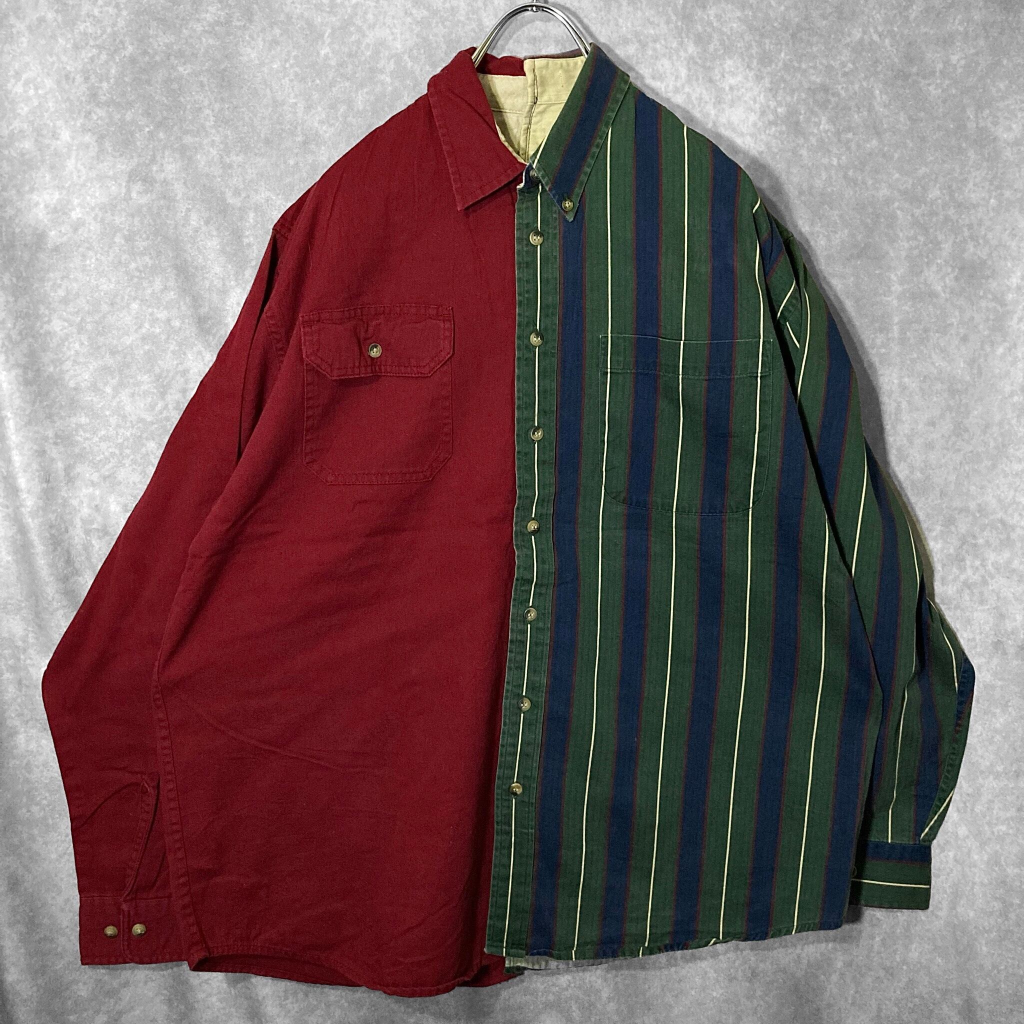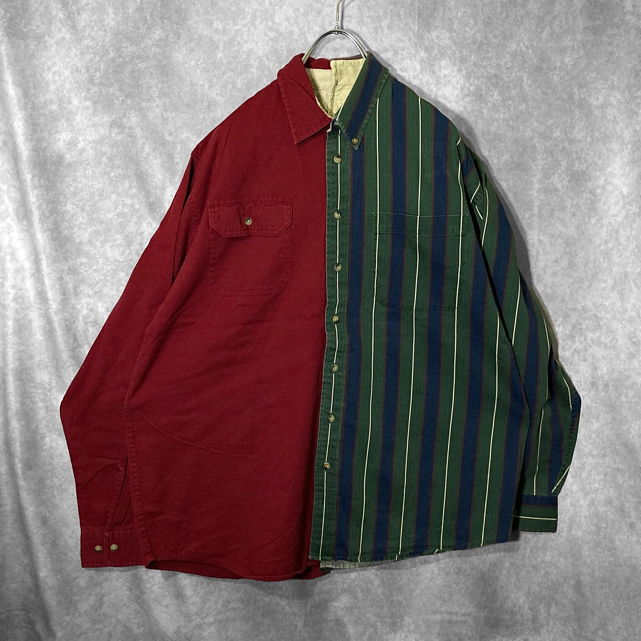 XL 再構築 Red color × Mulch color Stripe pattern design Switch L/S shirt