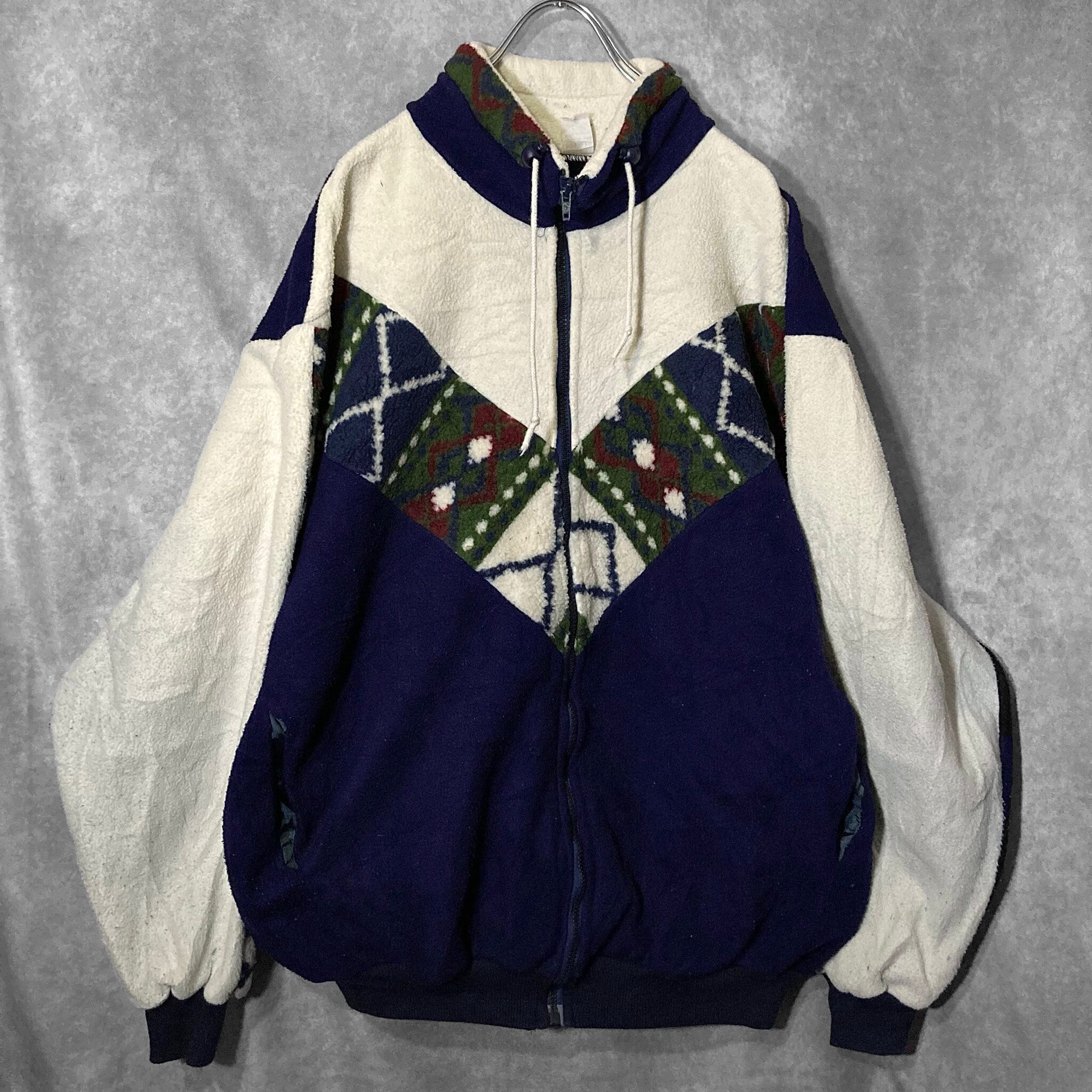 Geometric pattern × Switch pattern design Bore fleece zip jacket