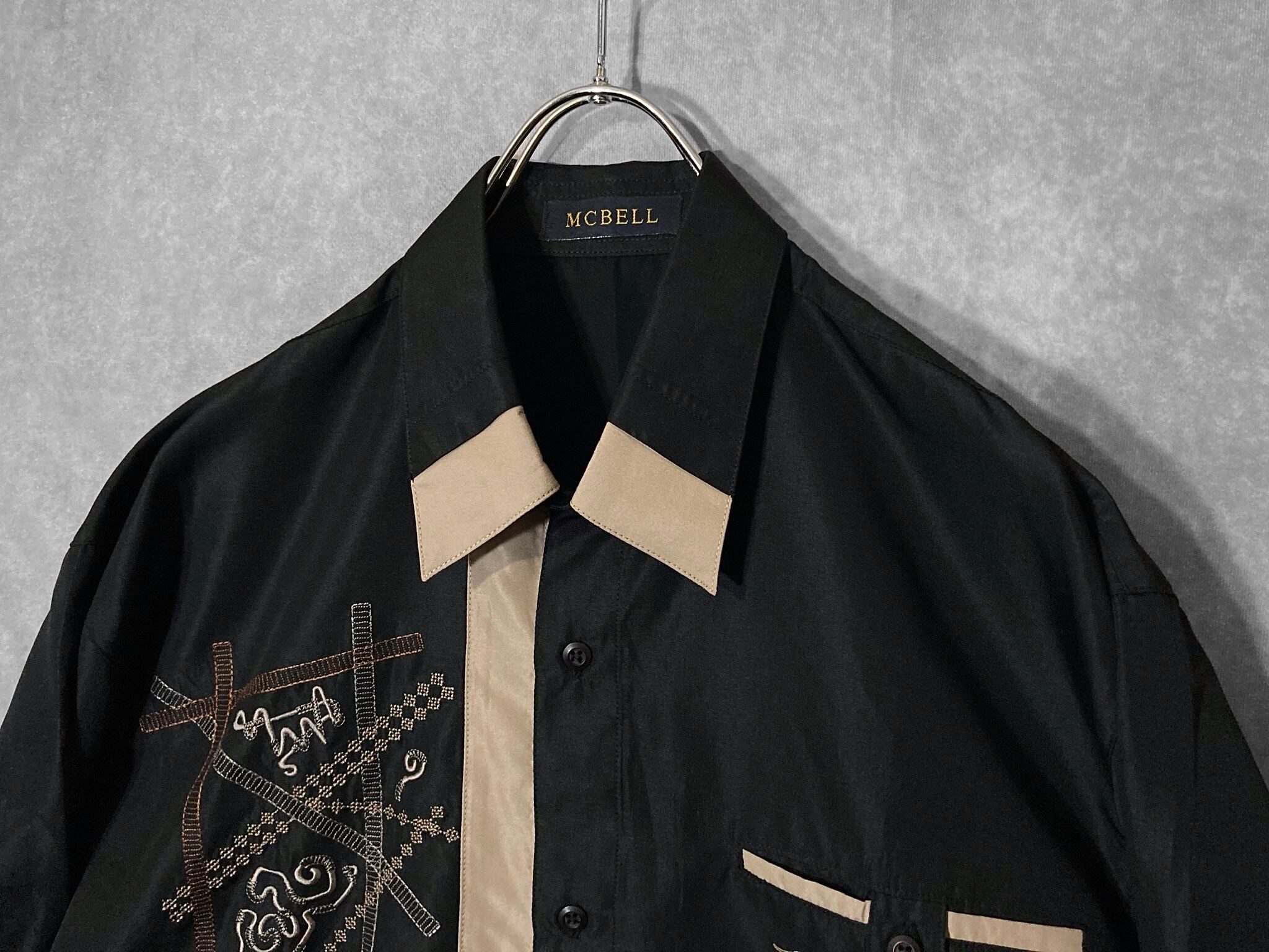XL size Luster embroidery pattern × Switch pattern design L/S shirt