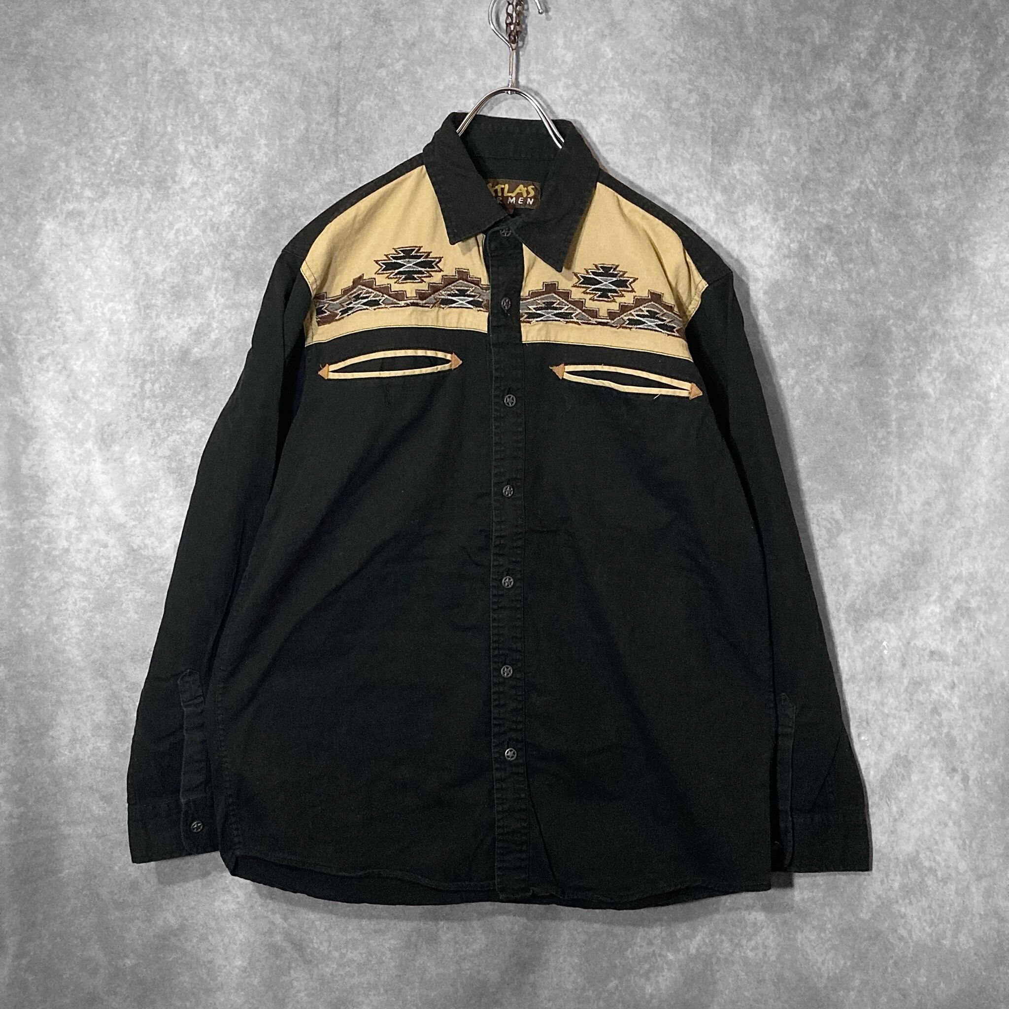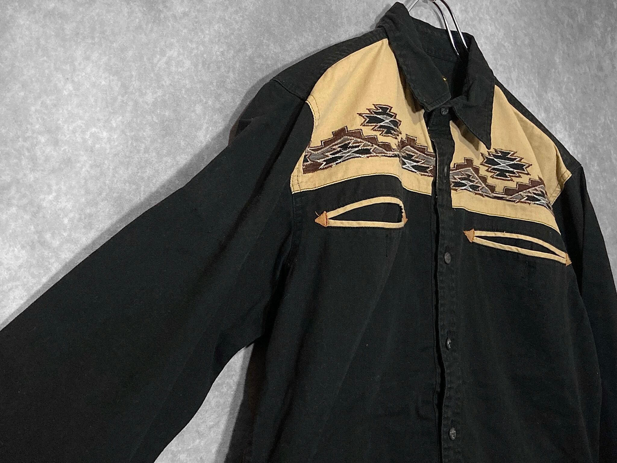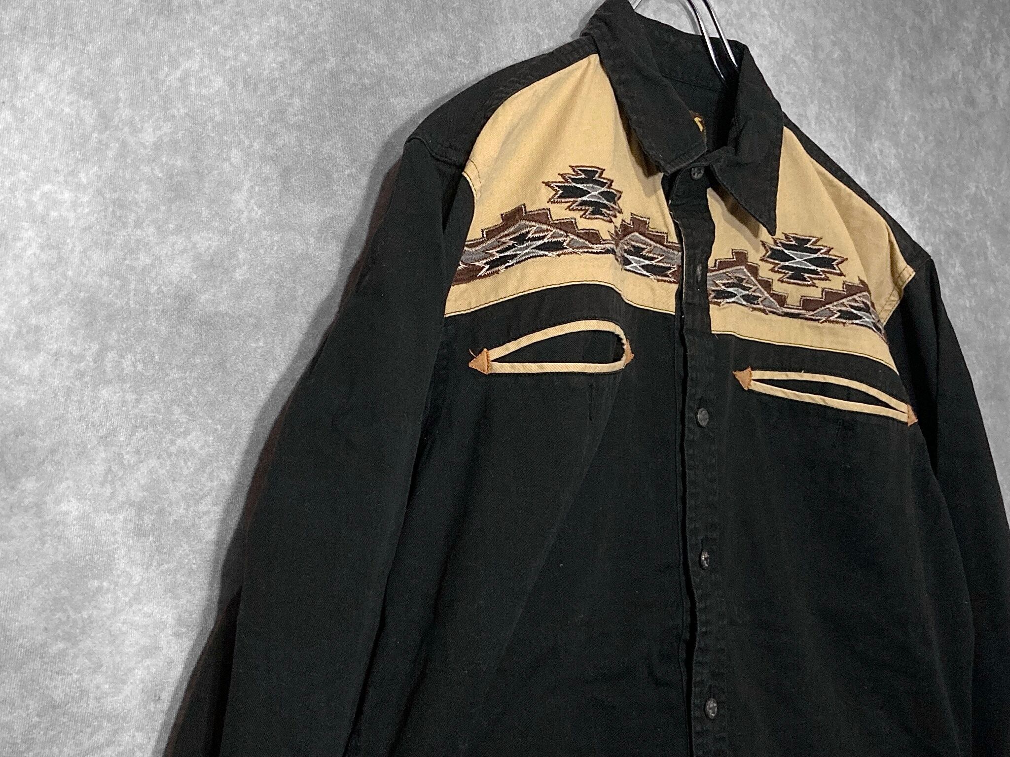 XL embroidery Ortega pattern × Black and Beige color combination design L/S shirt